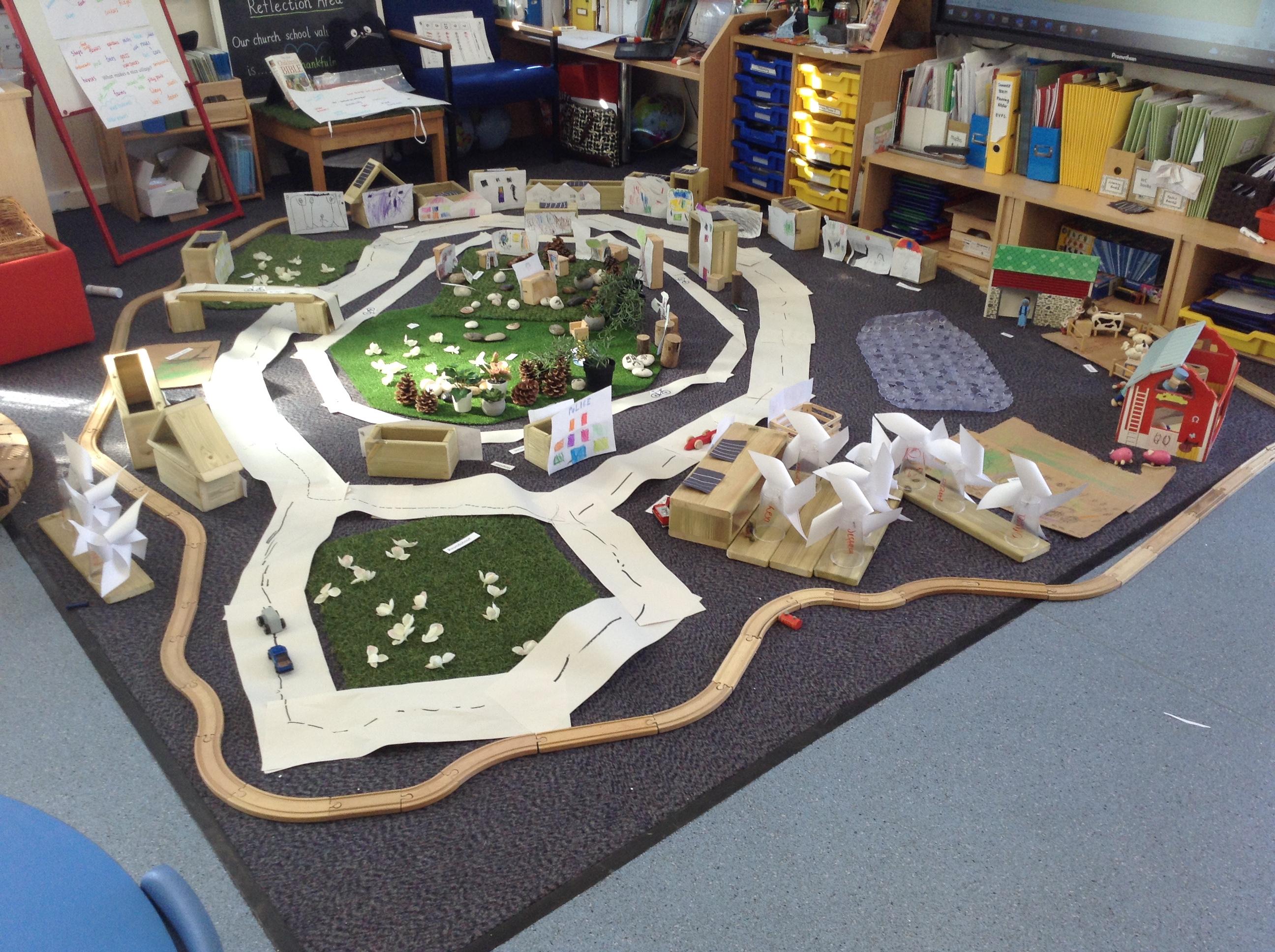 The children in Mice class worked incredibly hard in creating a village in the classroom. The village had a wind farm to provide clean electric for the village along with solar panels on the buildings.
