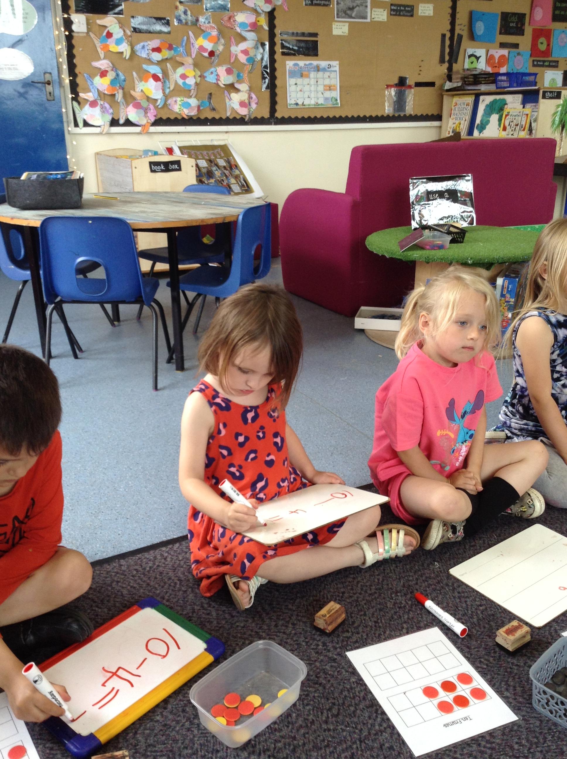 In maths this week we have been adding and subtracting. The children have been using concrete equipment such as counters and ten frames to add and subtract different quantities. We have then been having a go at writing this in a number sentence.