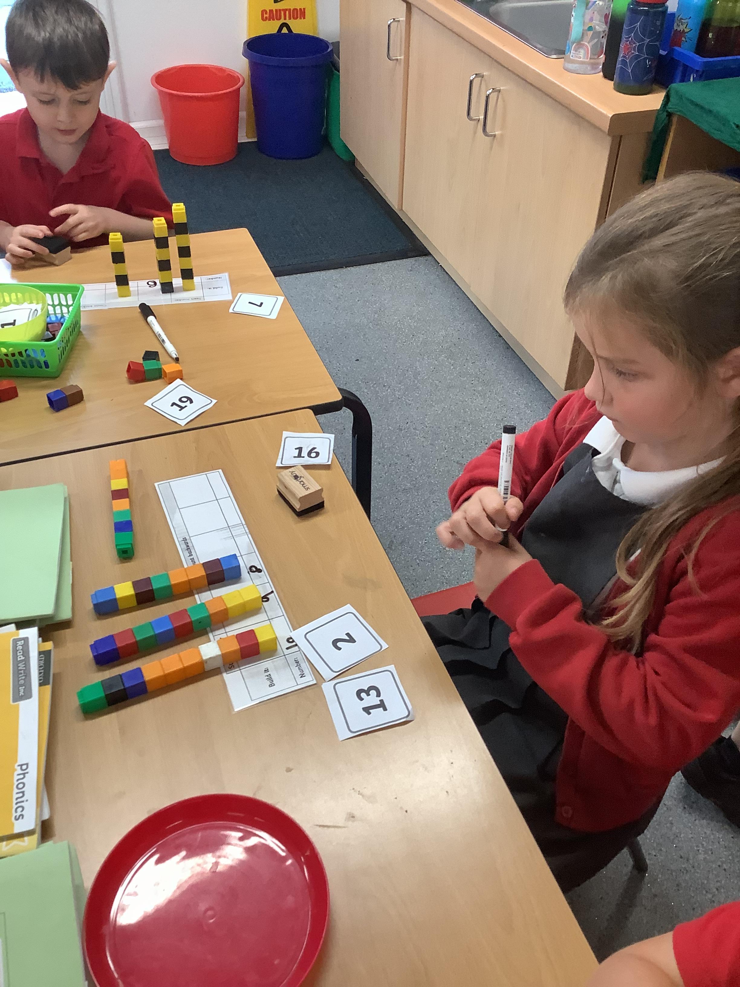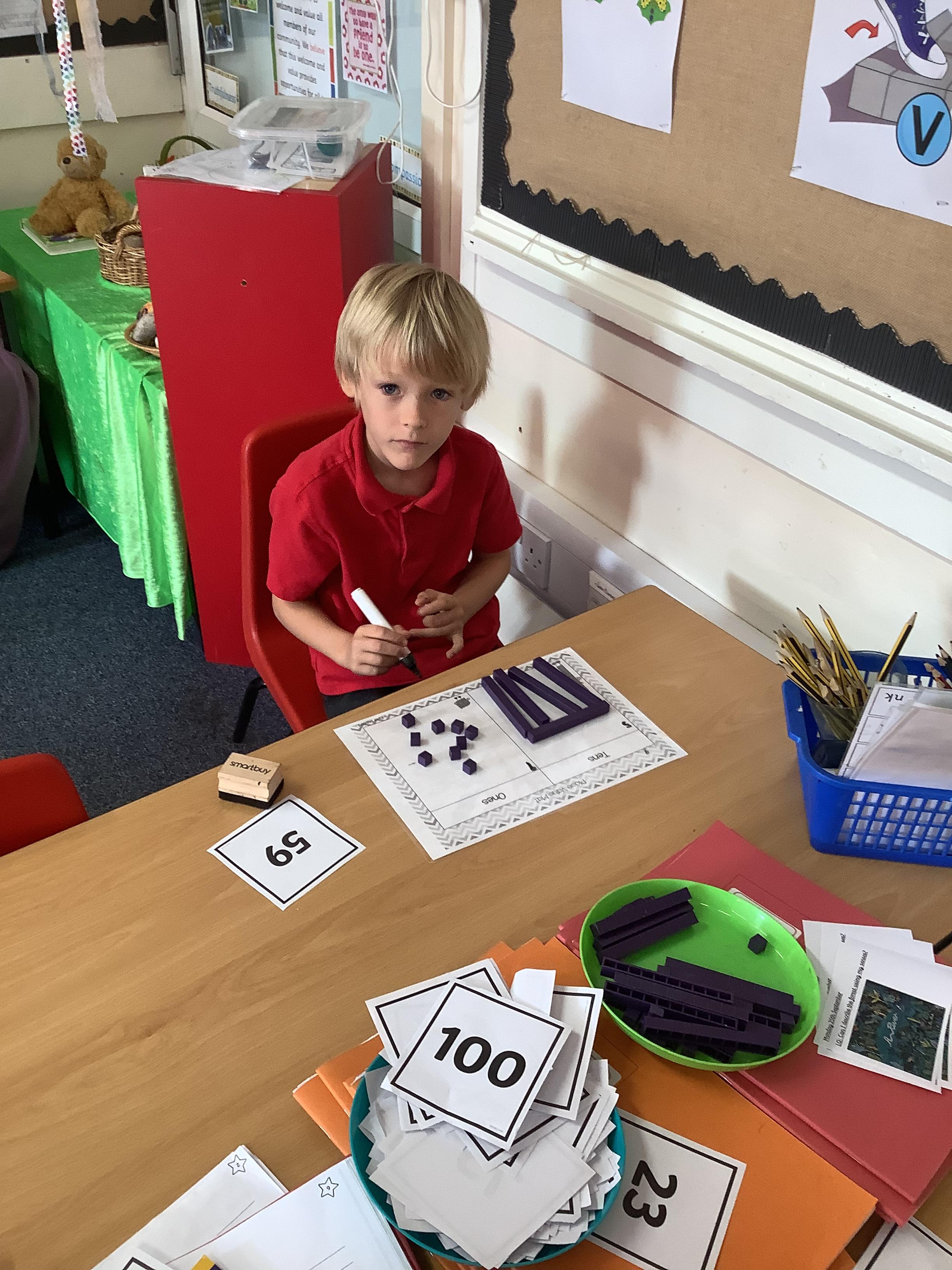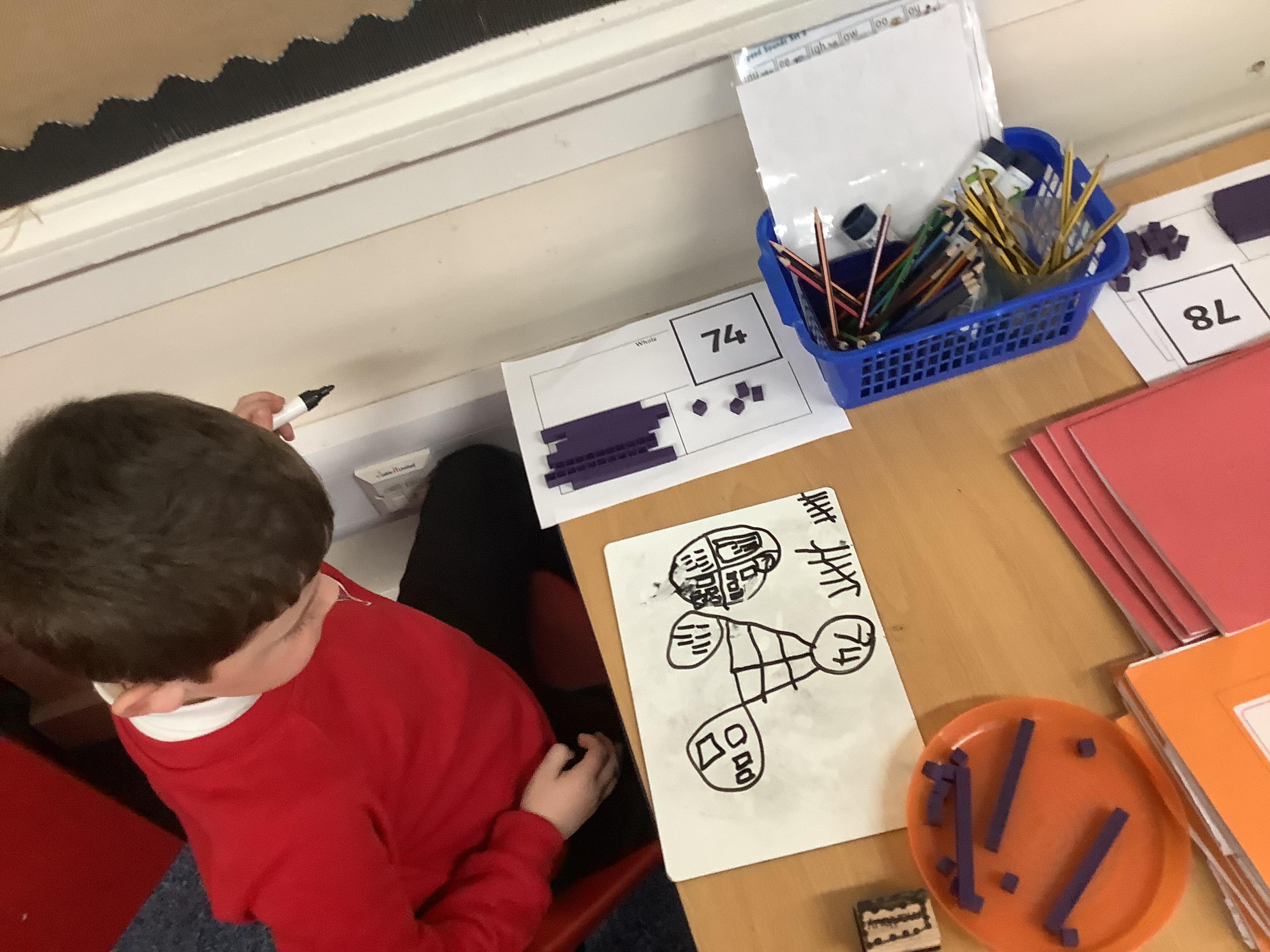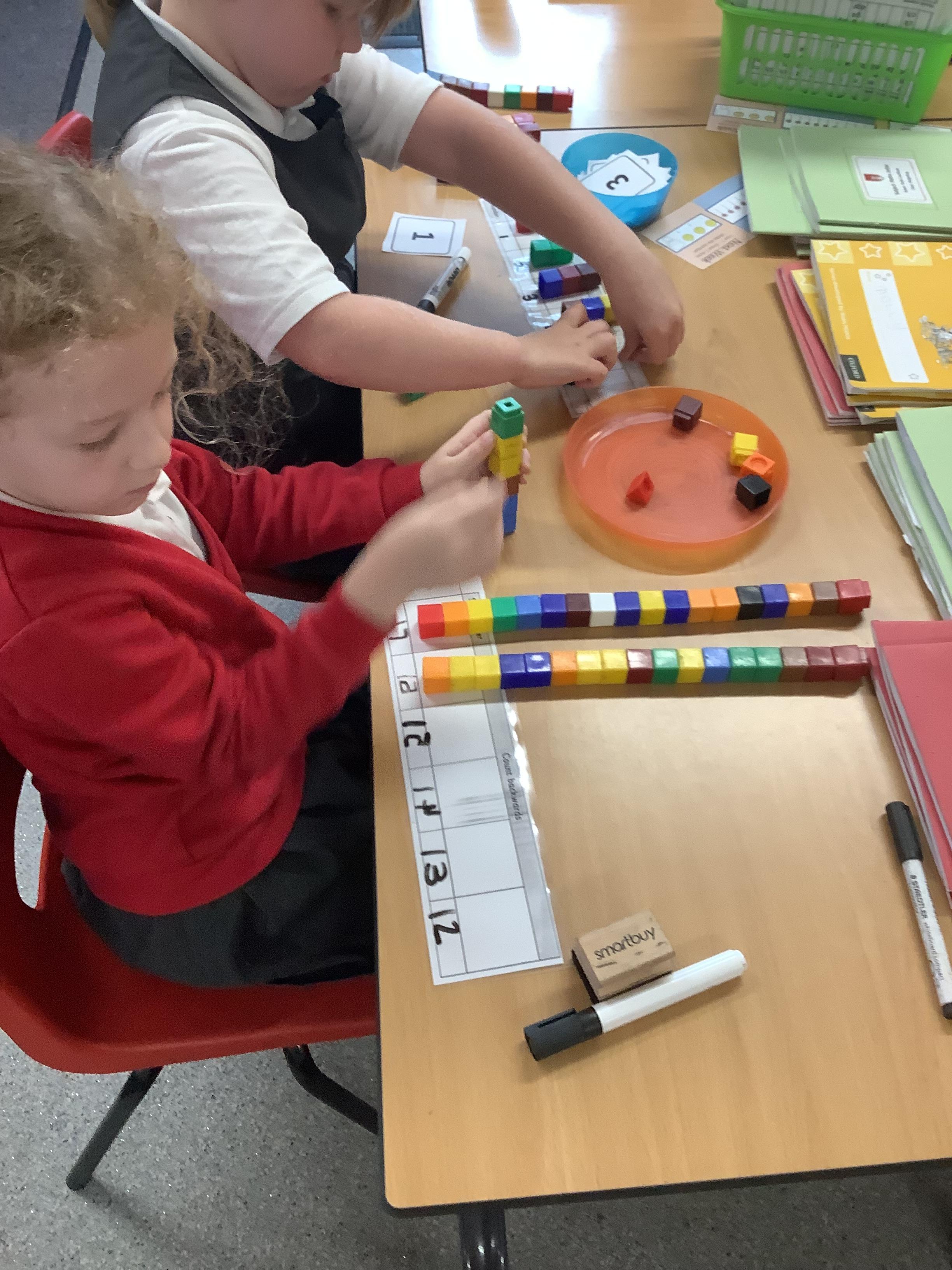 Maths today was practical for our Year 1 children and our Year 2 children. Year 1 children were counting backwards ready for finding 1 less and our Year 2 children were showing how to partition numbers in different ways. They used part whole models, place value grids and they drew numbers too.