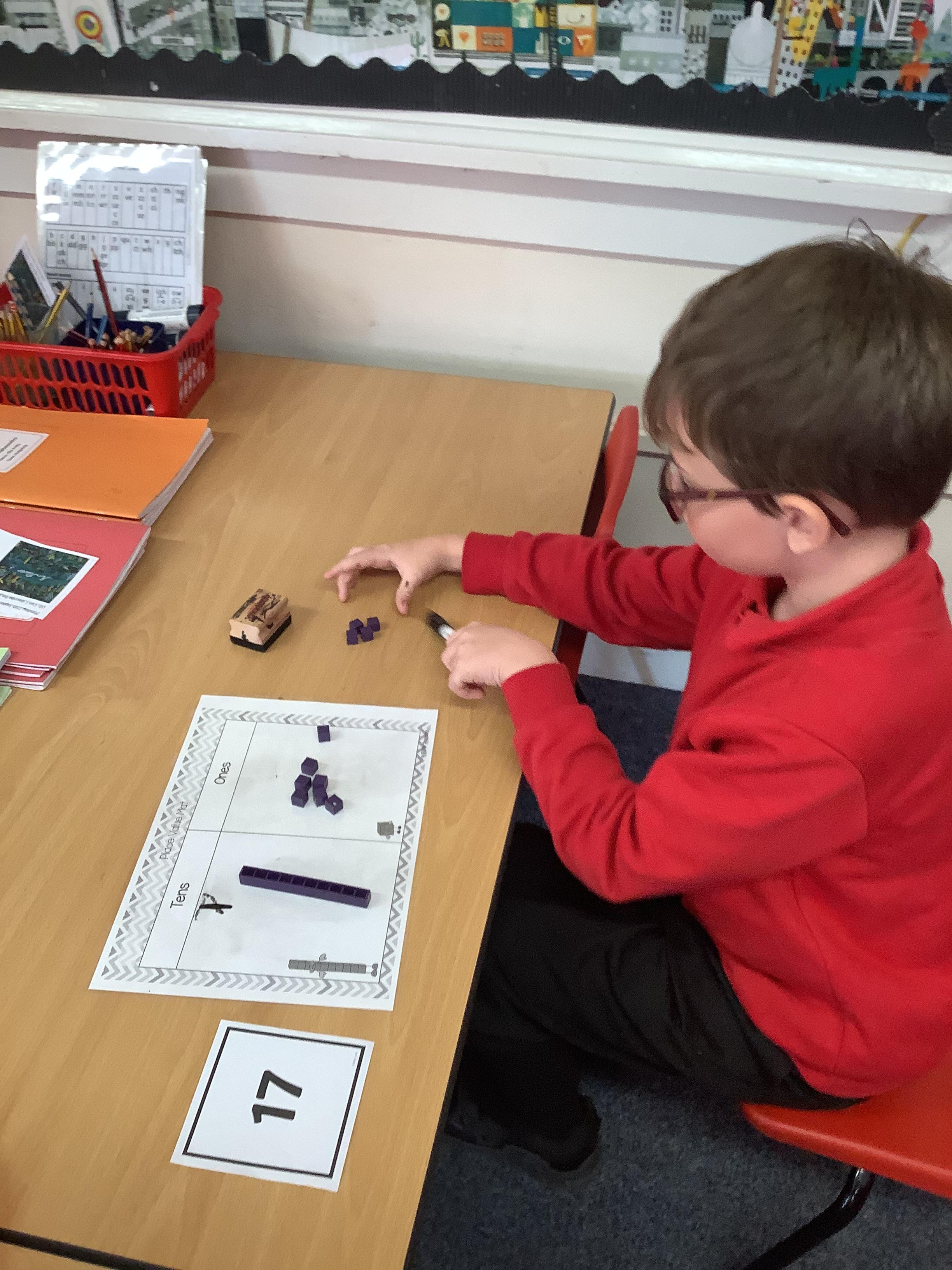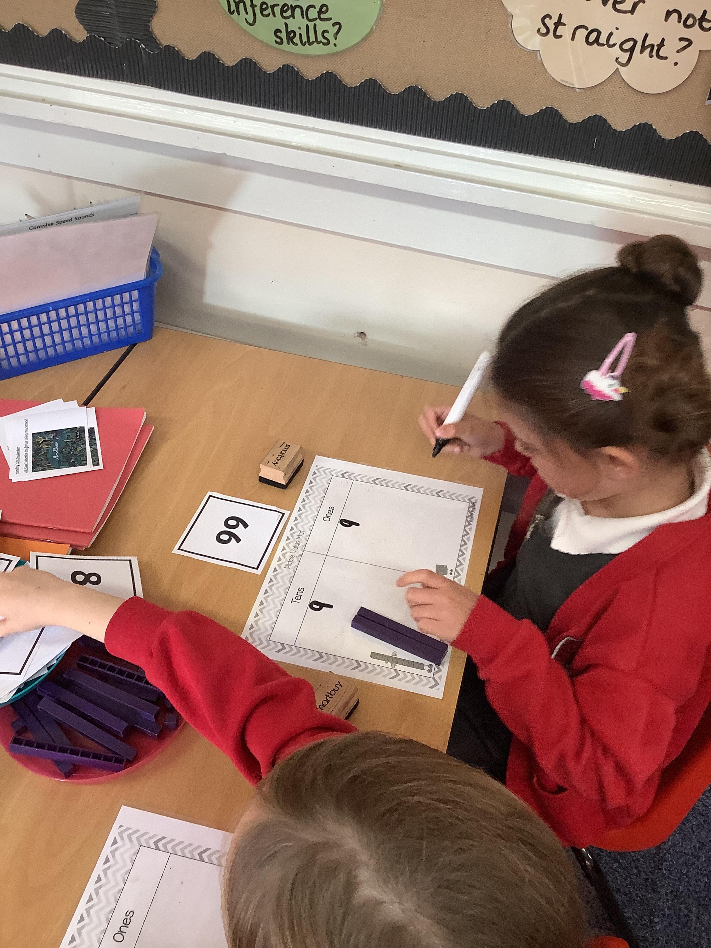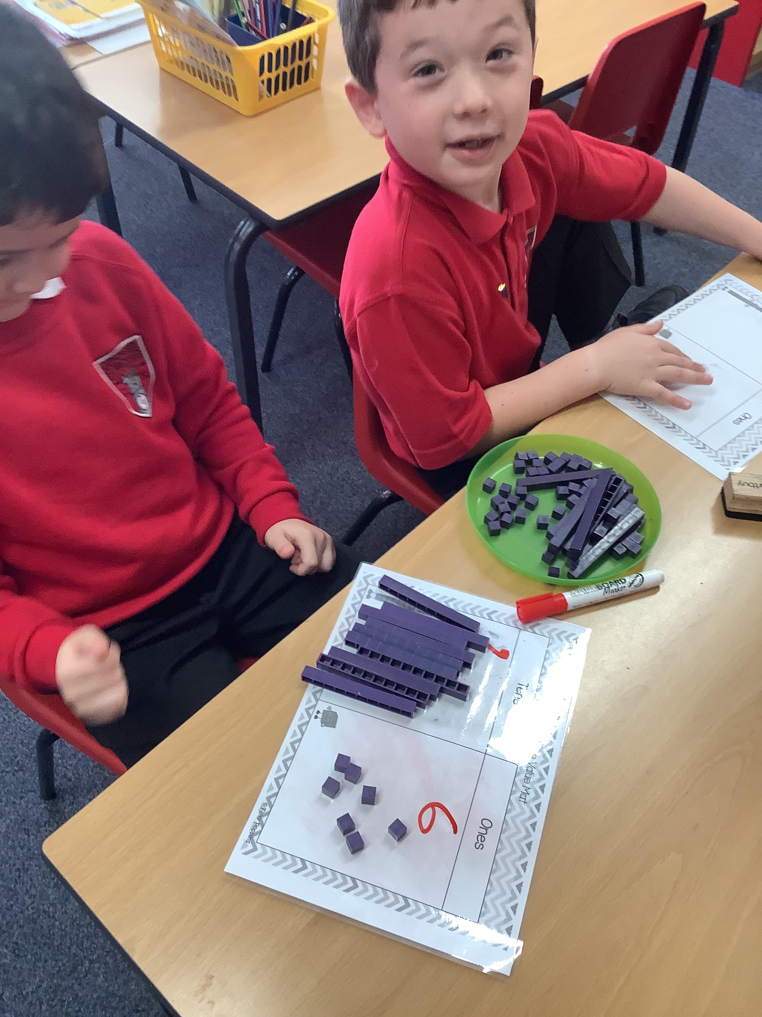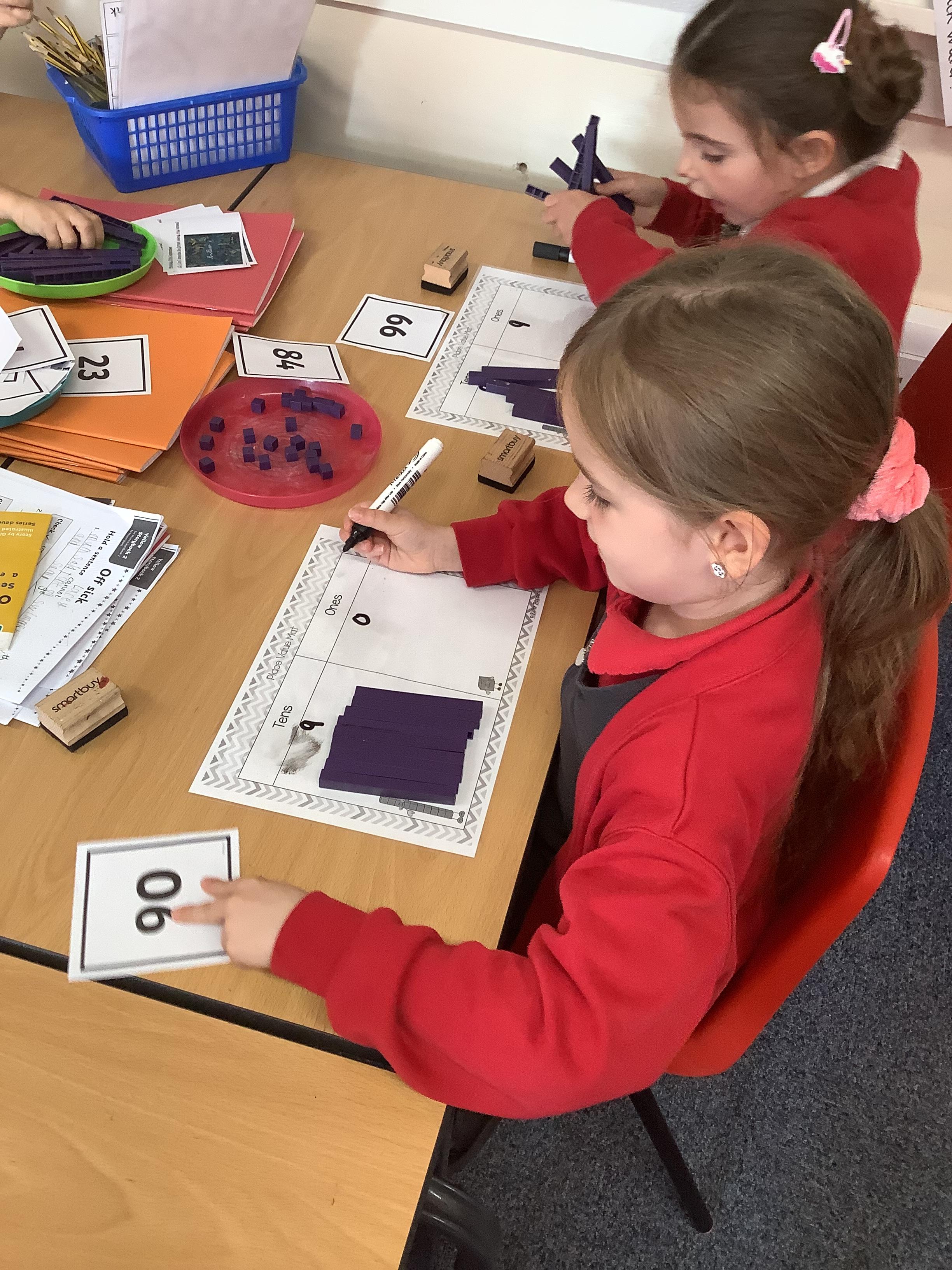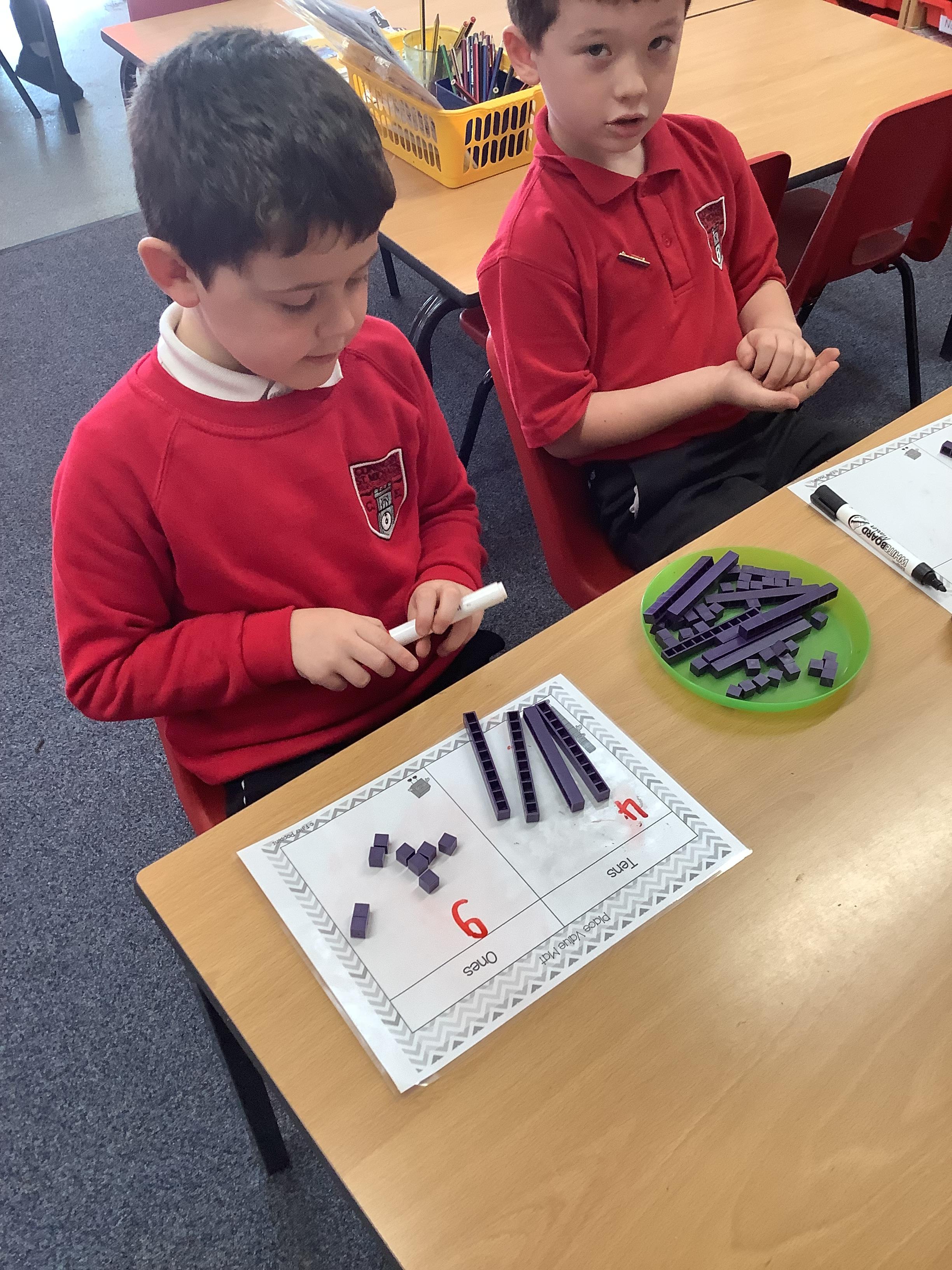 In Maths the Year 2 children were exploring place value grids and how to use them, they identified the ones in a number and the the tens. They then built the number.