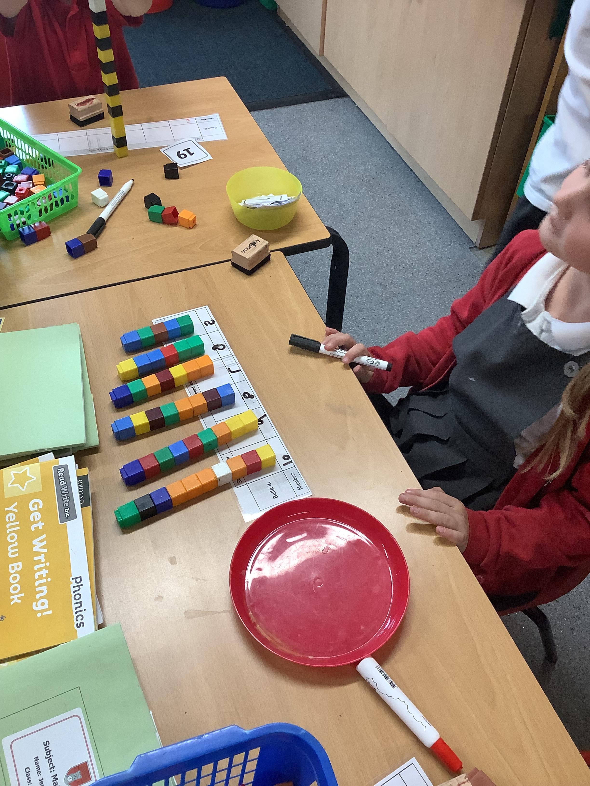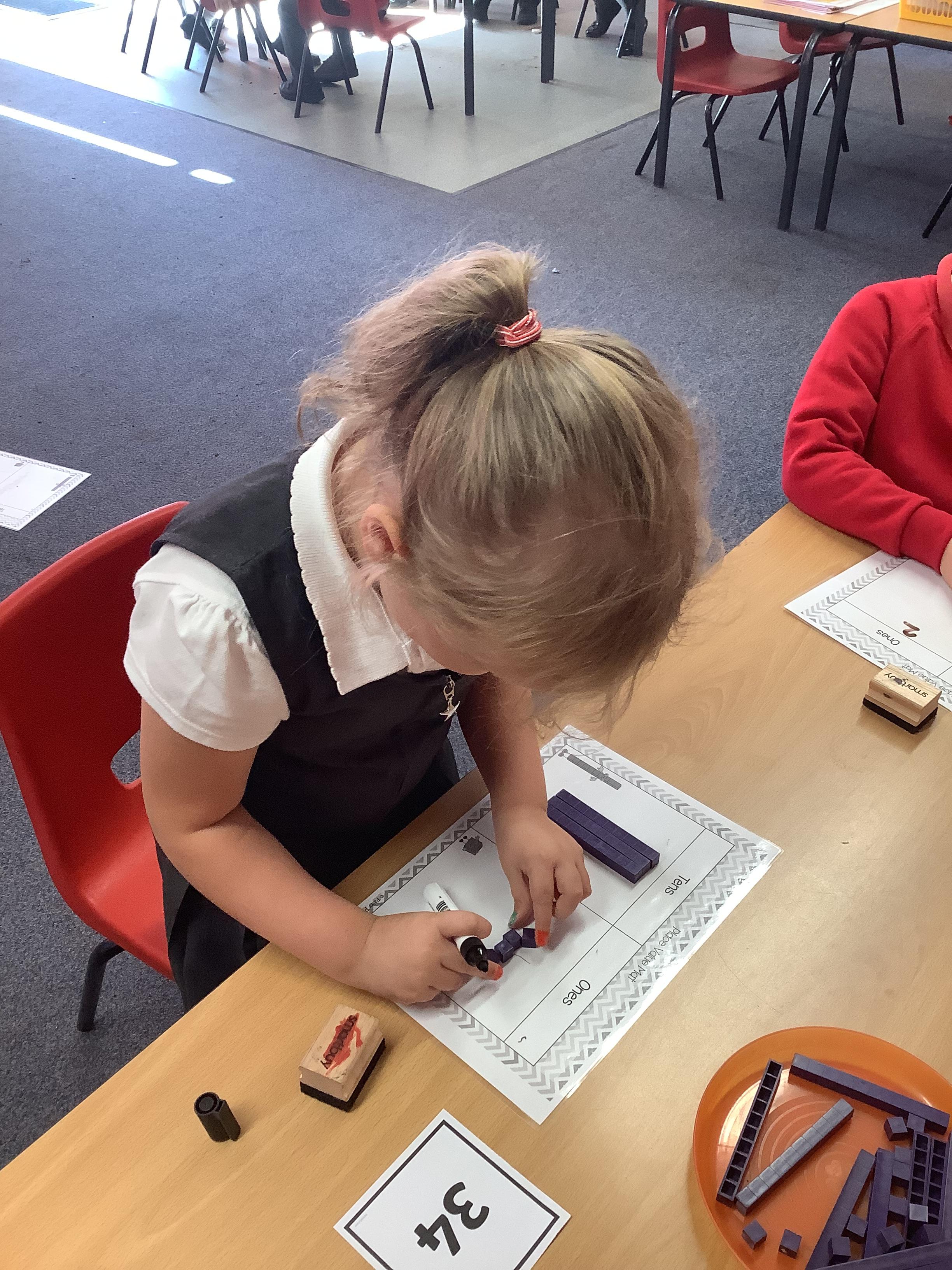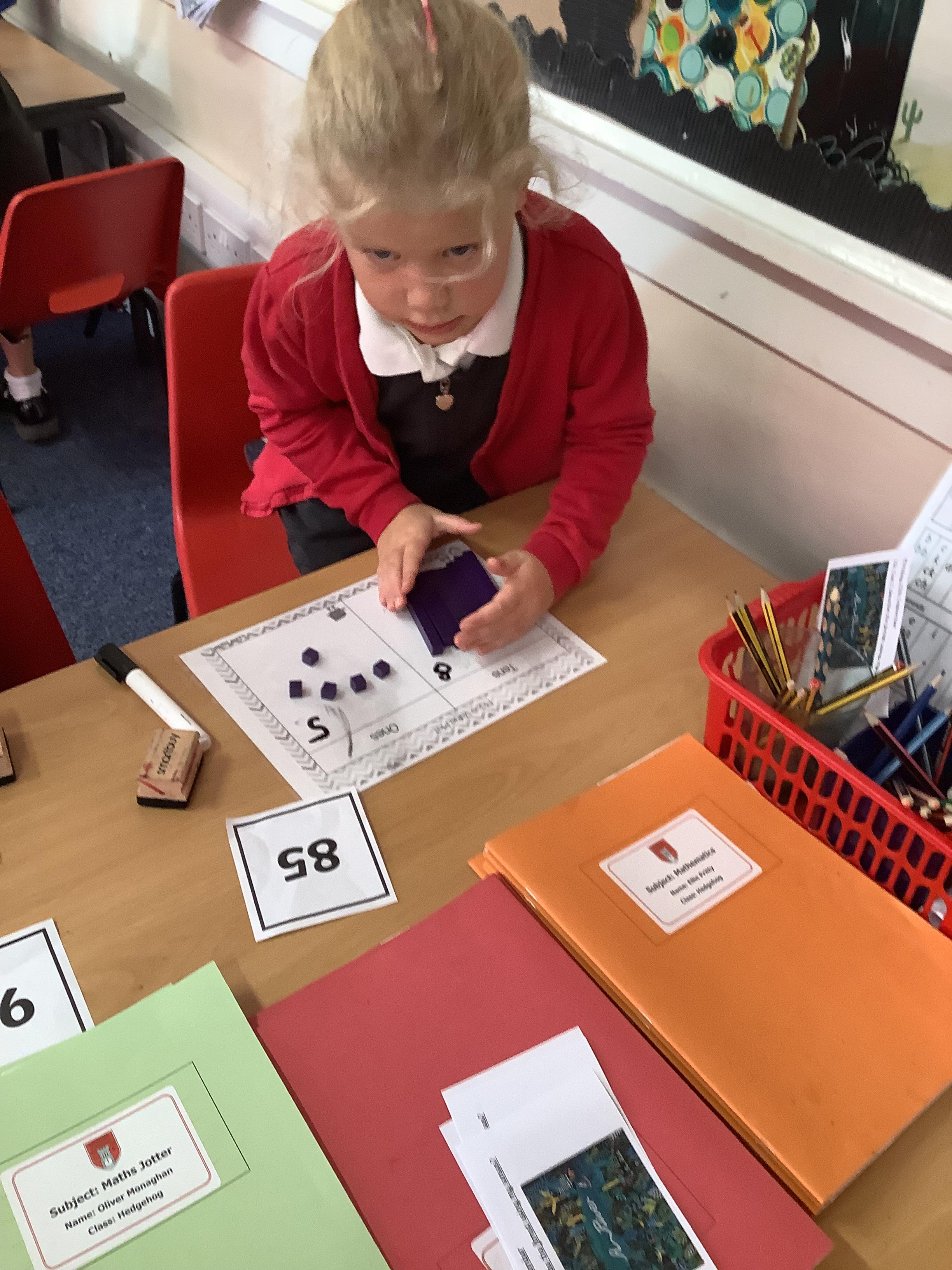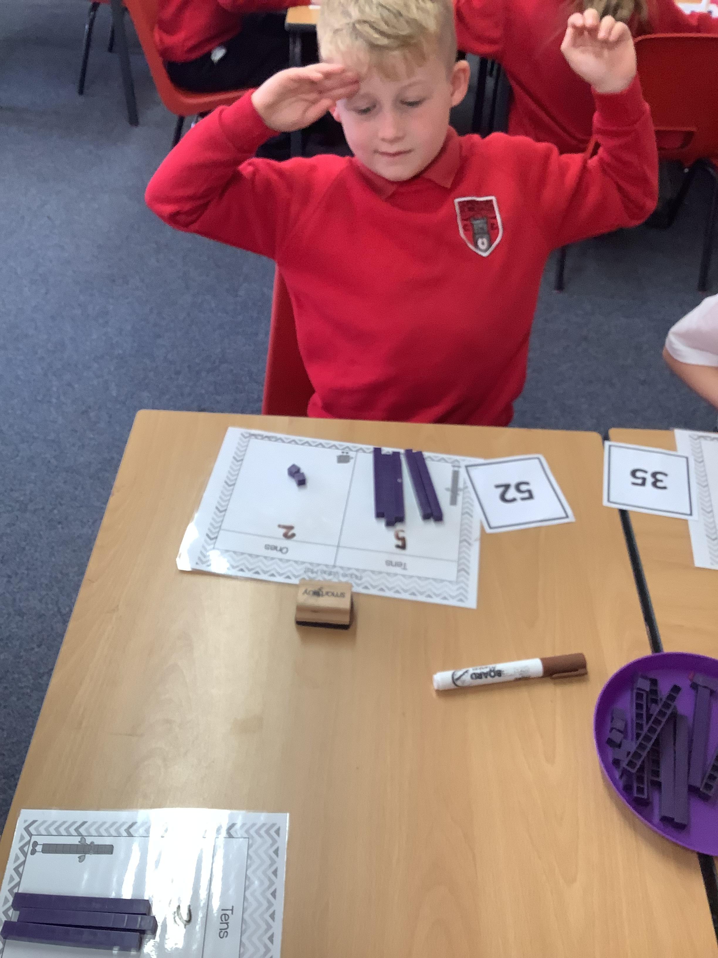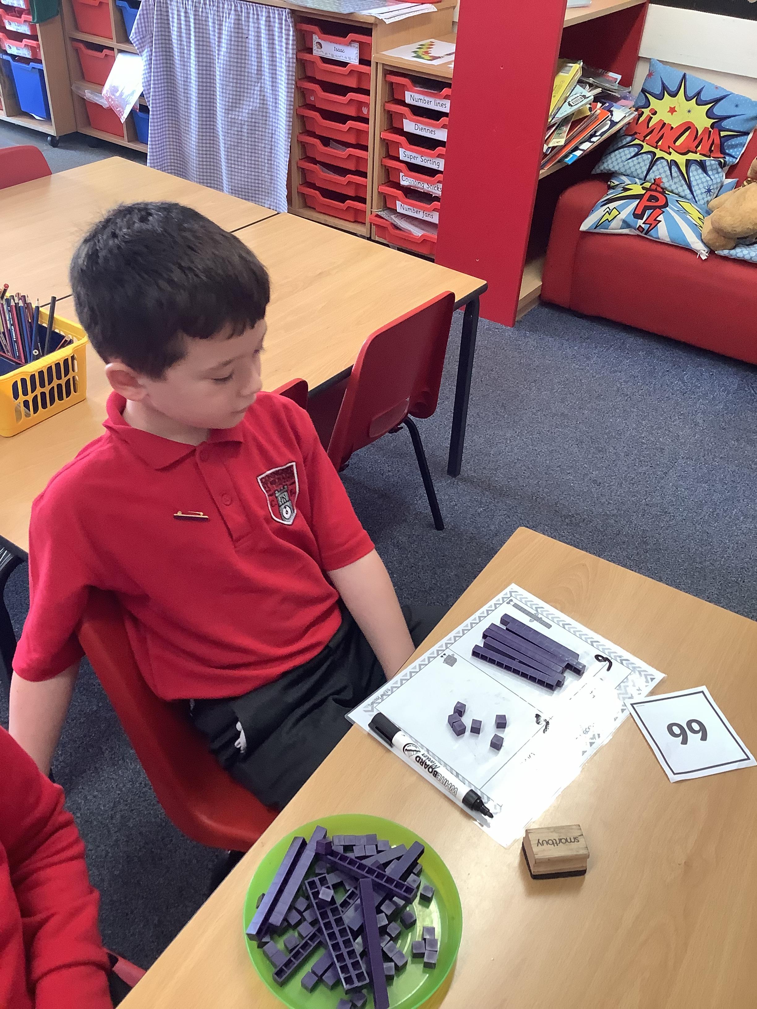 In Maths the Year 2 children were exploring place value grids and how to use them, they identified the ones in a number and the the tens. They then built the number.