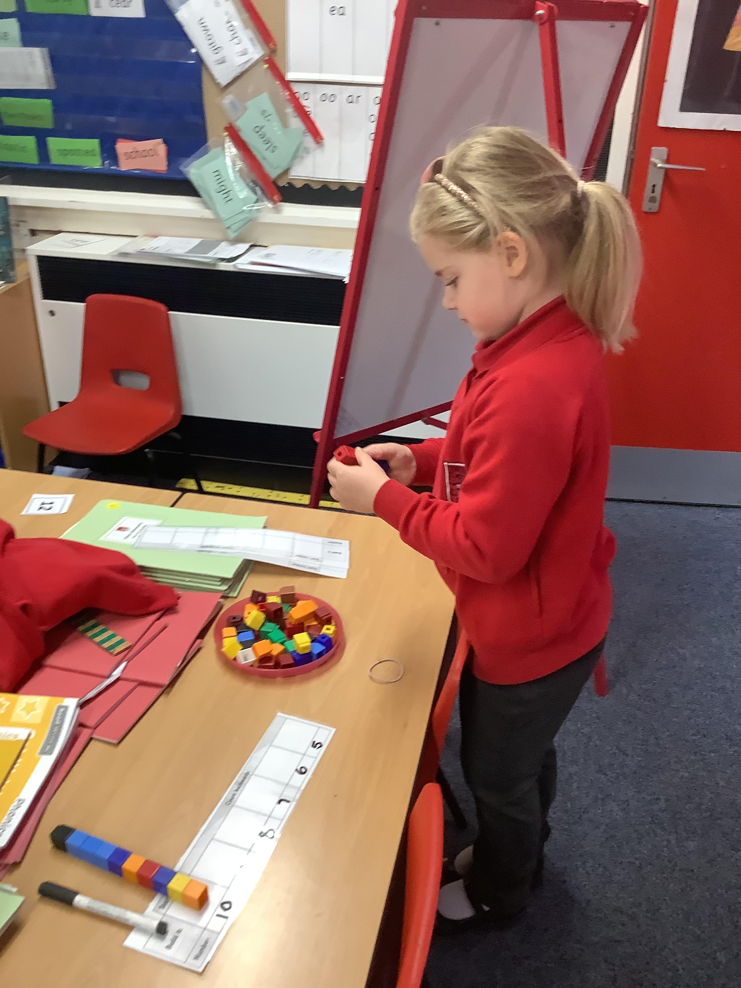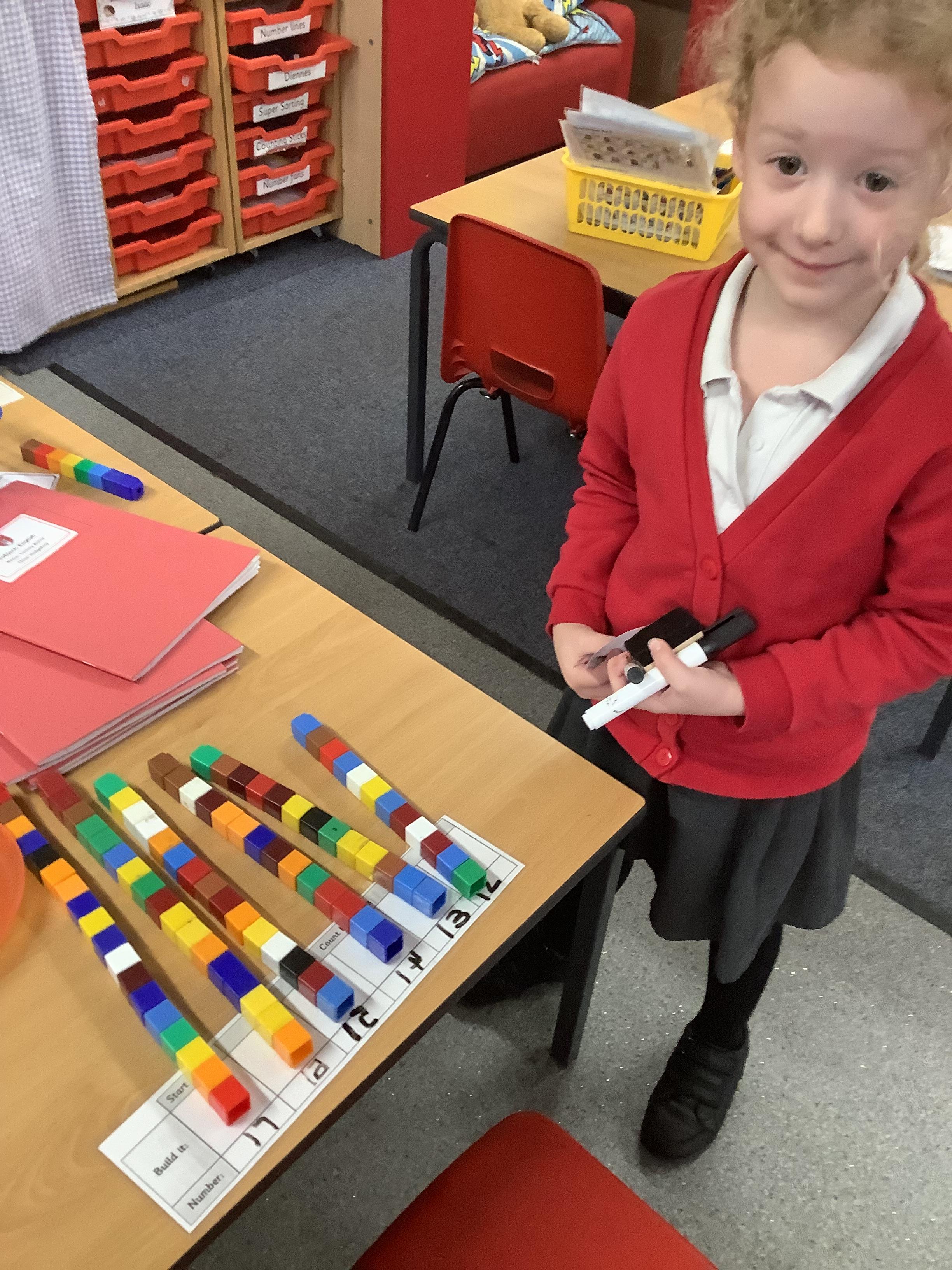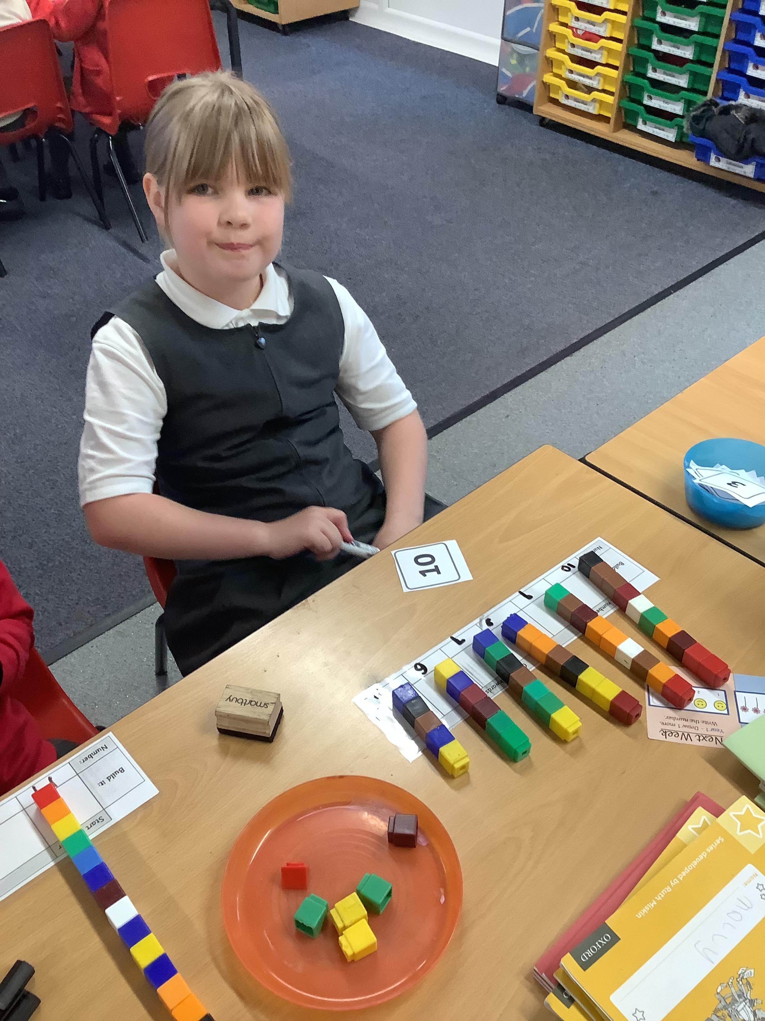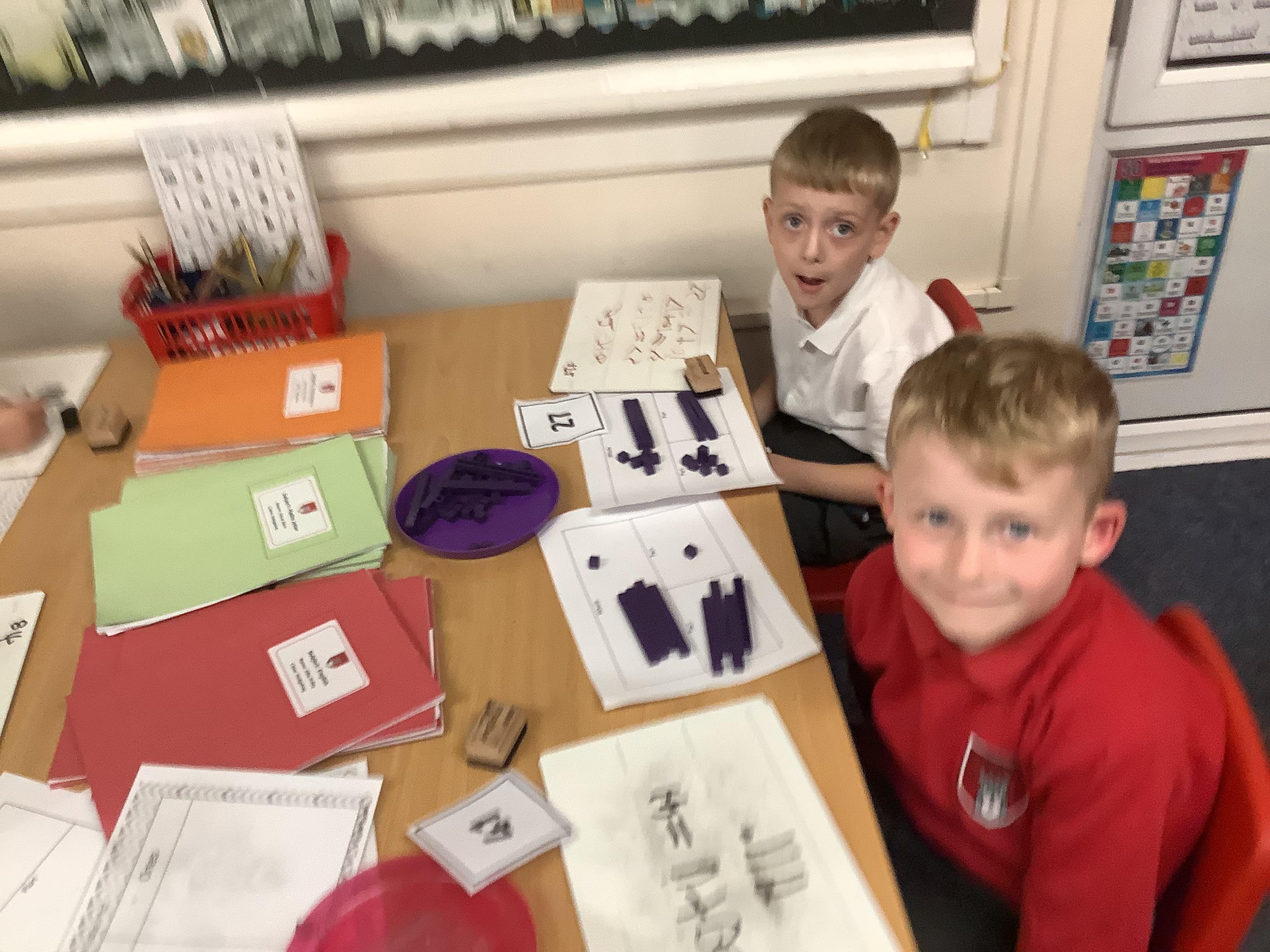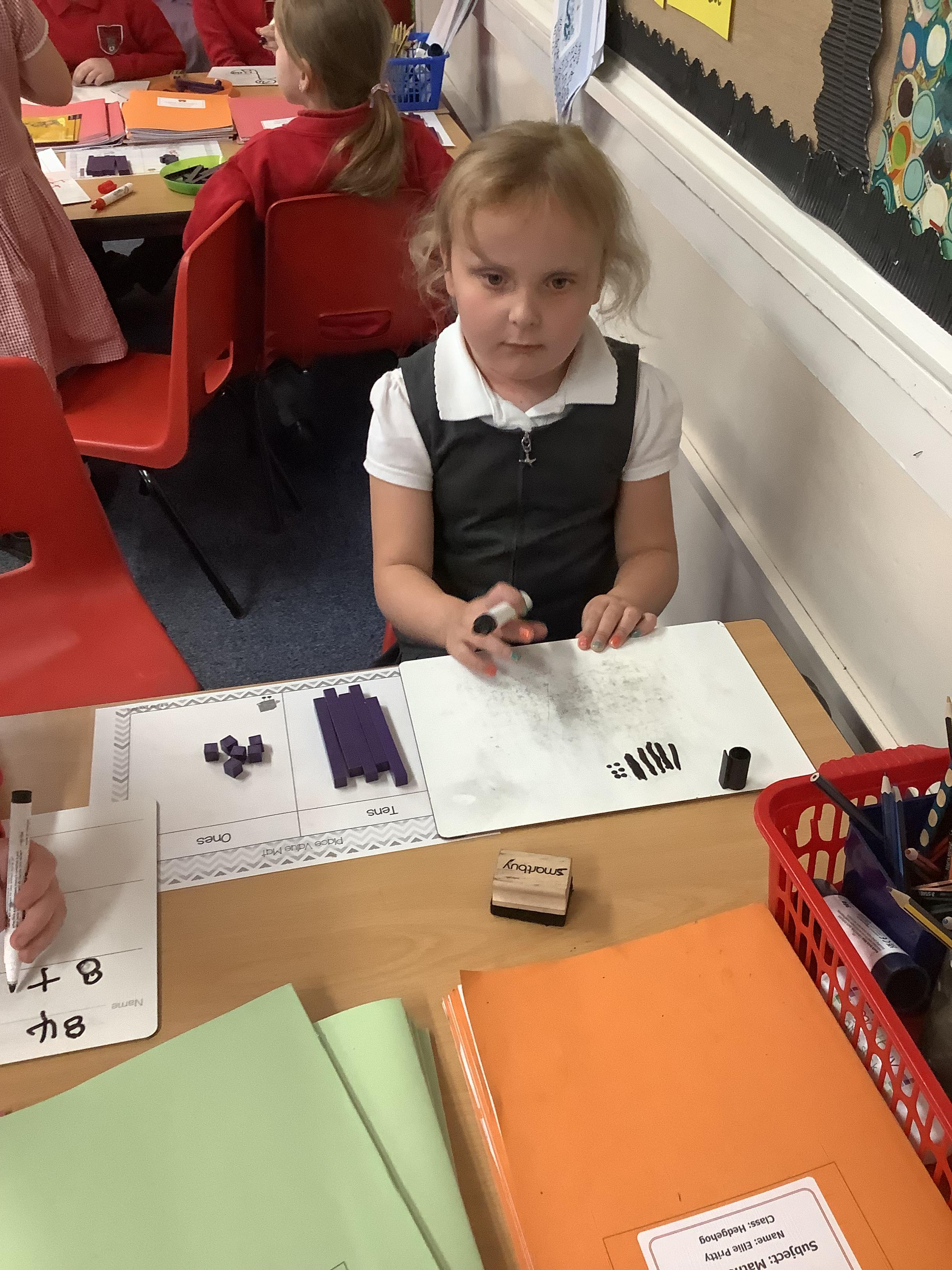 In Maths the Year 2 children were exploring place value grids and how to use them, they identified the ones in a number and the the tens. They then built the number.