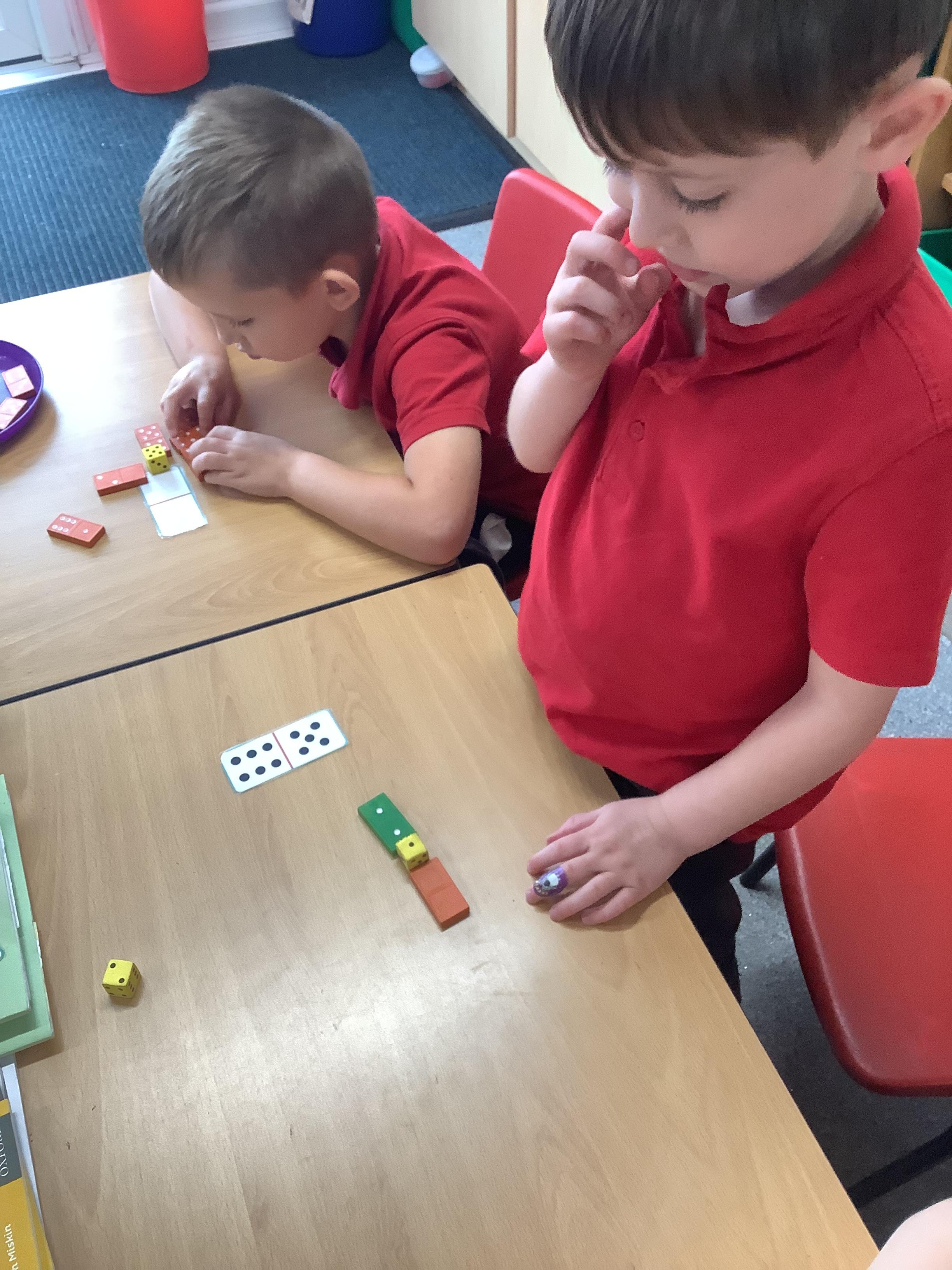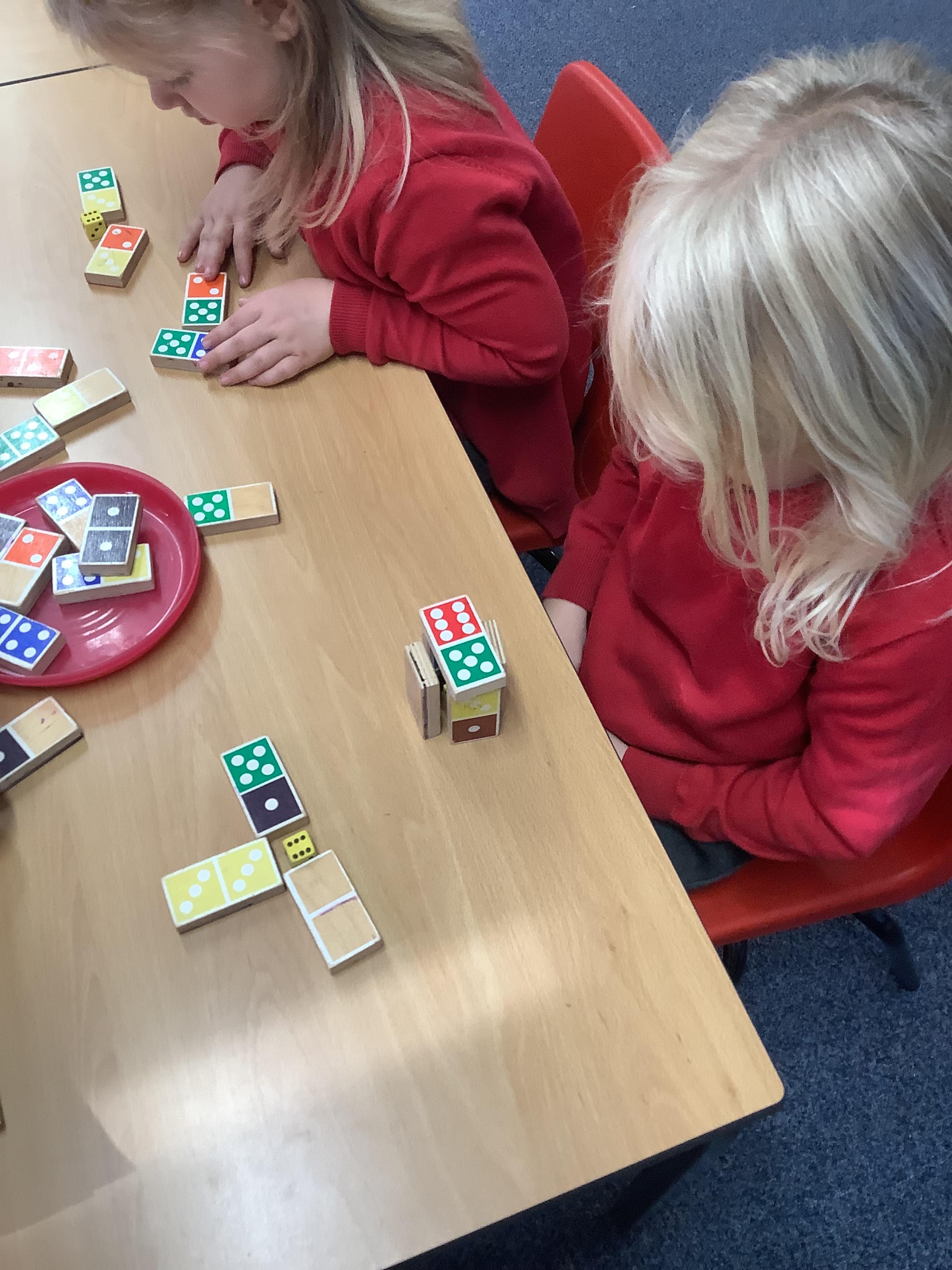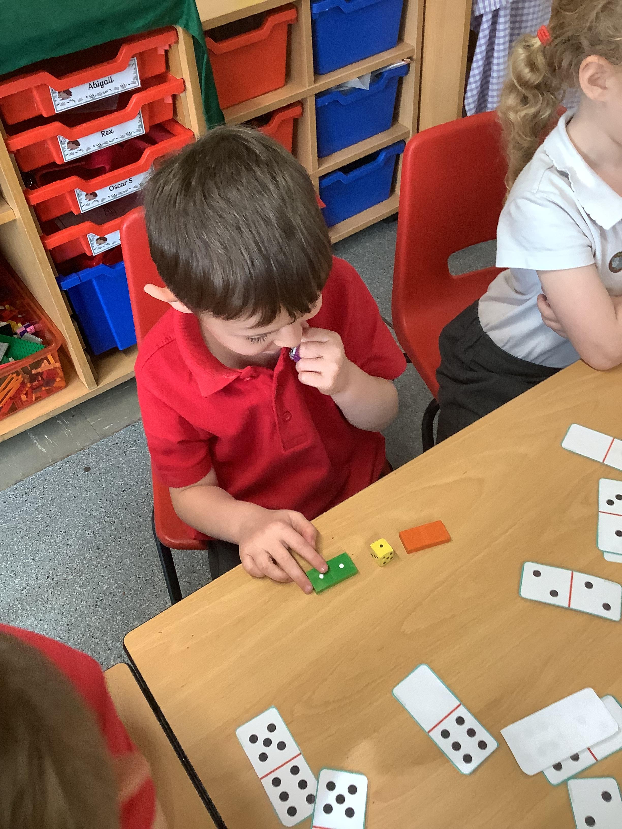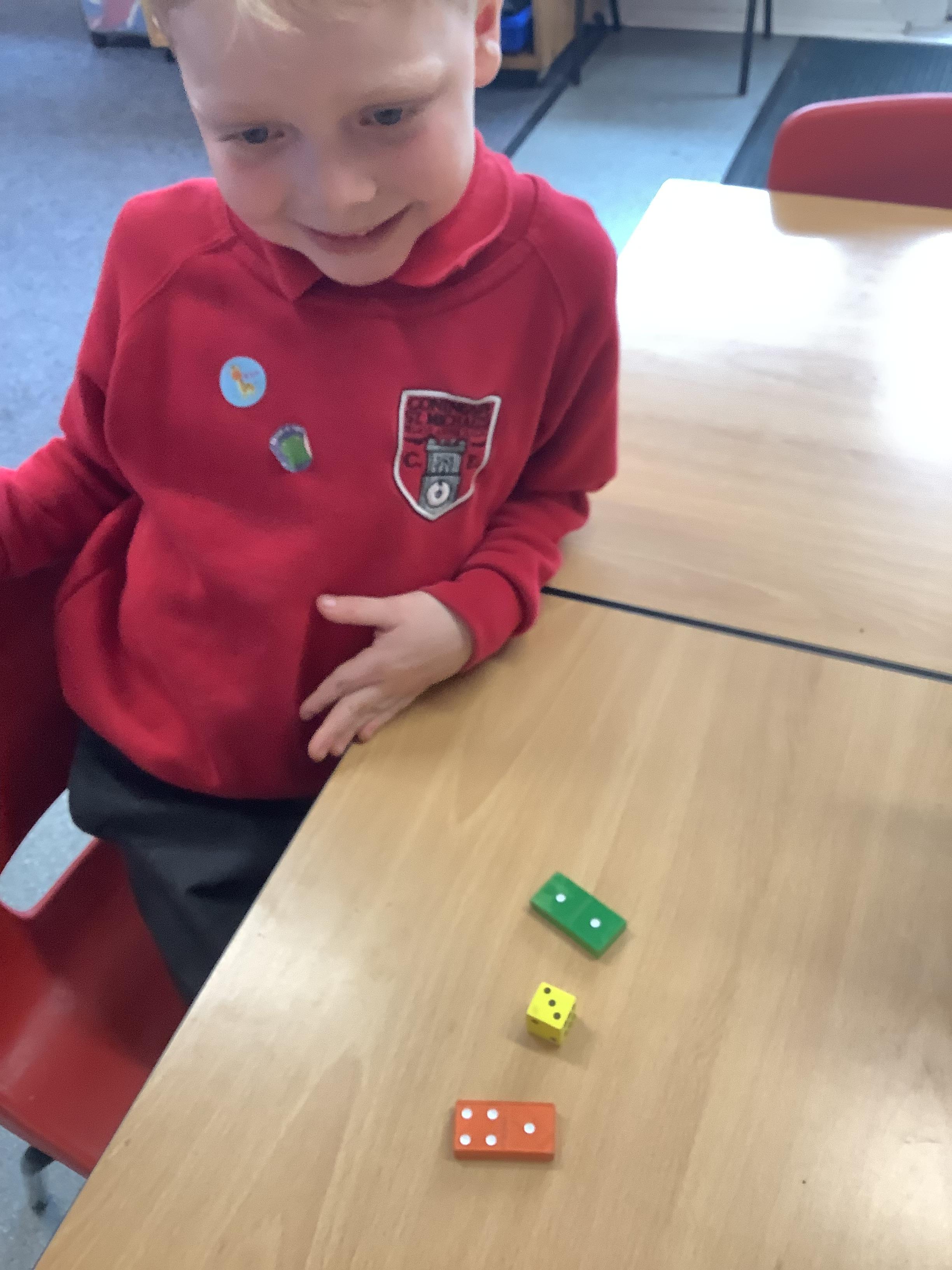 In Maths we were all comparing numbers using mathematical language like more, fewer, the same, equal, unequal, greater than, less than etc. The Year 2 children built 2 digit numbers with a partner and then verbally compared them. Our Year 1 children rolled the dice, found a domino that was more than that number, a domino that was less than that number and a domino that was the same as that number.