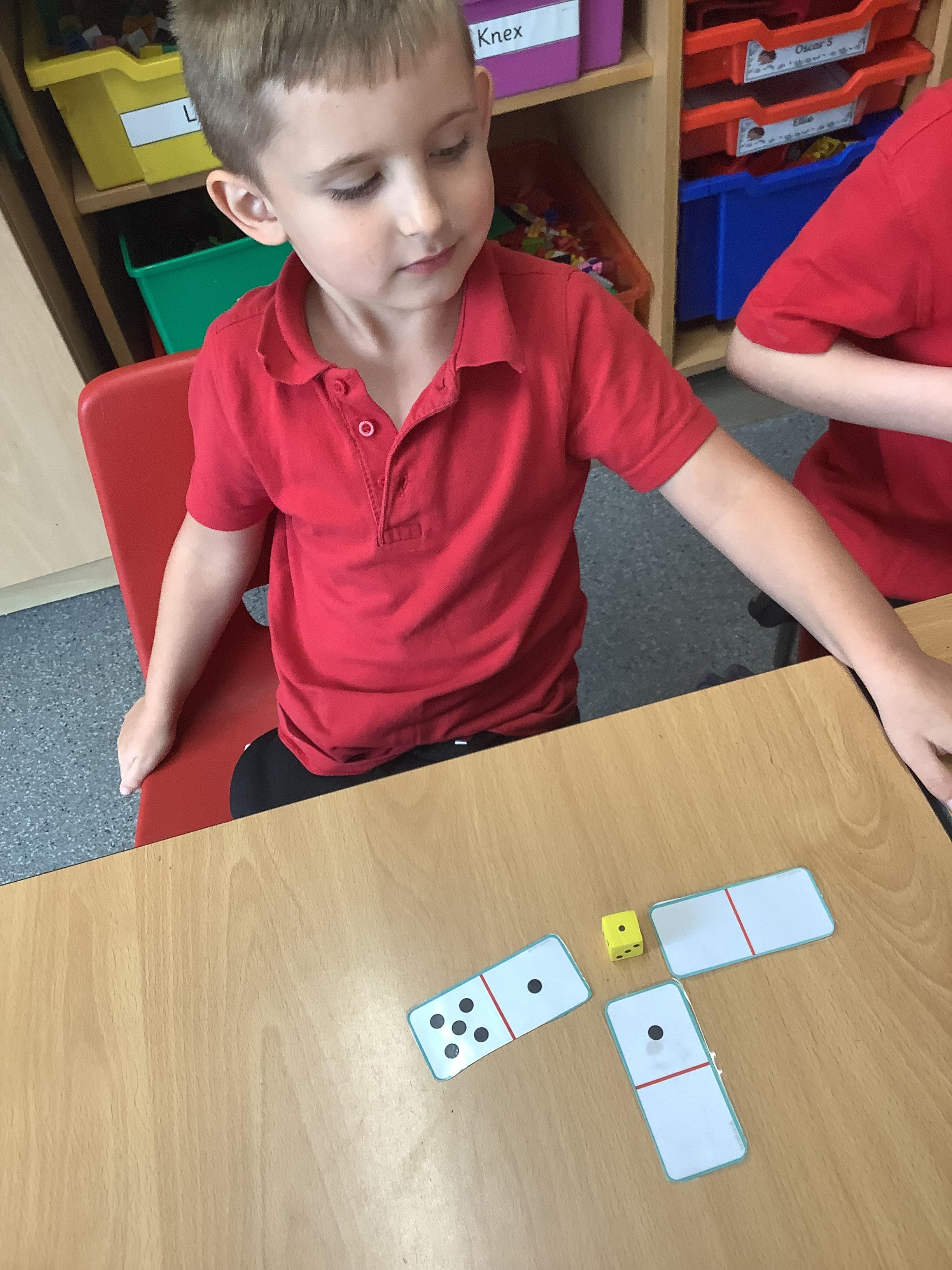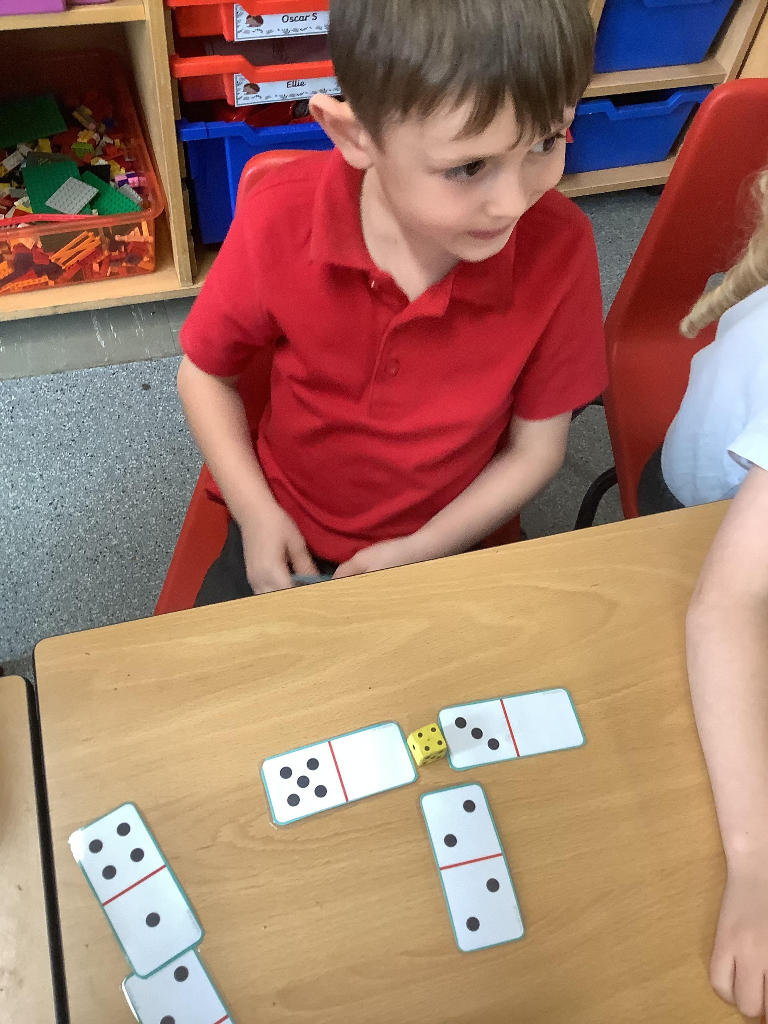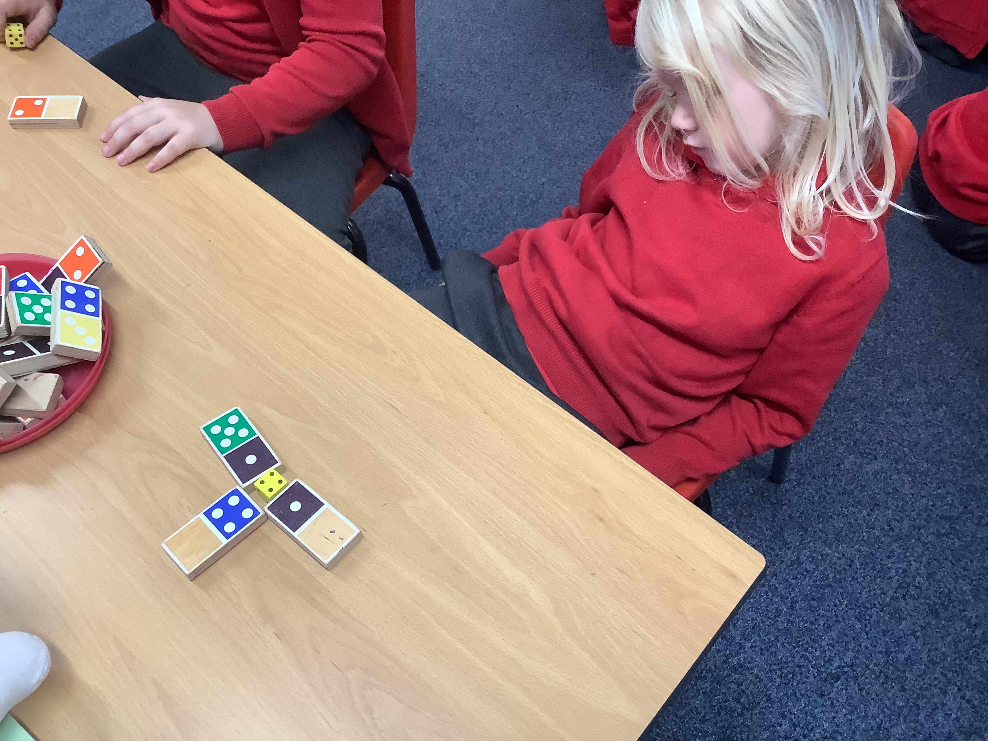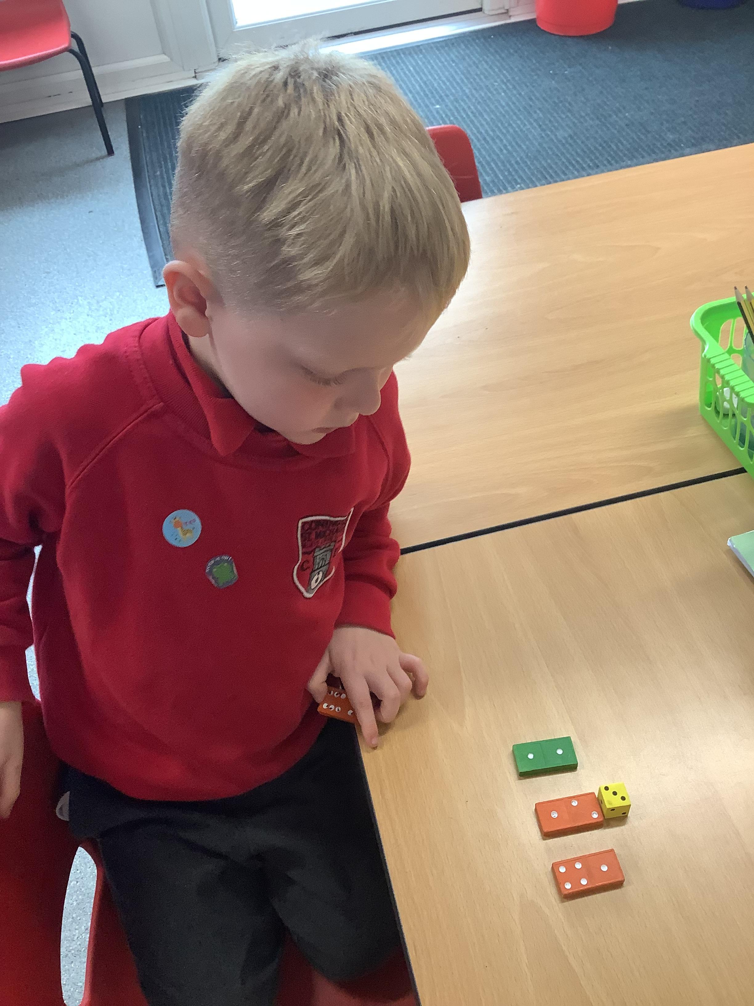 In Maths we were all comparing numbers using mathematical language like more, fewer, the same, equal, unequal, greater than, less than etc. The Year 2 children built 2 digit numbers with a partner and then verbally compared them. Our Year 1 children rolled the dice, found a domino that was more than that number, a domino that was less than that number and a domino that was the same as that number.