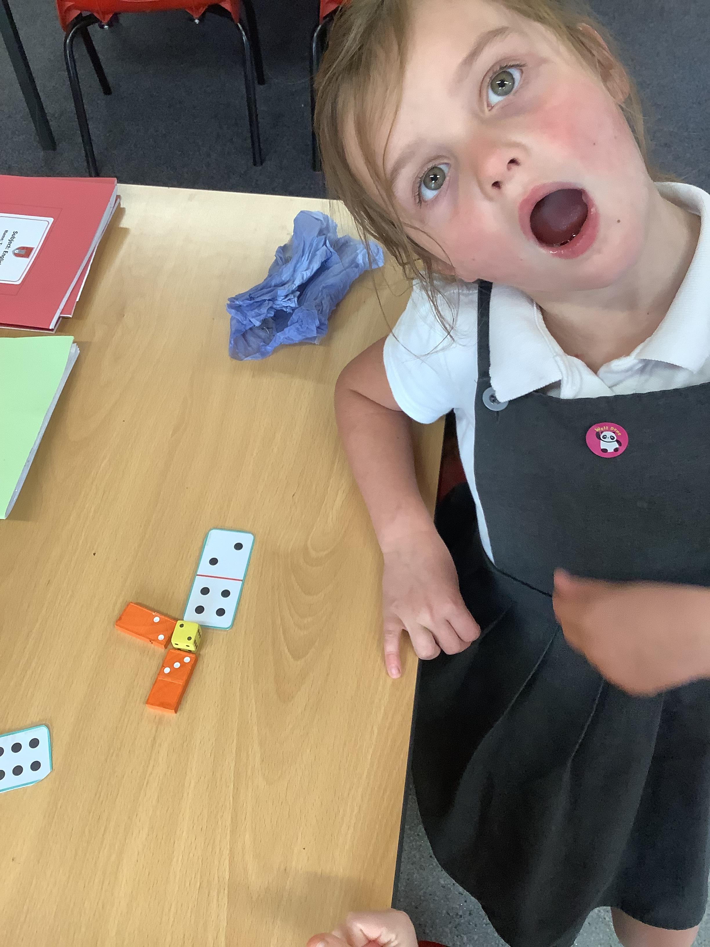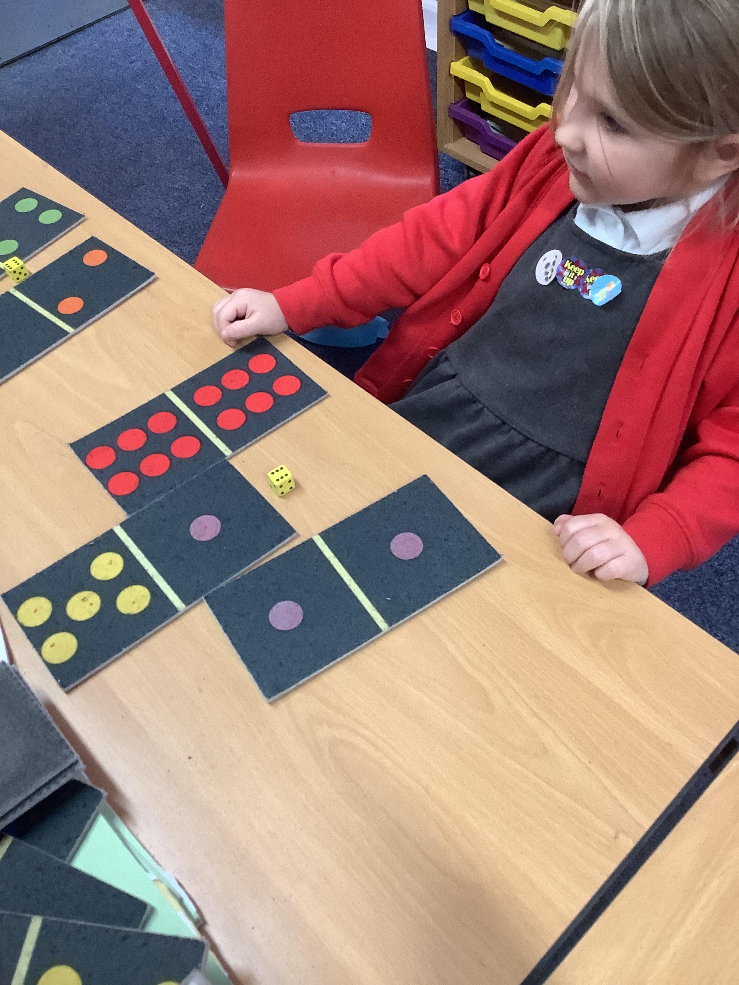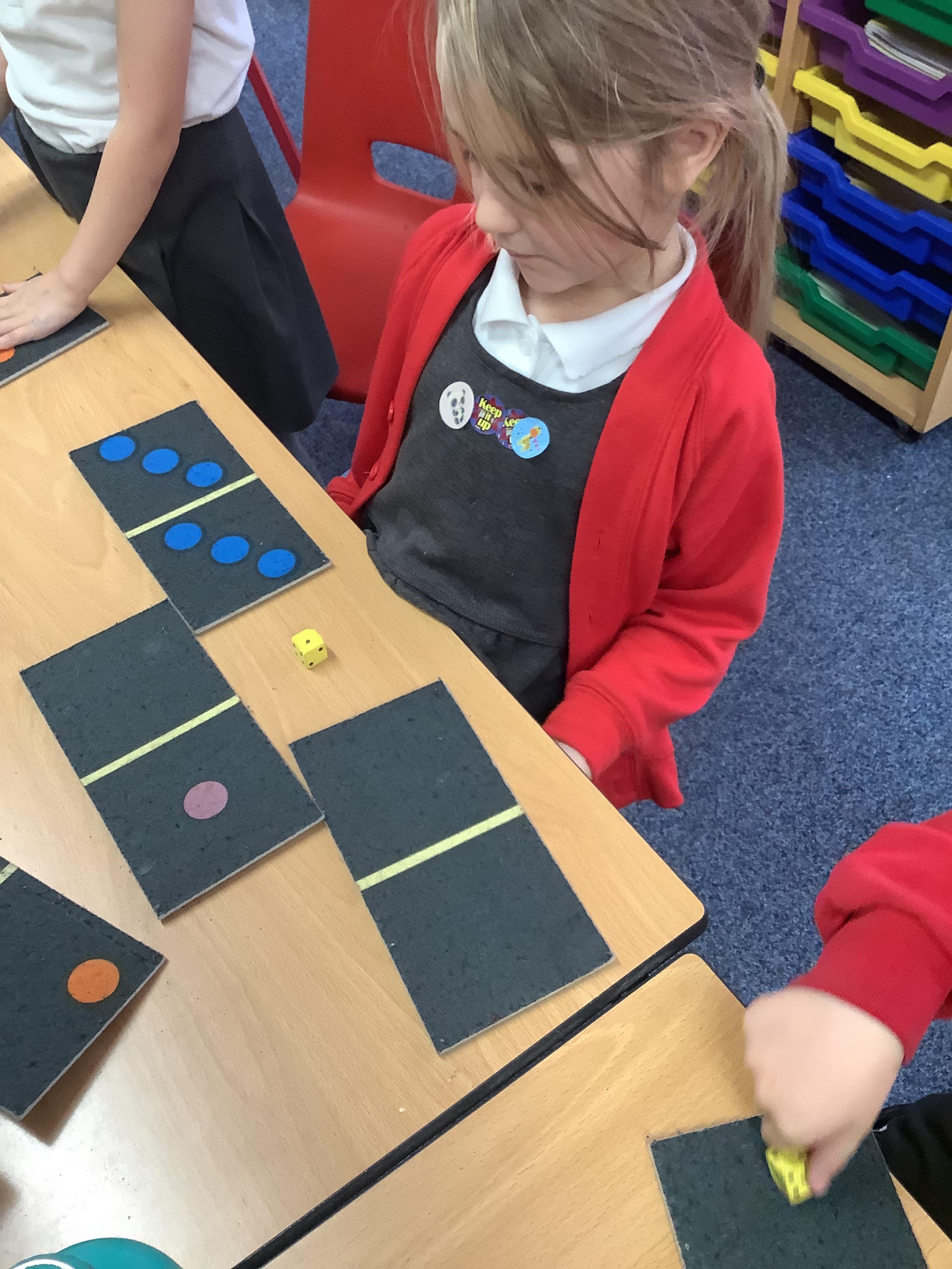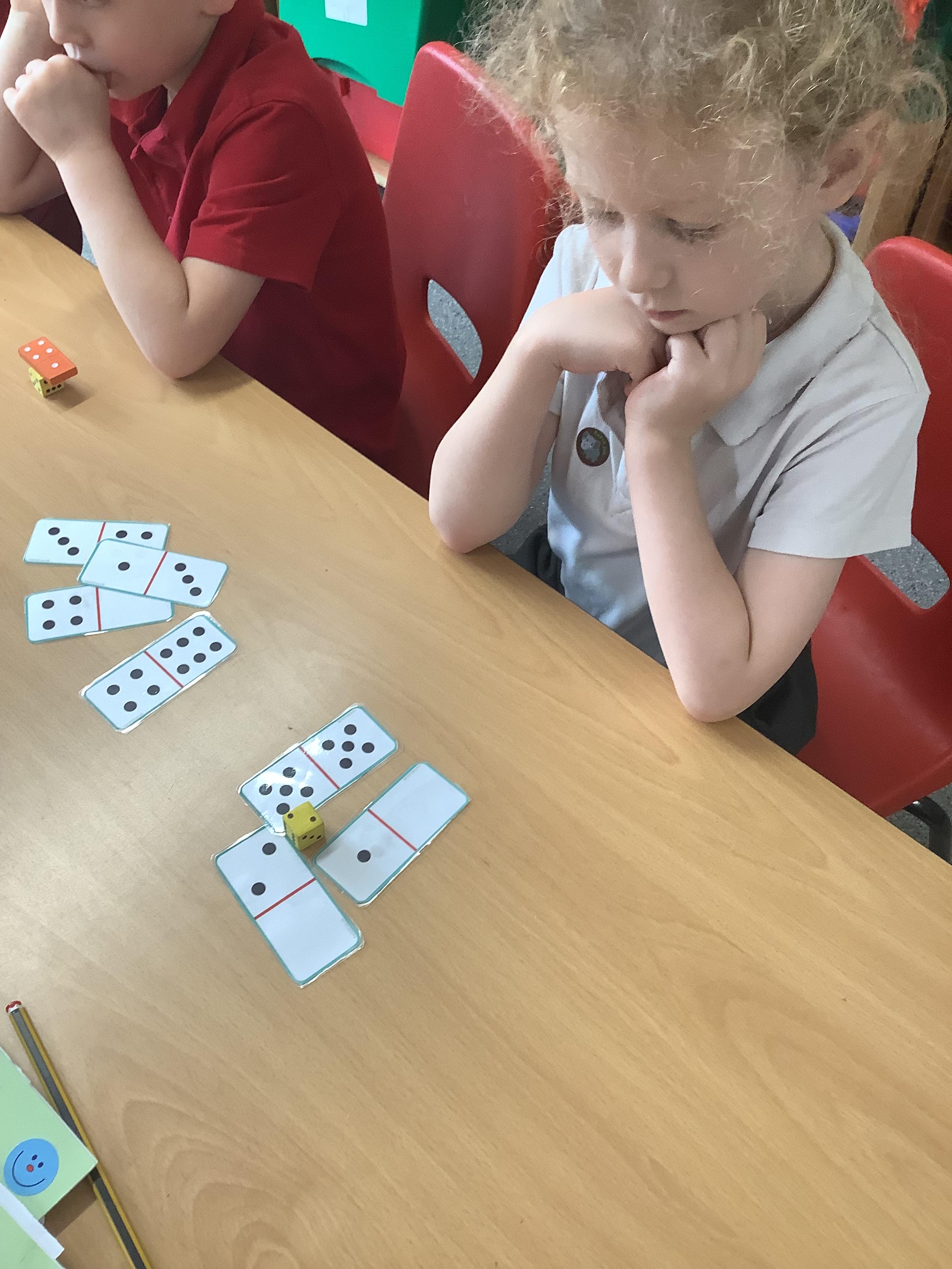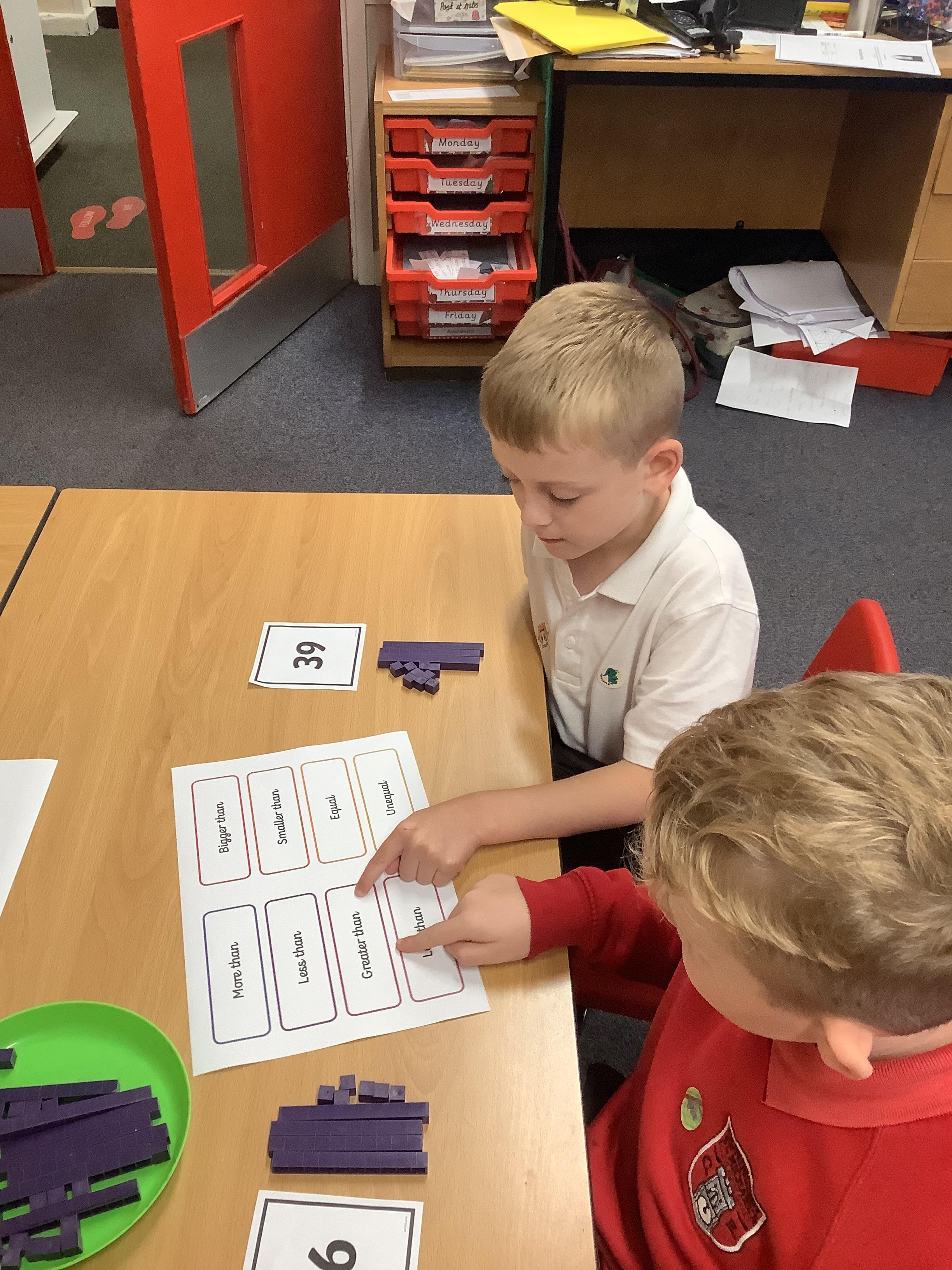 In Maths we were all comparing numbers using mathematical language like more, fewer, the same, equal, unequal, greater than, less than etc. The Year 2 children built 2 digit numbers with a partner and then verbally compared them. Our Year 1 children rolled the dice, found a domino that was more than that number, a domino that was less than that number and a domino that was the same as that number.