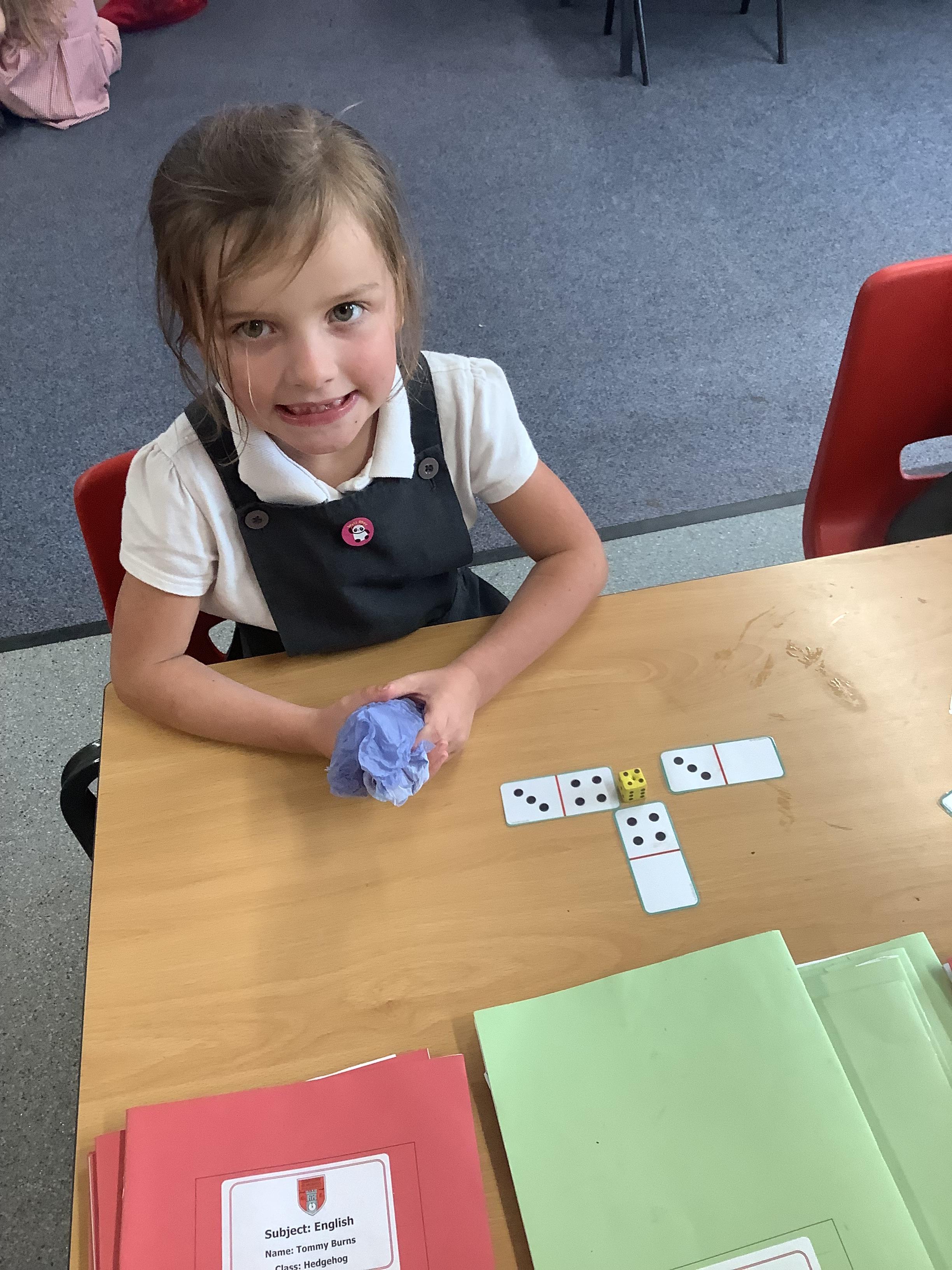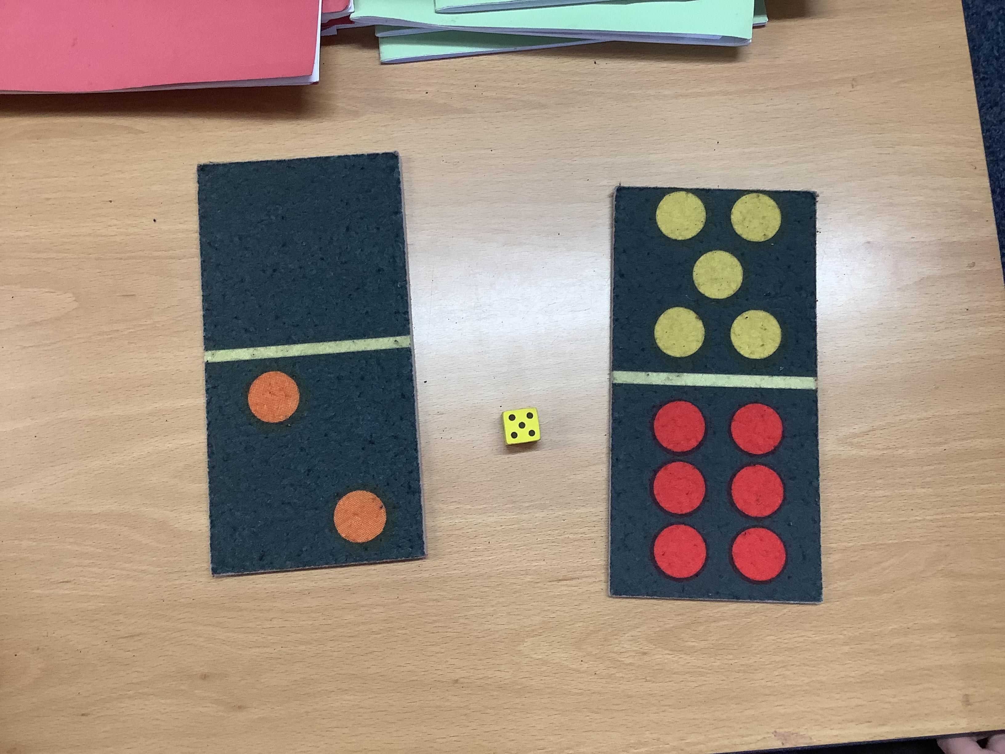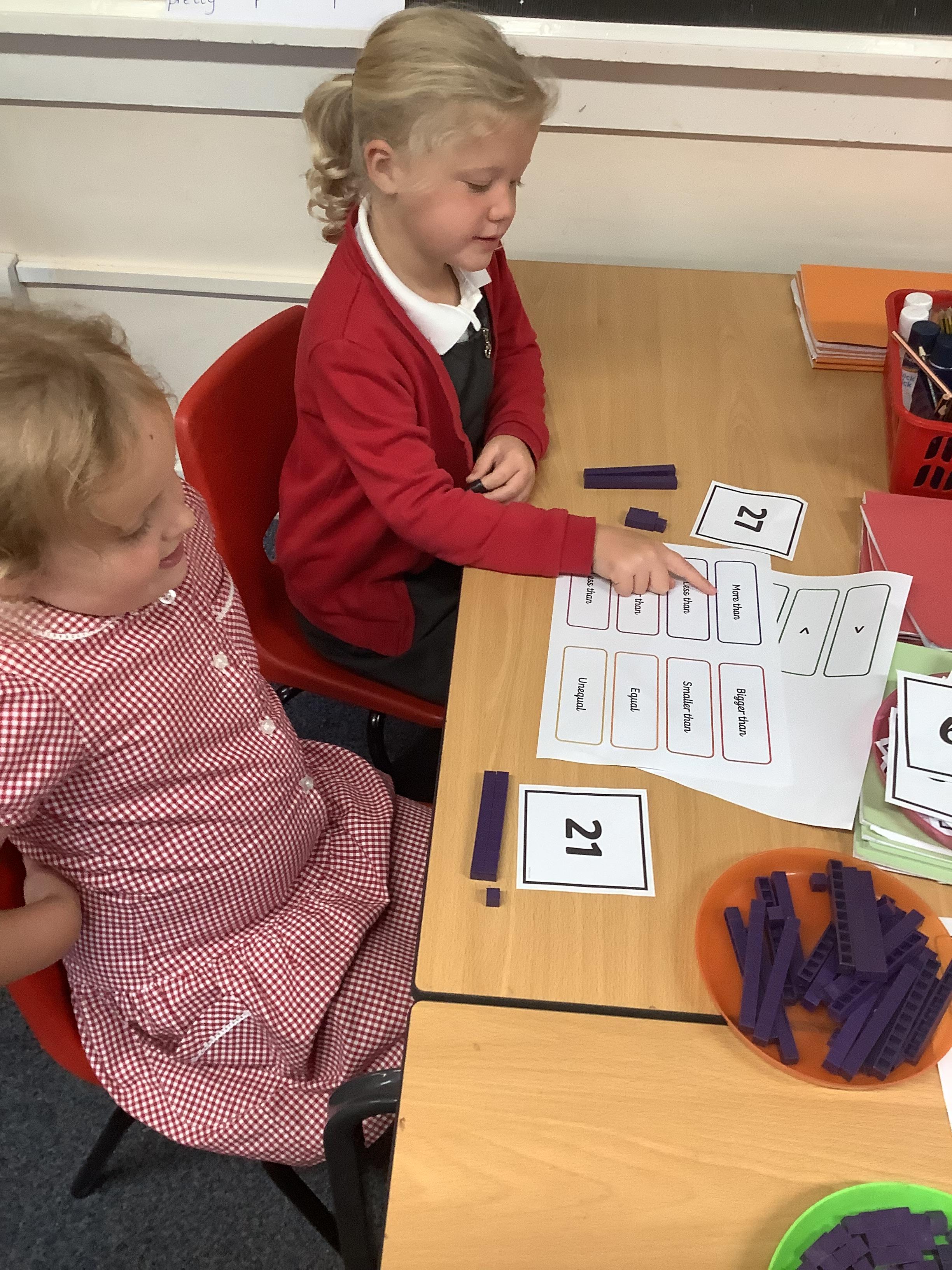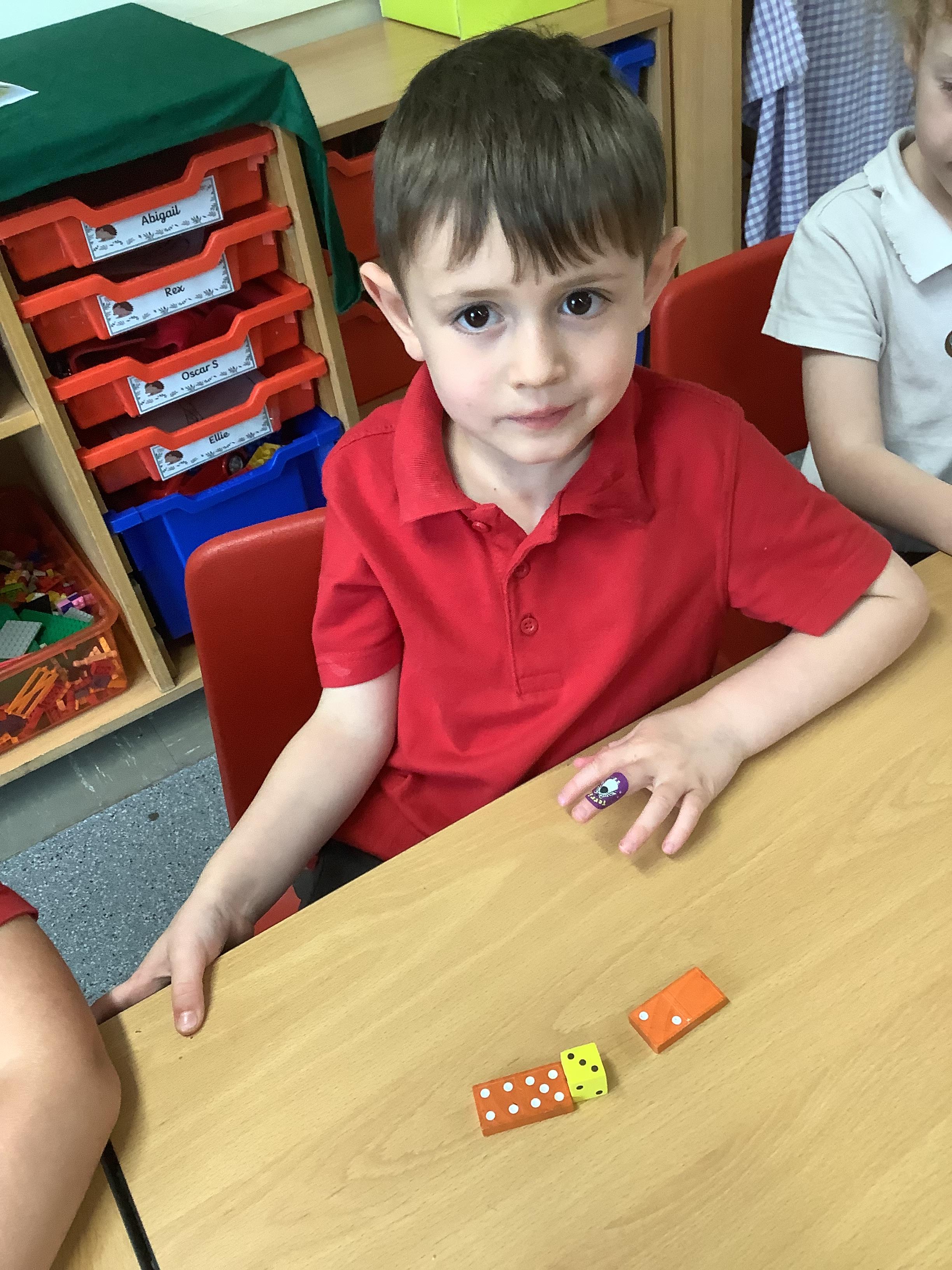 In Maths we were all comparing numbers using mathematical language like more, fewer, the same, equal, unequal, greater than, less than etc. The Year 2 children built 2 digit numbers with a partner and then verbally compared them. Our Year 1 children rolled the dice, found a domino that was more than that number, a domino that was less than that number and a domino that was the same as that number.