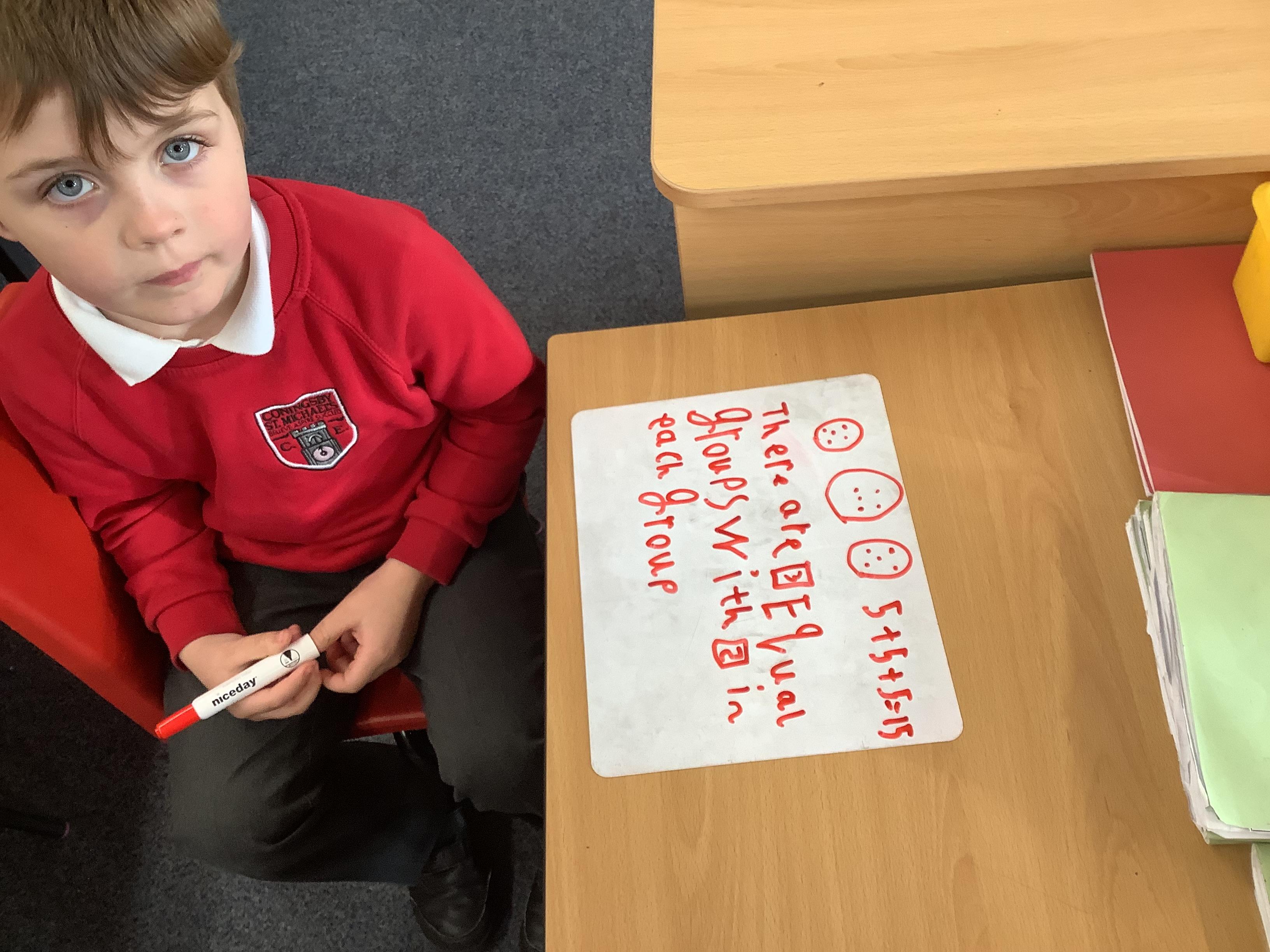 In Maths this week, we have started to explore multiplication by making and adding equal groups.