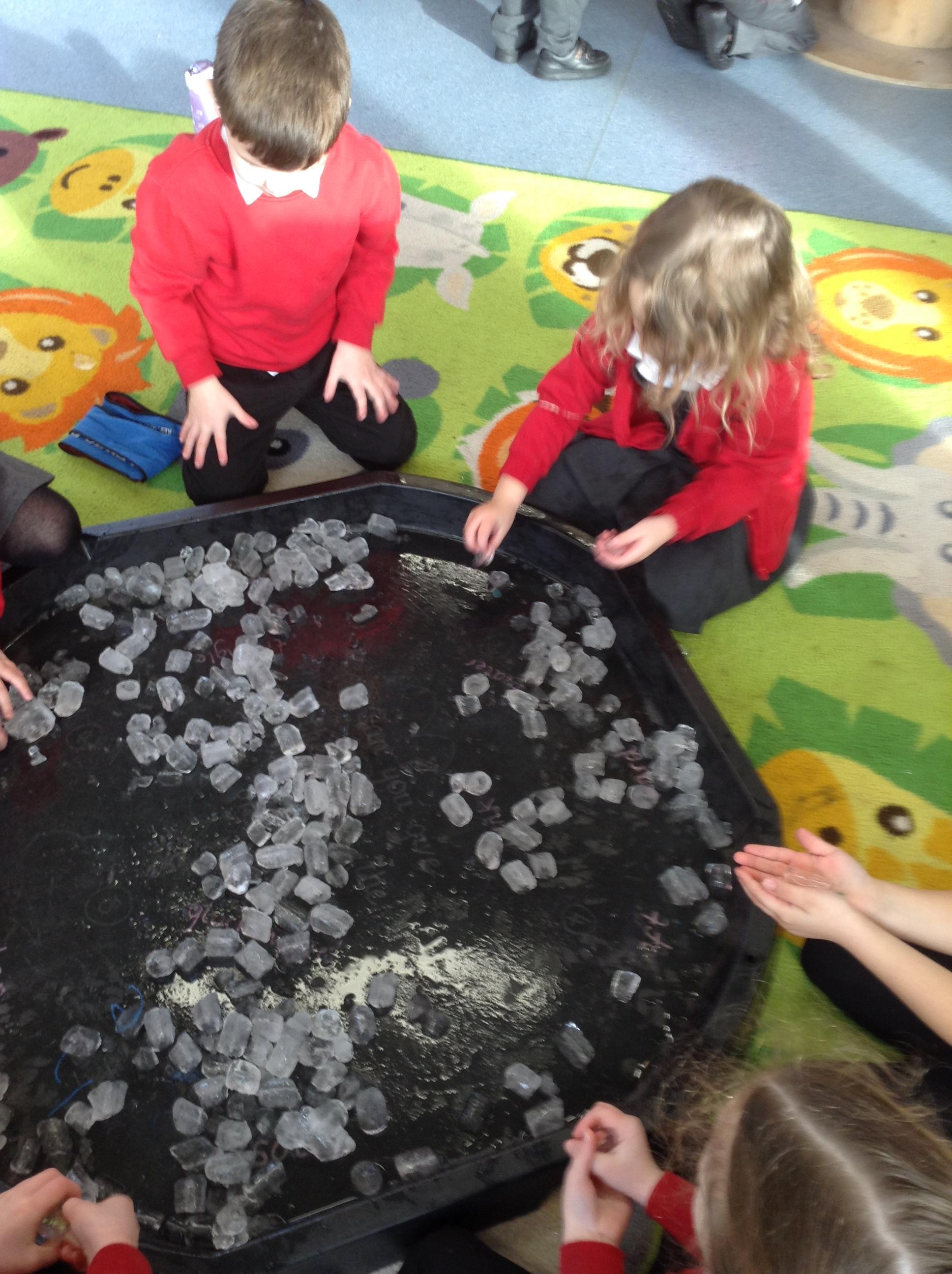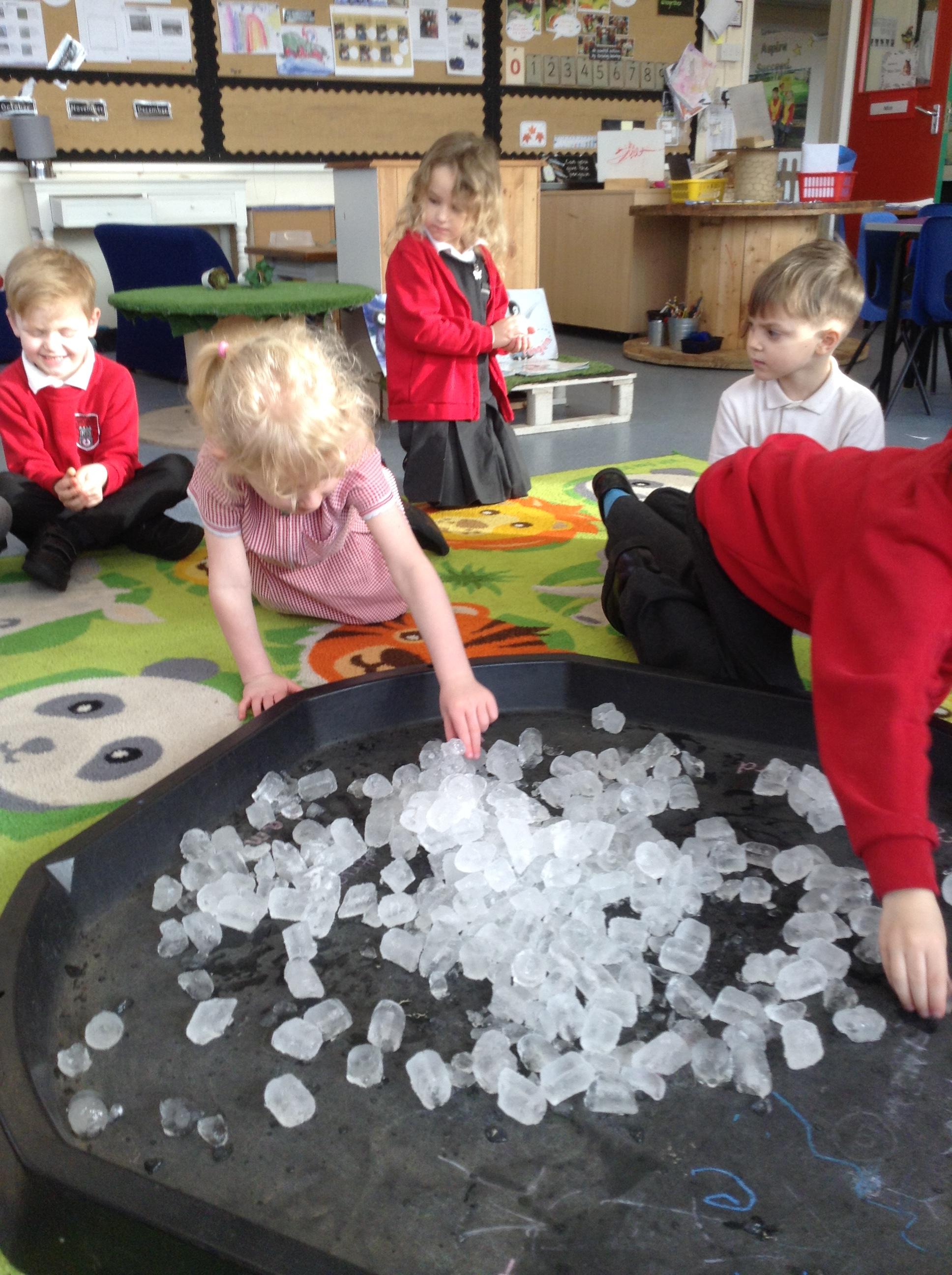 In science this week we have been investigating the question:  What is ice?  The children have enjoyed holding ice cubes and talking about what is happening to them.