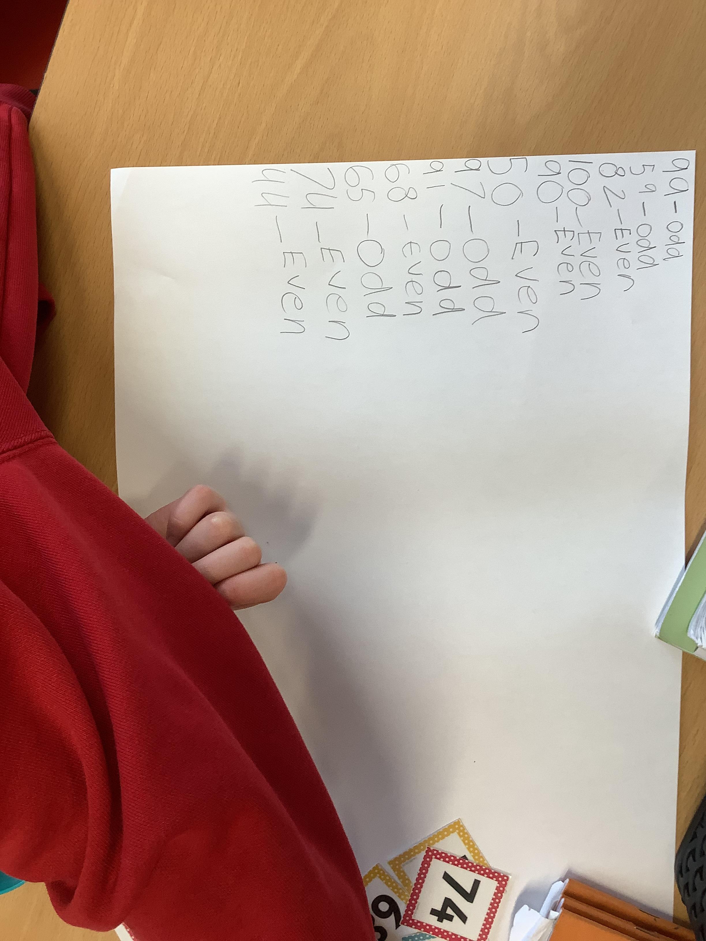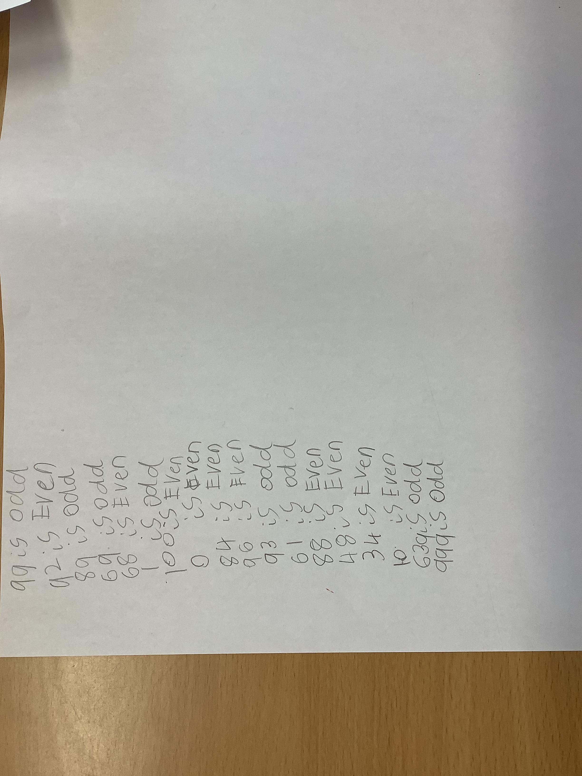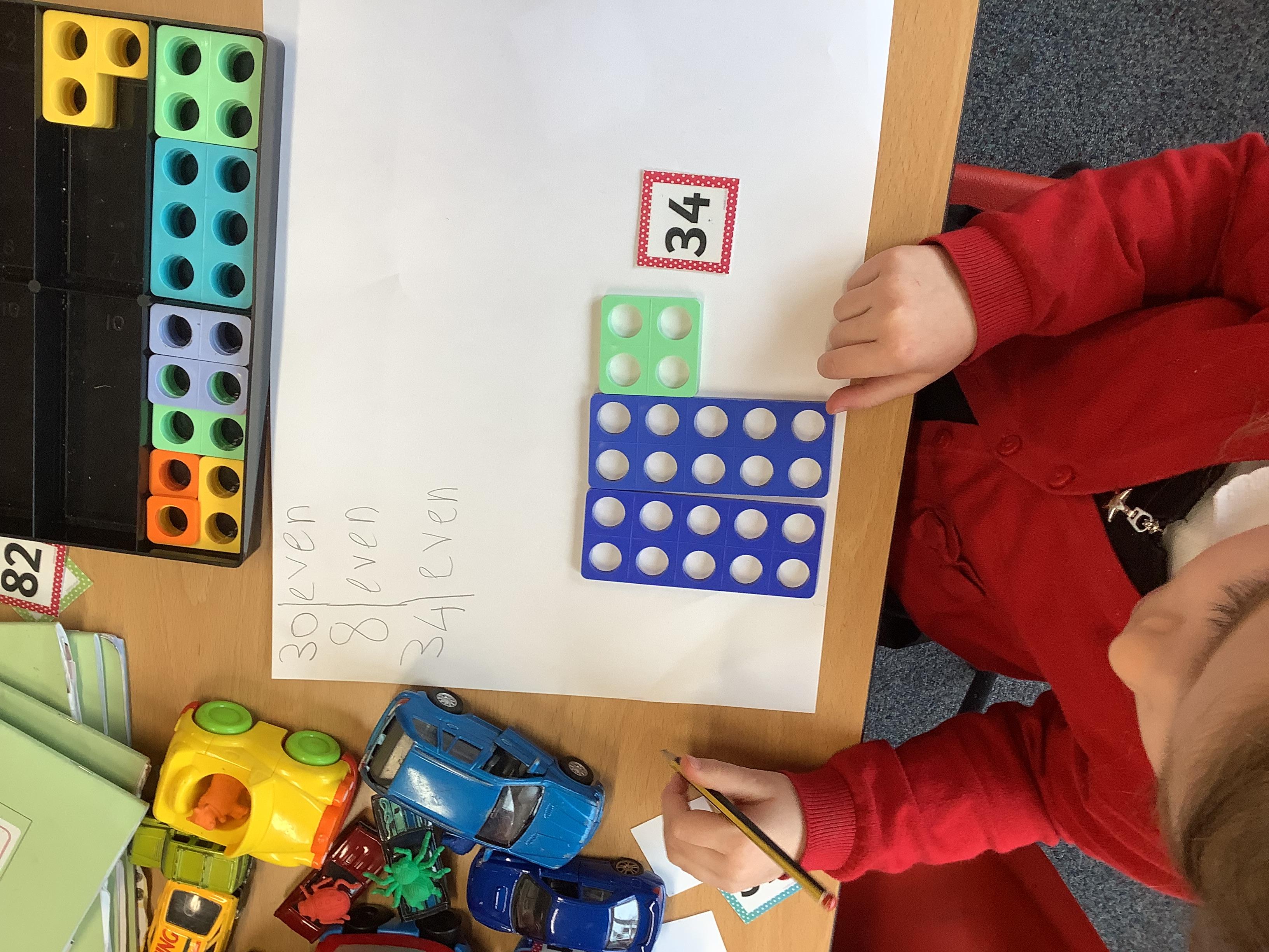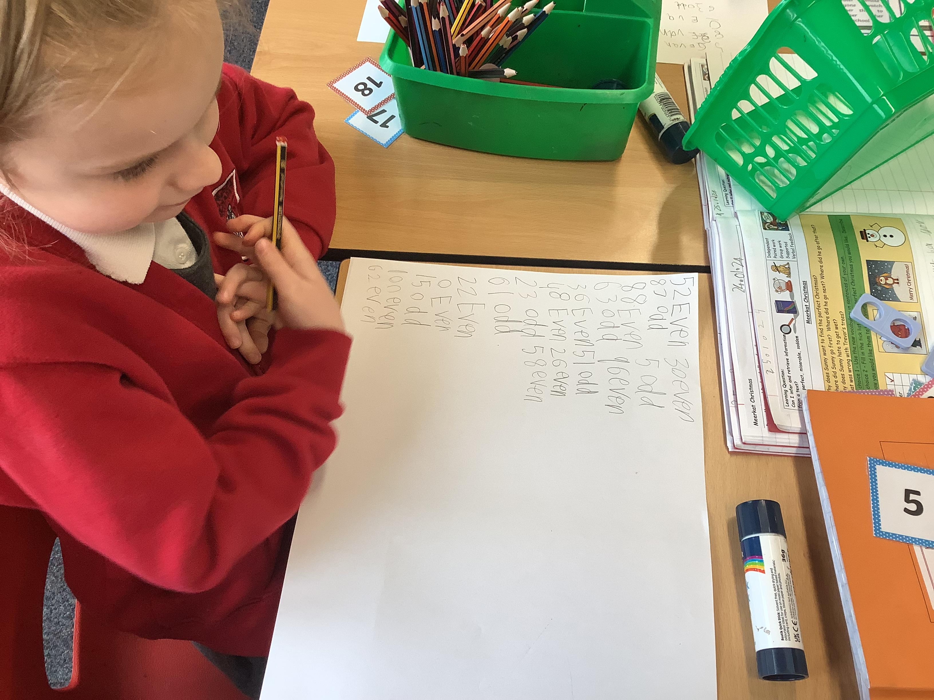 Year 2 children have been looking at odd and even numbers, they had to prove which numbers were odd and why.