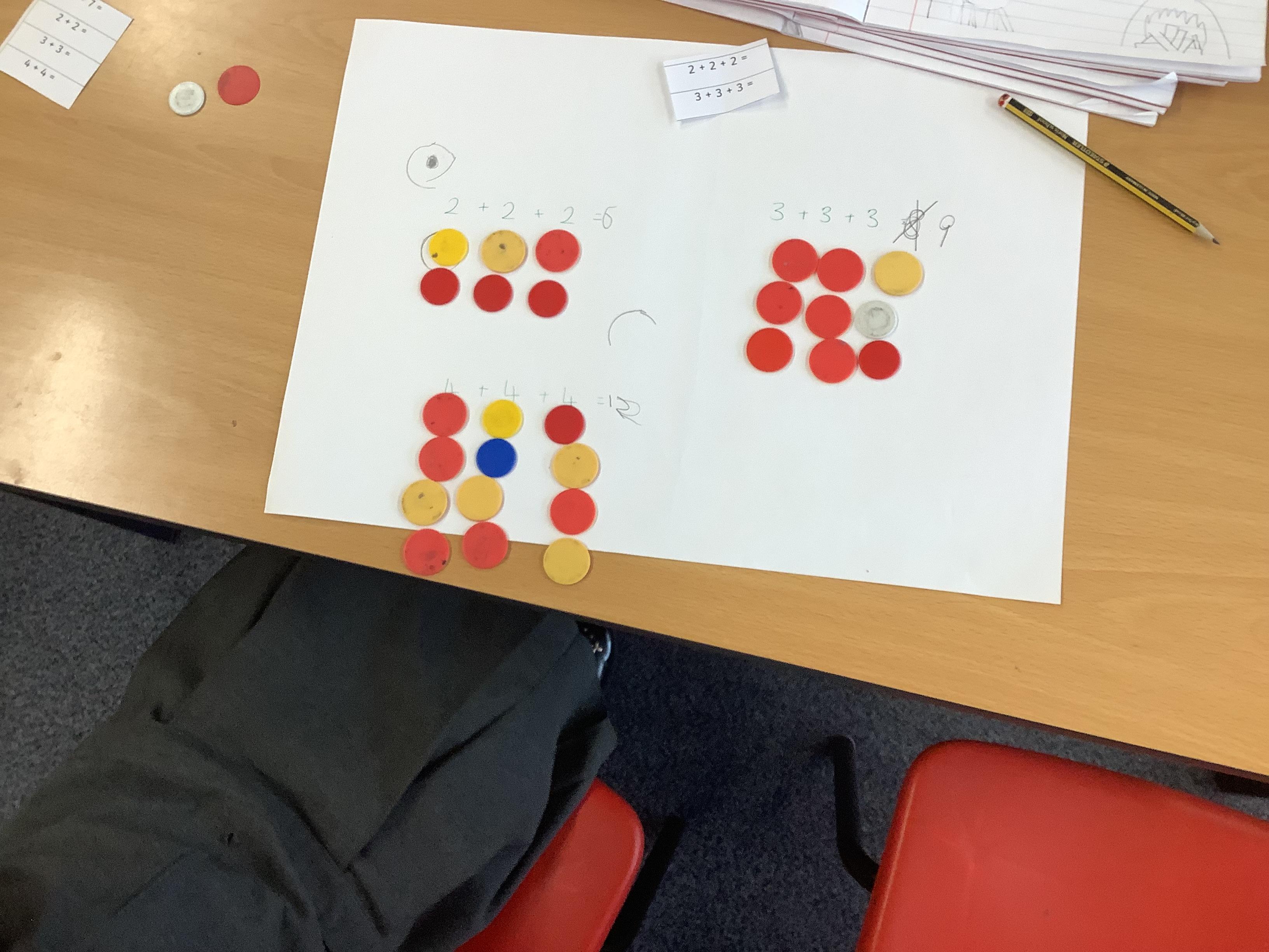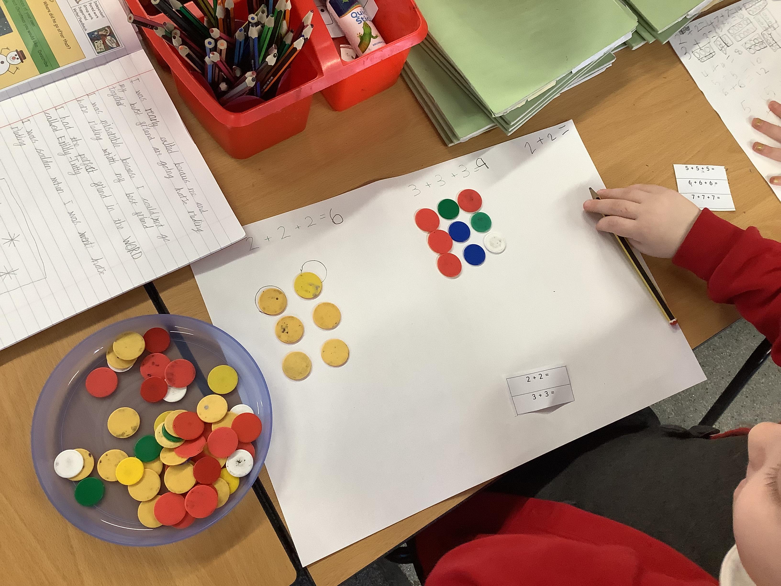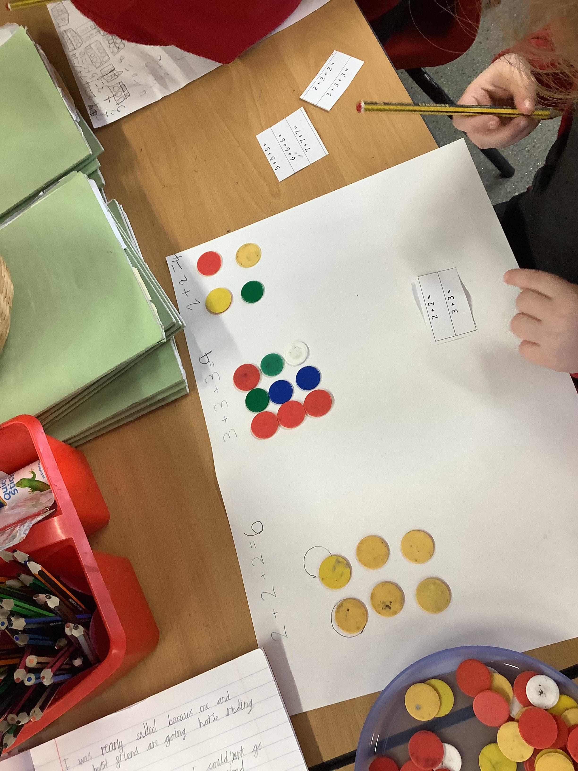 Year 1 children have been looking at repeated calculations and seeing if they can make arrays with them.