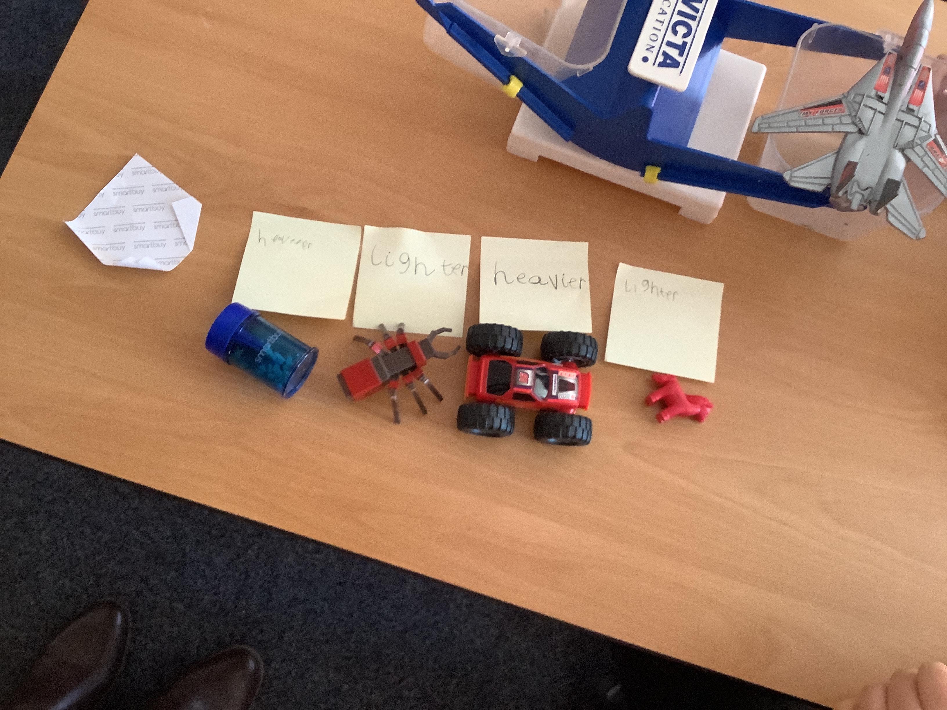 In Maths we used the balance to work out which objects were heaviest and lightest. We then ordered objects by weight.