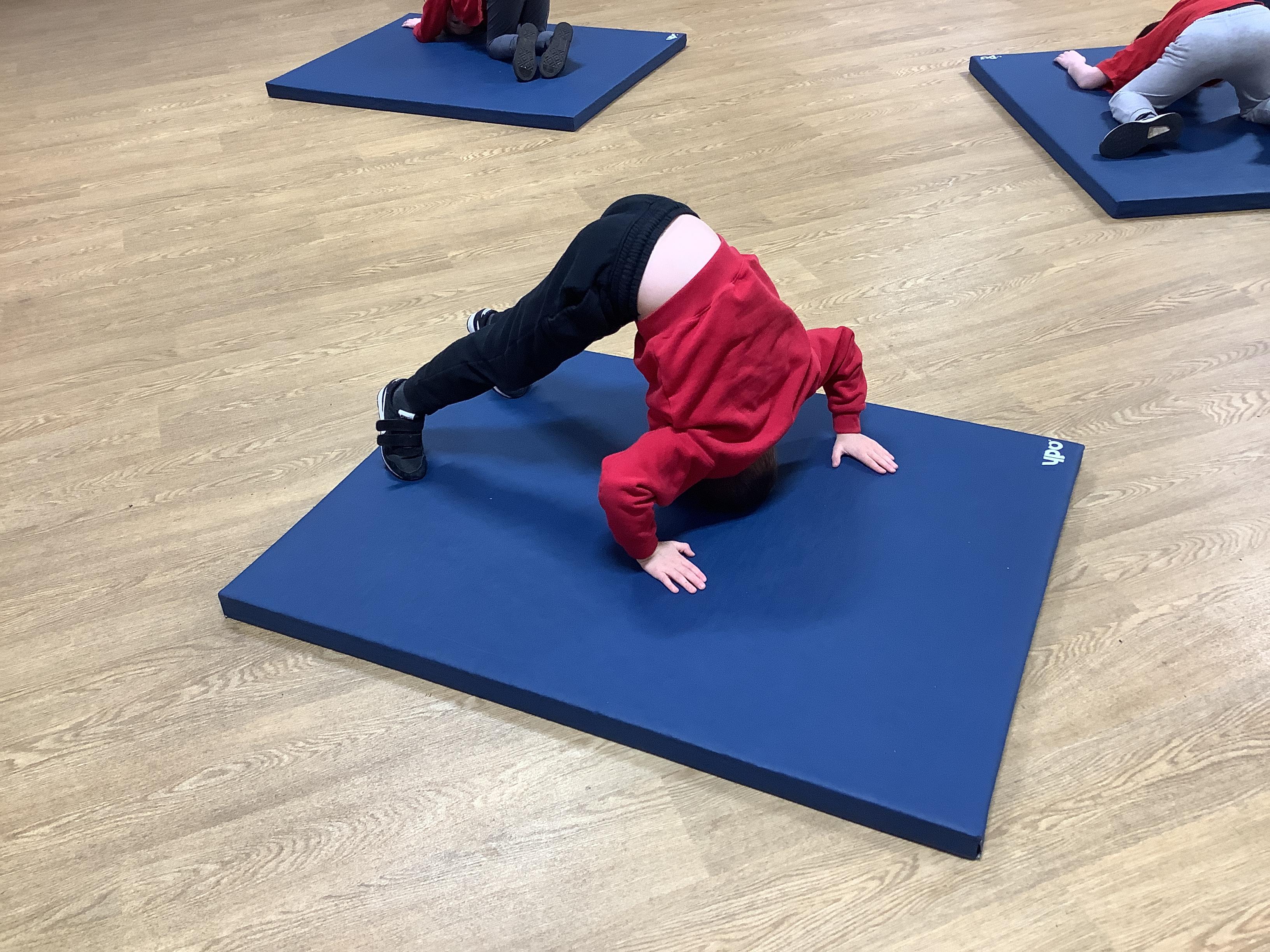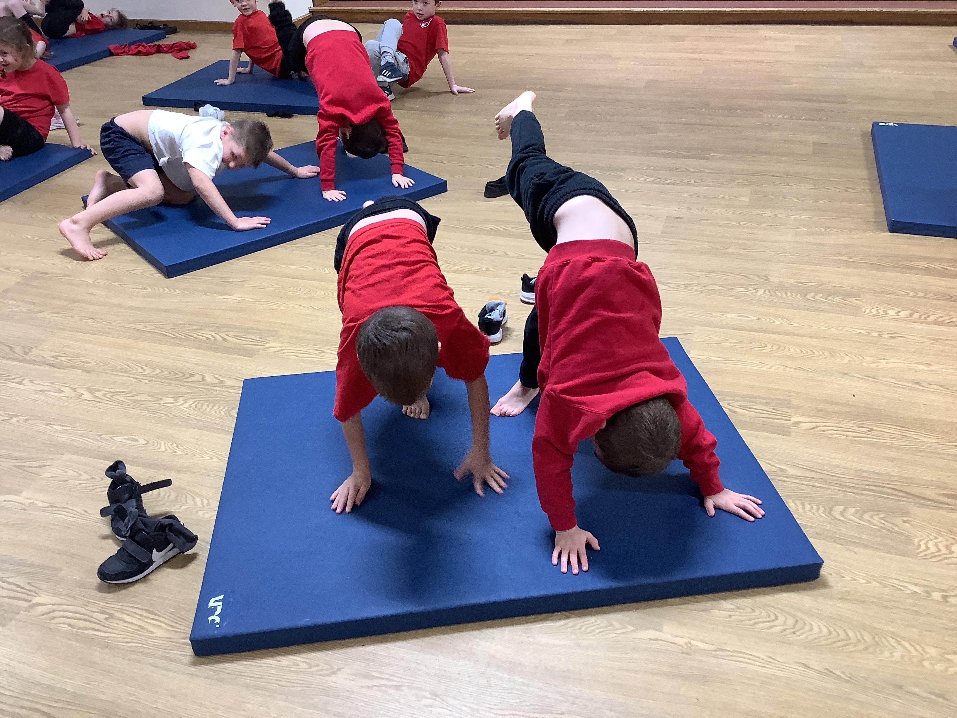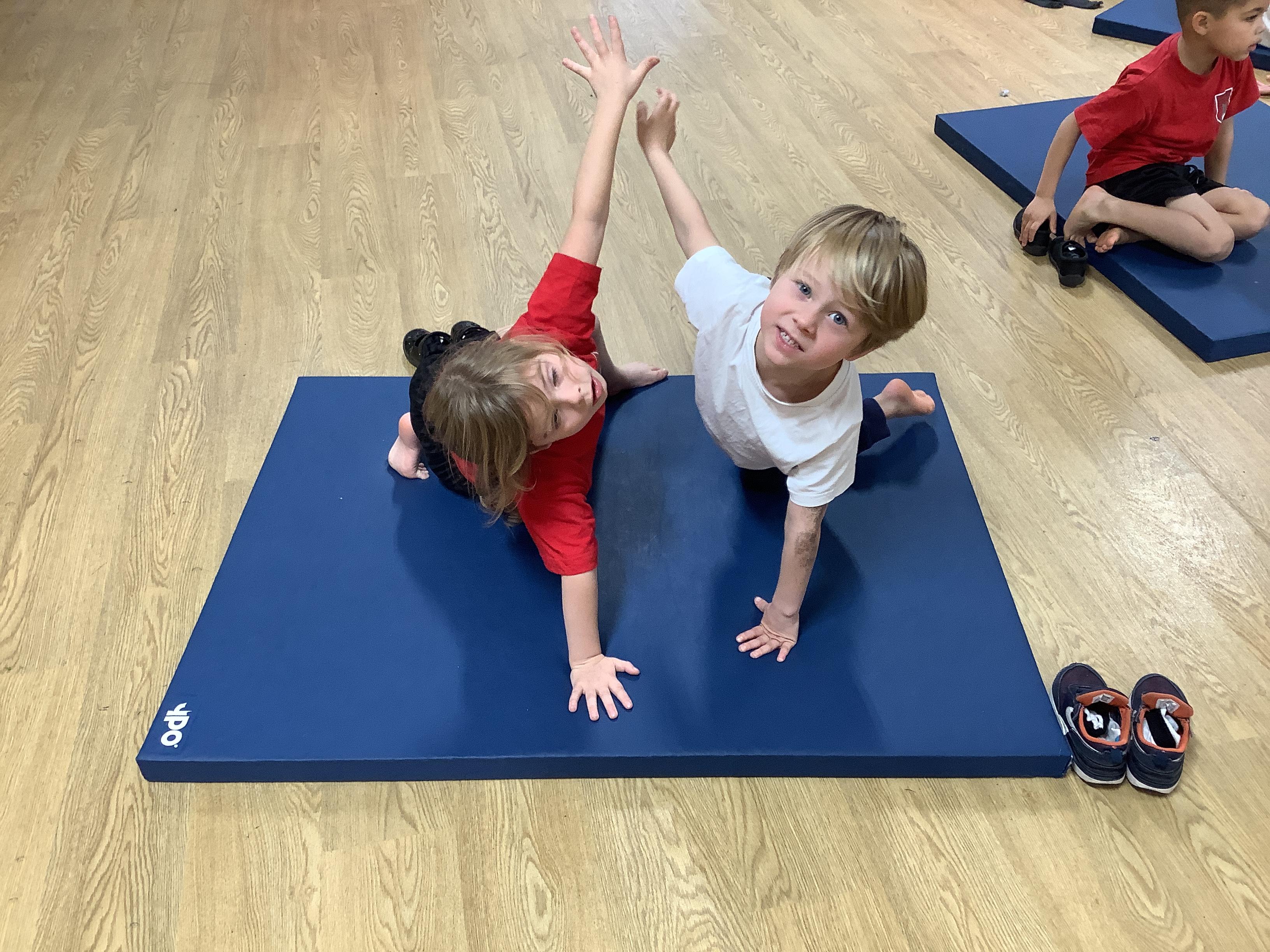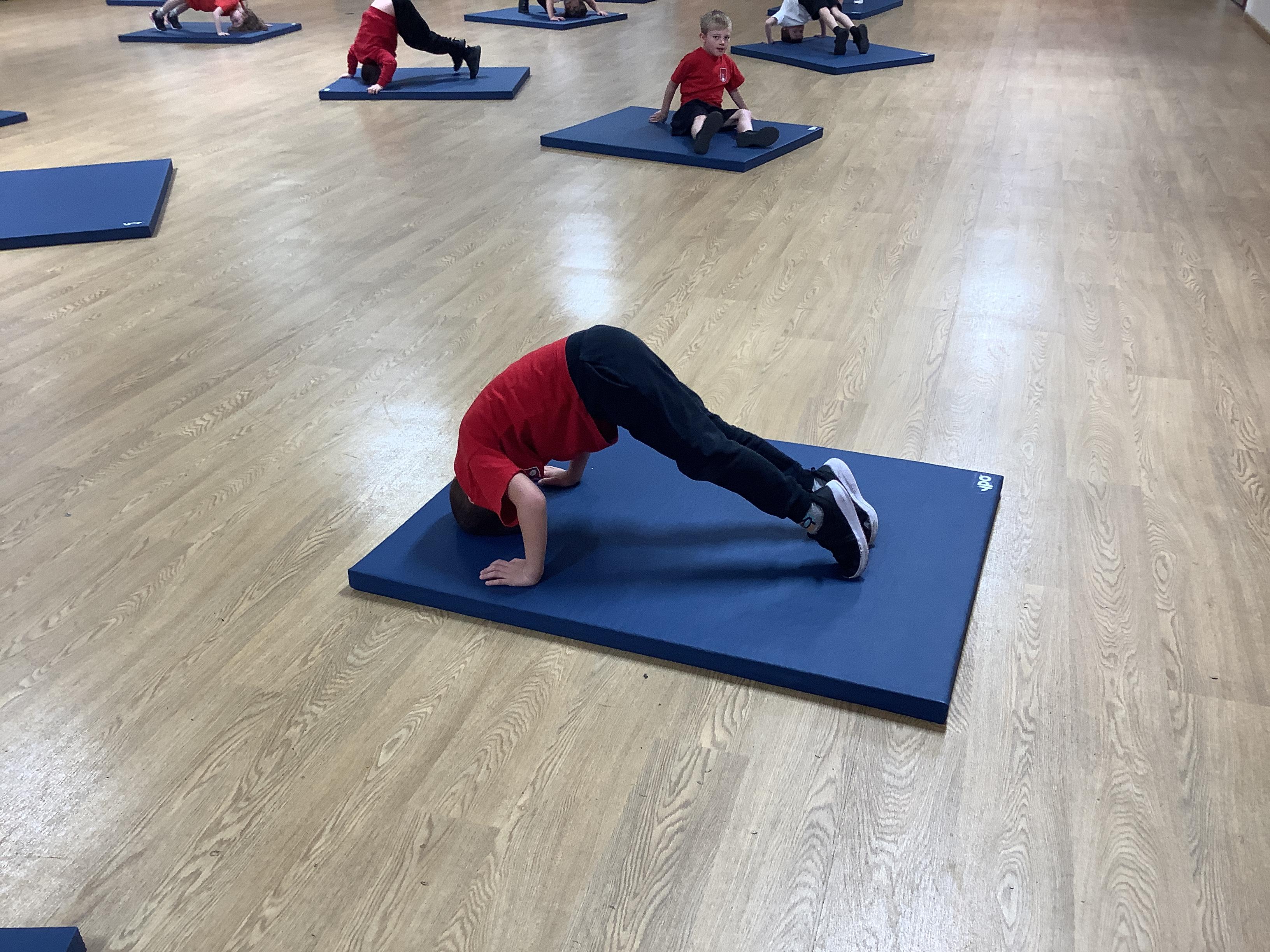 In PE with Mrs Phillips we explored balancing on different parts of our bodies. We had to use one point (like a hand, elbow, foot, head etc), two points, three points etc. We worked brilliantly with our partner. .