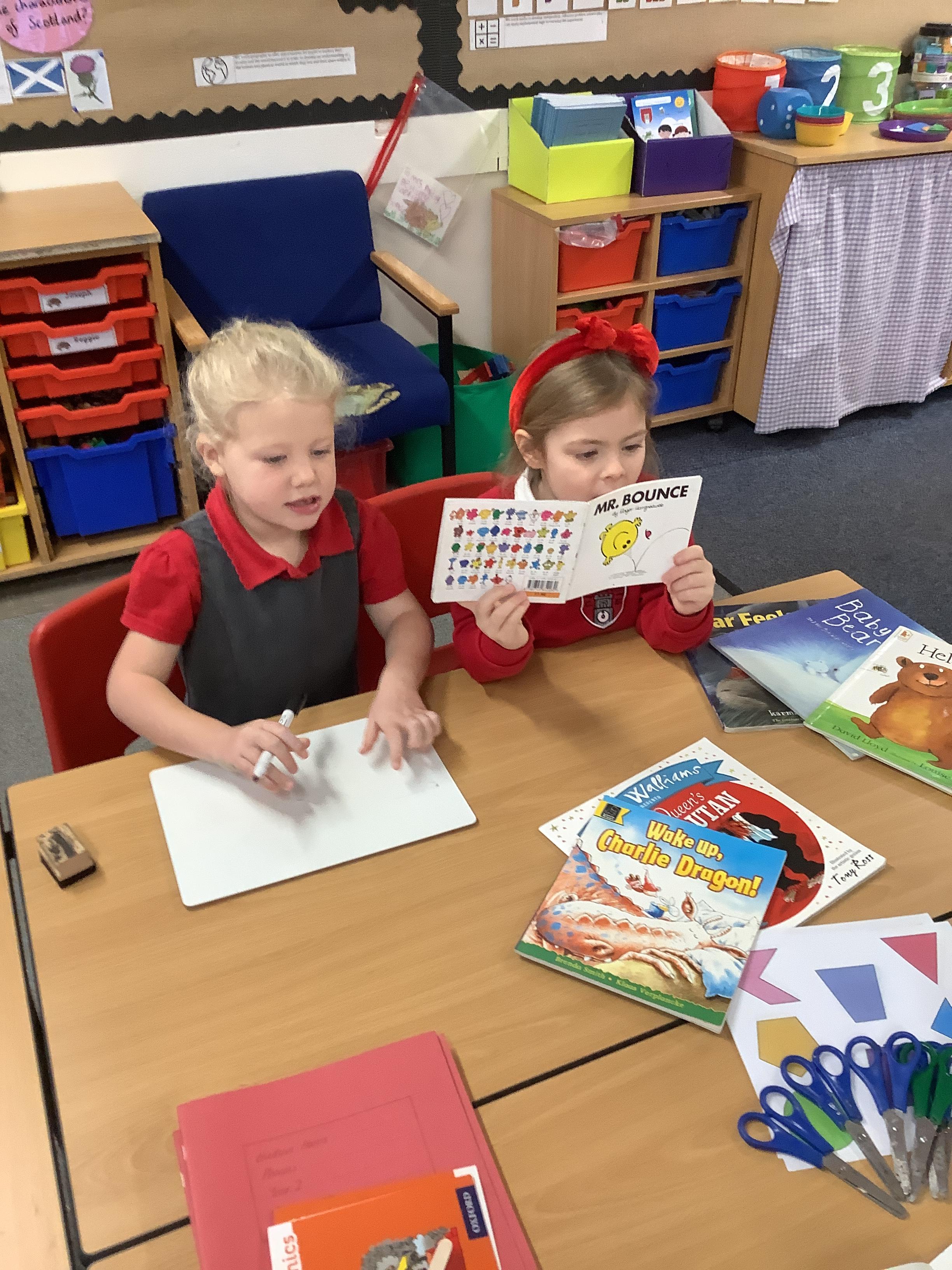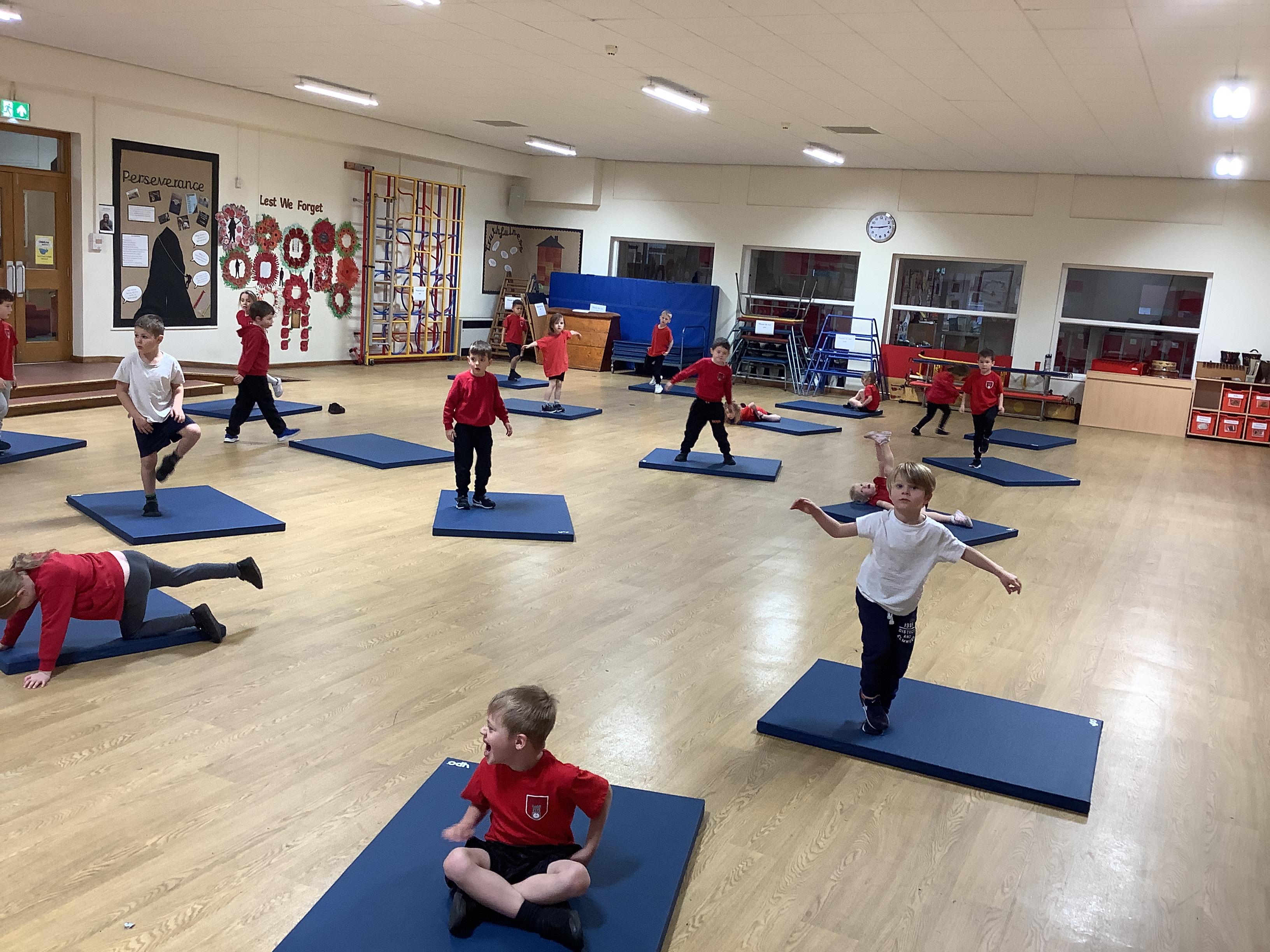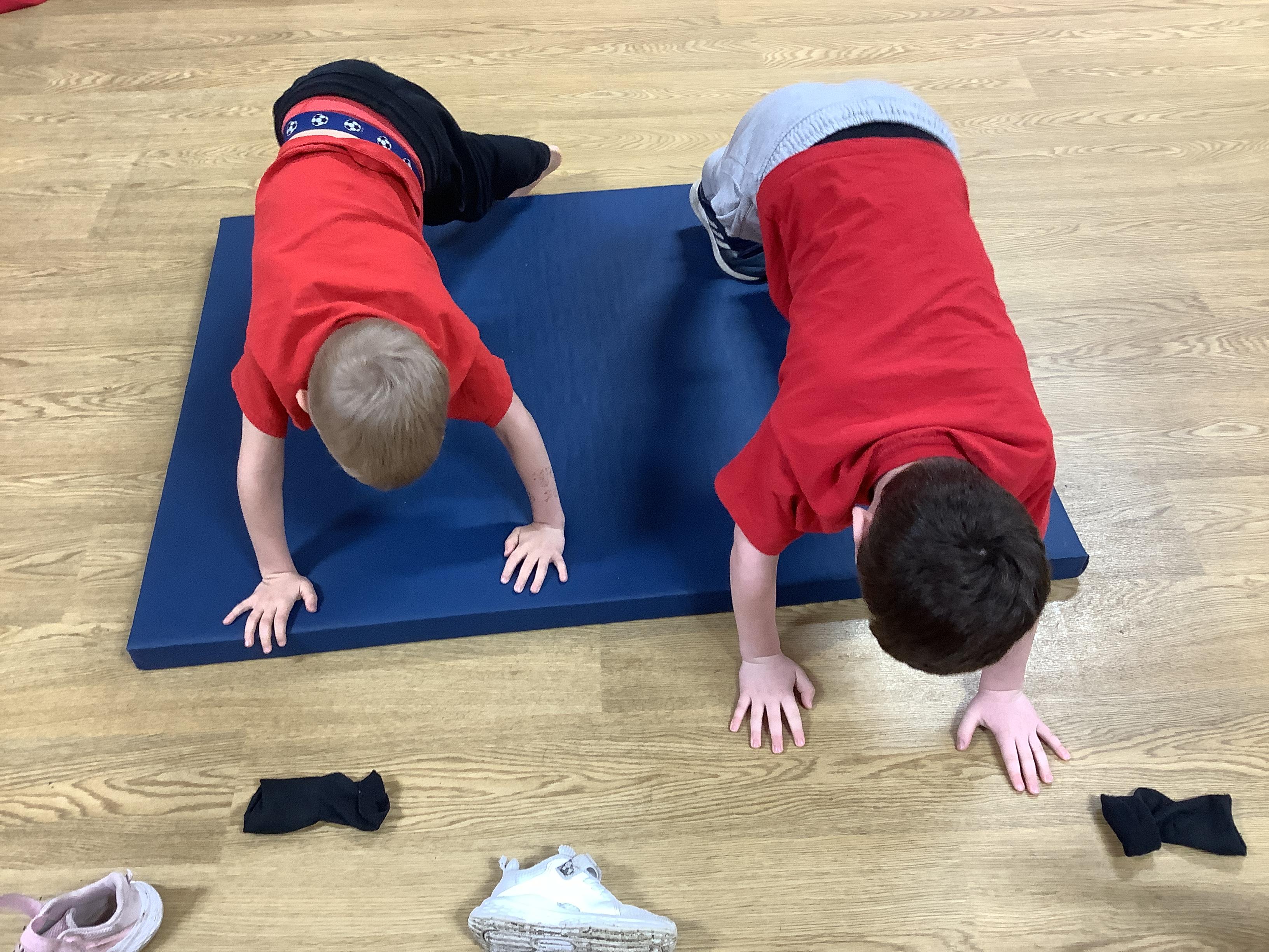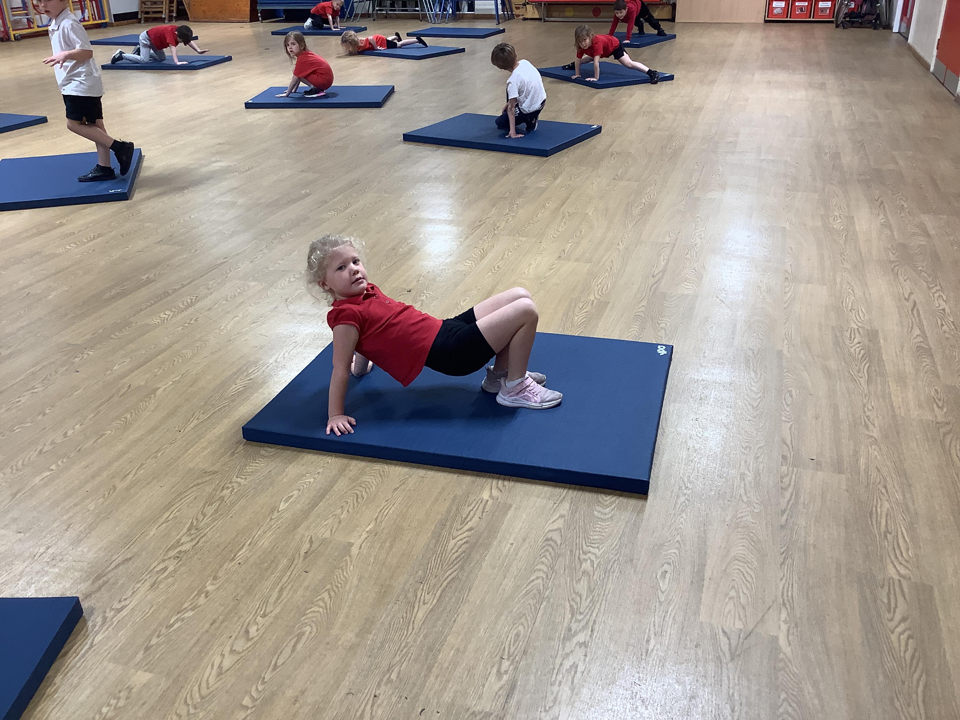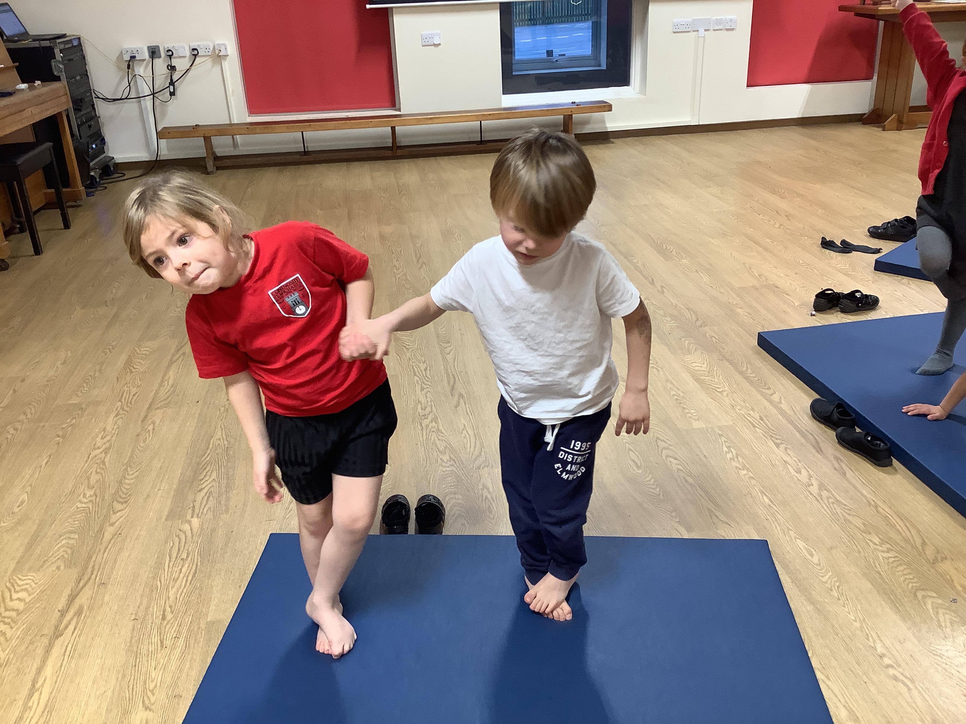 In PE with Mrs Phillips we explored balancing on different parts of our bodies. We had to use one point (like a hand, elbow, foot, head etc), two points, three points etc. We worked brilliantly with our partner. .