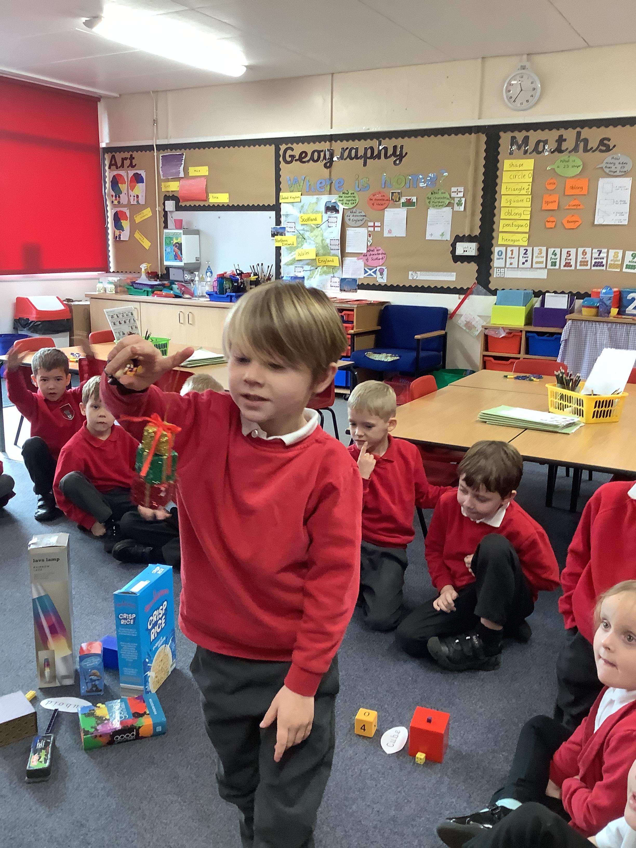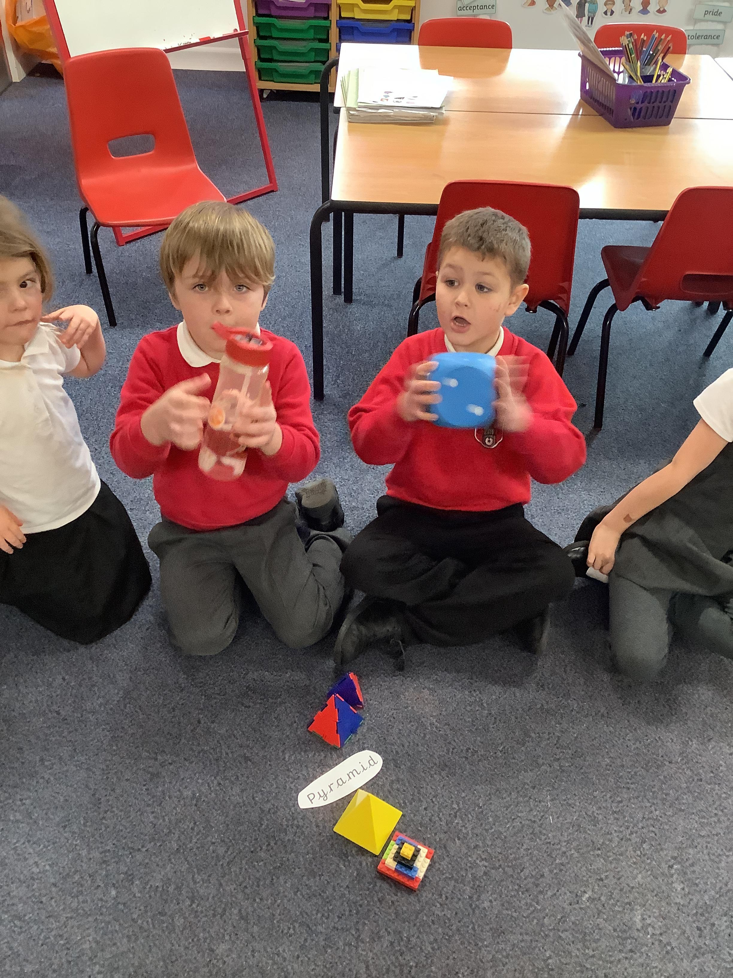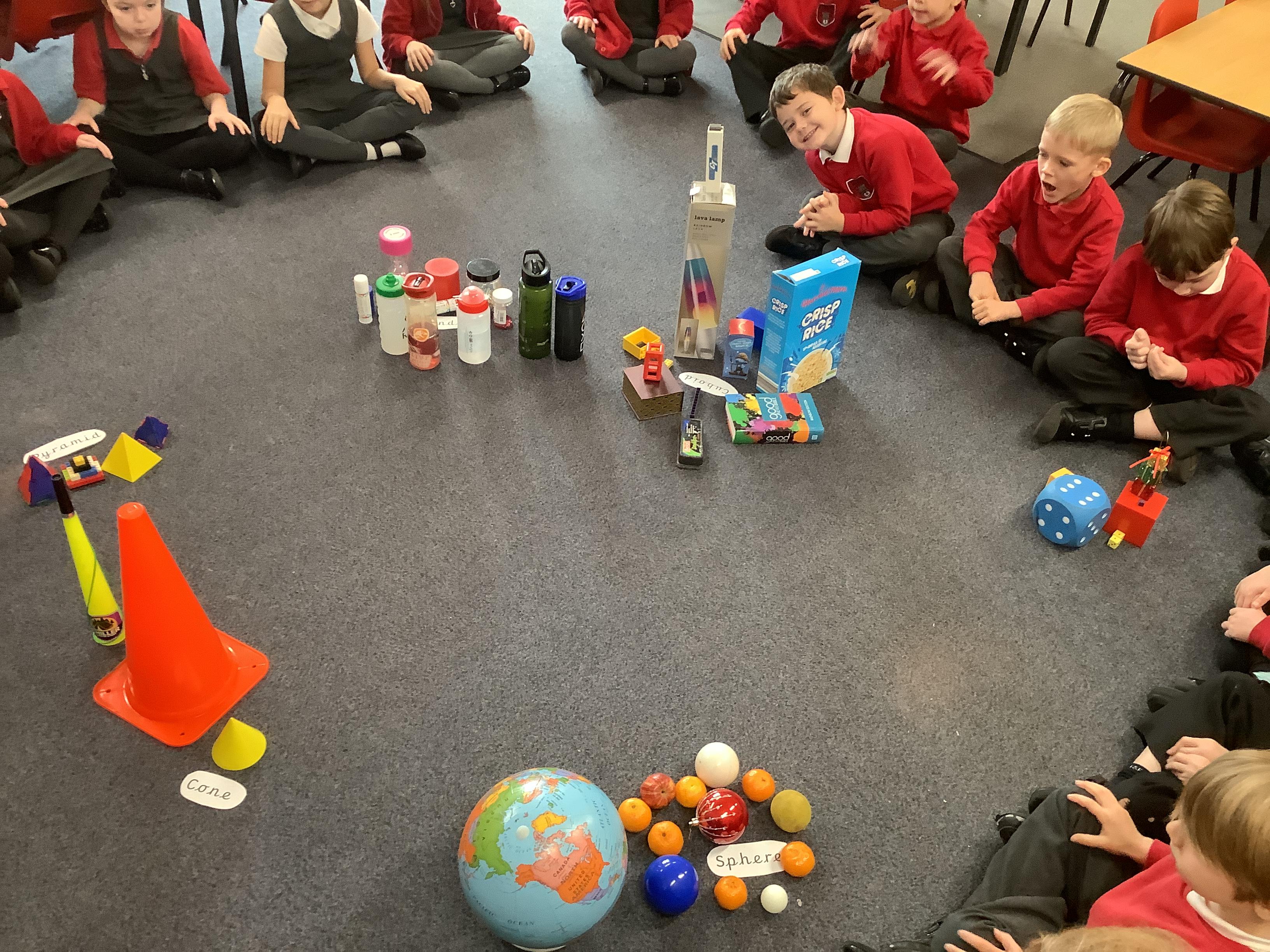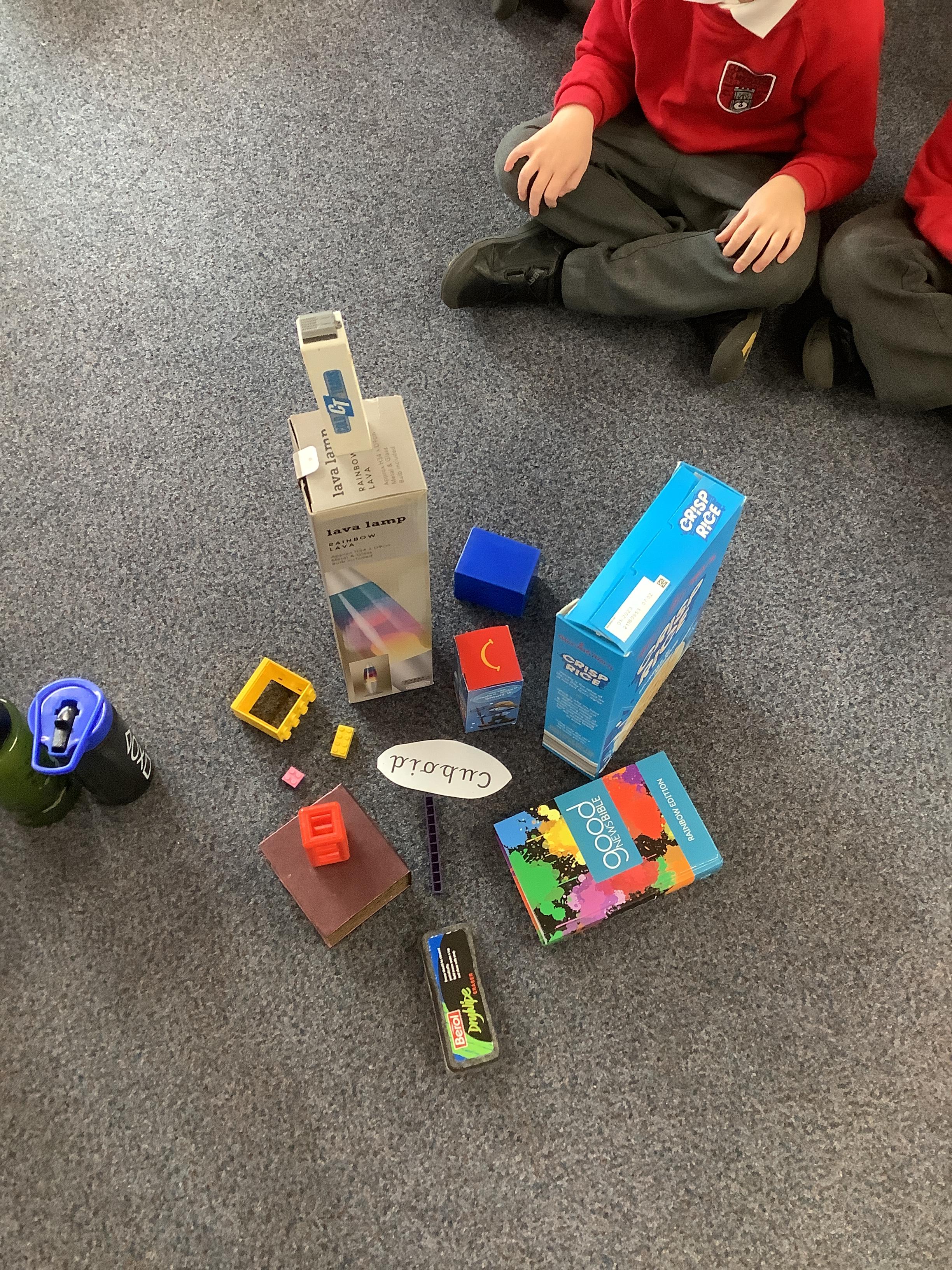 In Maths we sorted objects by which 3D shape they were. We had lots of cuboids and cylinders but not many cubes or cones!
