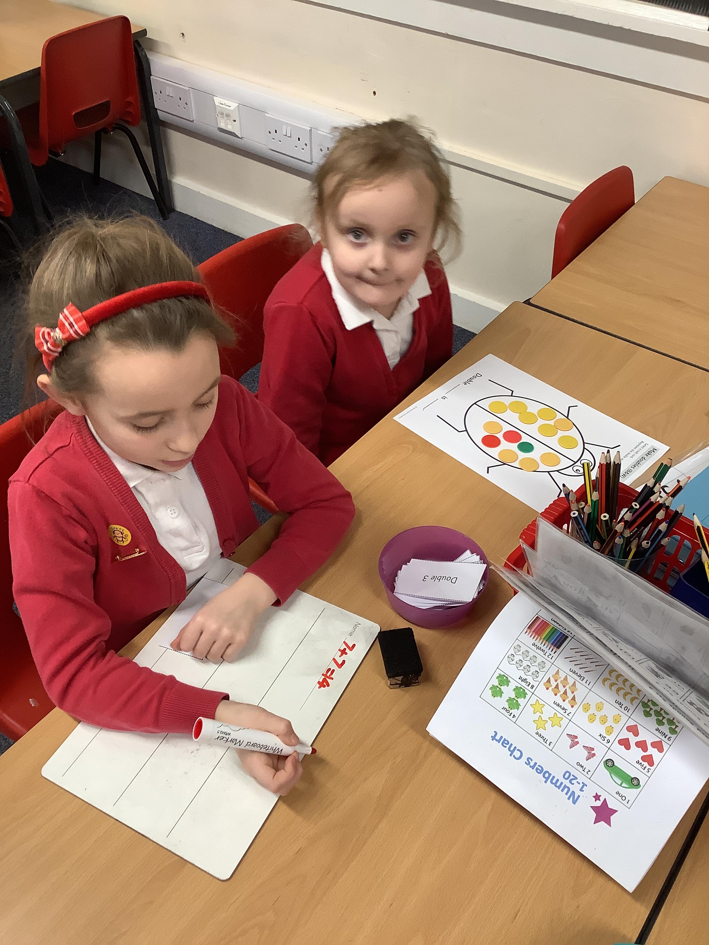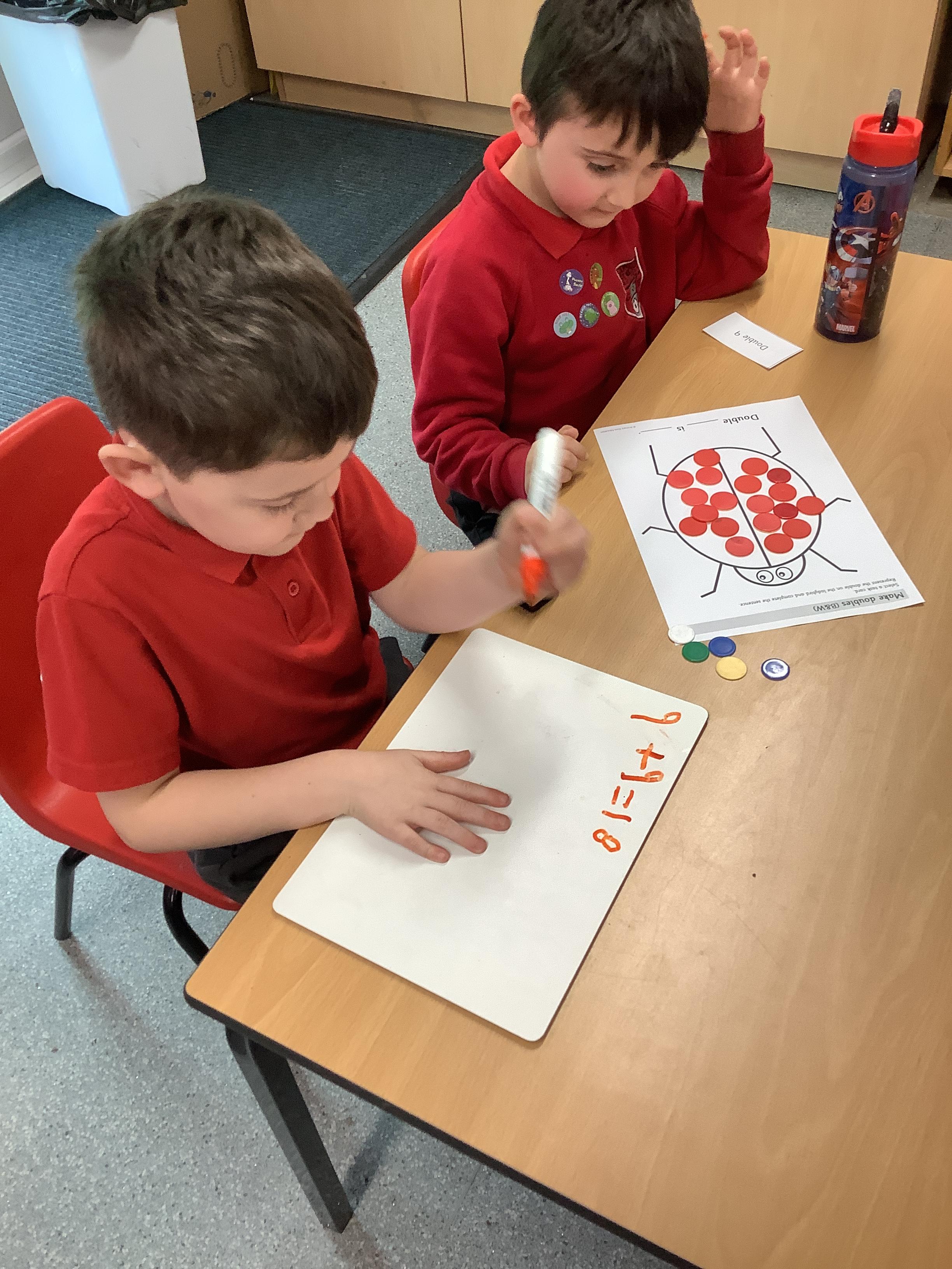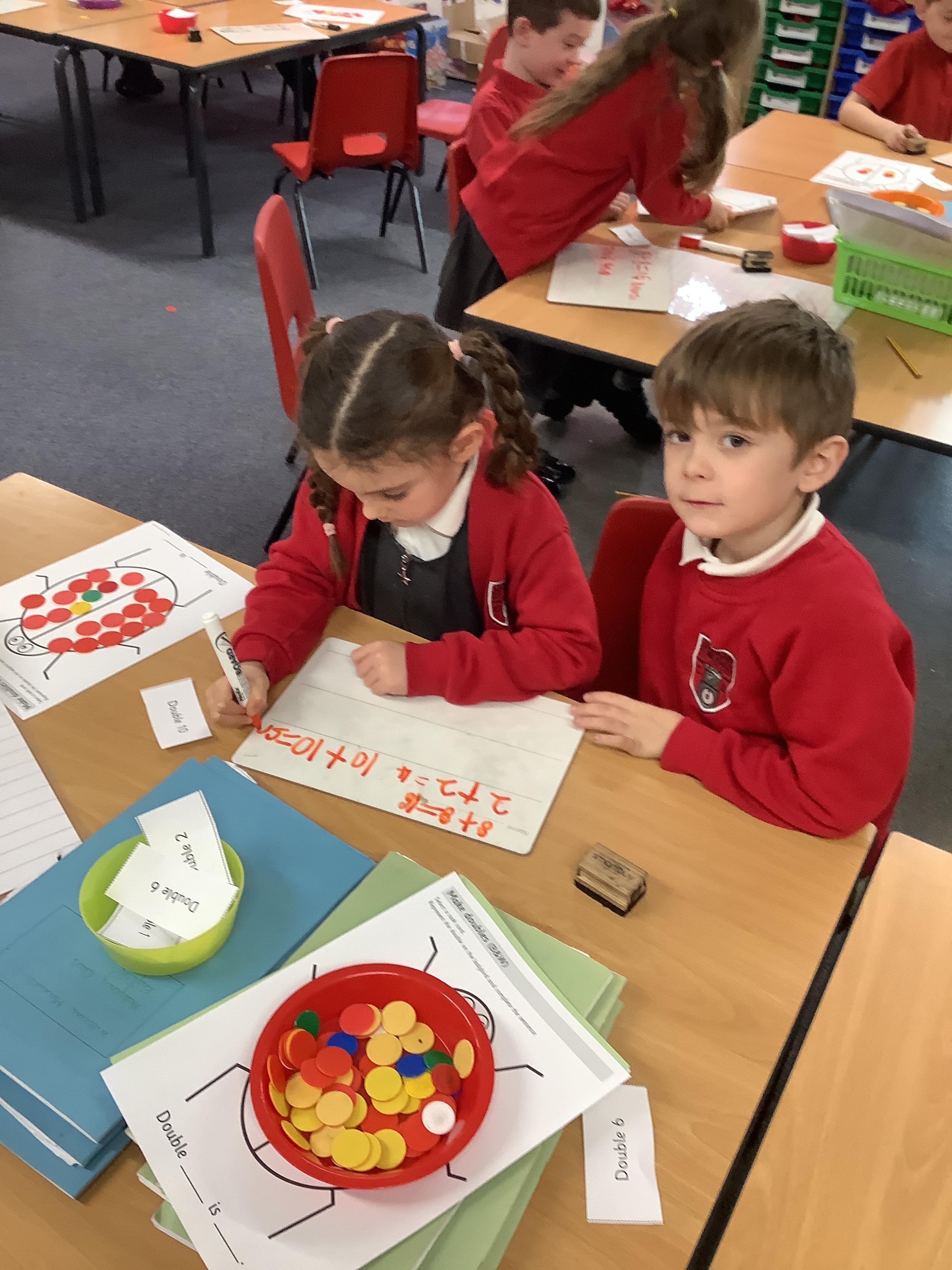 In Maths we found our doubles with a partner. We built it and then recorded them on a white board.