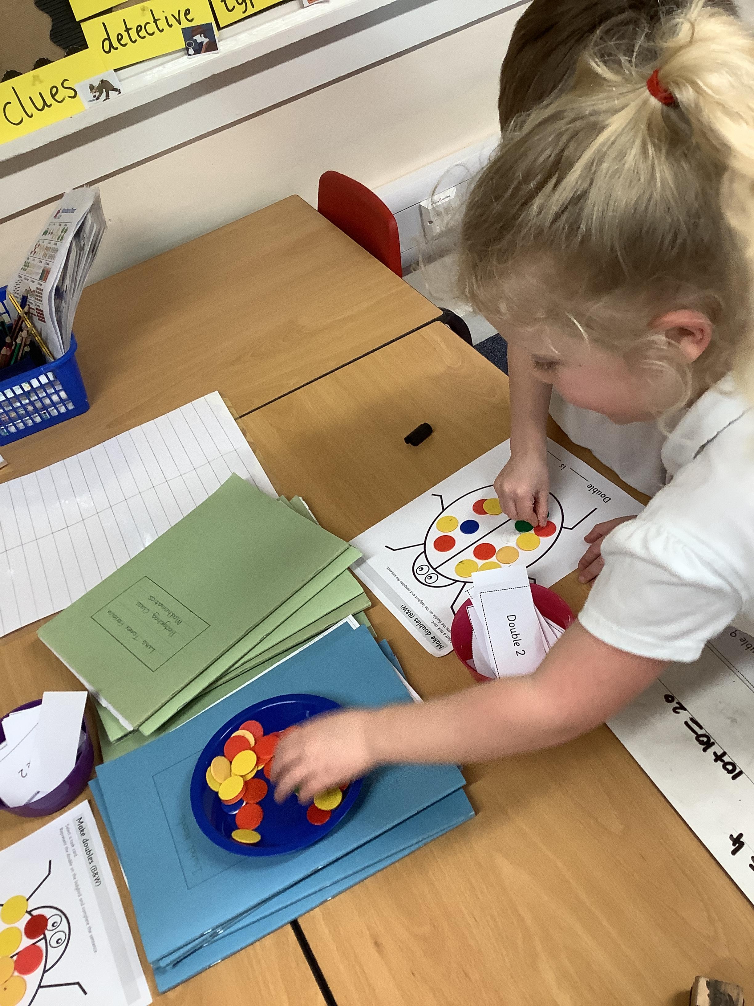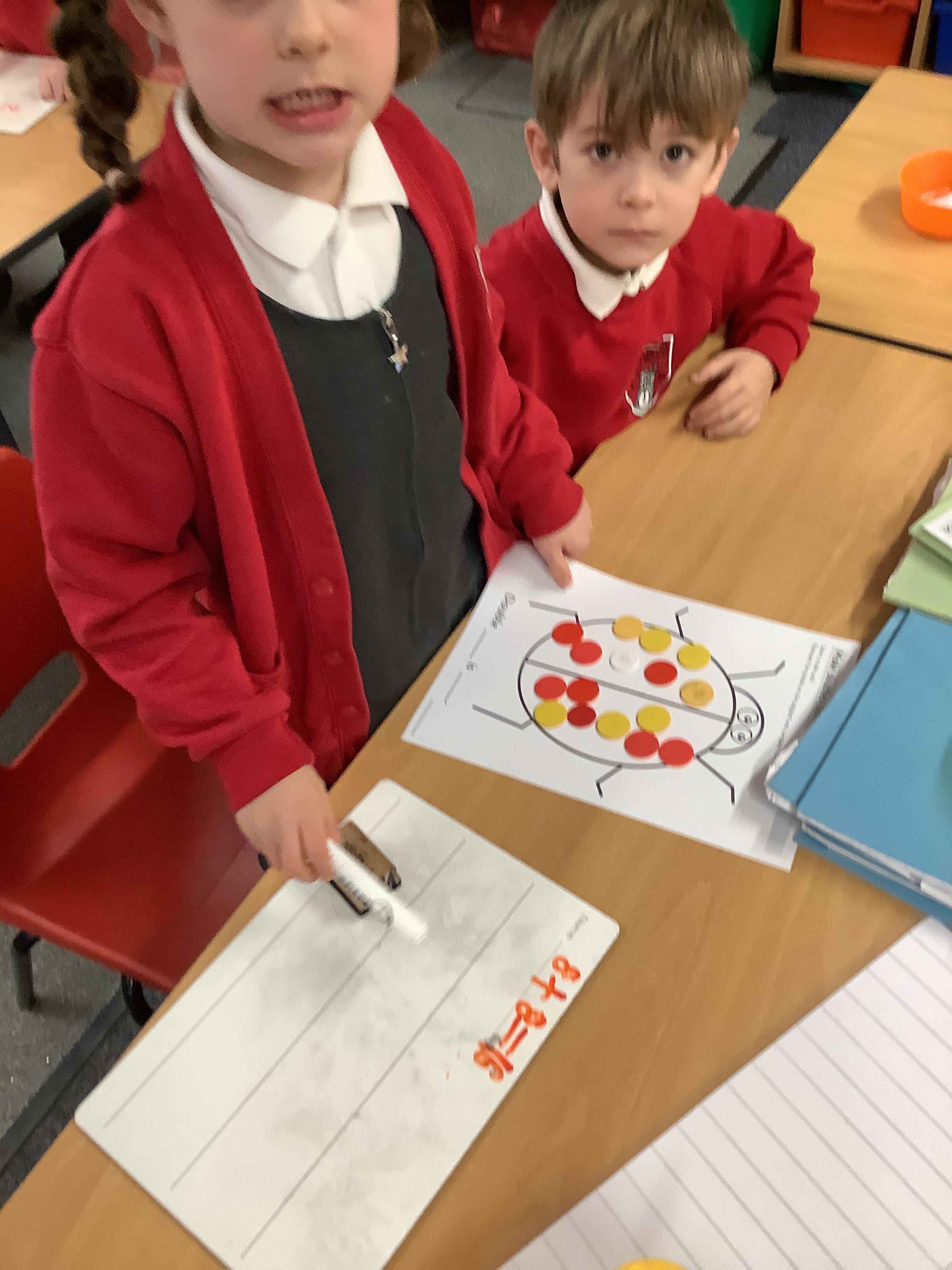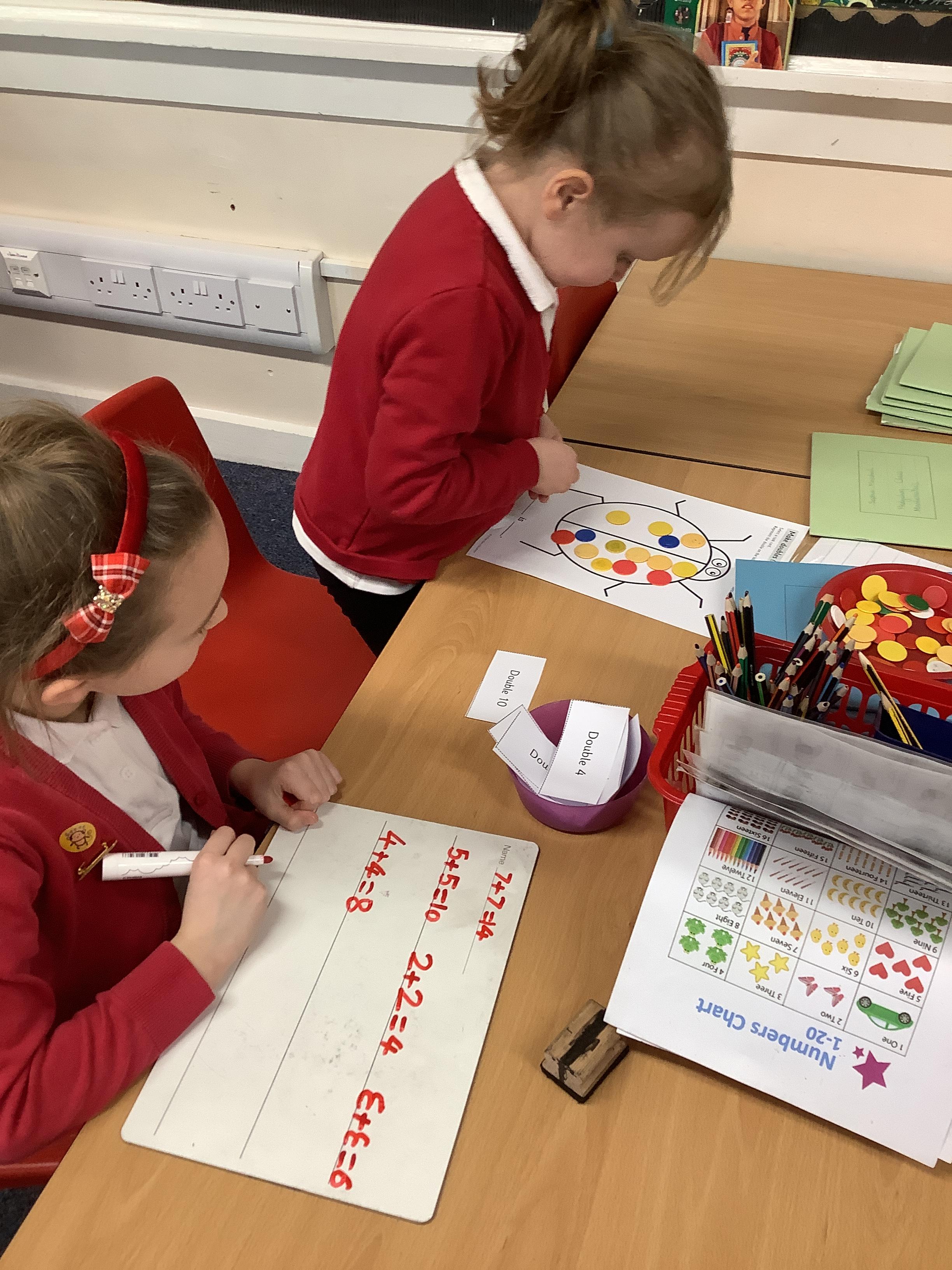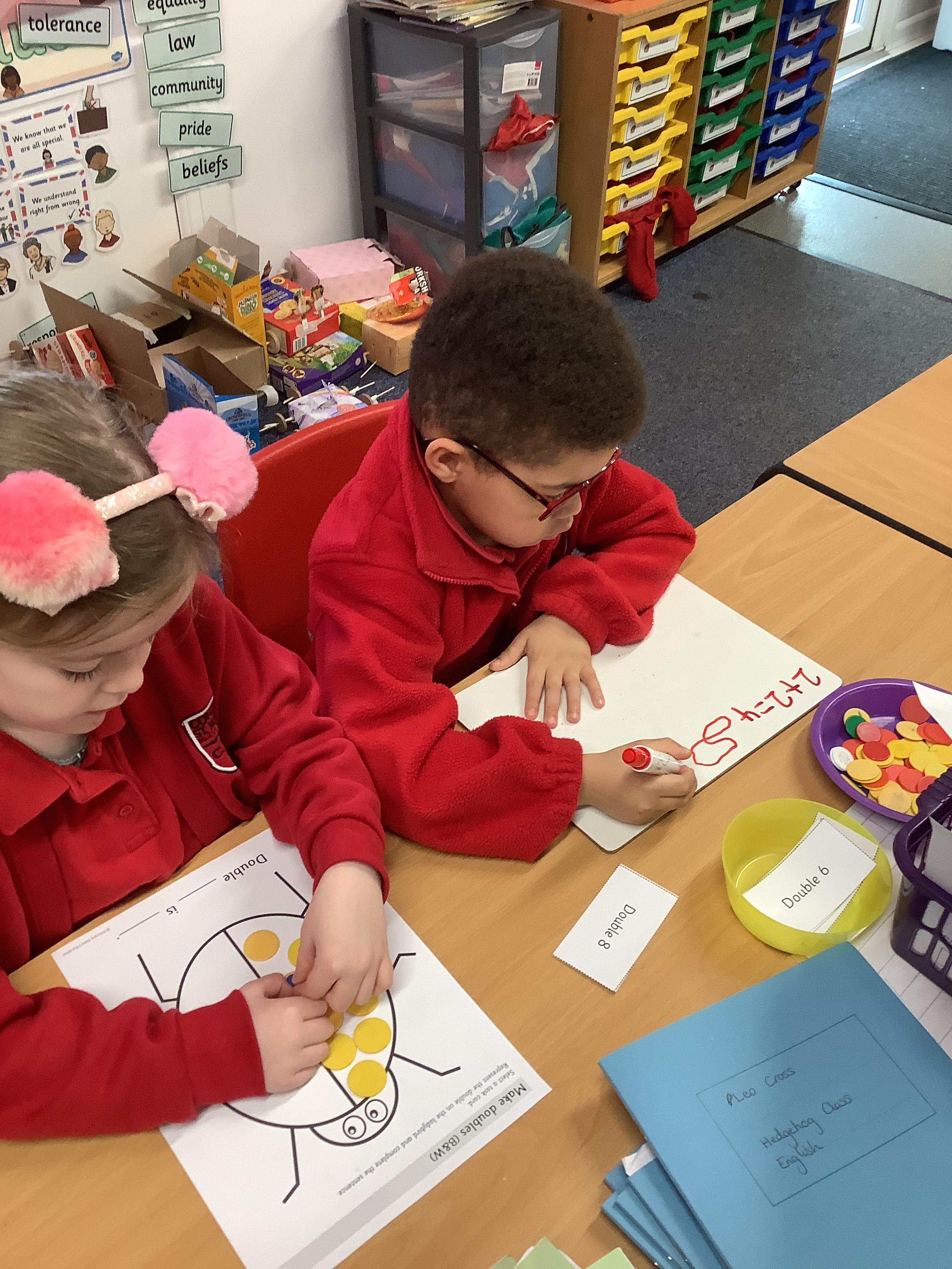 In Maths we found our doubles with a partner. We built it and then recorded them on a white board.