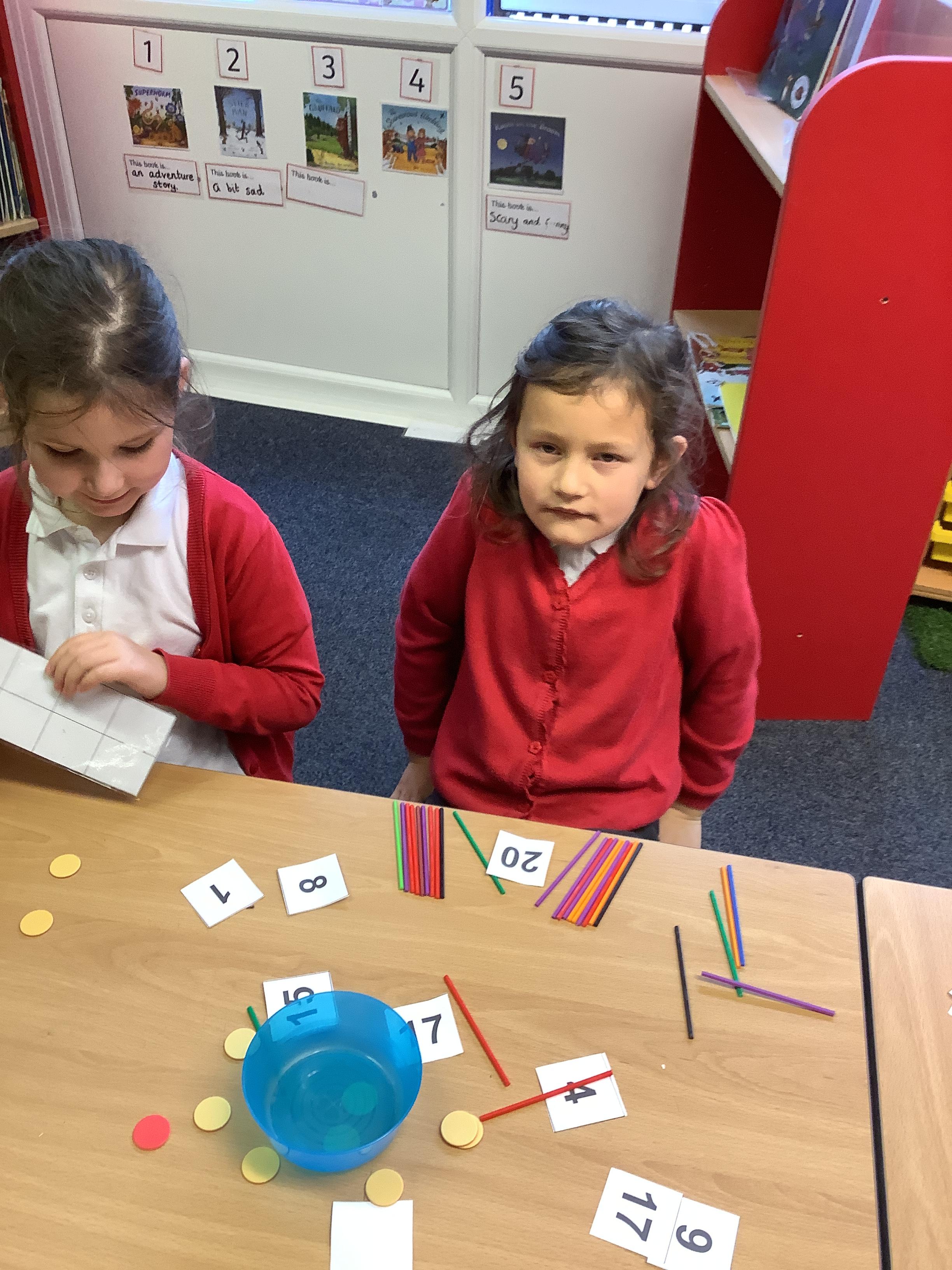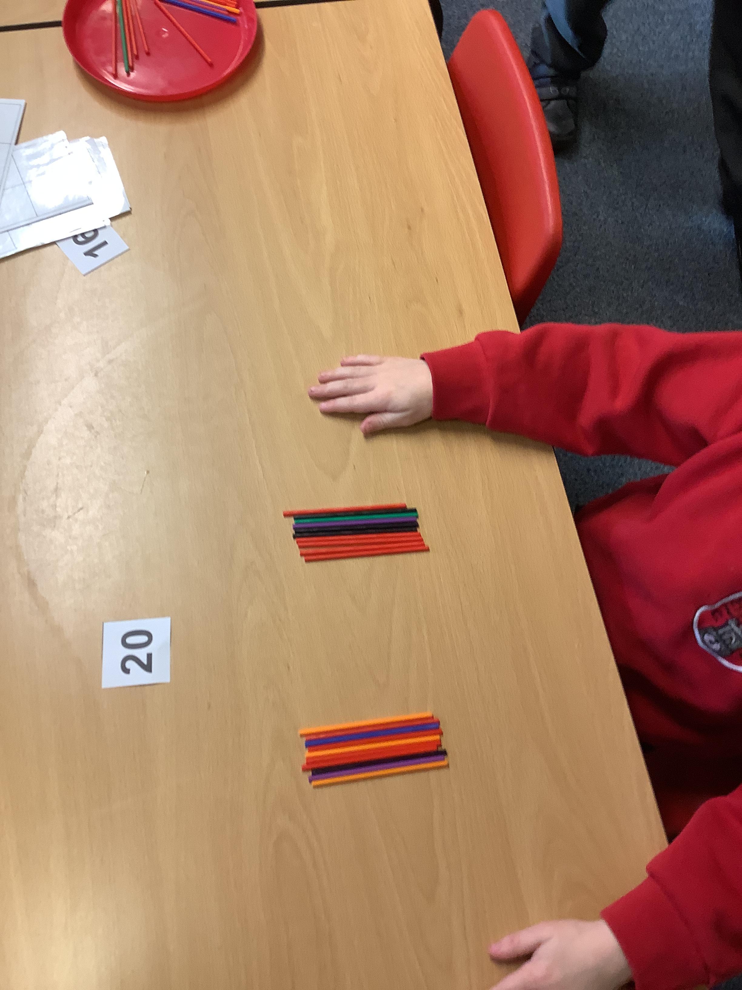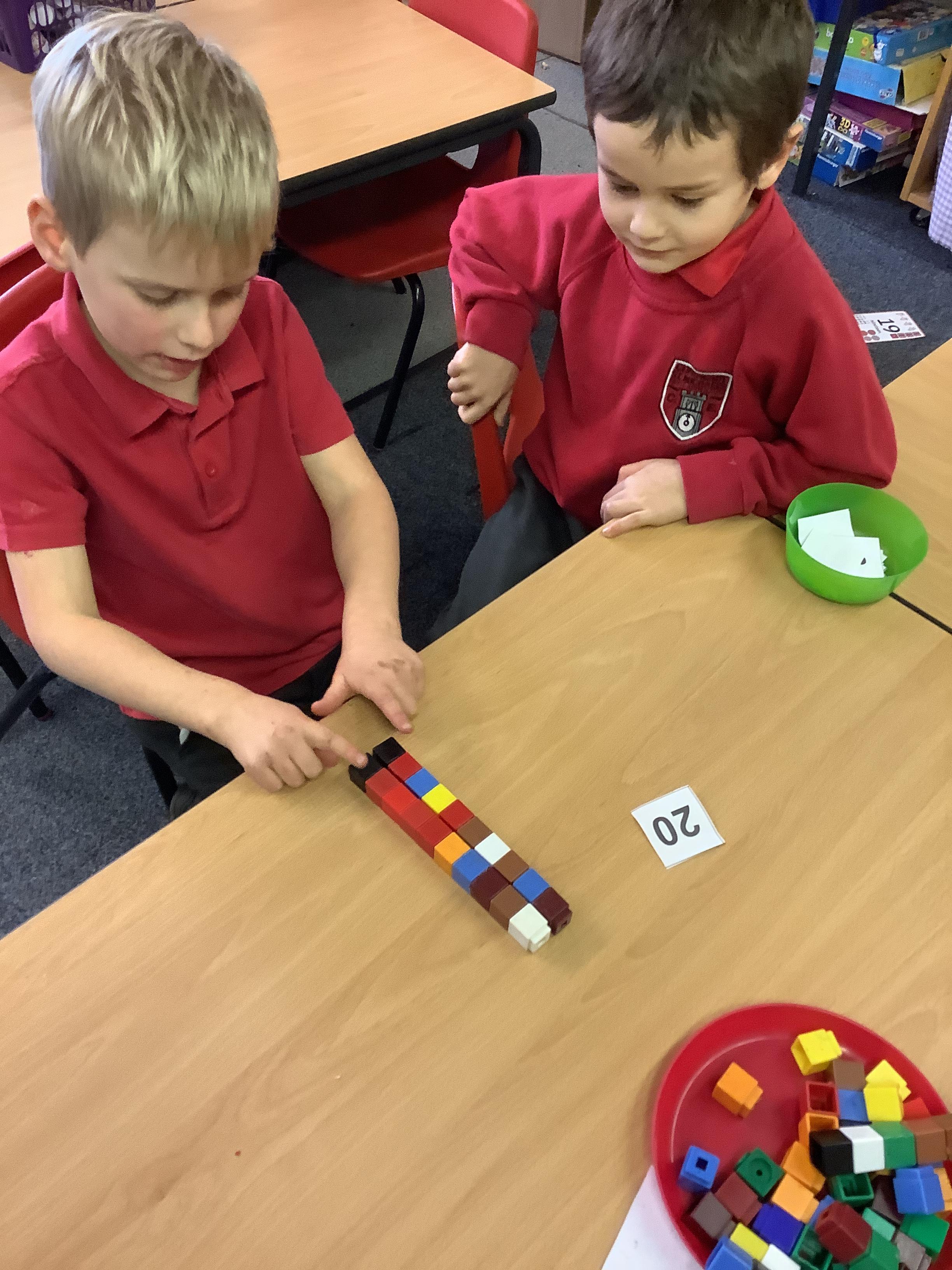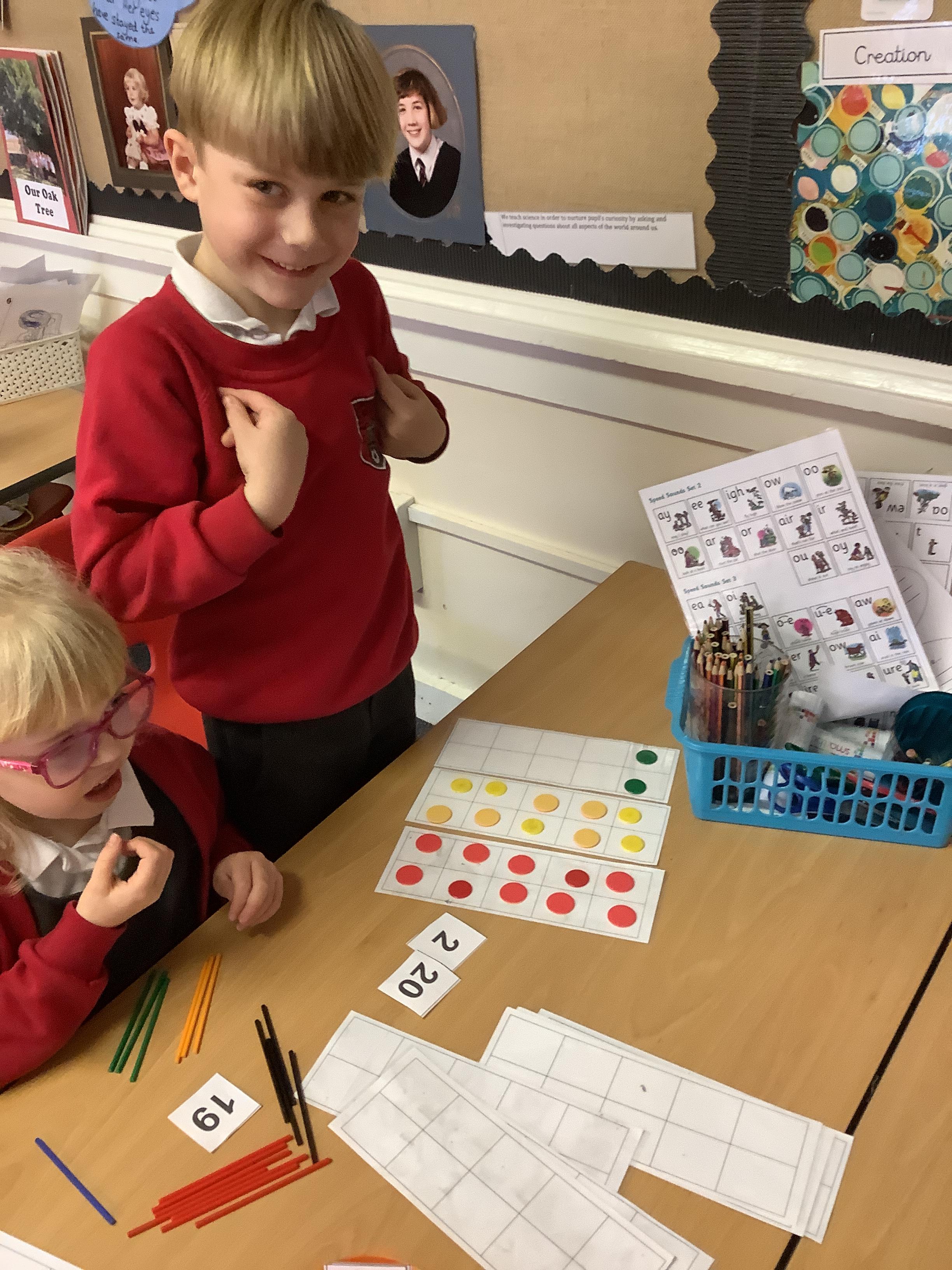 We are learning to recognise and make numbers from 1 to 20. Can you see which numbers we have made?