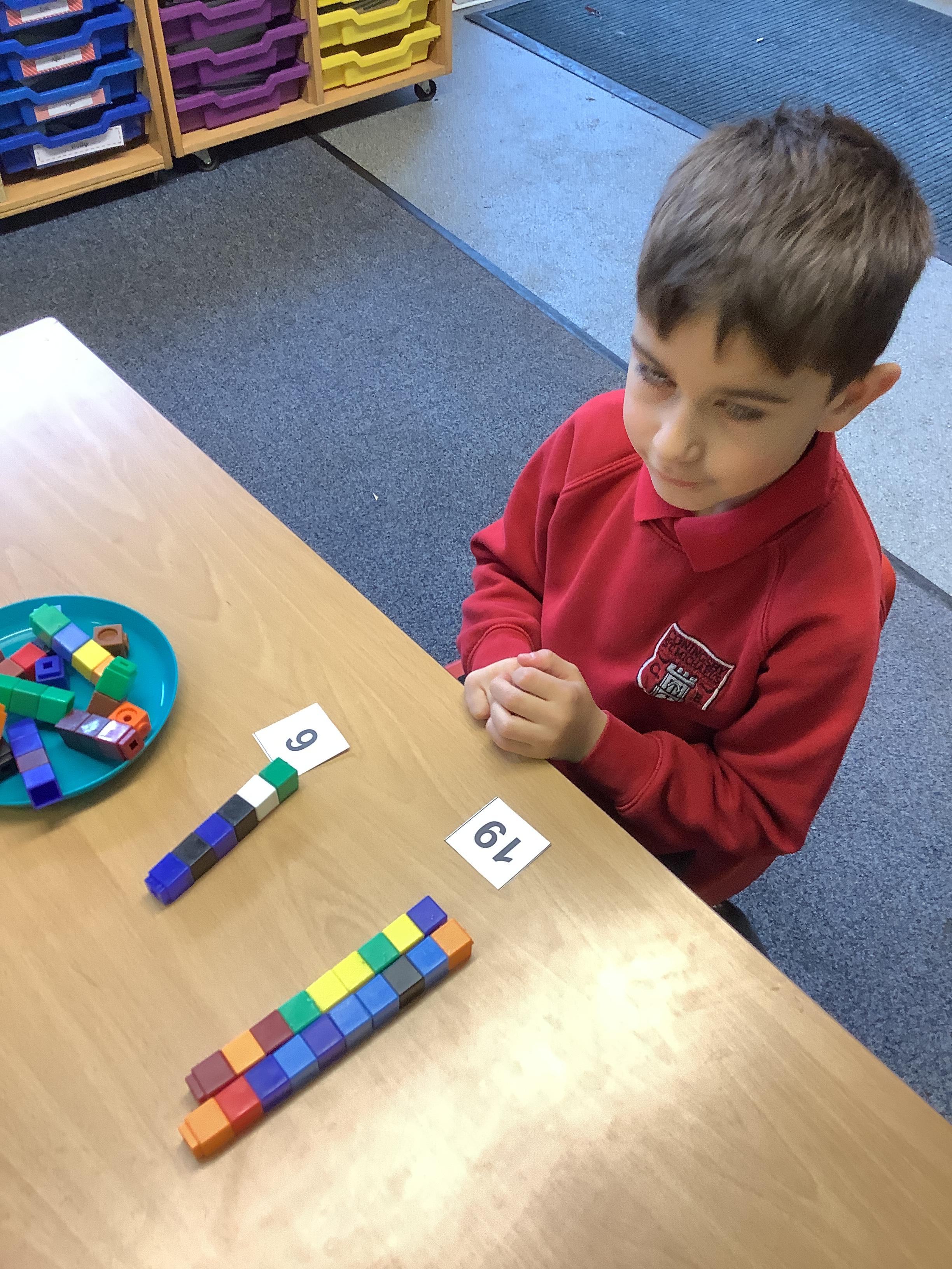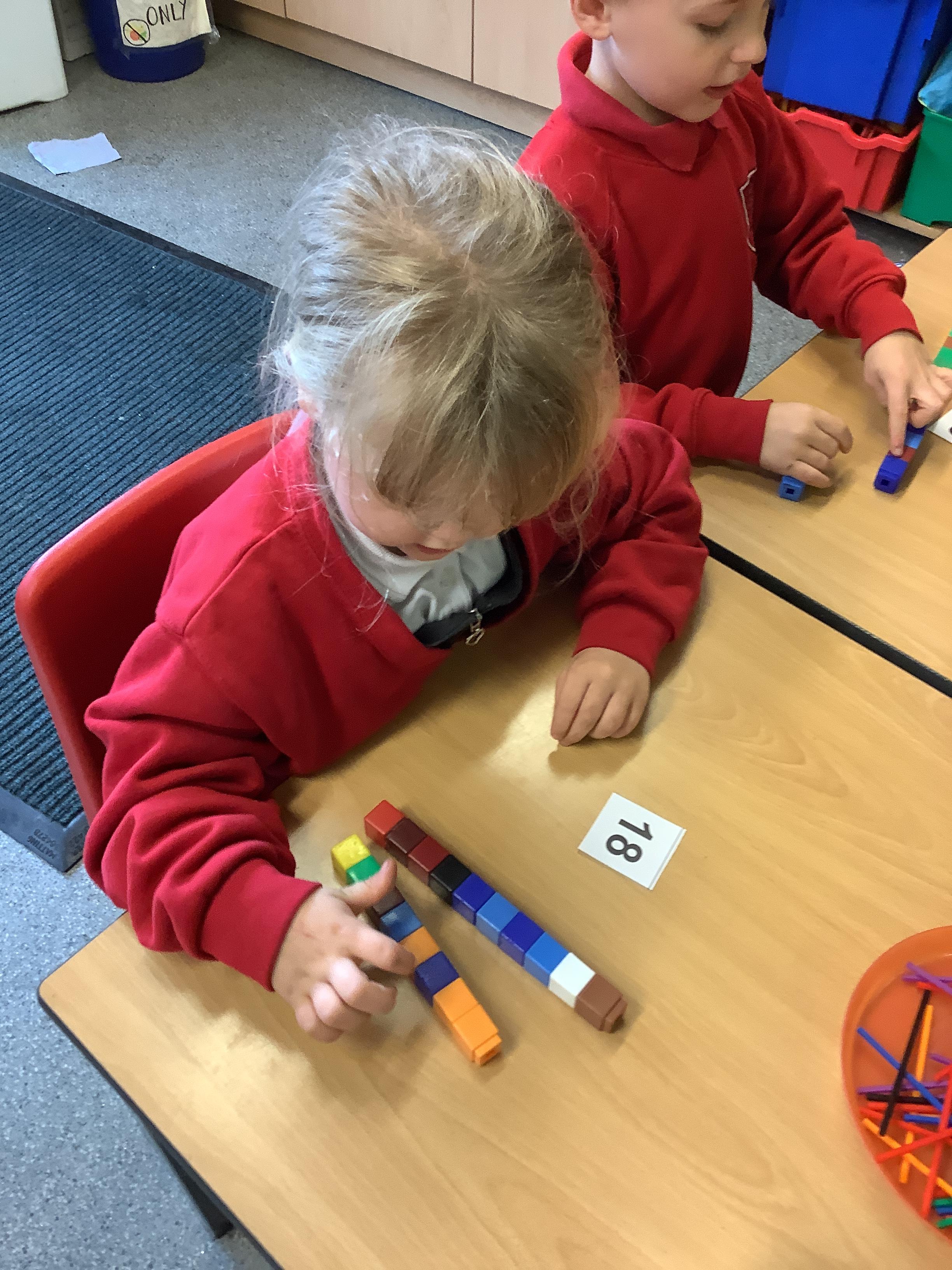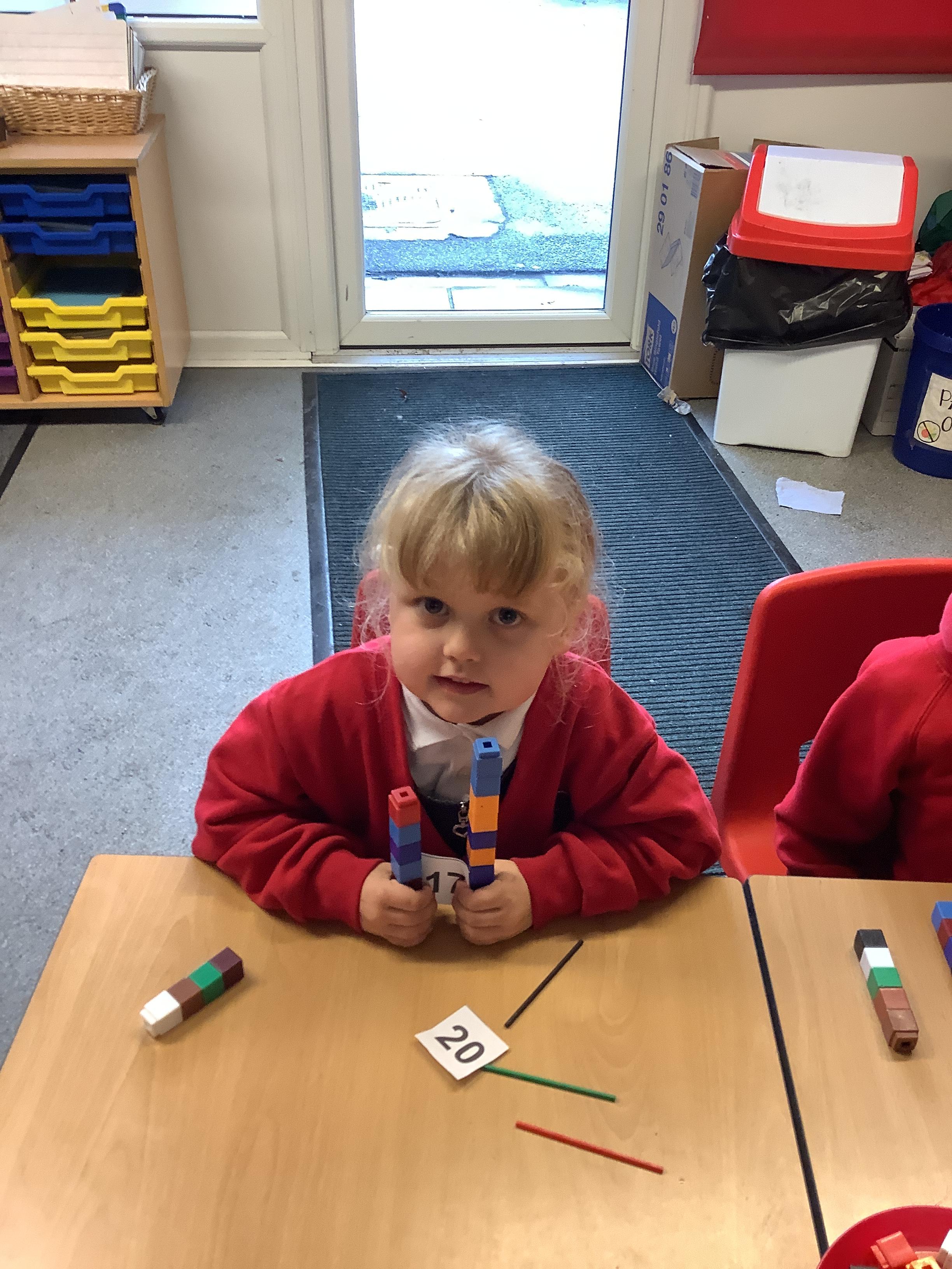 We are learning to recognise and make numbers from 1 to 20. Can you see which numbers we have made?