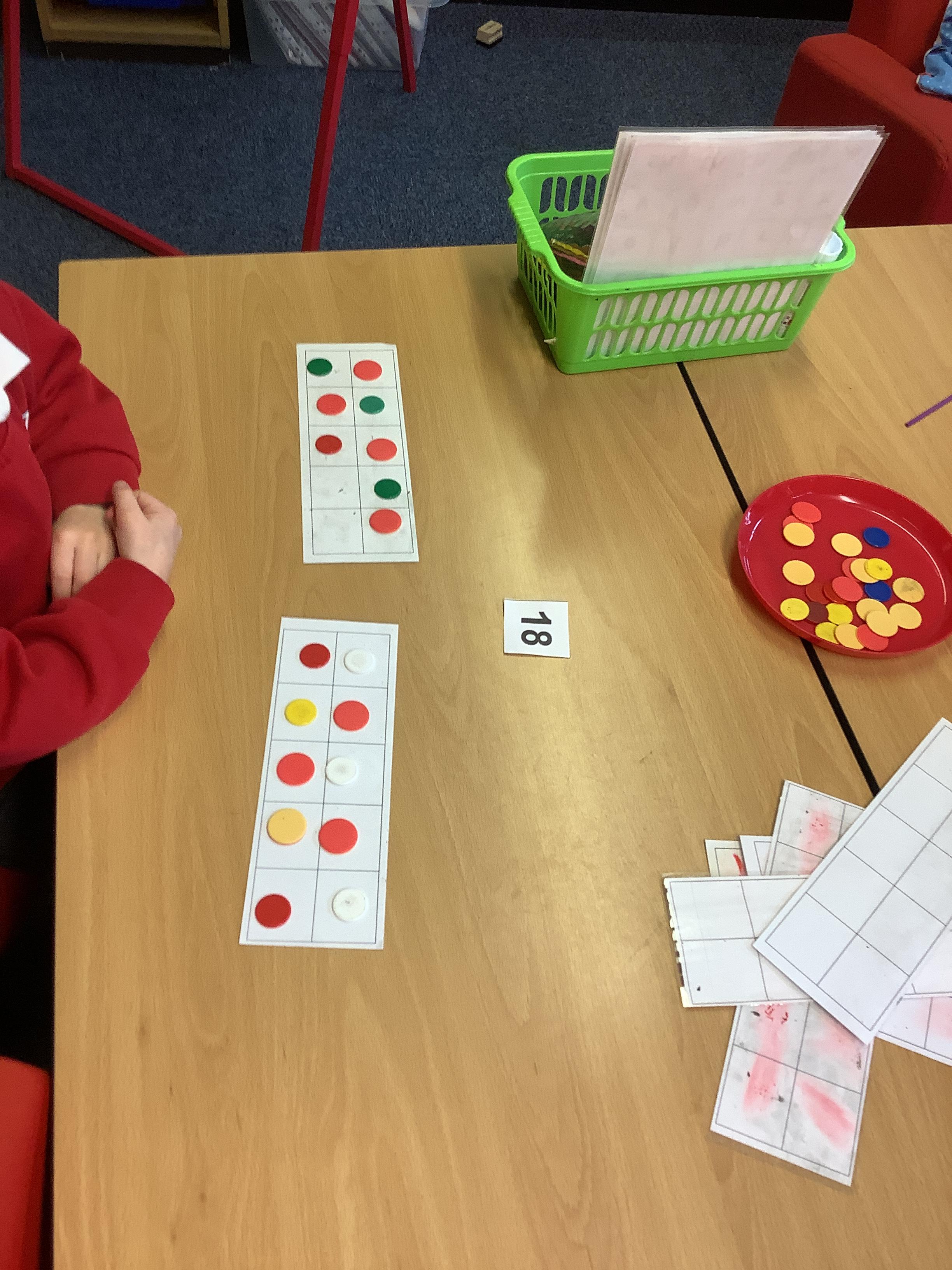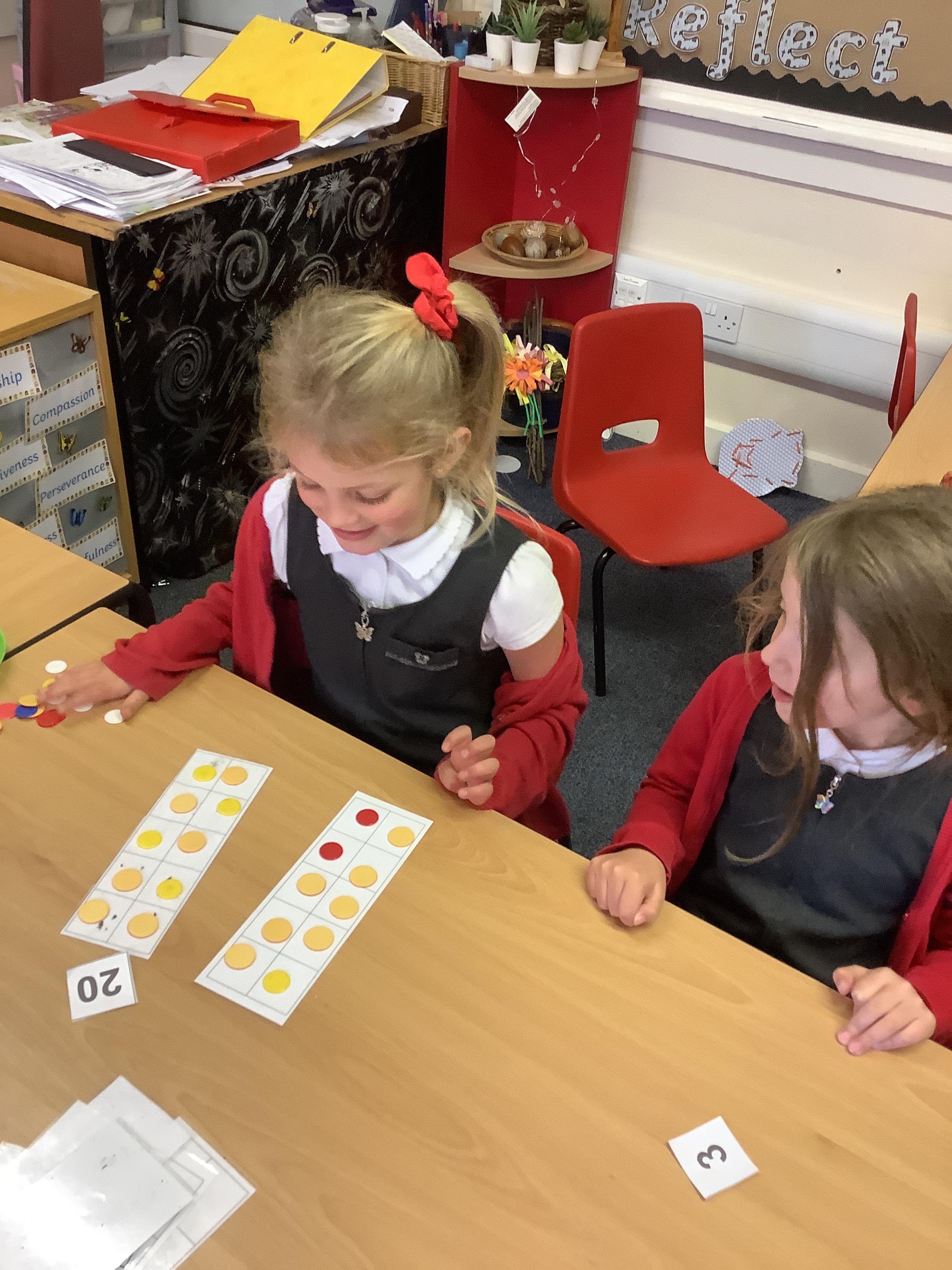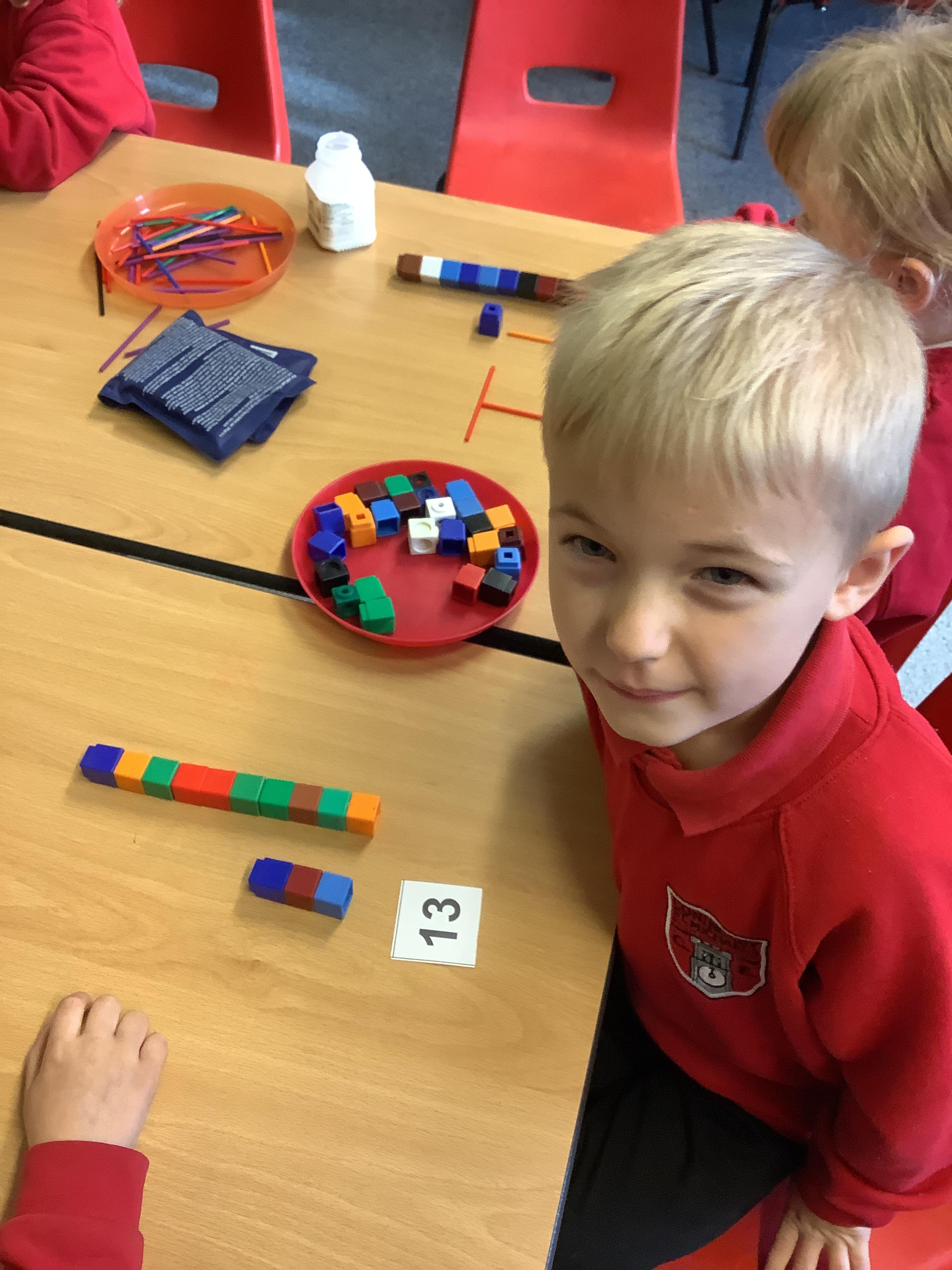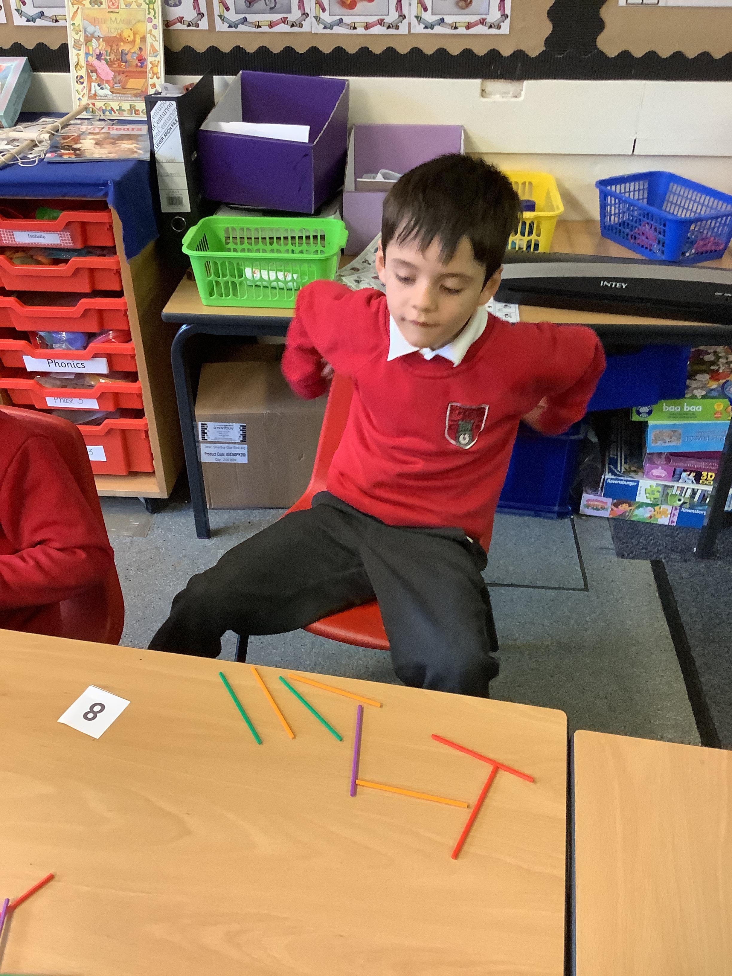 We are learning to recognise and make numbers from 1 to 20. Can you see which numbers we have made?