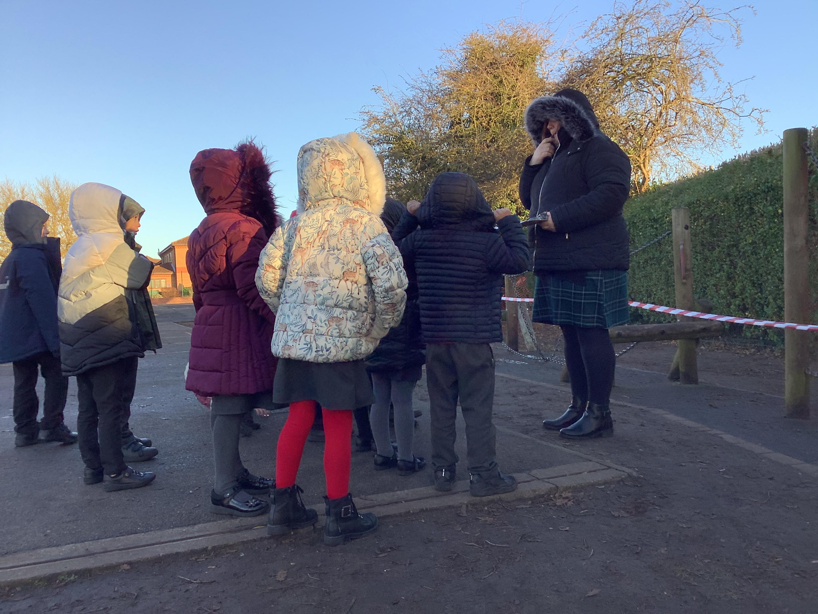 We did a Science experiment to see why the children can't hear Mrs Pobjoy's whistle! We tested with our hoods down and then with our hoods up. We found out that if we are close to Mrs Pobjoy we can hear the whistle, with our hoods up and down! The further away we get the harder it is to hear the whistle. When we have our hoods up and we are a long way away, we can only just hear the whistle. We have to use our sense of hearing and really listen!