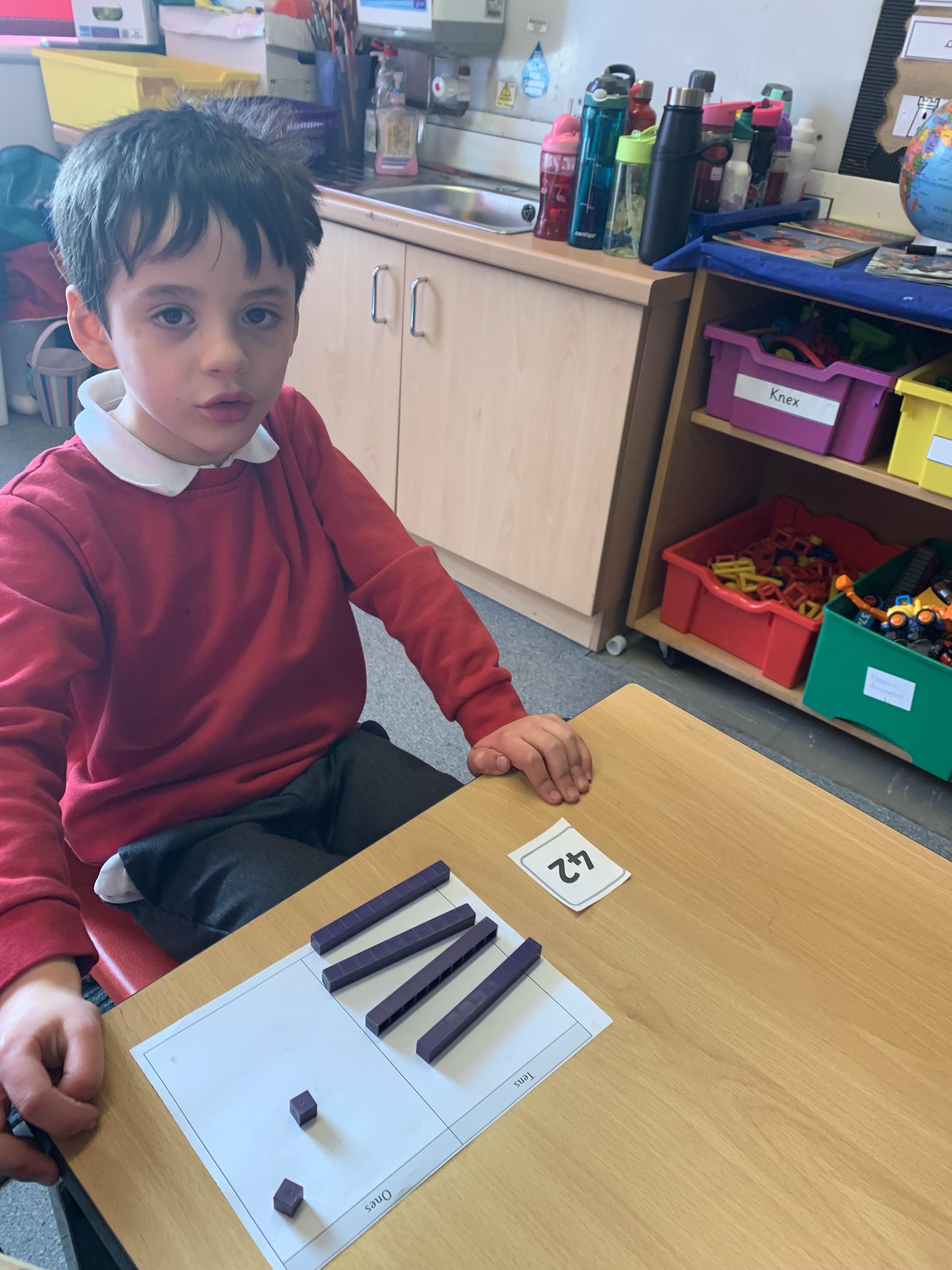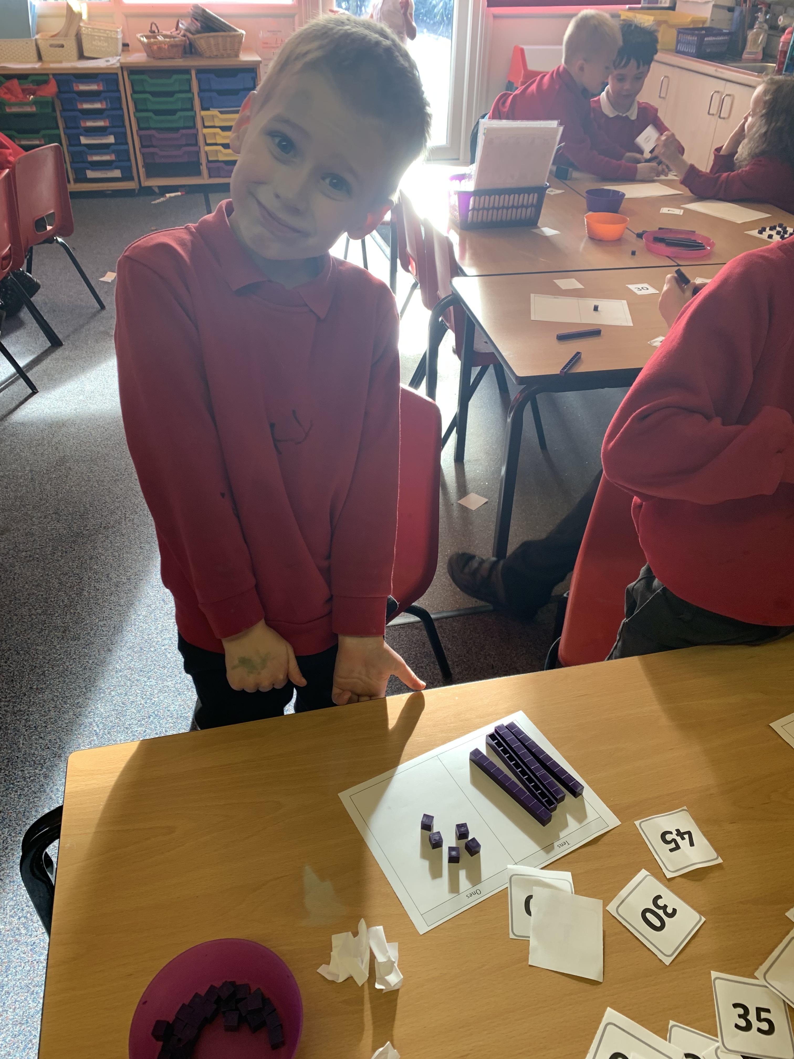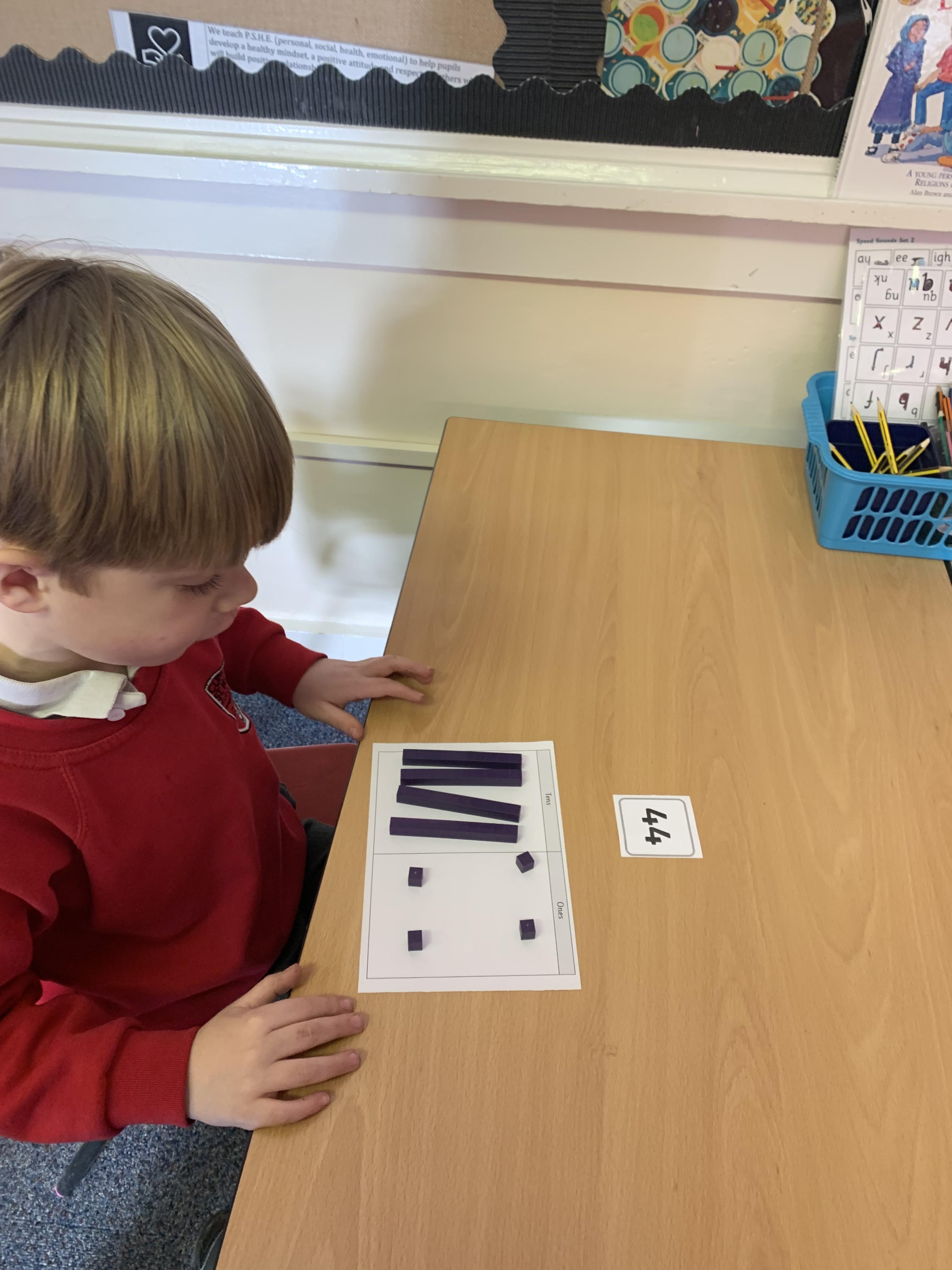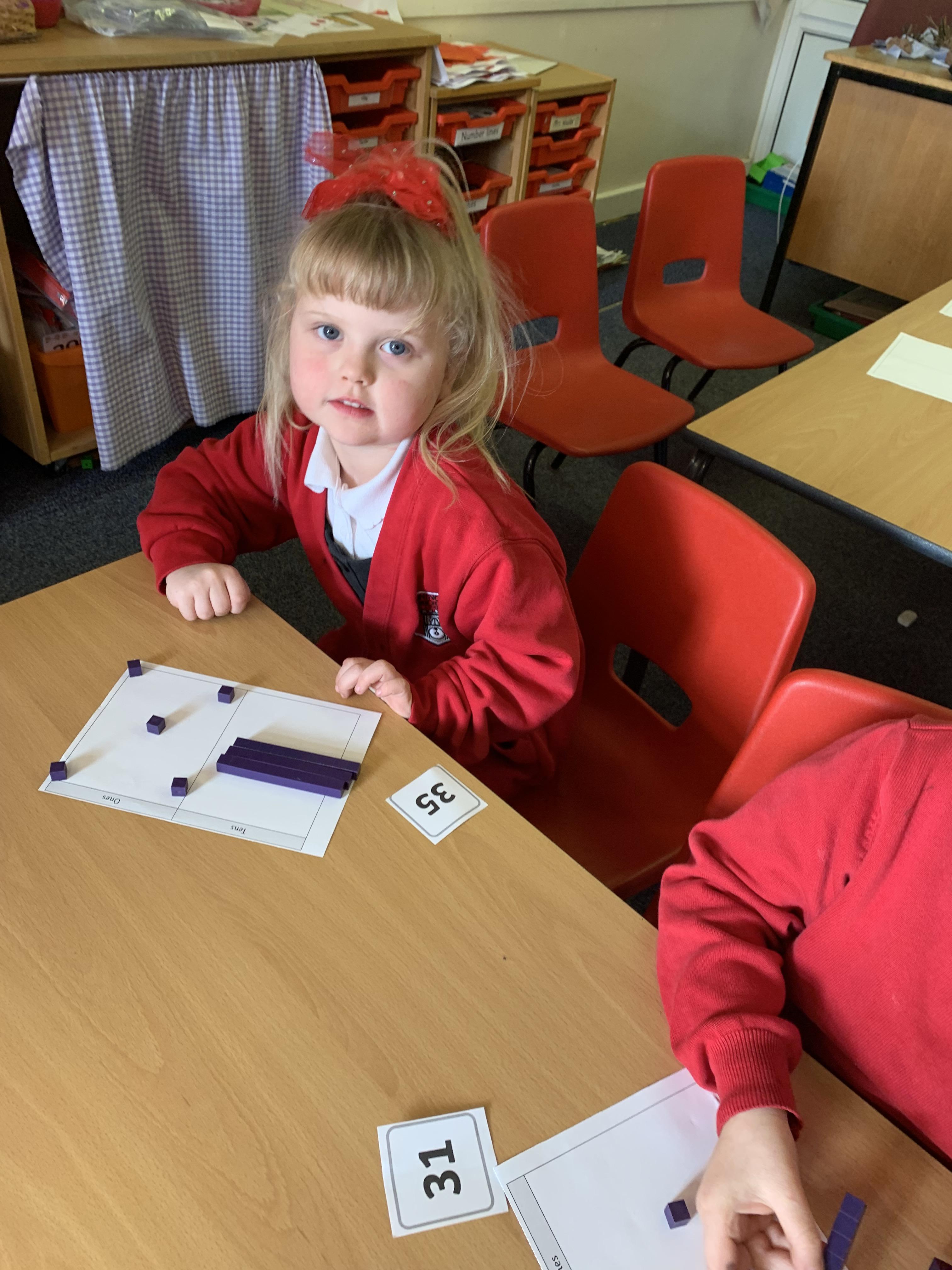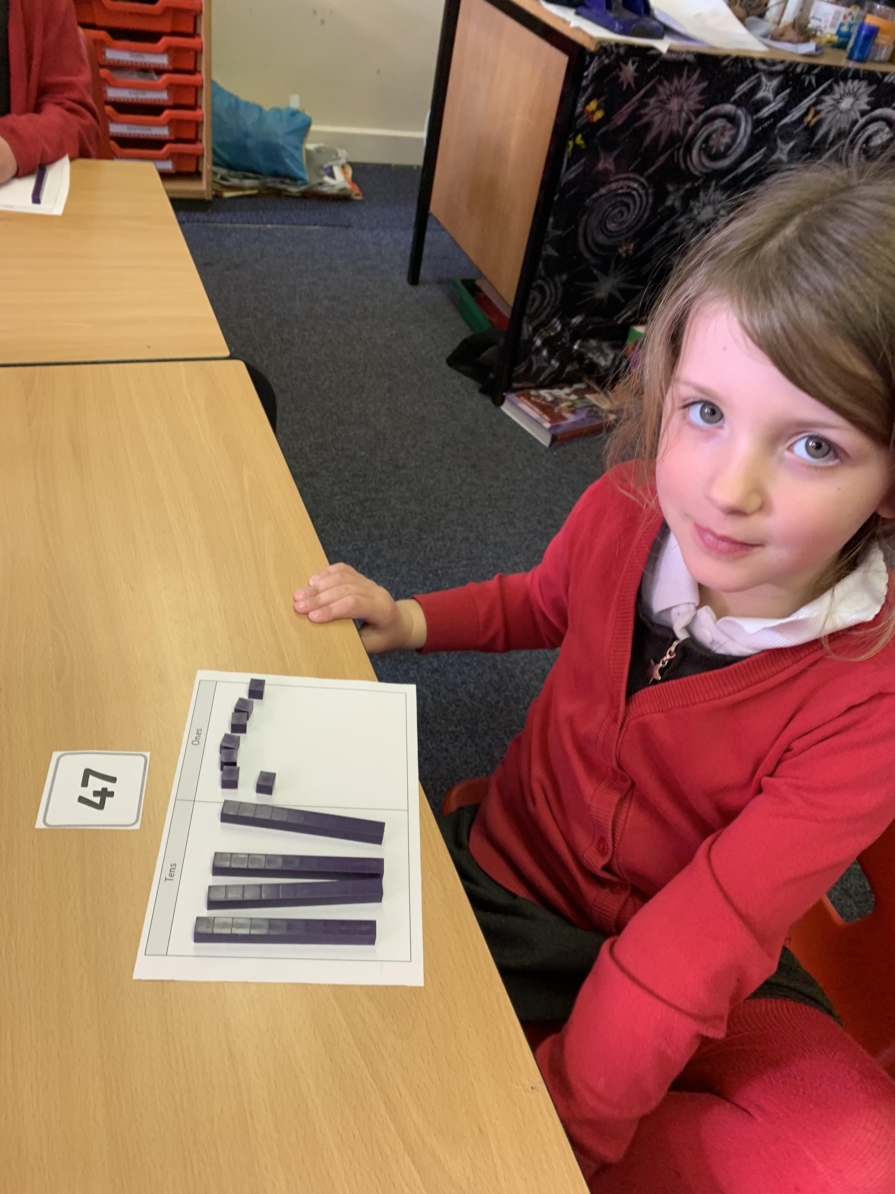 In Maths we have been finding out about numbers to 50. We built numbers using tens and ones. Can you see the numbers we have made?