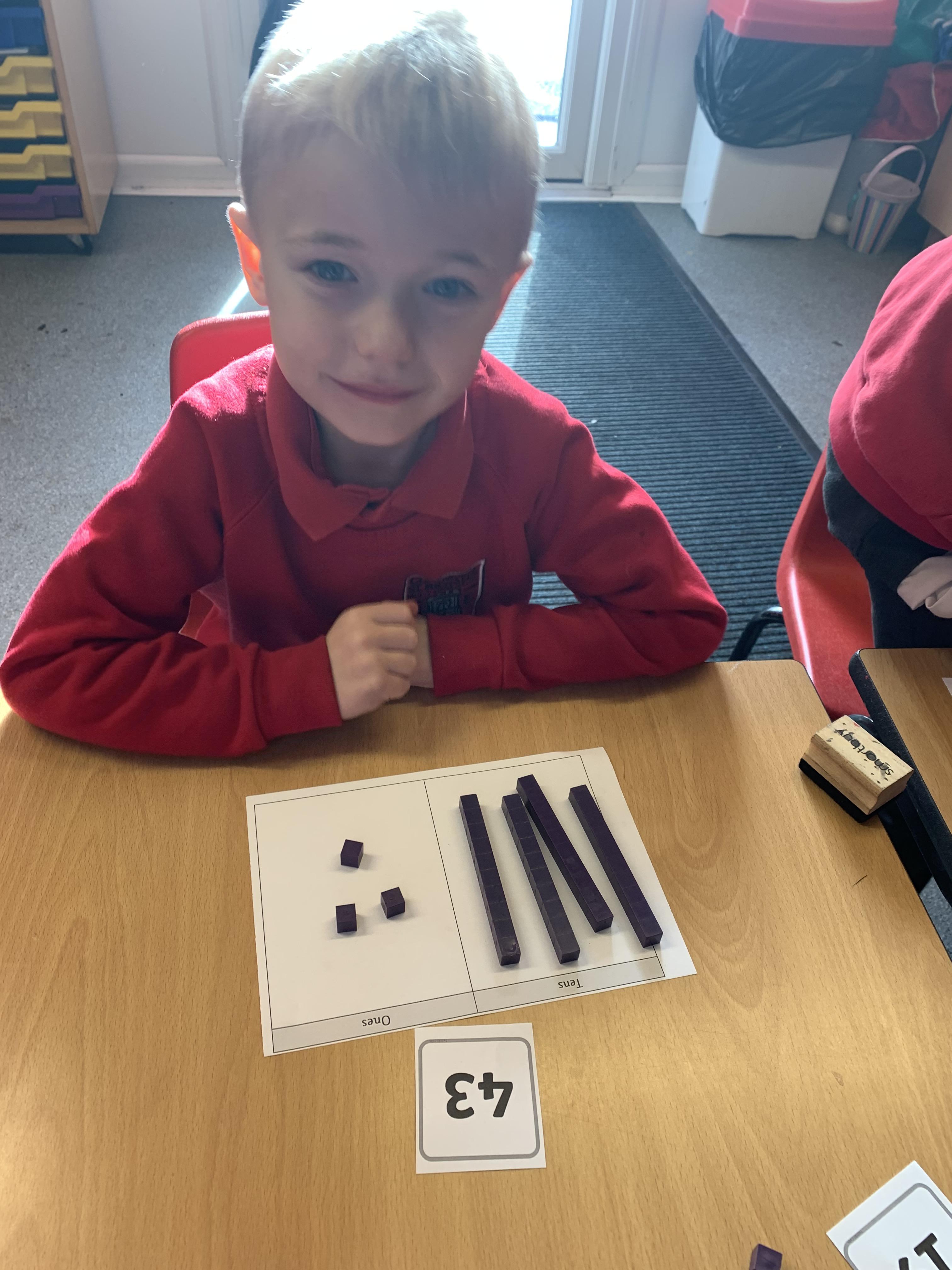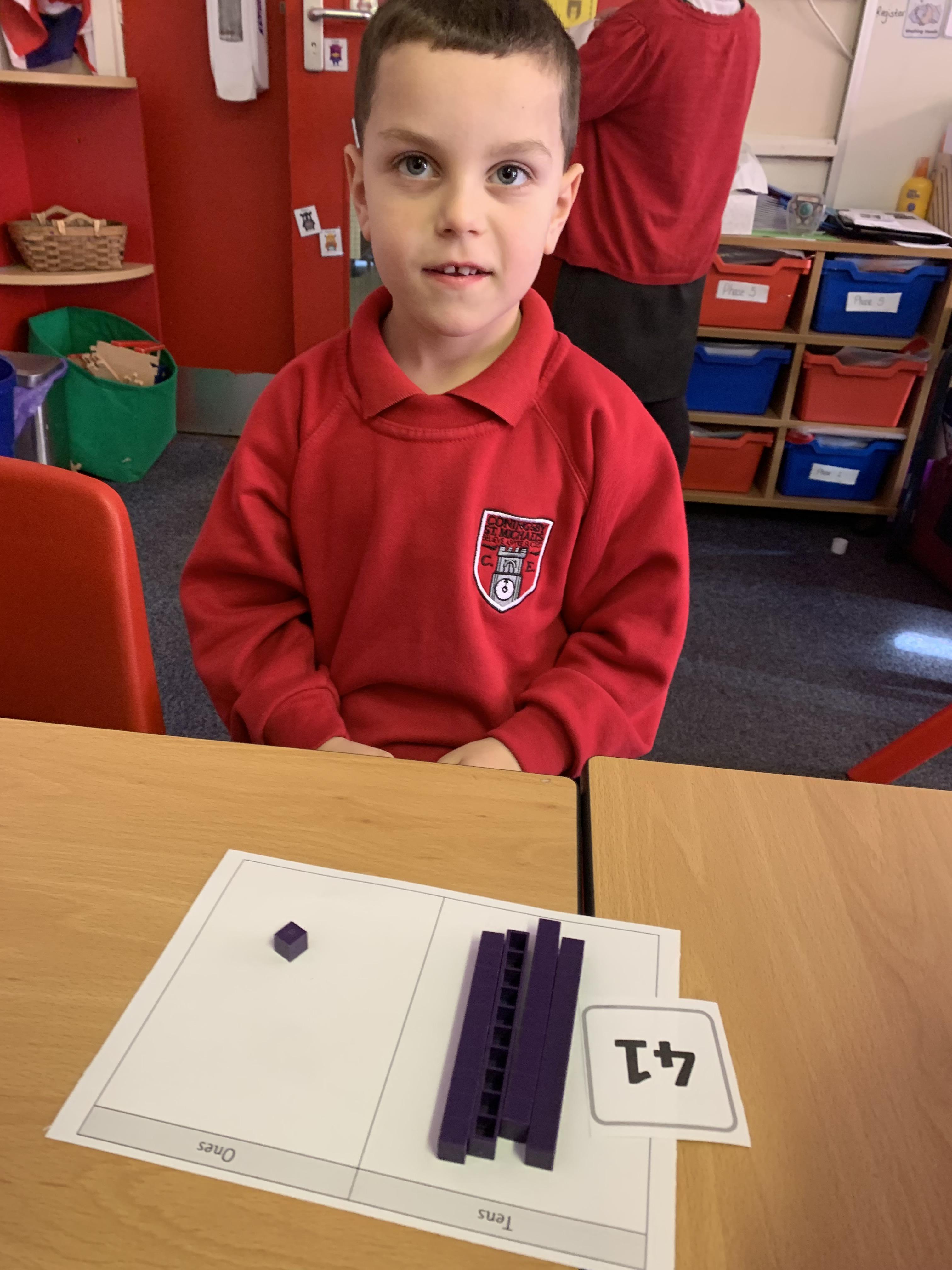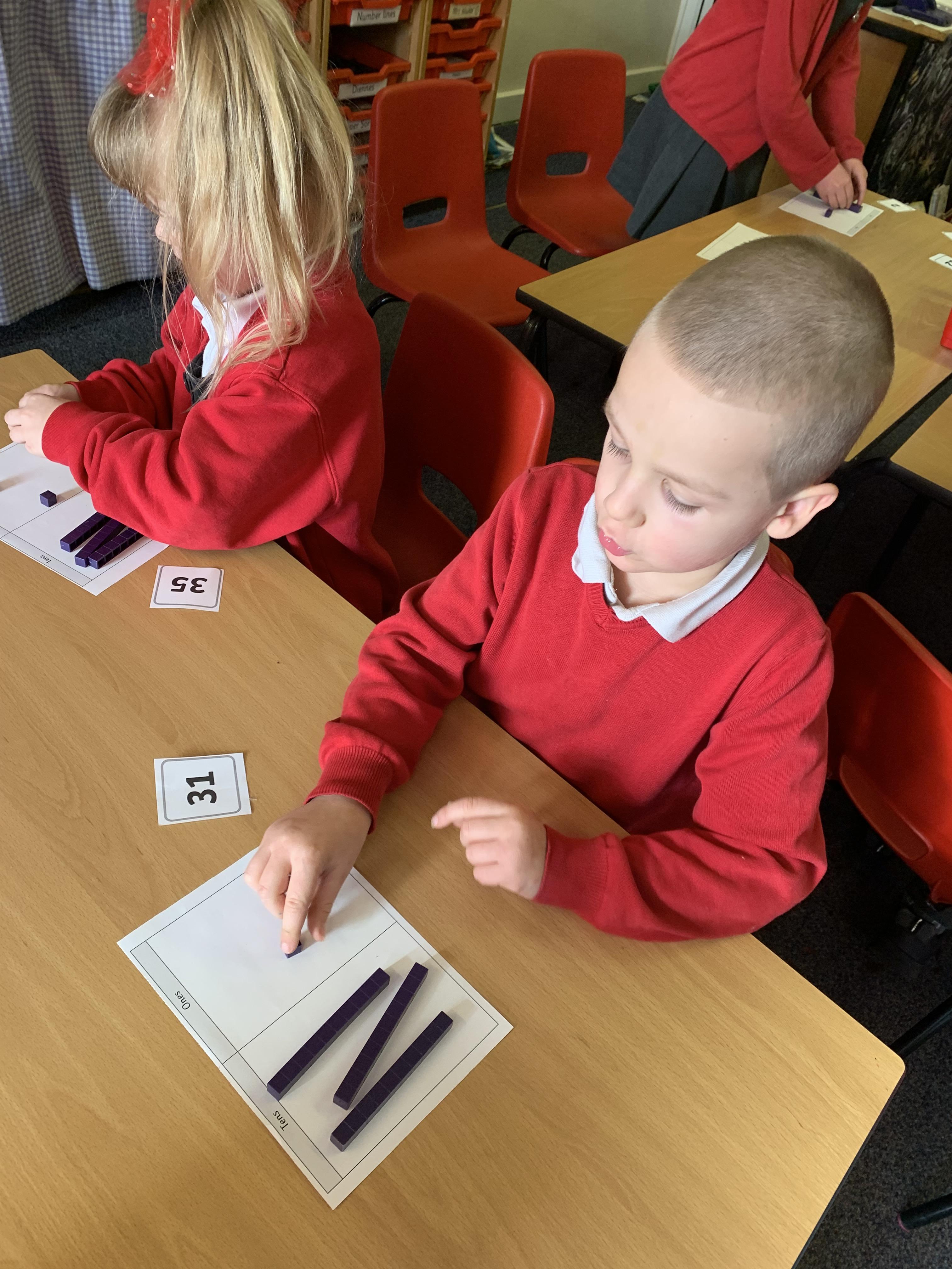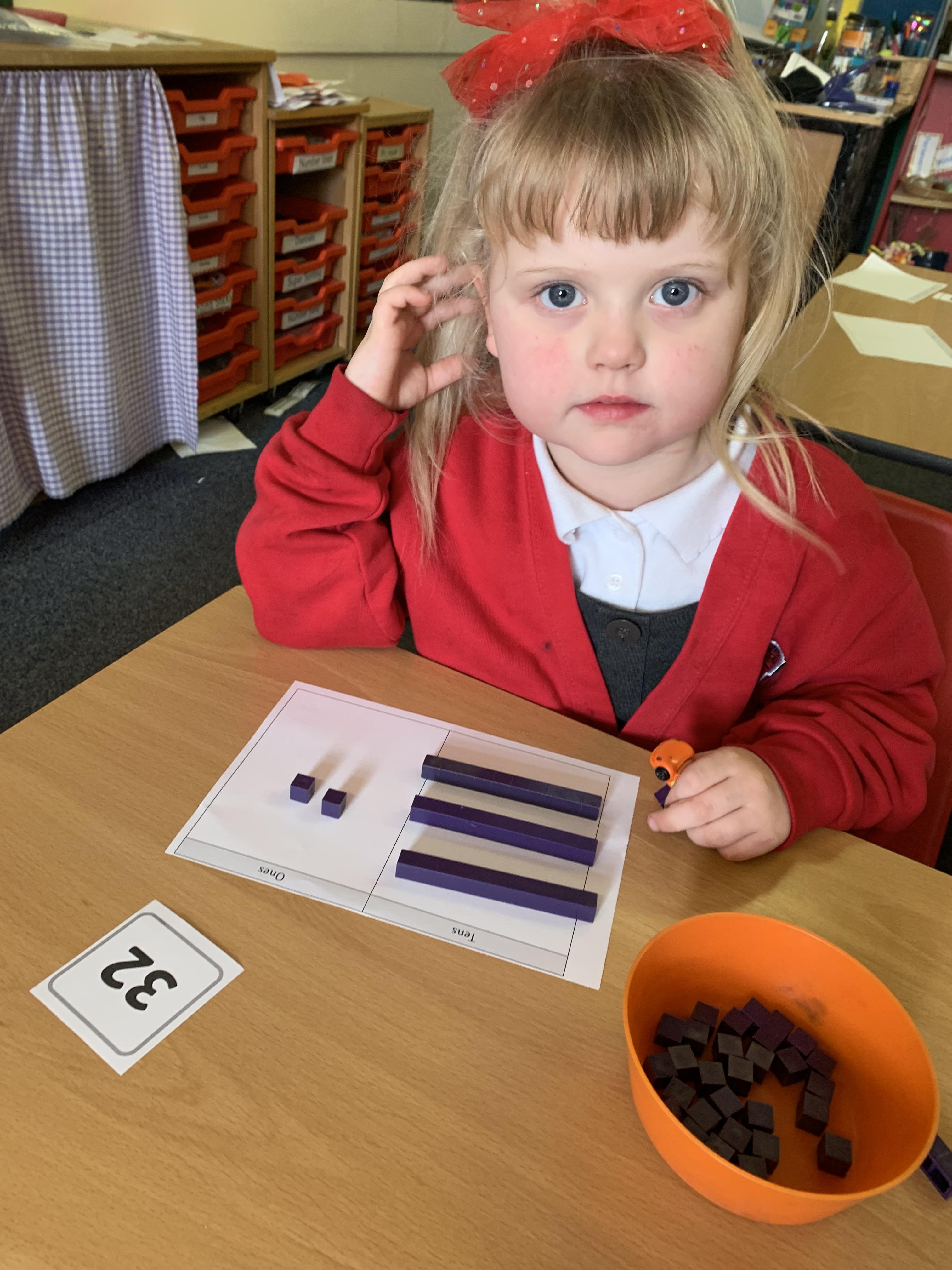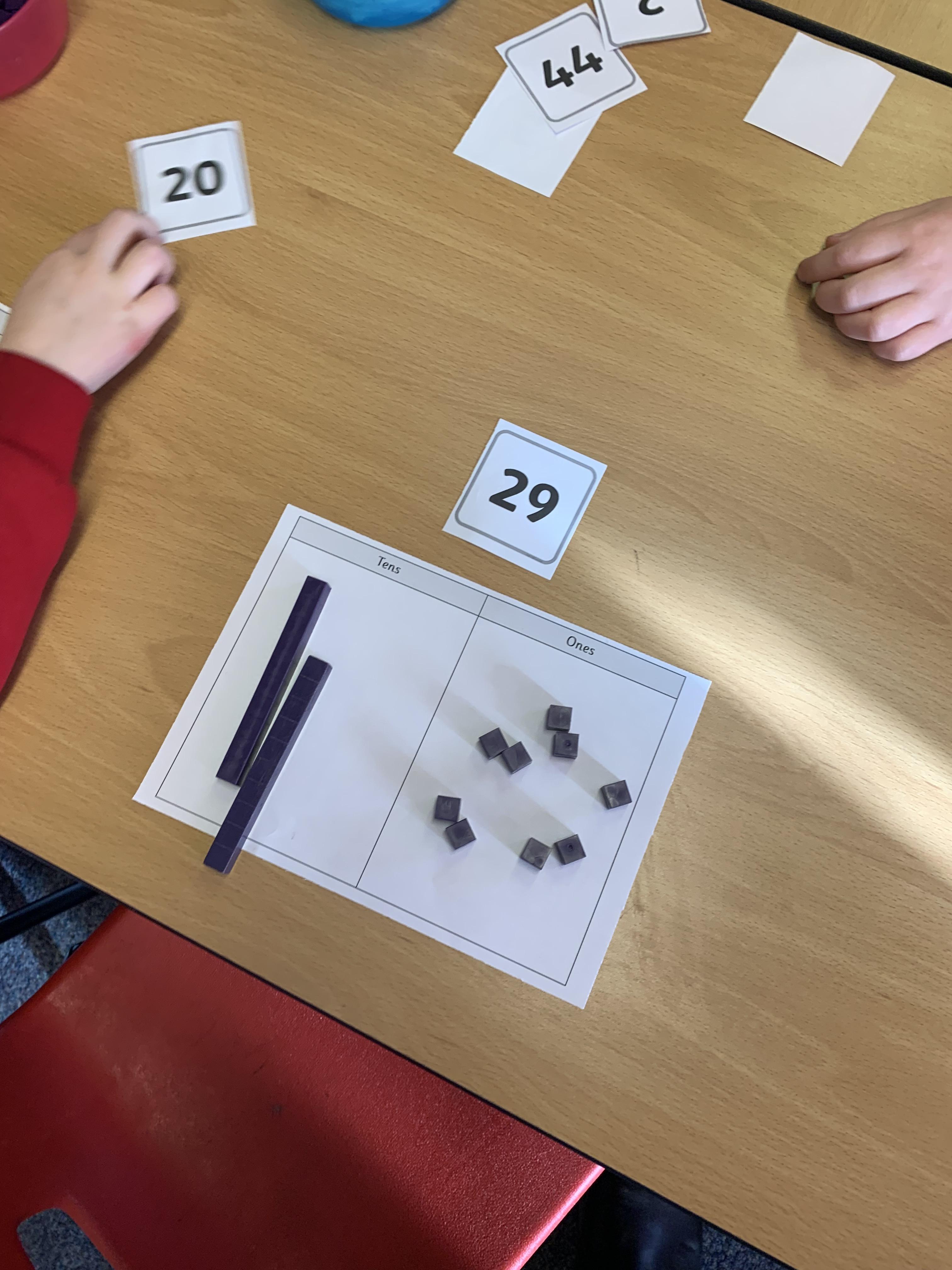 In Maths we have been finding out about numbers to 50. We built numbers using tens and ones. Can you see the numbers we have made?