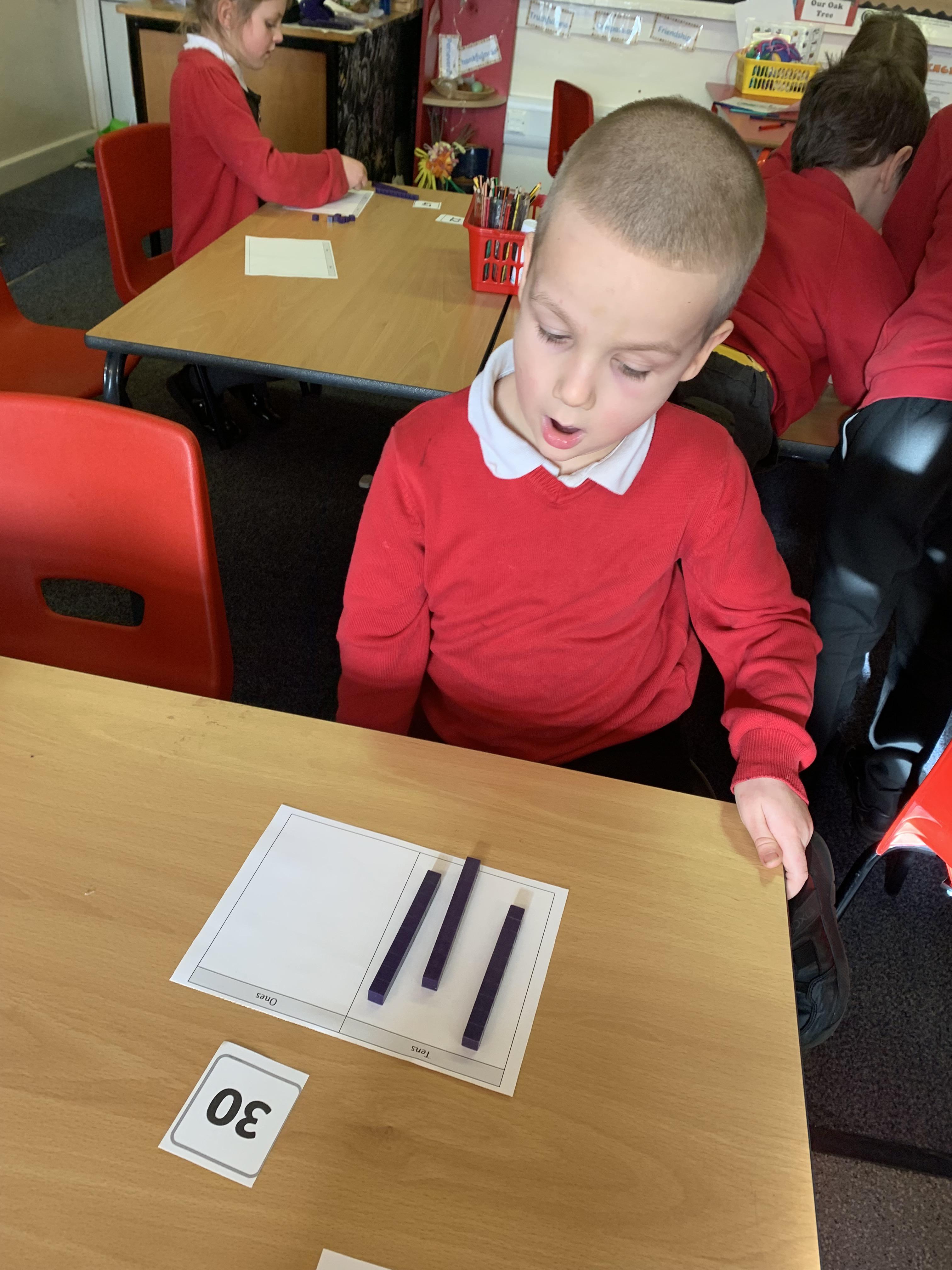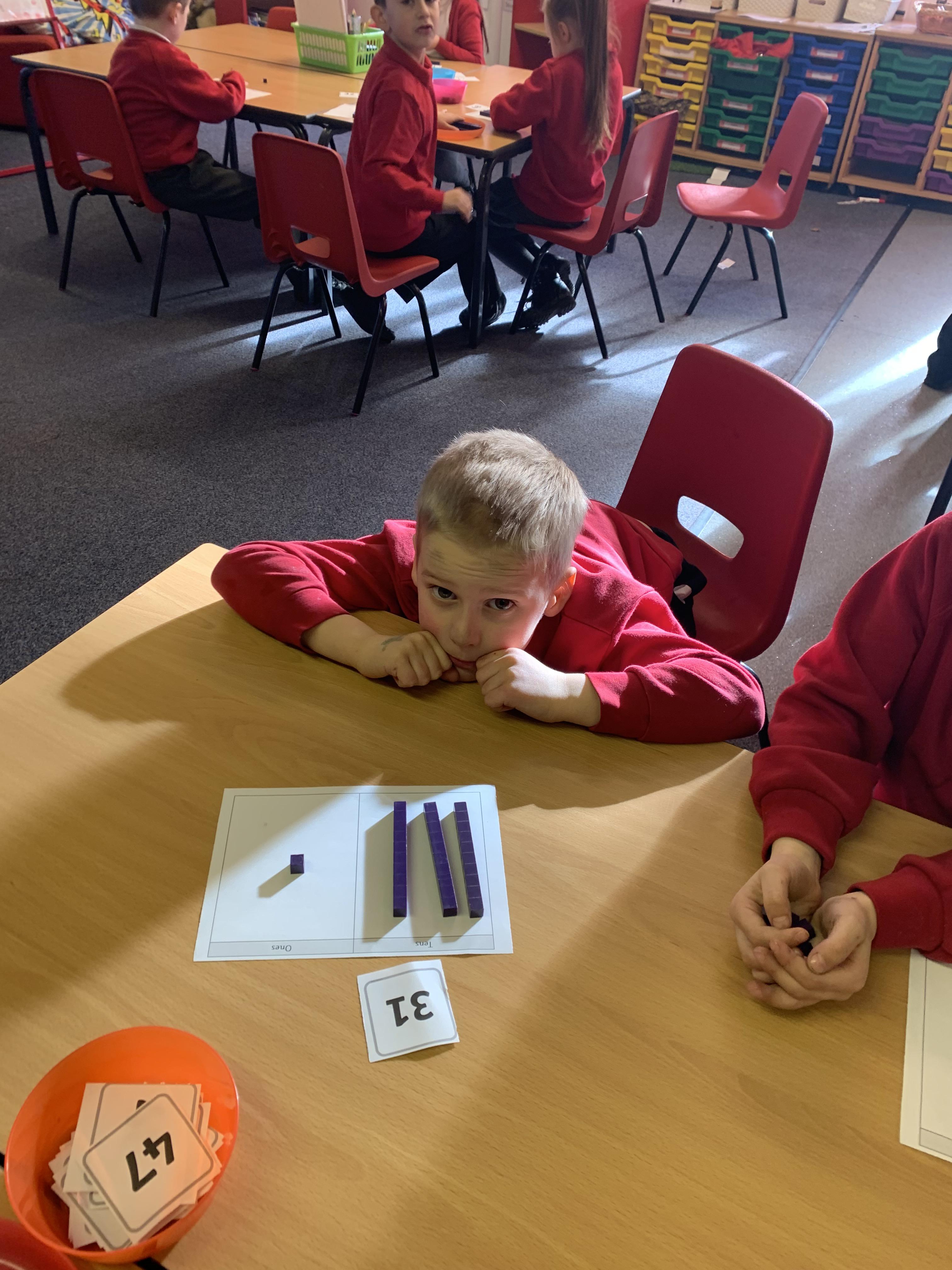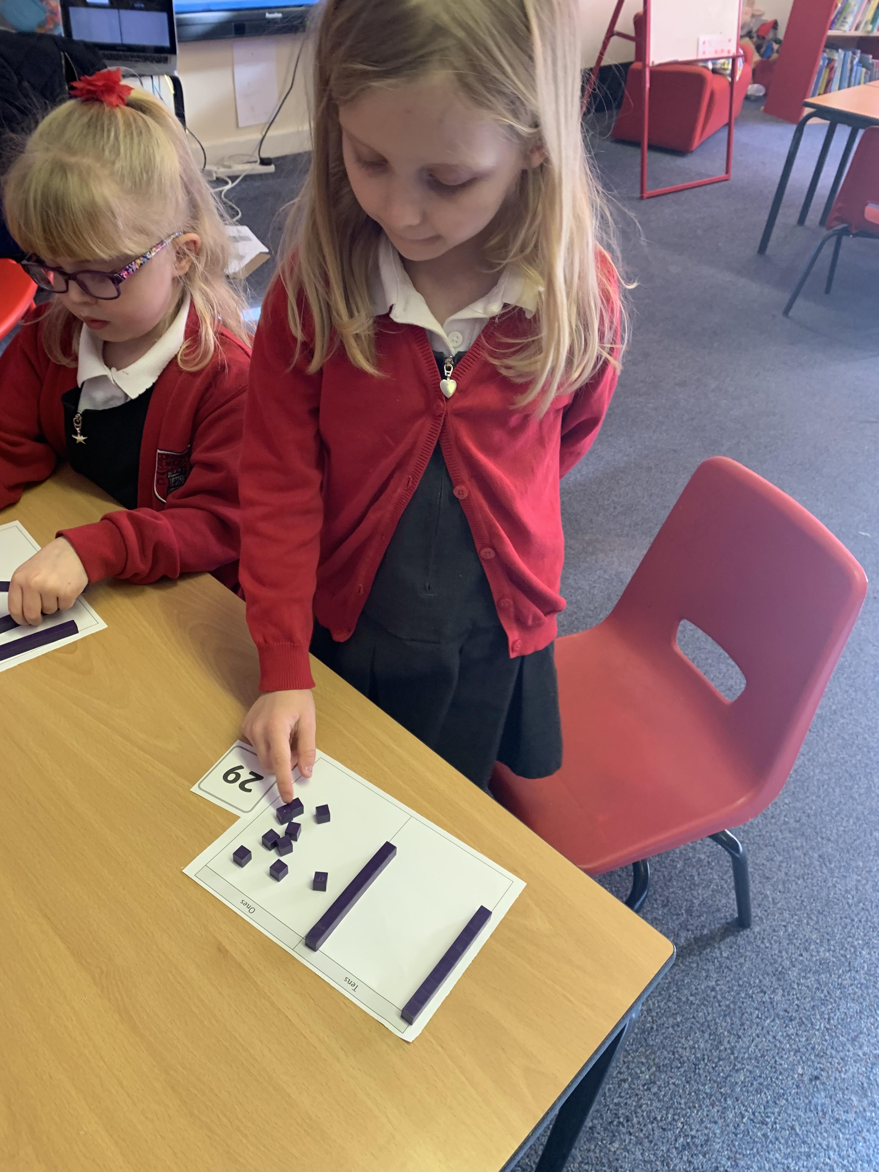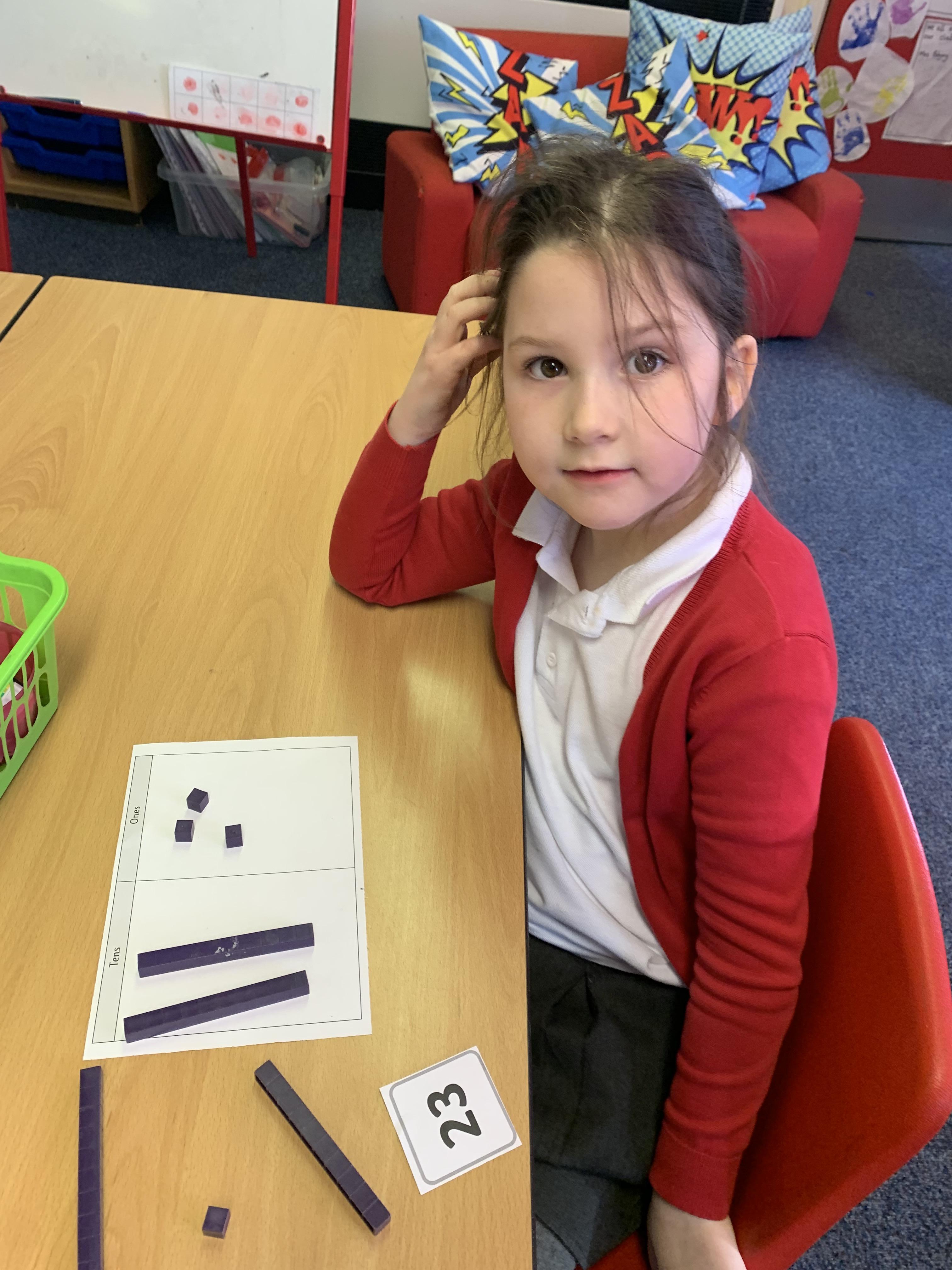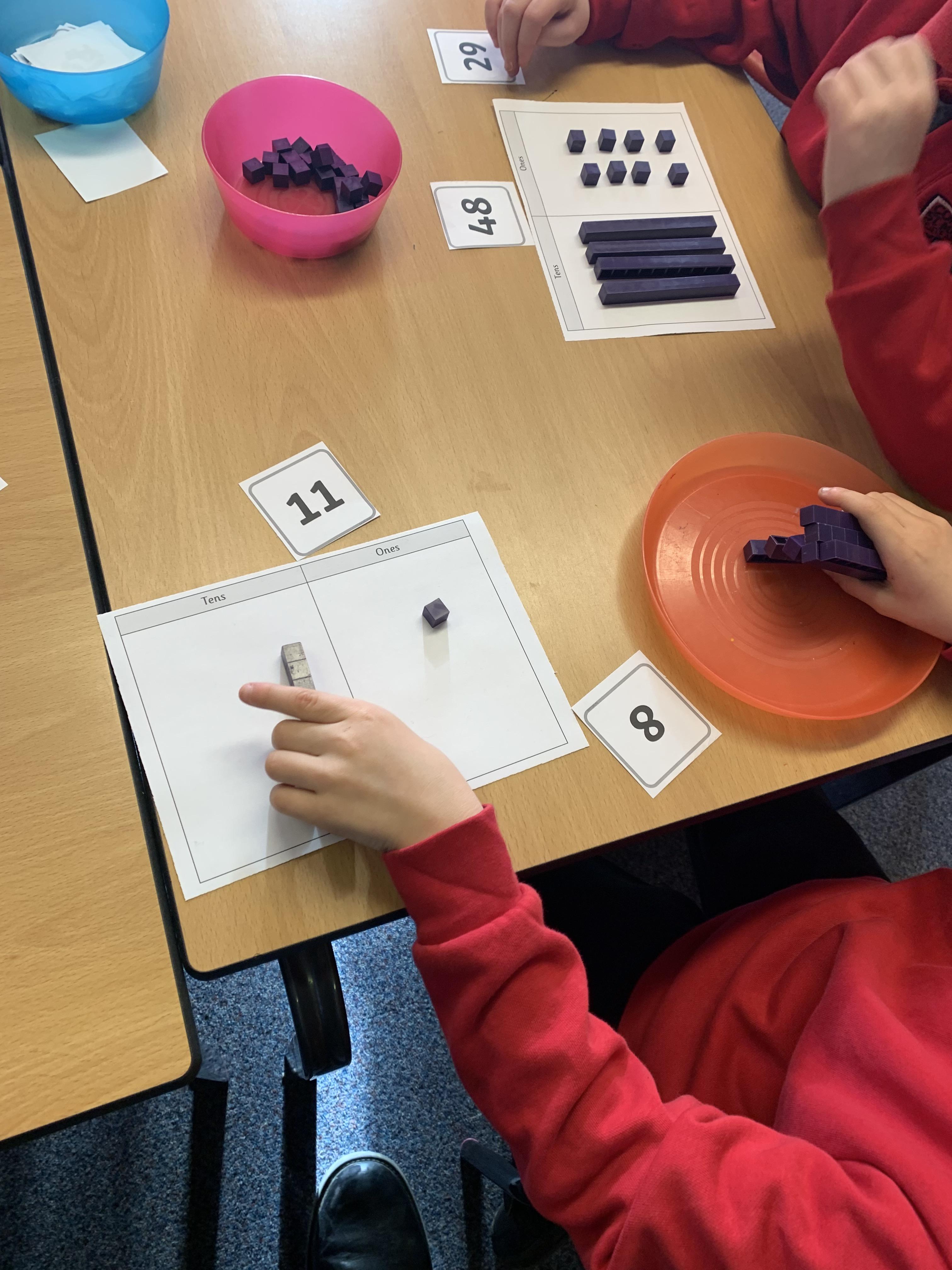 In Maths we have been finding out about numbers to 50. We built numbers using tens and ones. Can you see the numbers we have made?