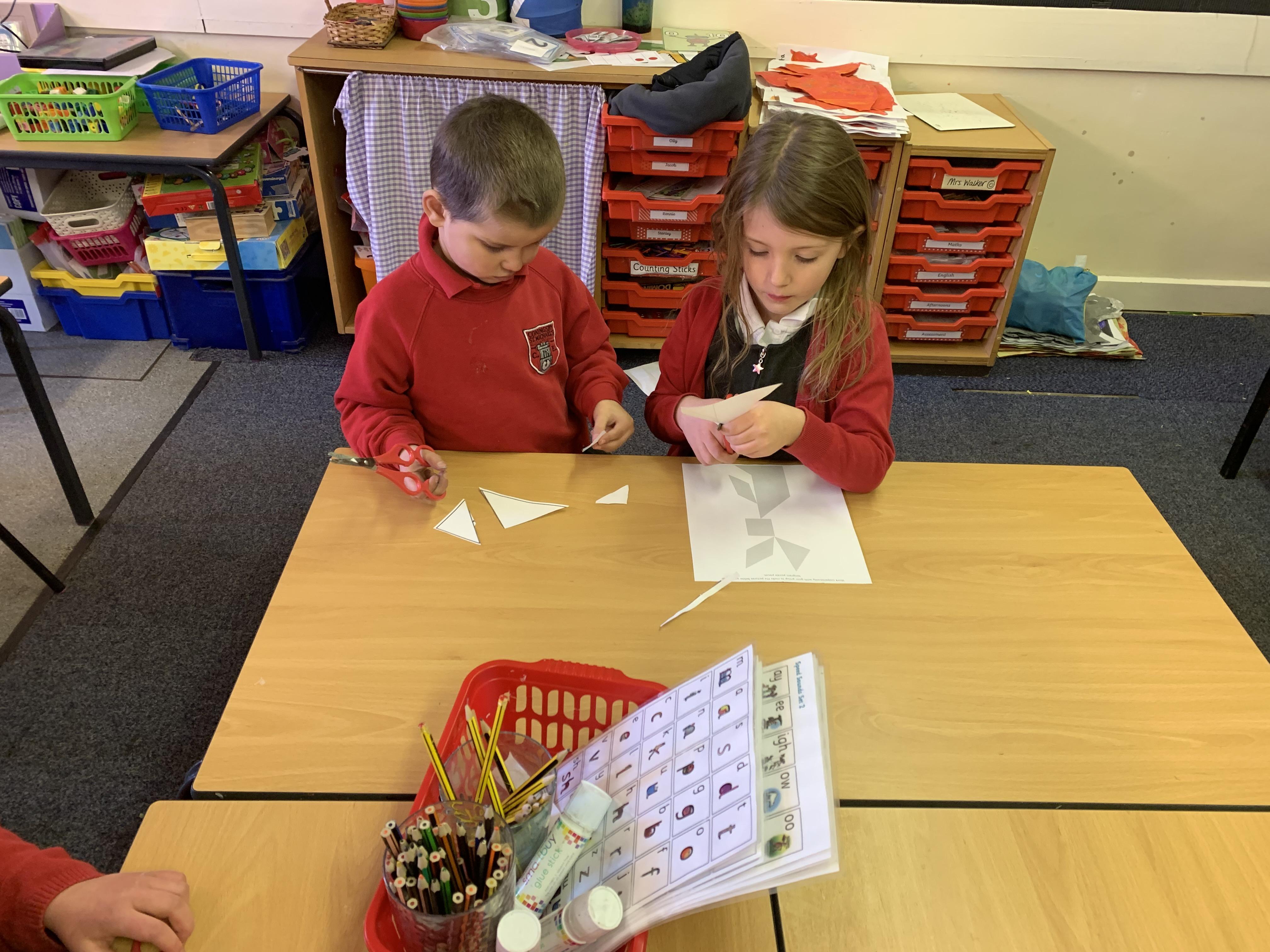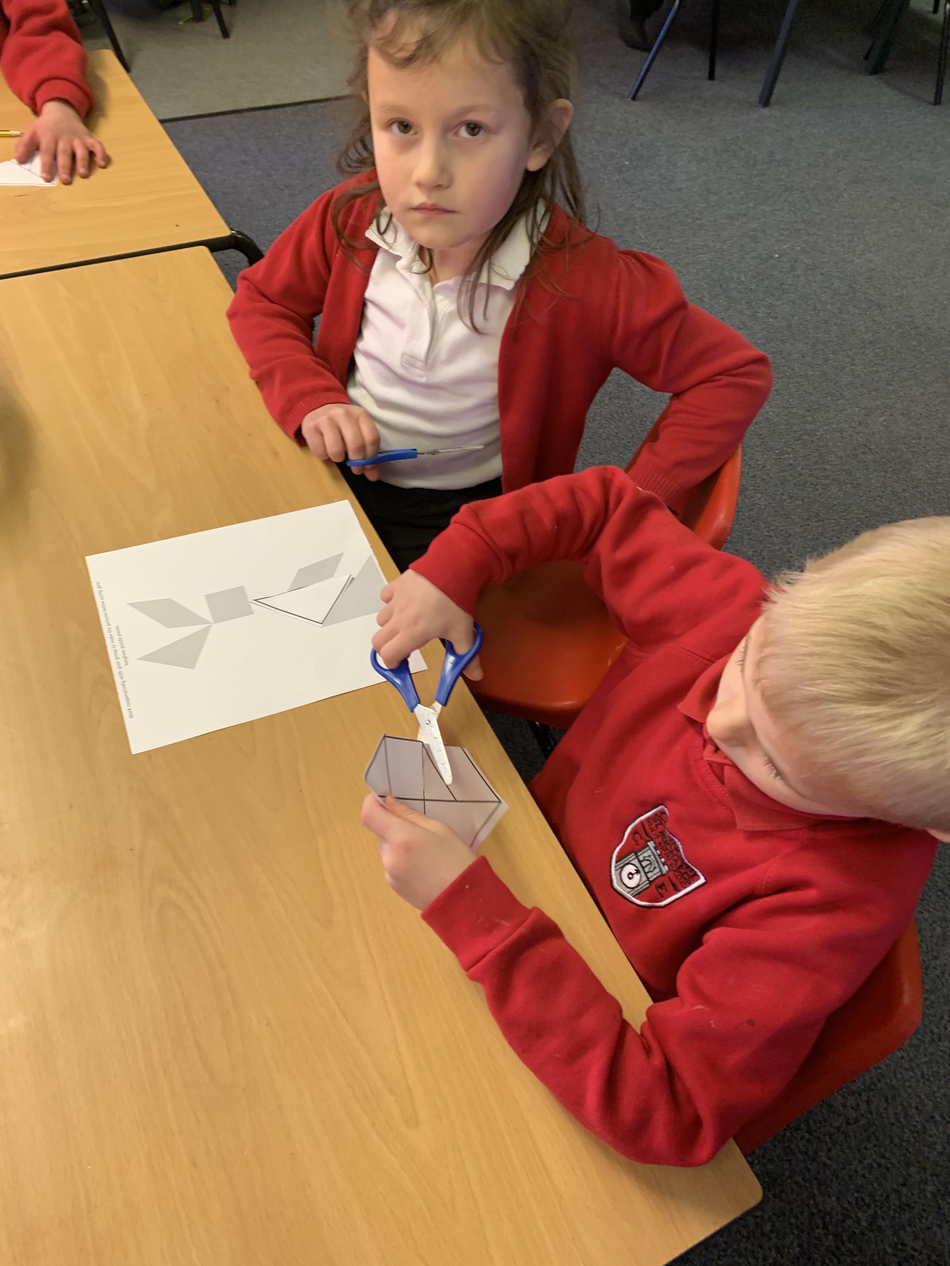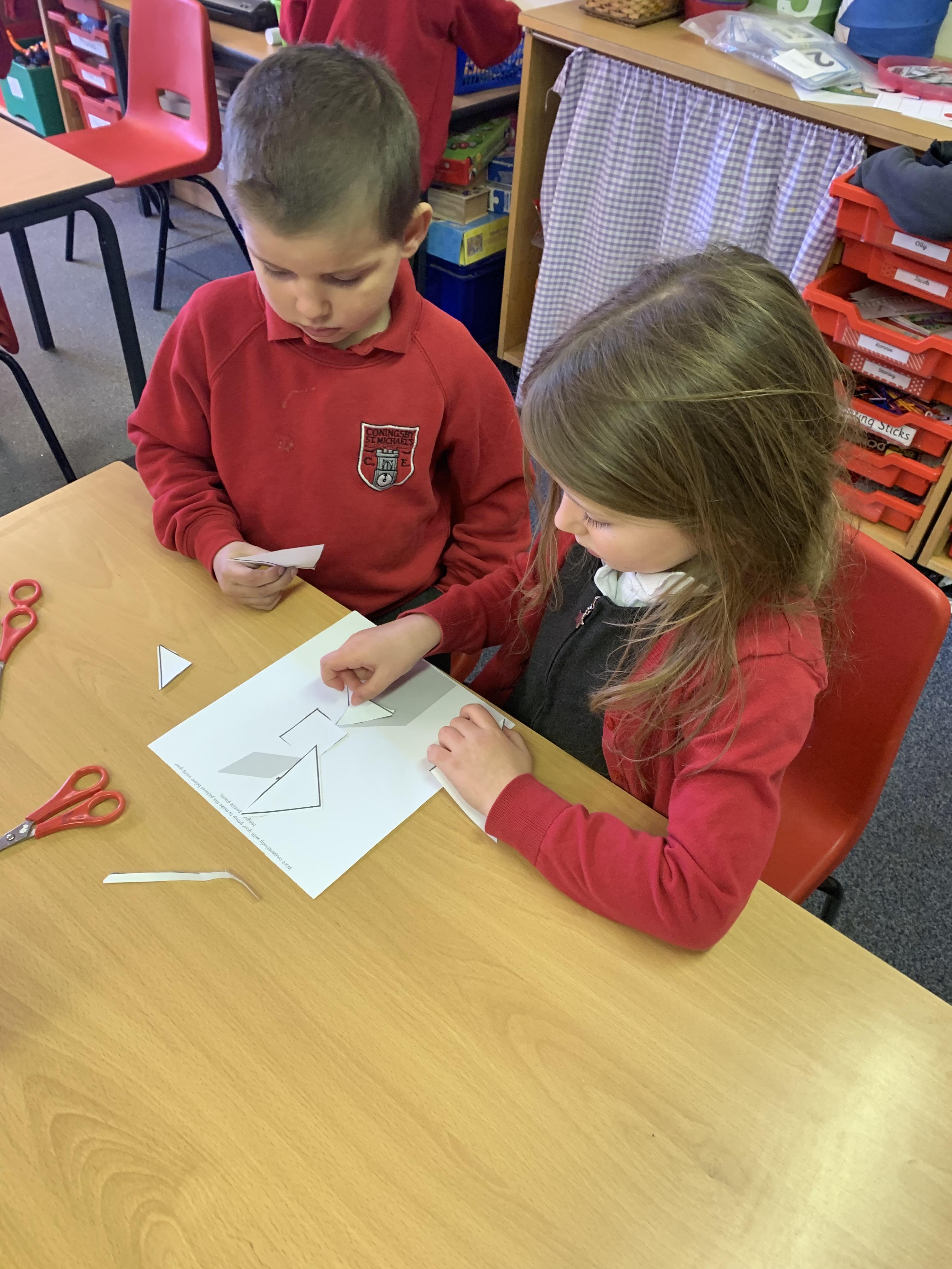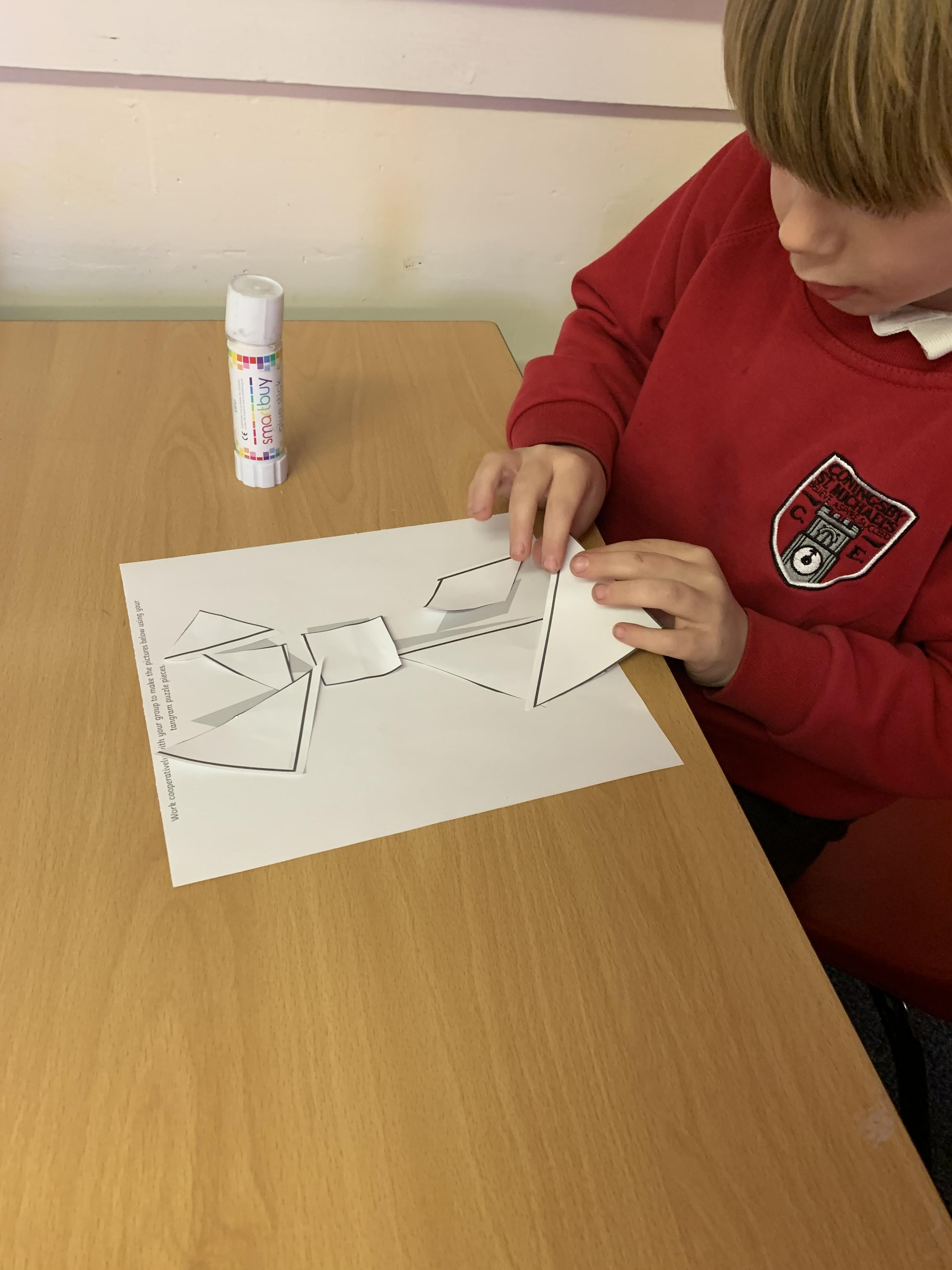 Team work makes the dream work! In our PSHE we had to work cooperatively with a partner to work out the tangram picture. It was tricky but when we worked together we got the job done!