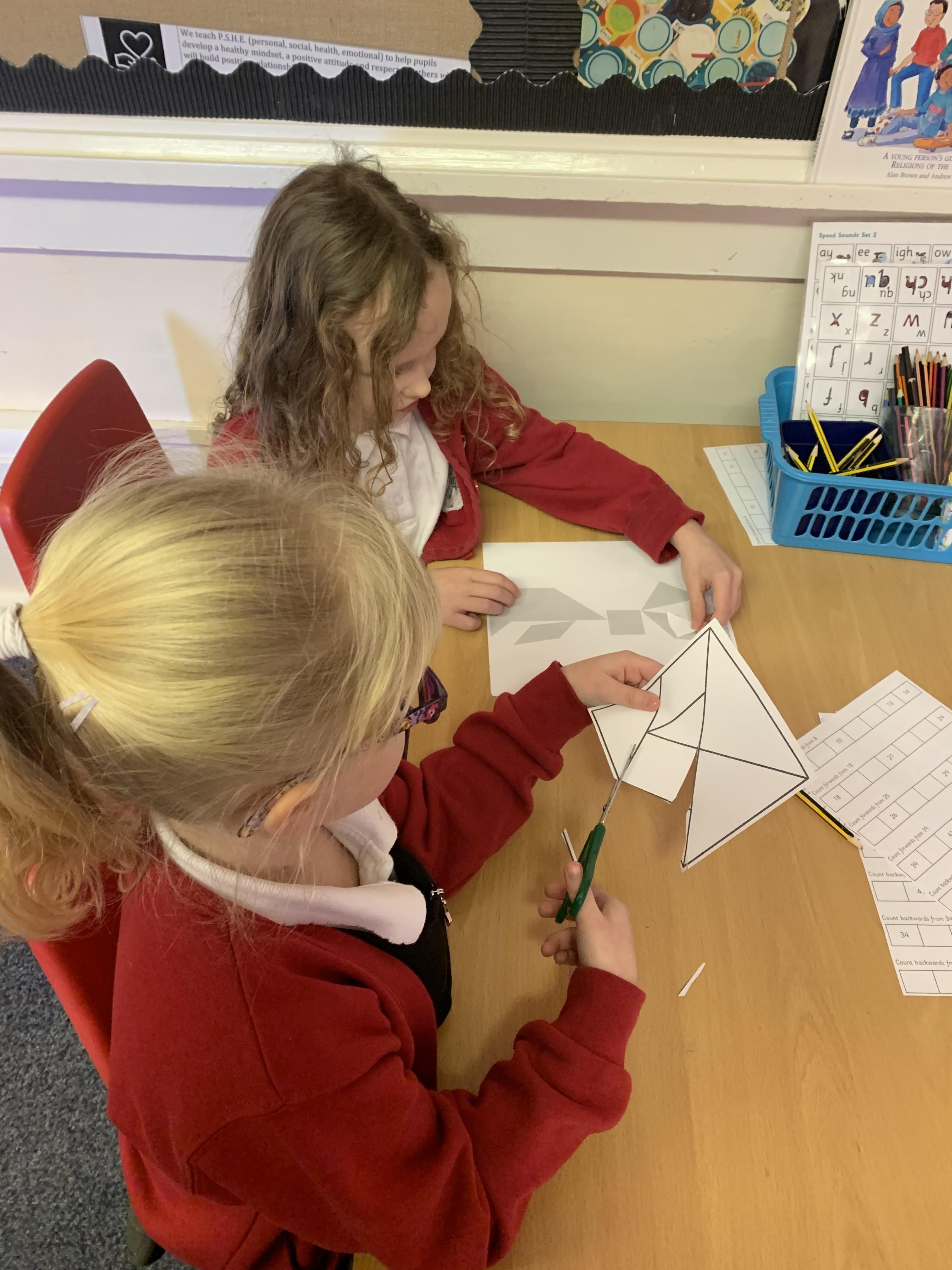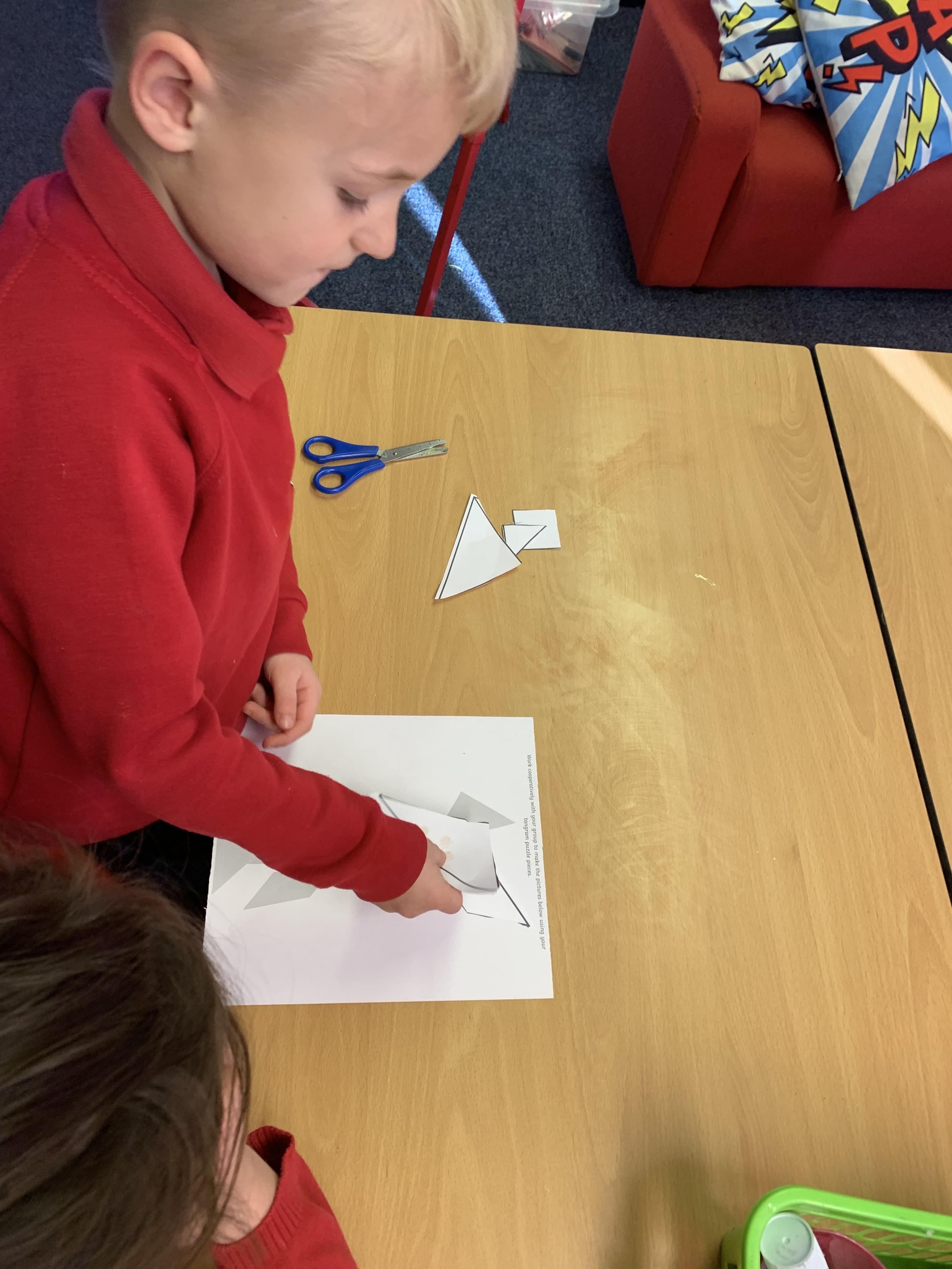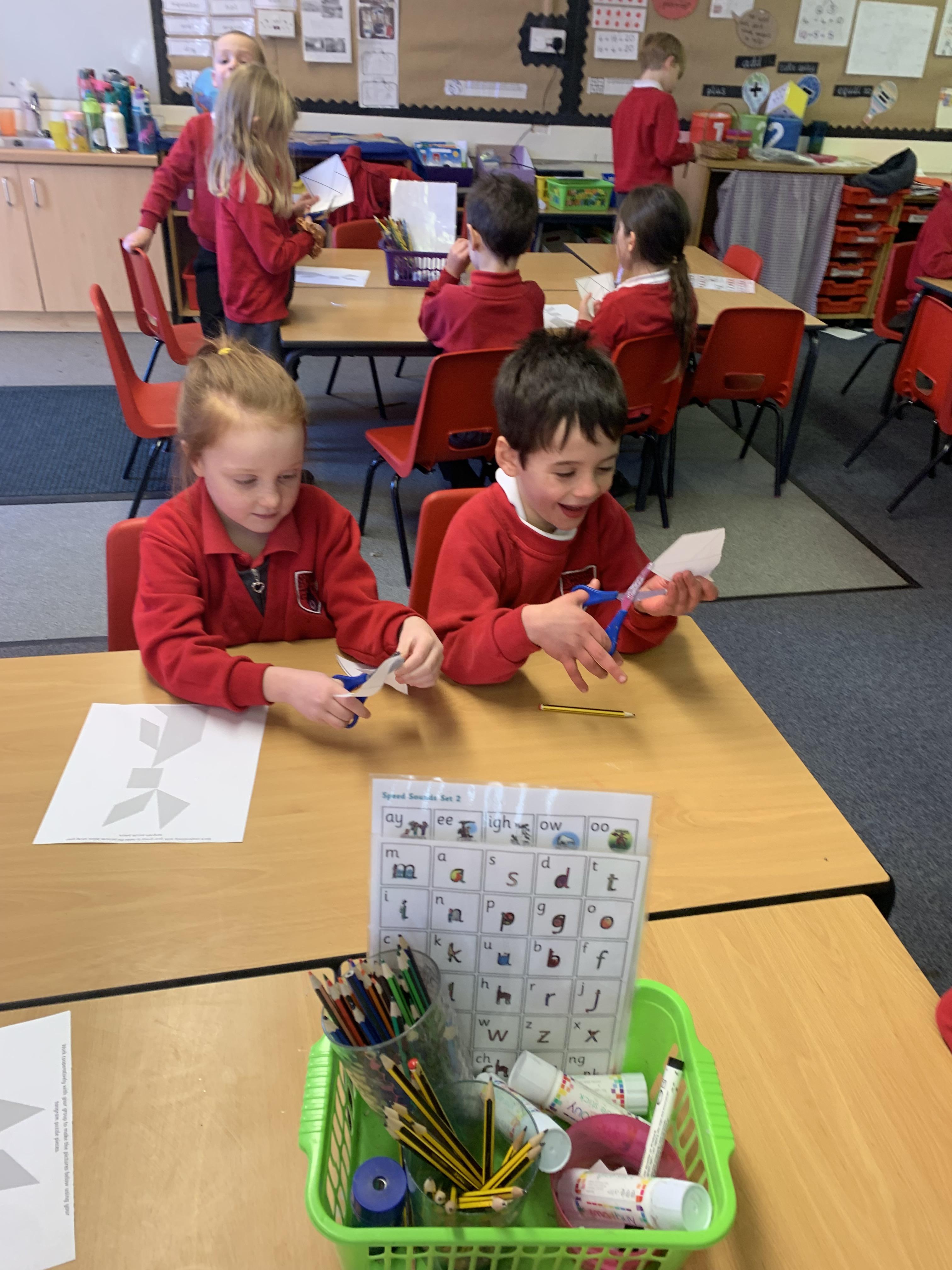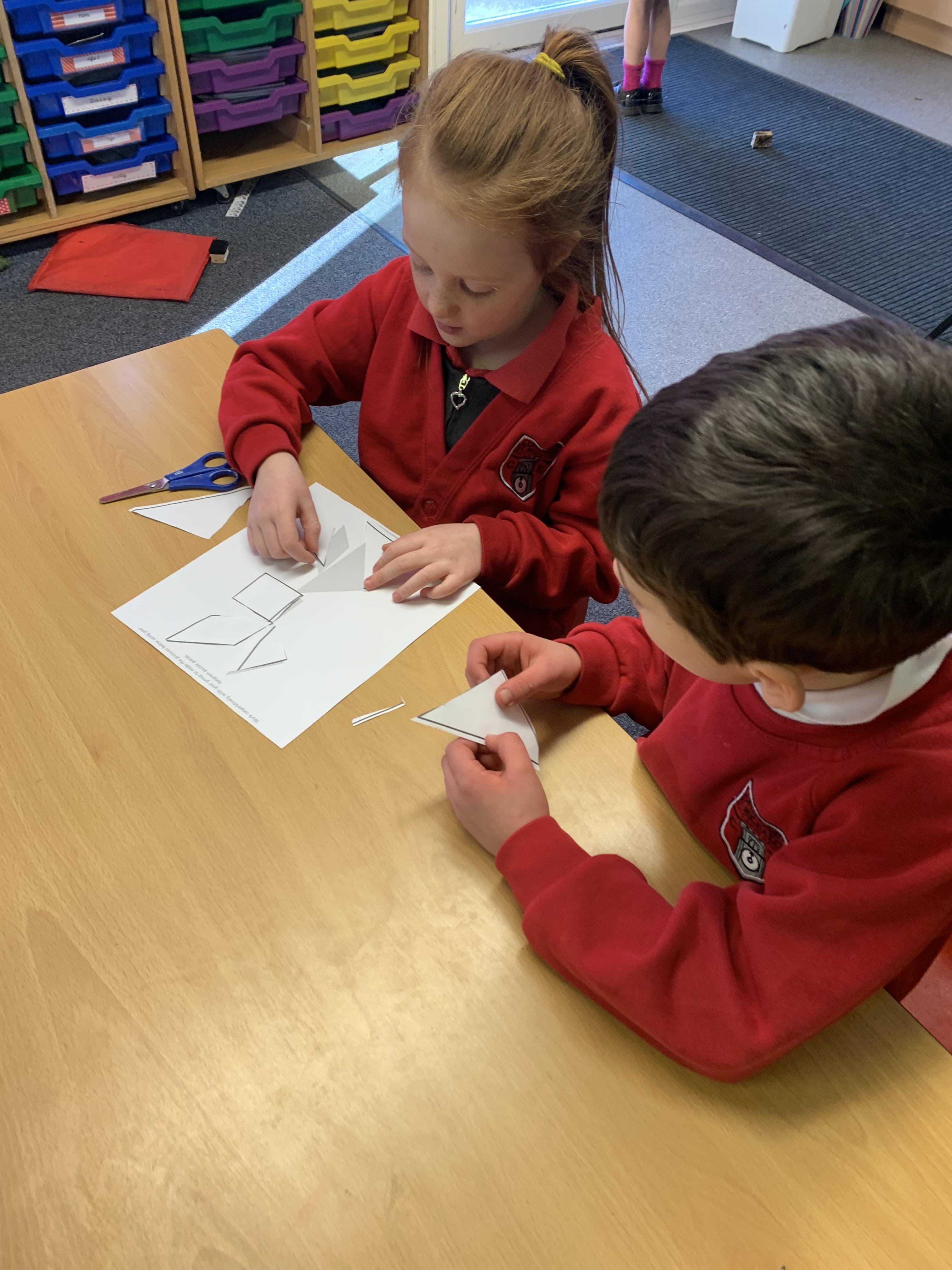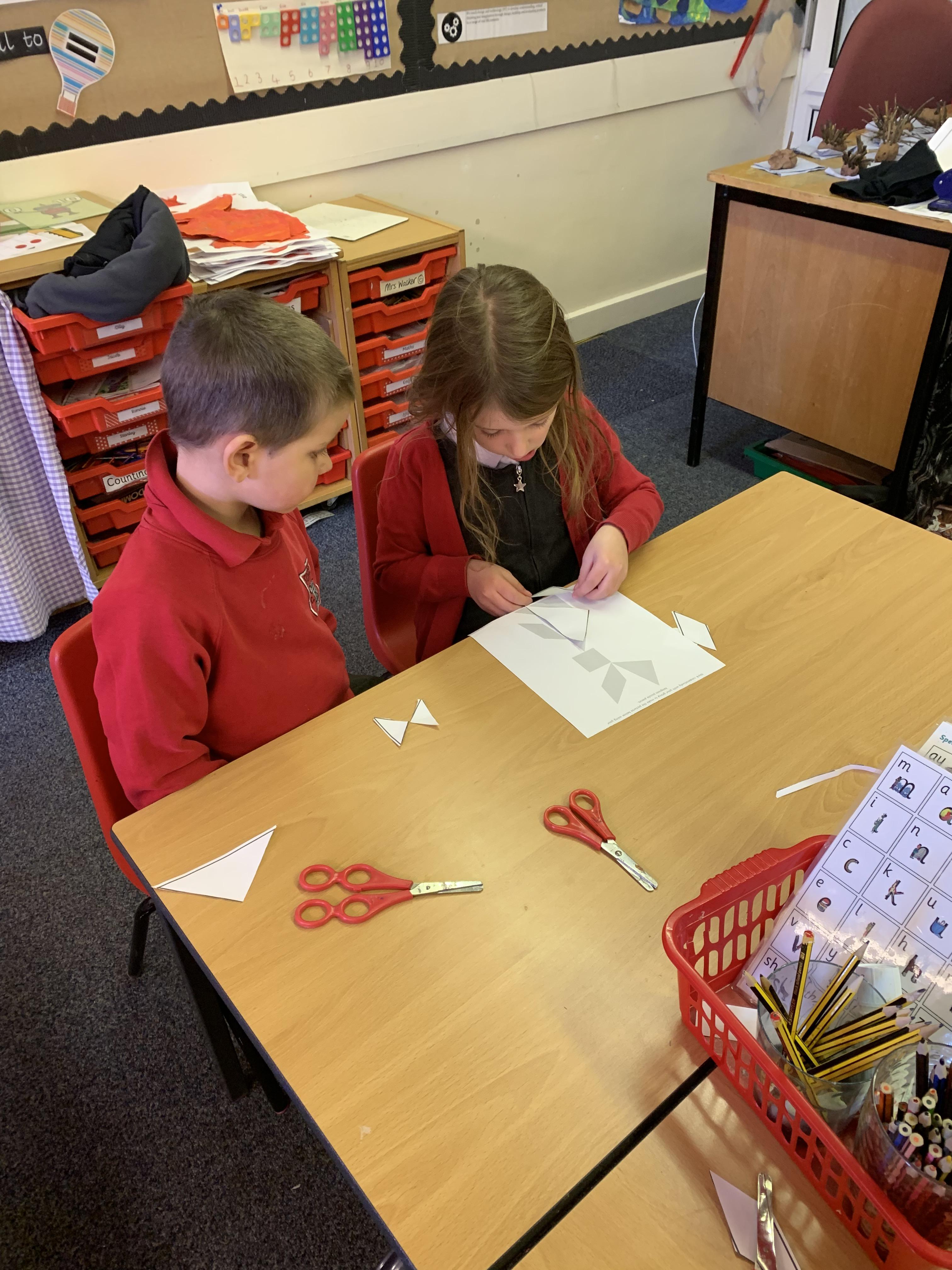 Team work makes the dream work! In our PSHE we had to work cooperatively with a partner to work out the tangram picture. It was tricky but when we worked together we got the job done!