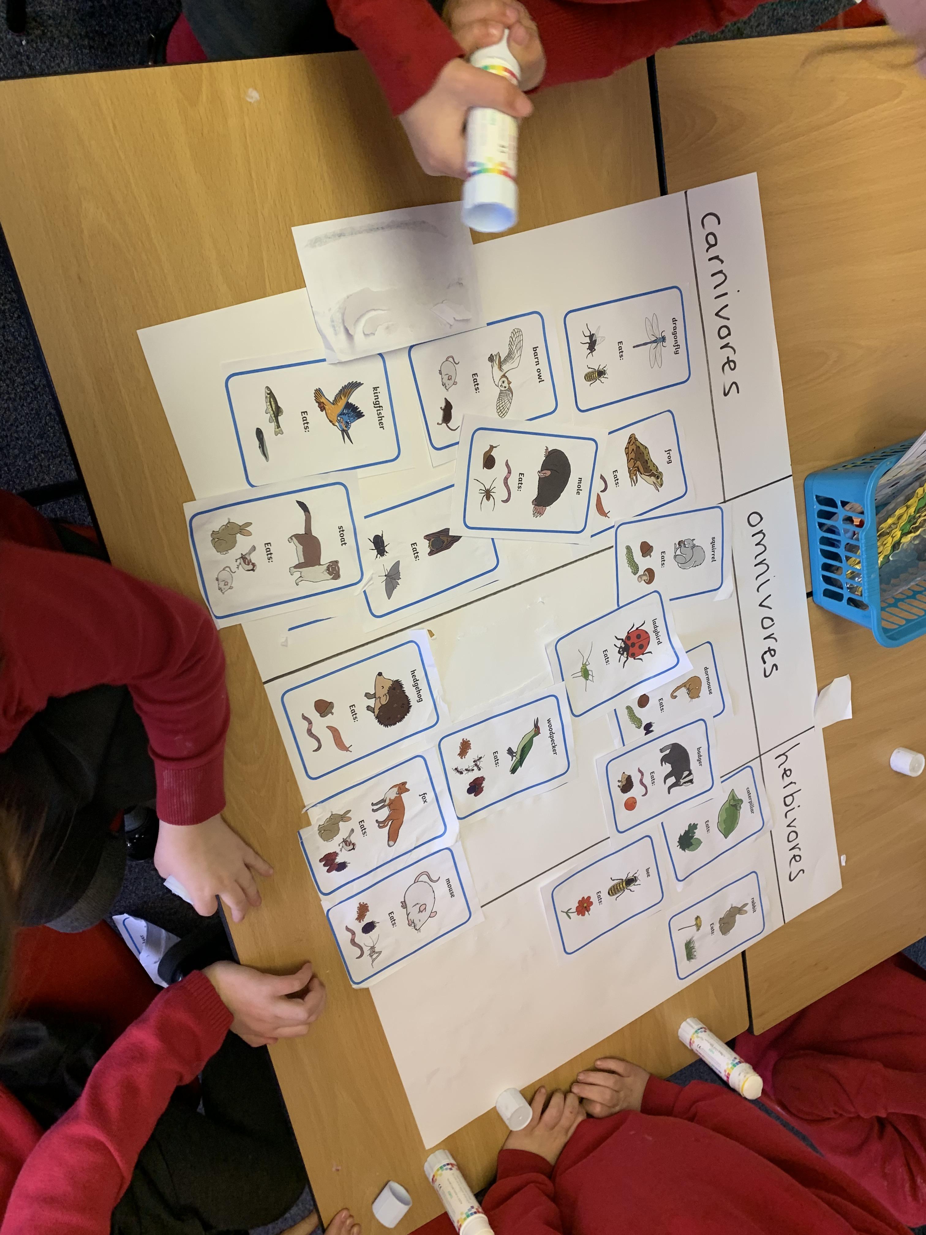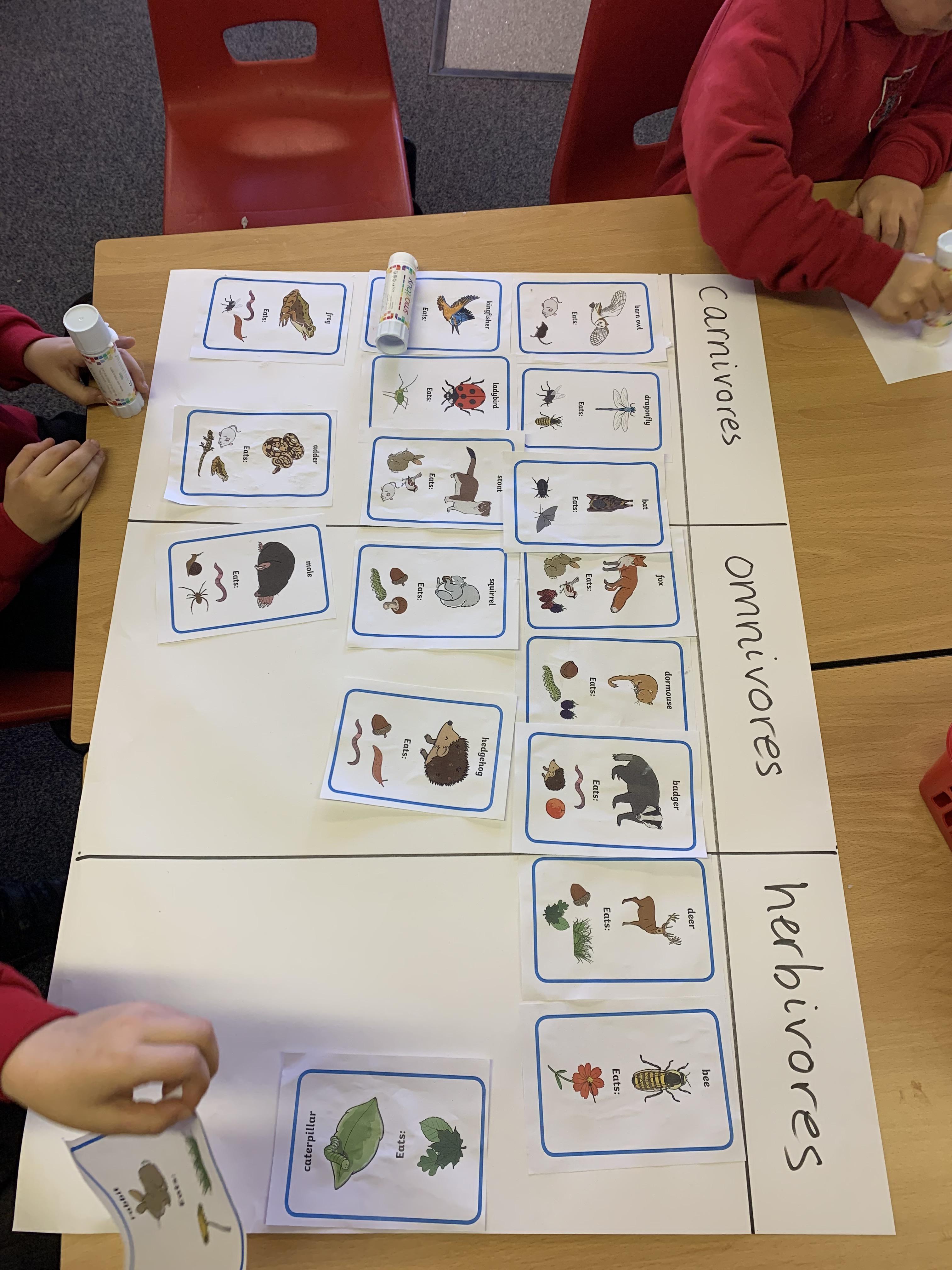 In science we found out about carnivores, herbivores and omnivores. We sorted animals by what they eat.
