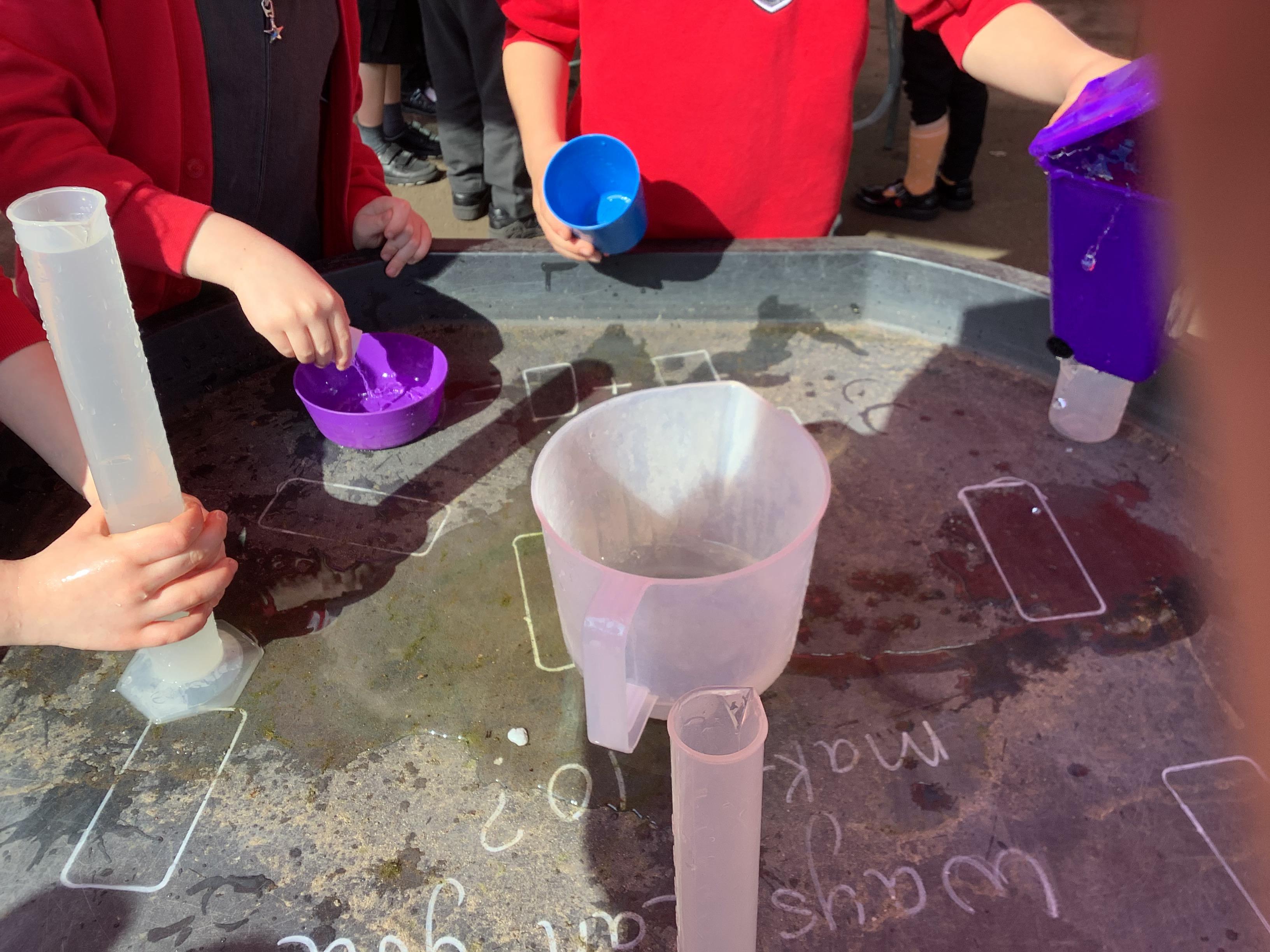 In Maths this week, we have been exploring capacity and volume. Today we measured capacity by exploring how many smaller containers would fill a large container.