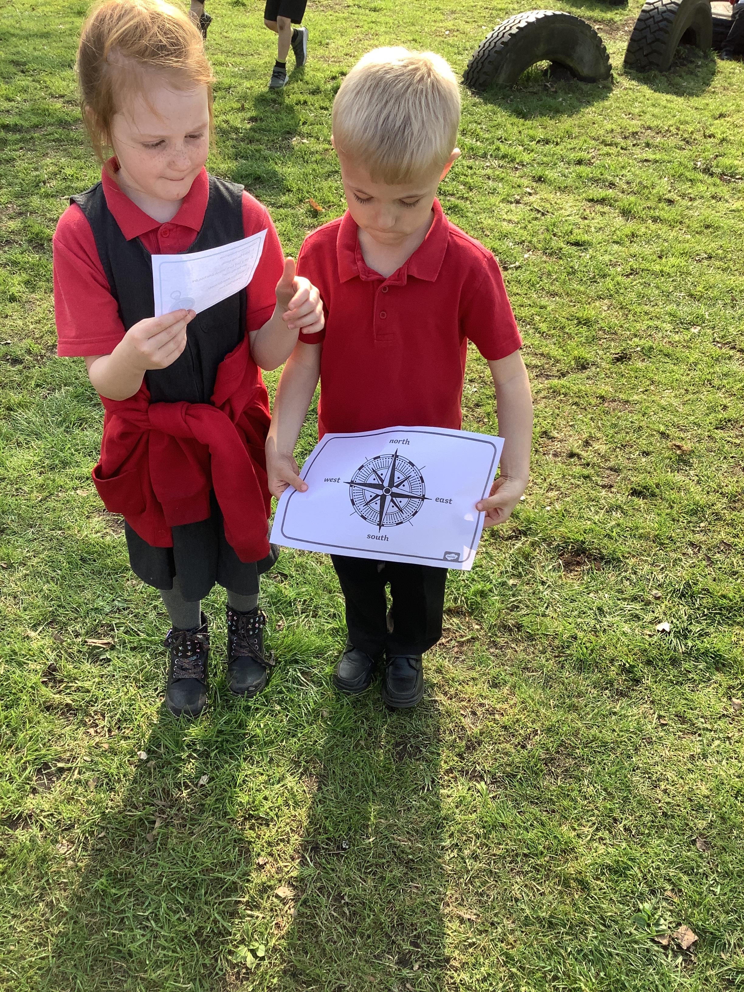 In Geography we looked at the four main points of a compass. We thought of different ways we could remember them and gave each other instructions to follow.