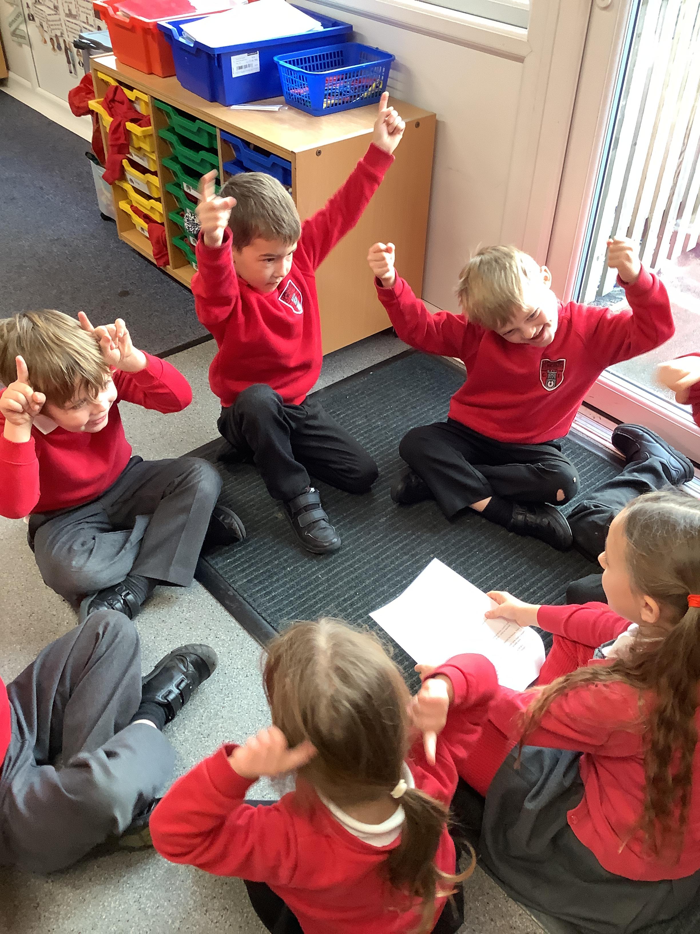 In English we used actions to act out the story of Jack and the beanstalk. We worked in groups to practise our actions.