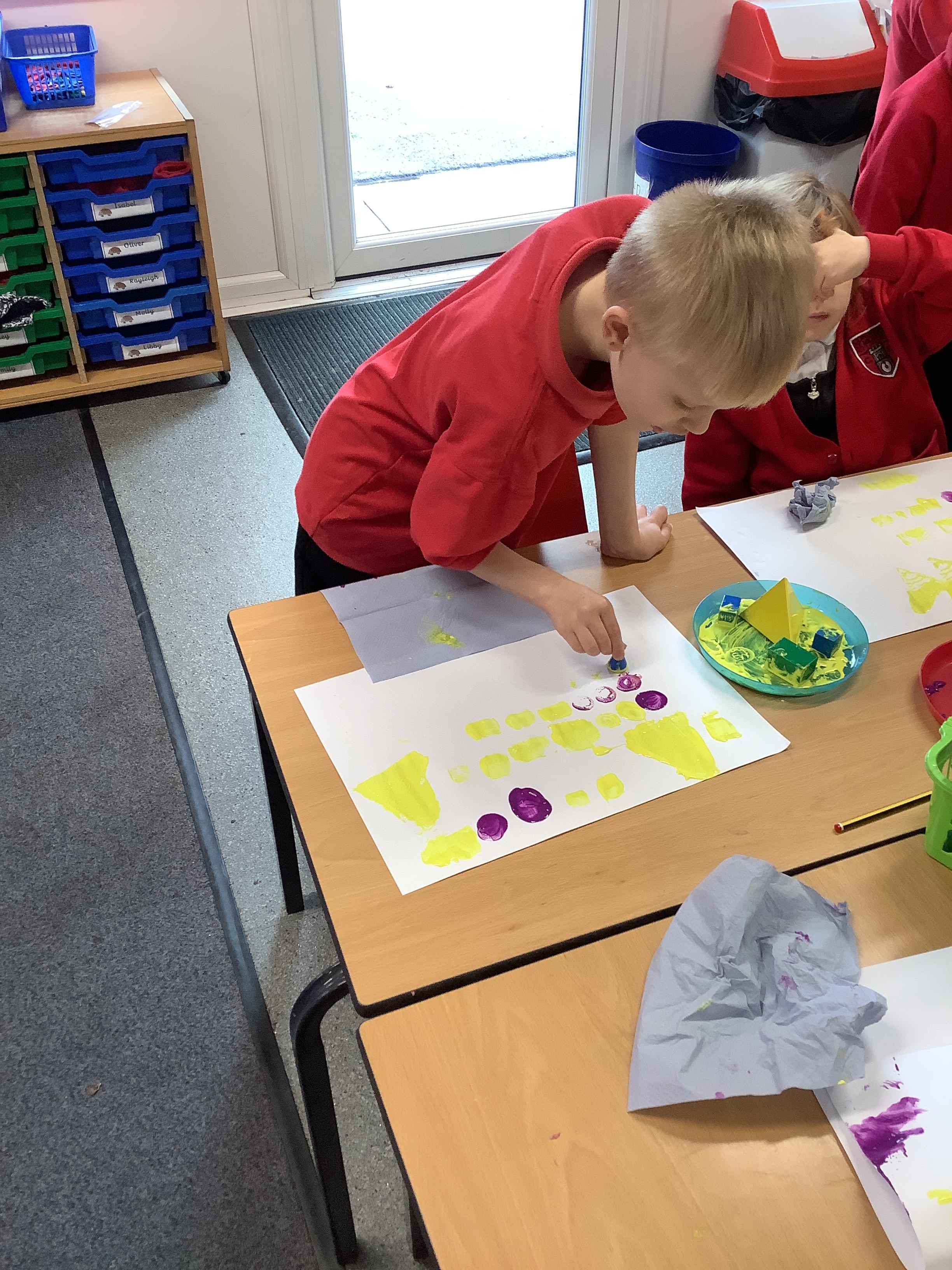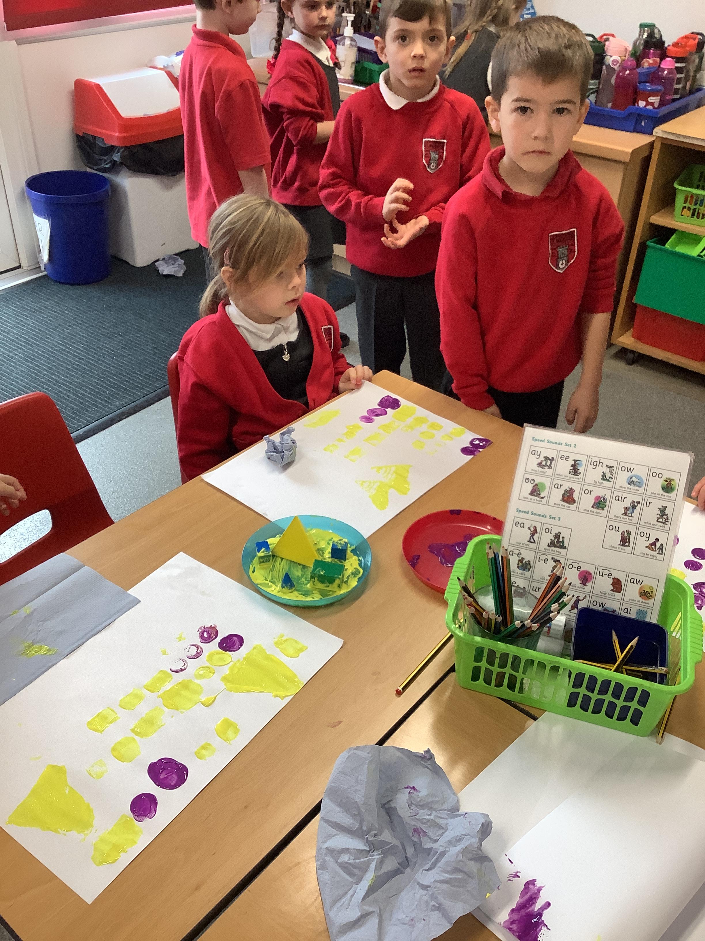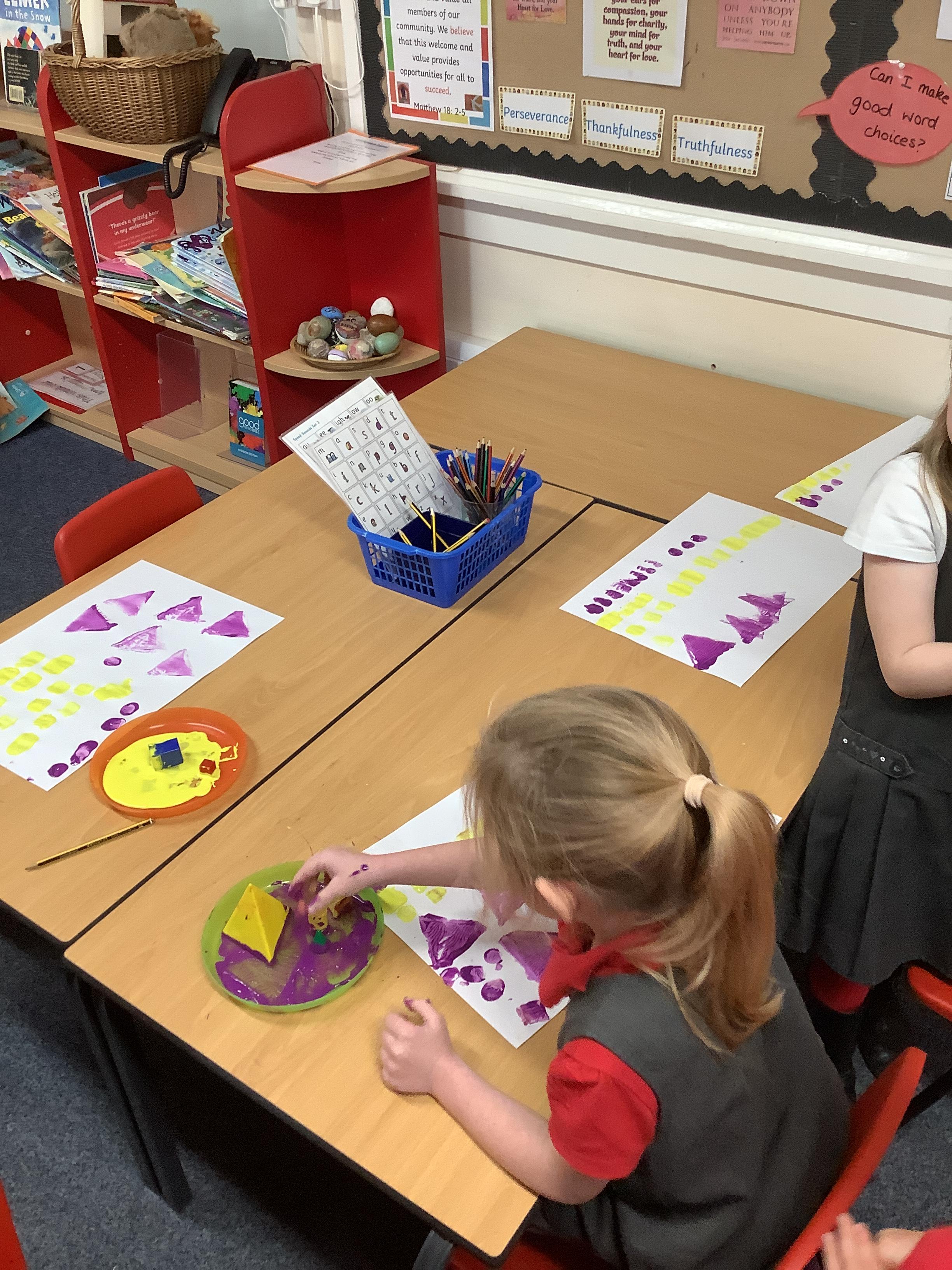 In Maths we explored 3D shapes. We printed using each shape to find out what each face on a 3D shape looks like.
