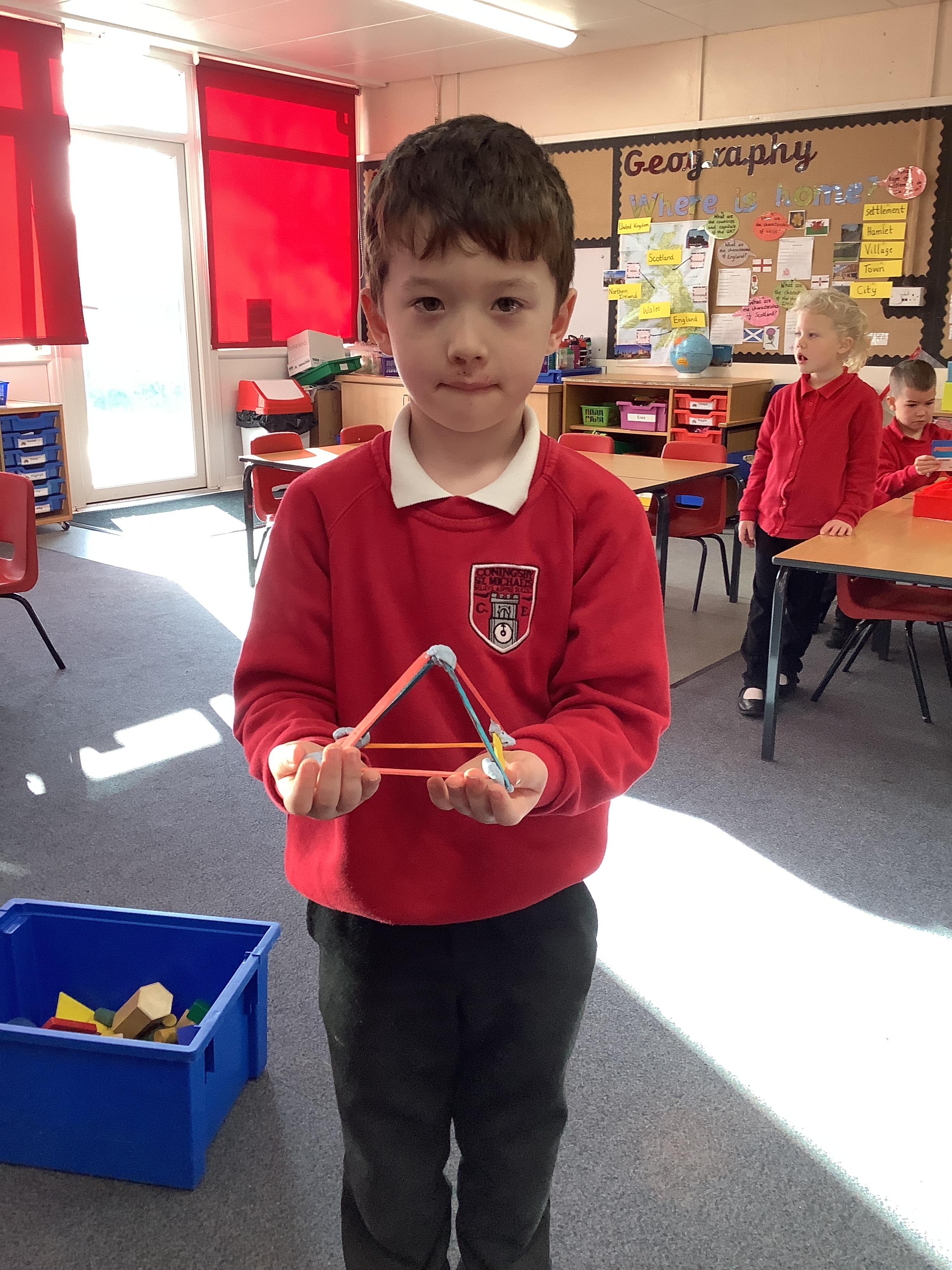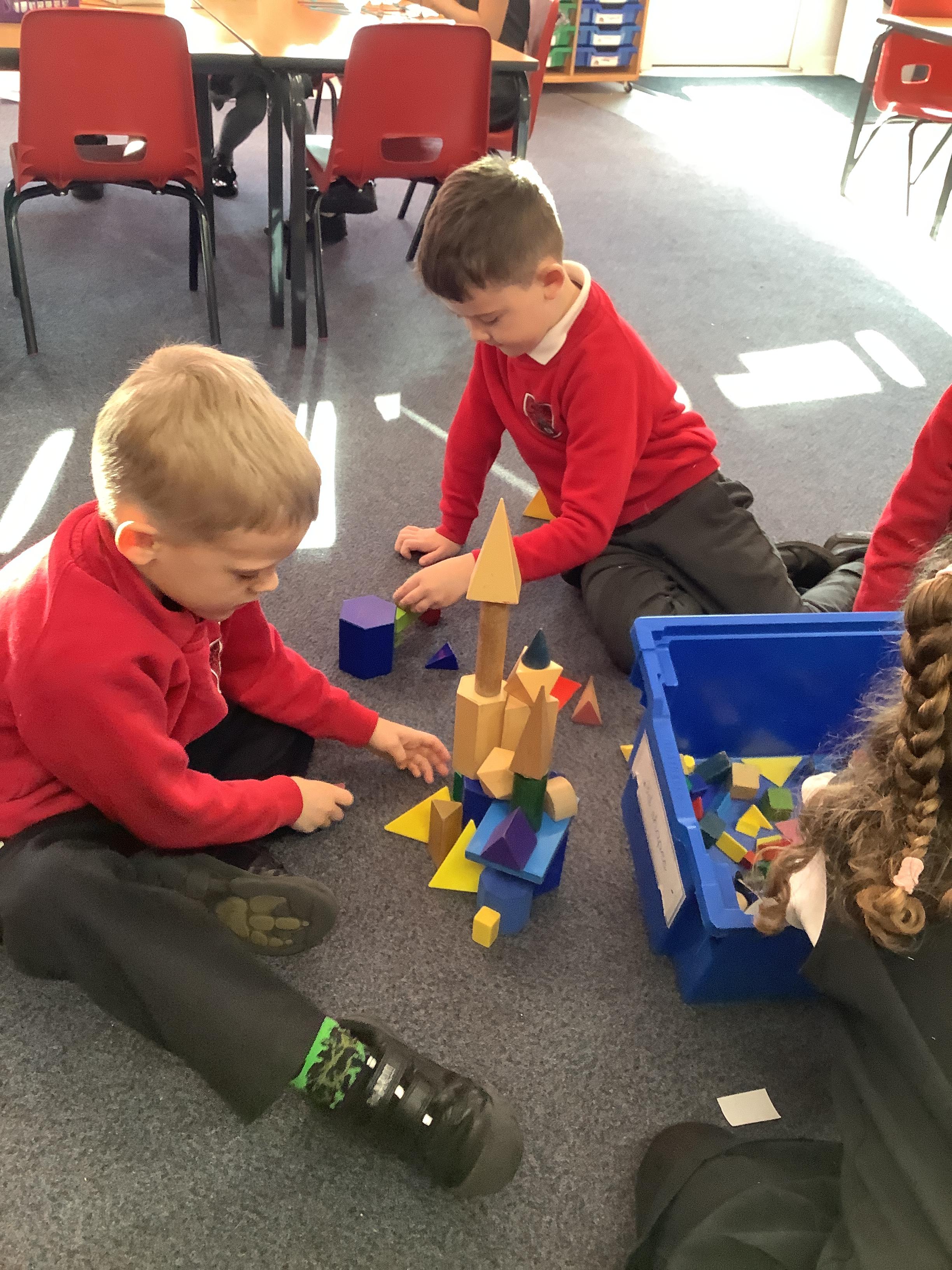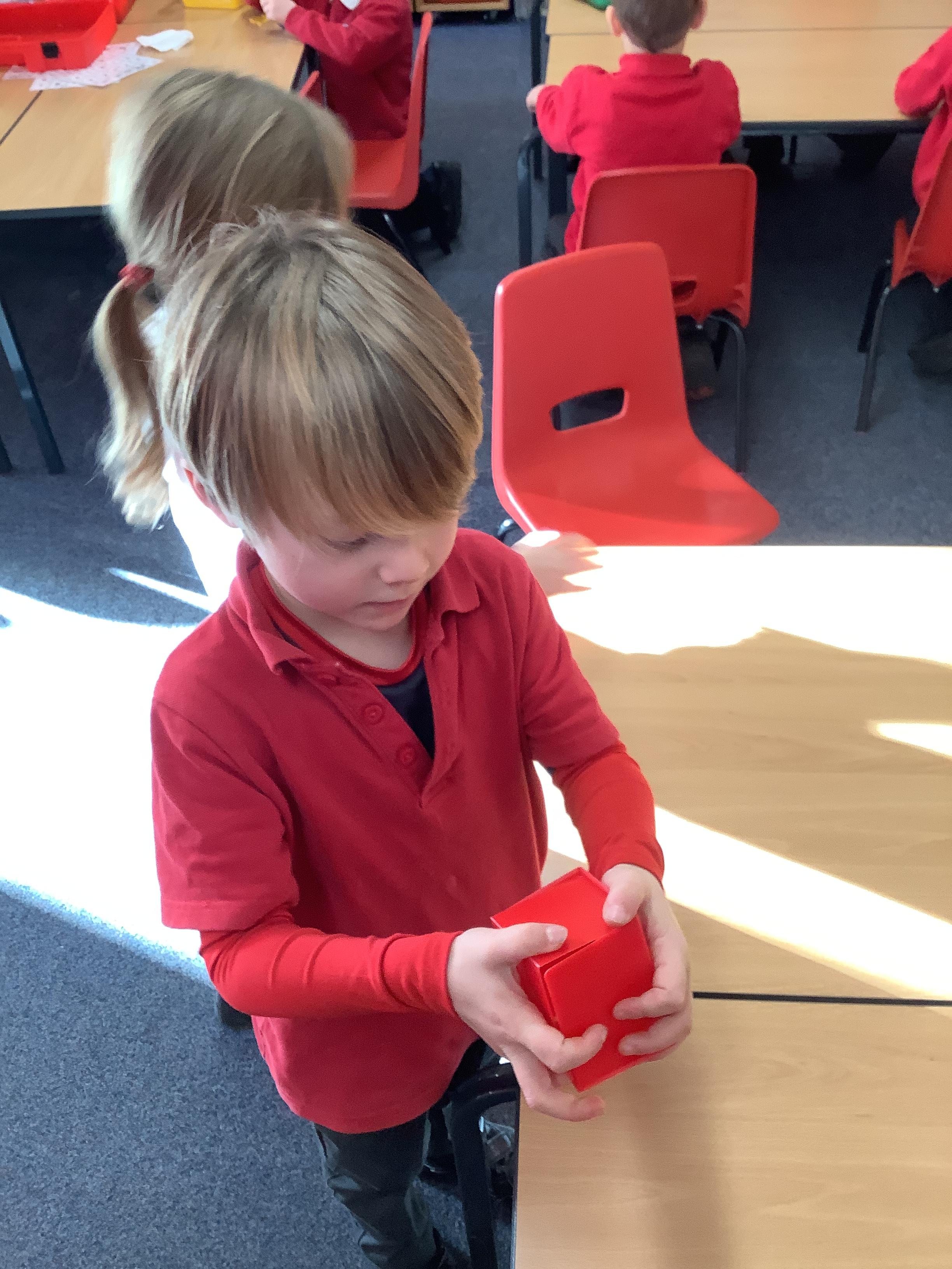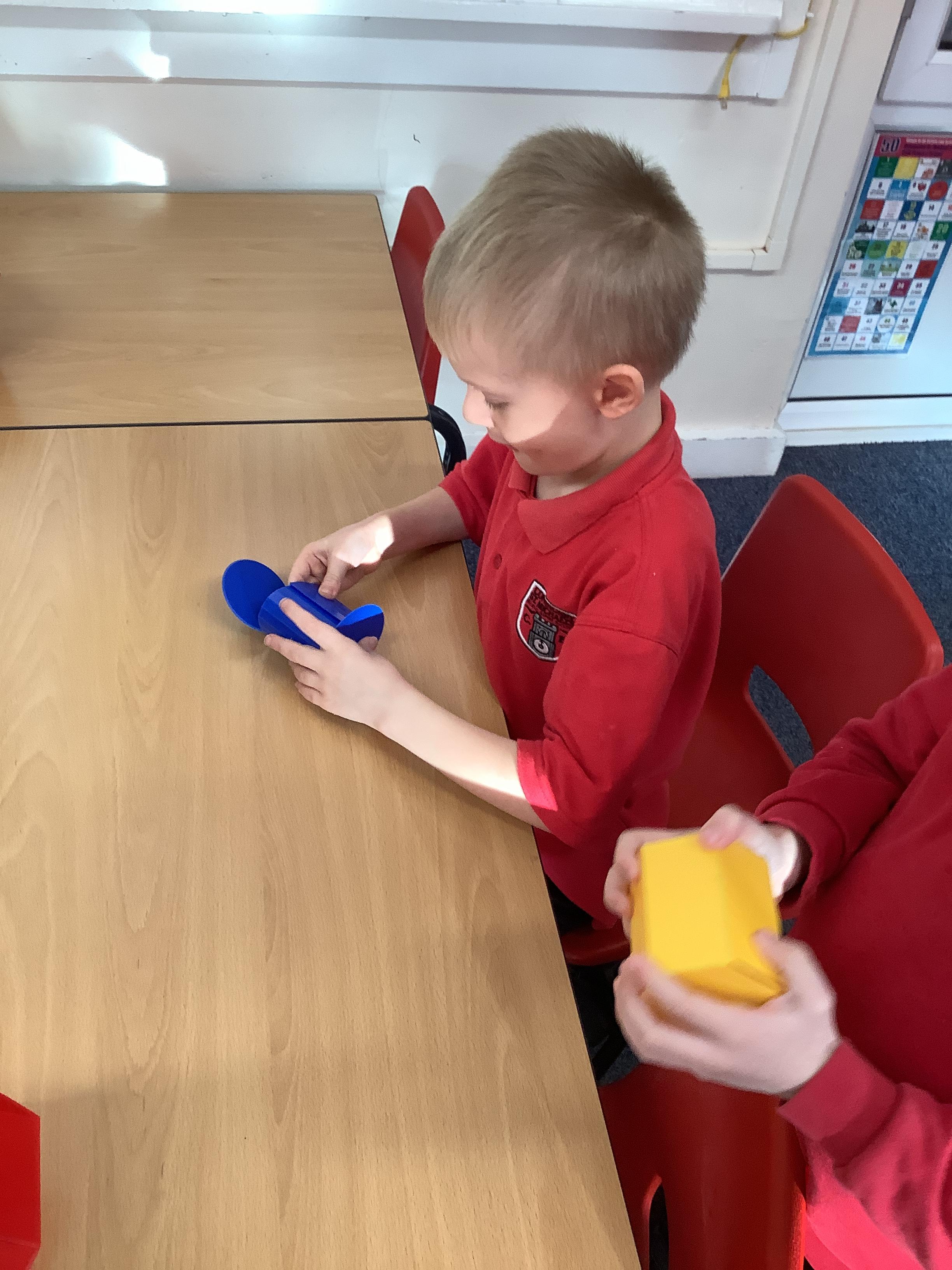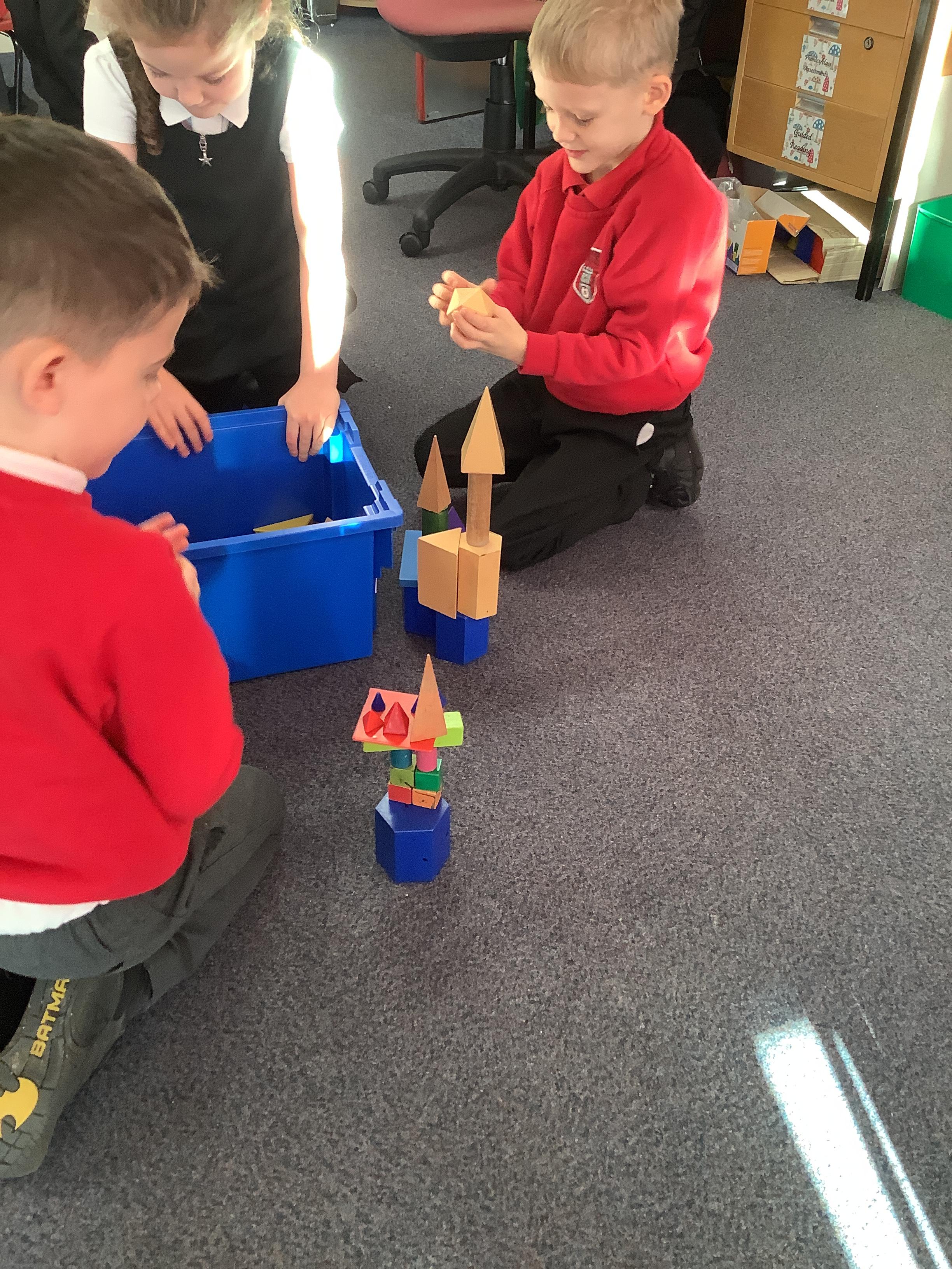 In Maths we explored 3D shapes in lots of different ways. We described them, built them and built with them. We are getting very confident with our shapes!