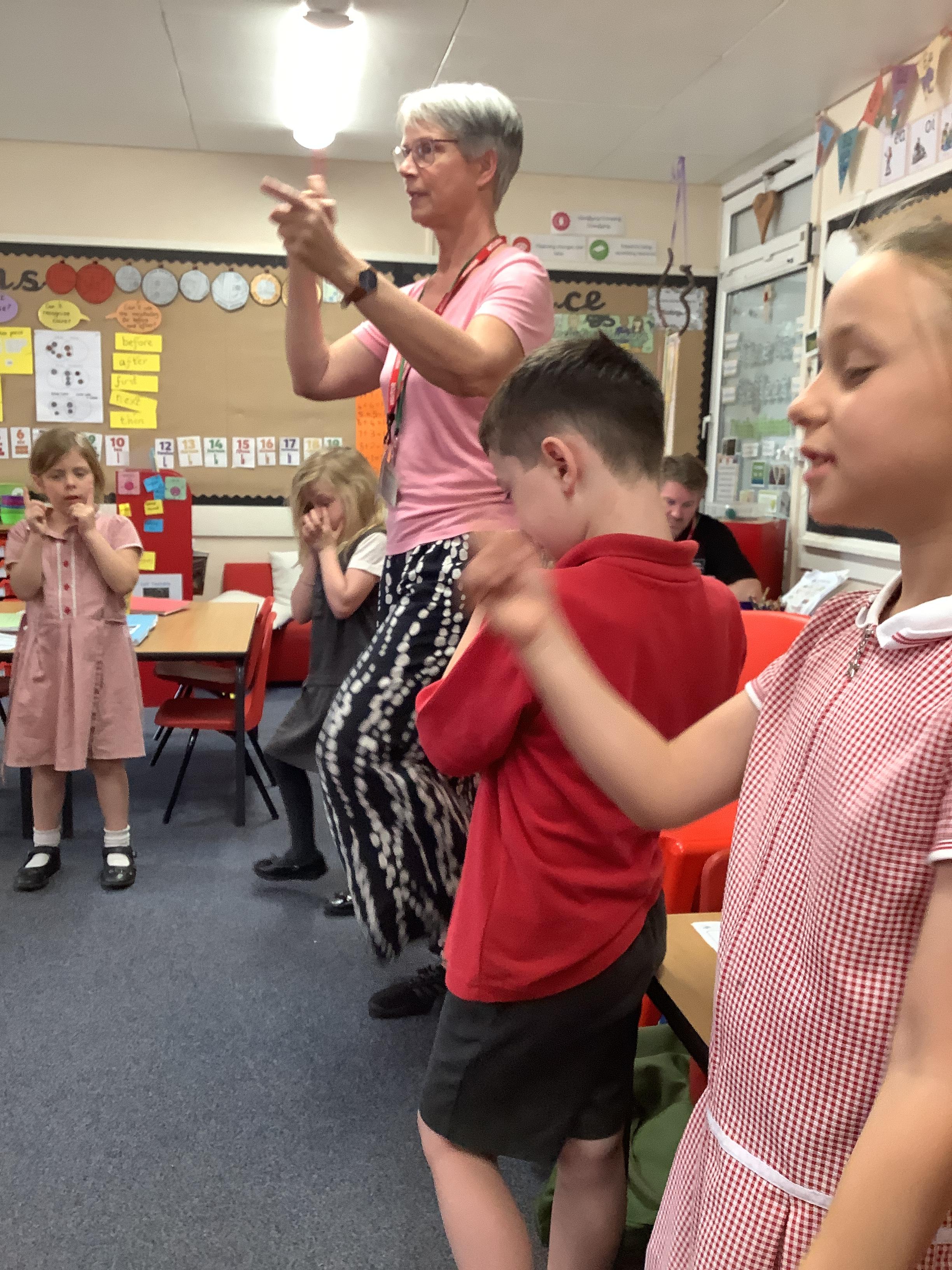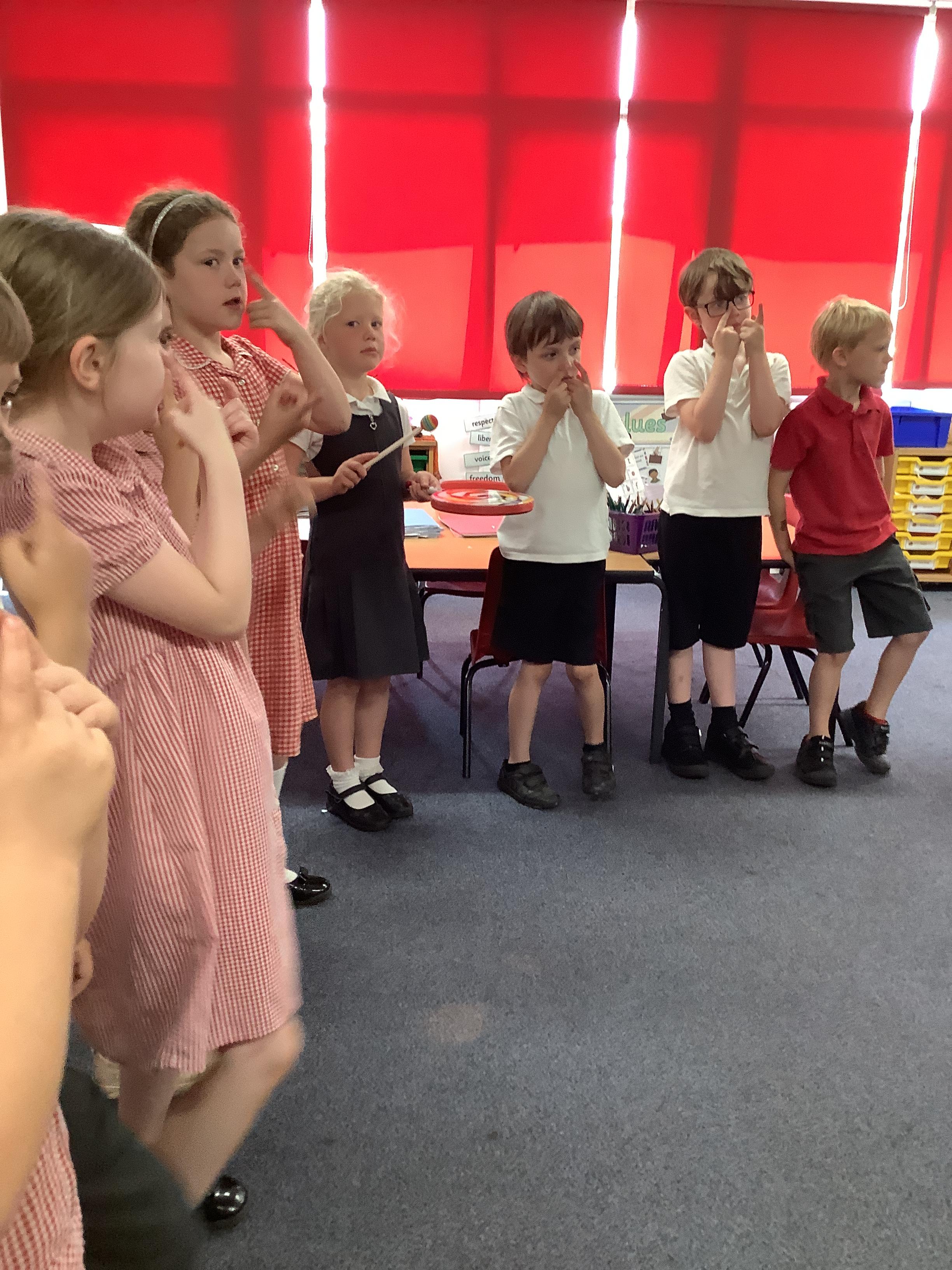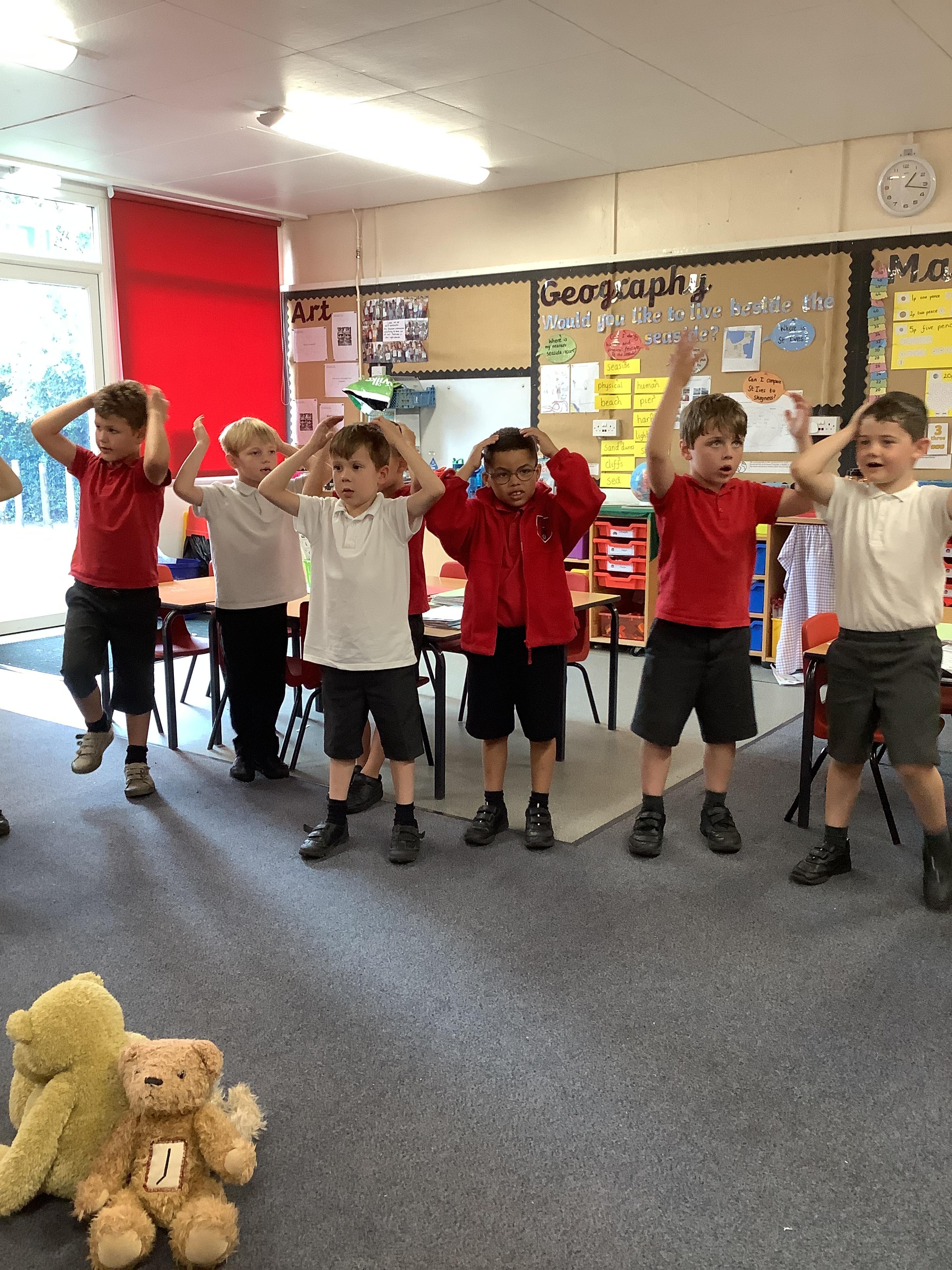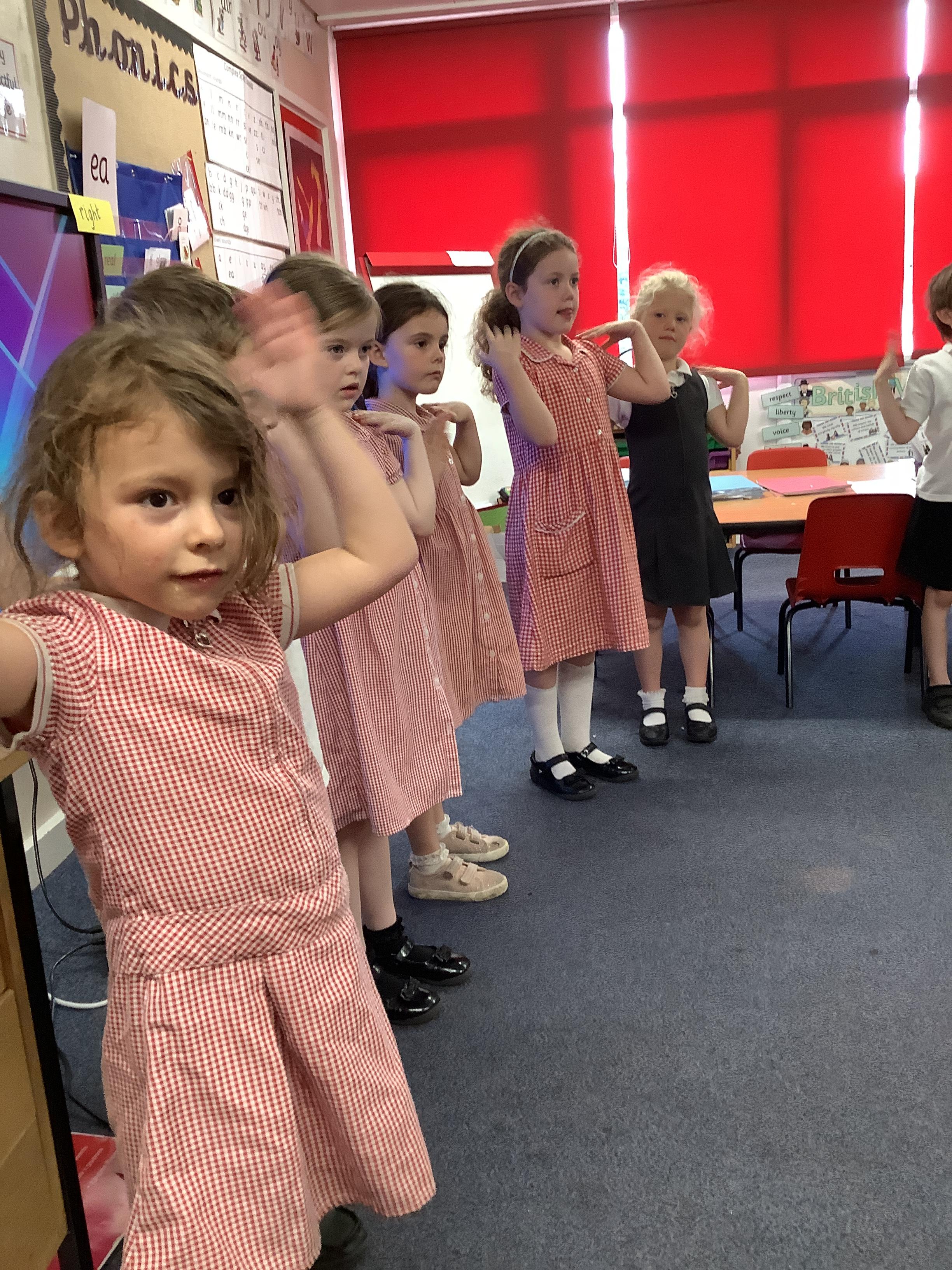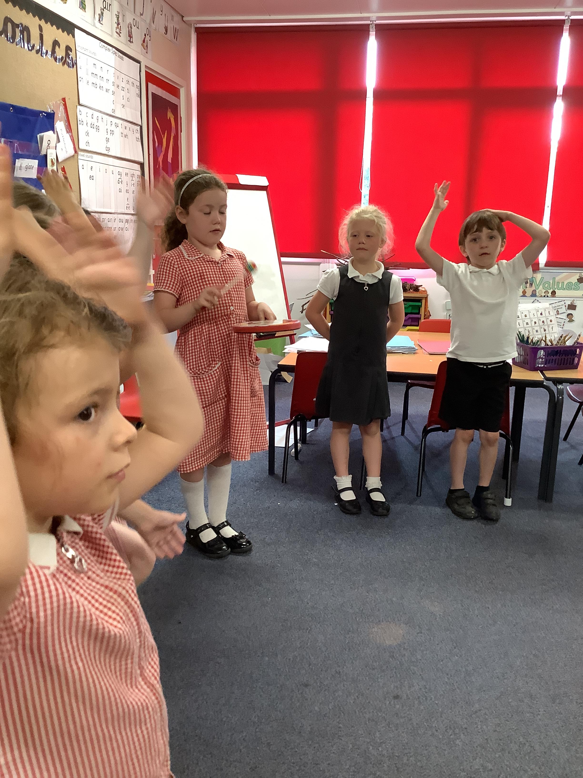 In Music this week we practised everything we have learnt this term, pulse, pitch, rhythm and beat. We also responded to a piece of music called the flower dance by dancing with scarves.