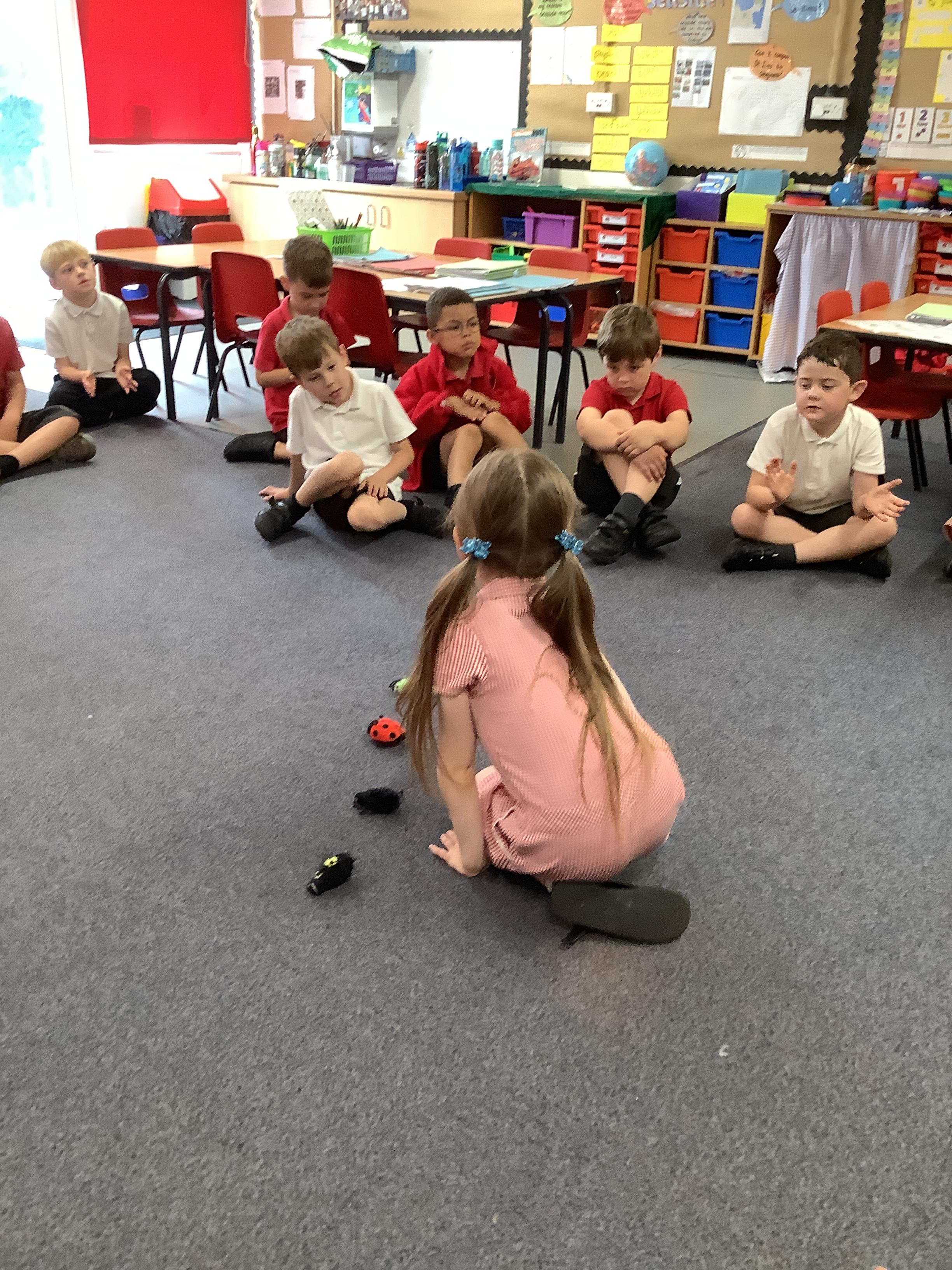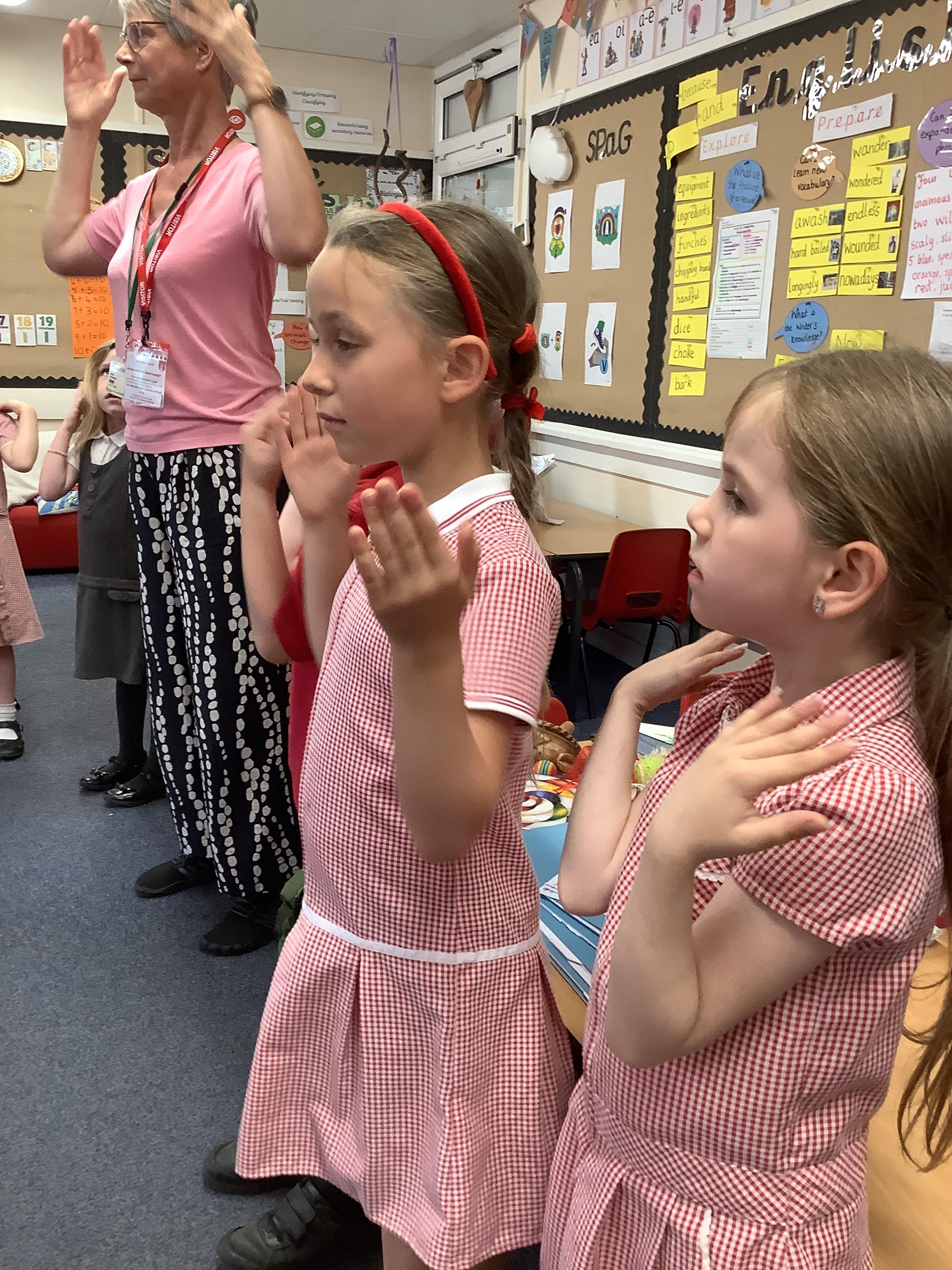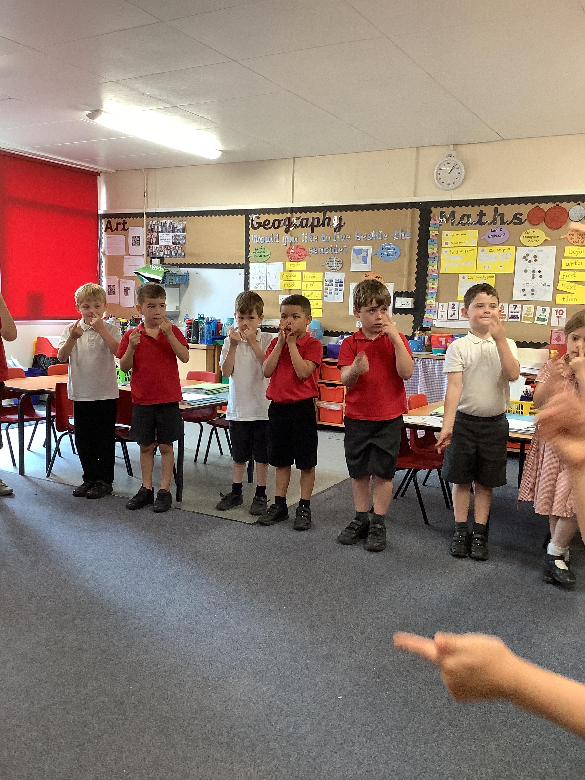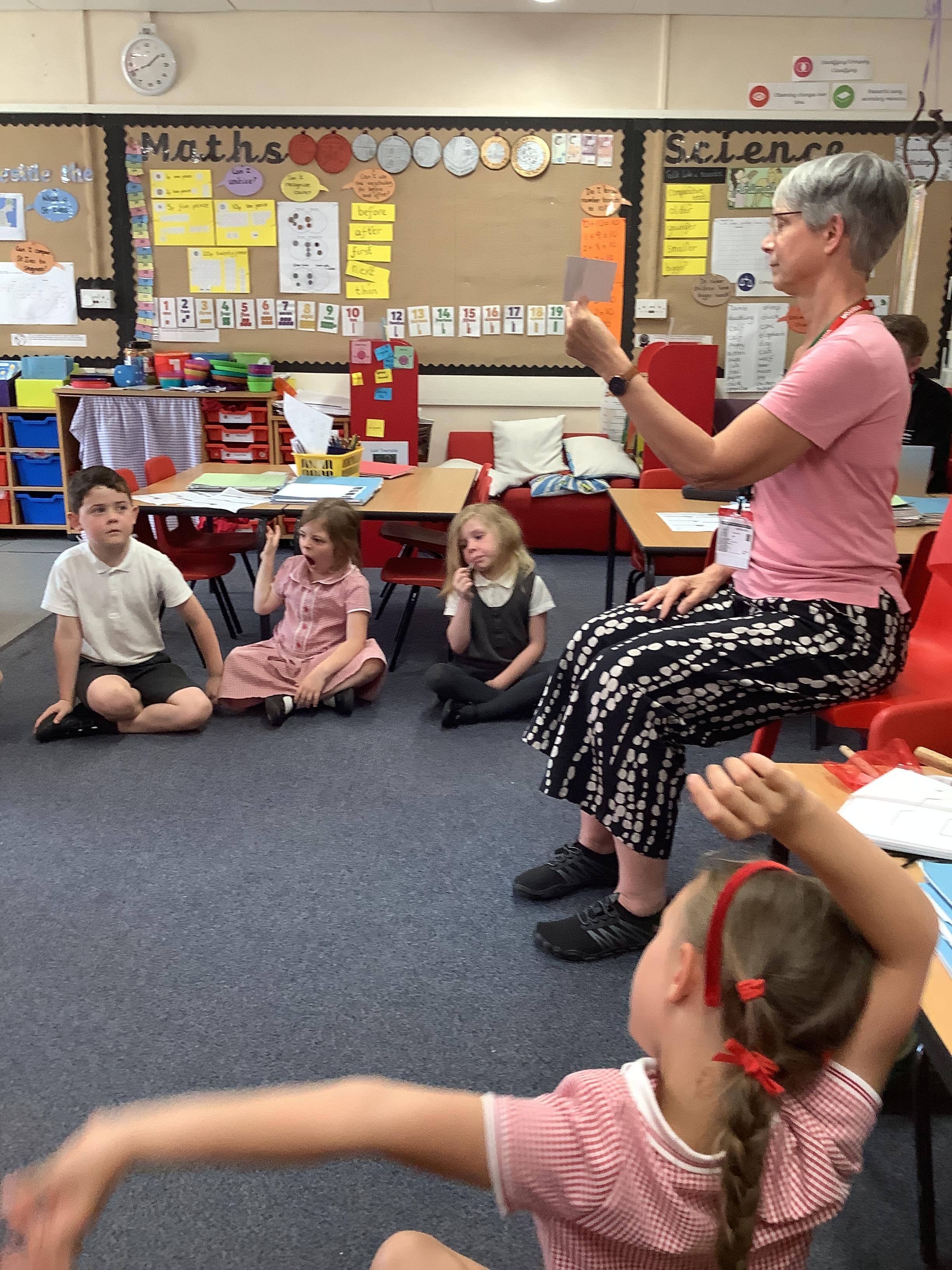 In Music this week we practised everything we have learnt this term, pulse, pitch, rhythm and beat. We also responded to a piece of music called the flower dance by dancing with scarves.