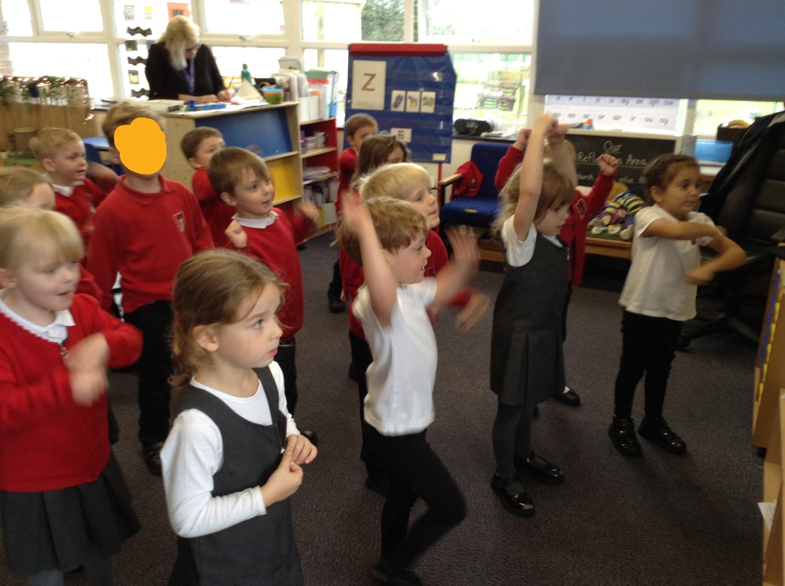 We have also been making patterns with actions and movements. The children enjoyed joining in with the Banana, Banana, Meatballs song on Go Noodle.