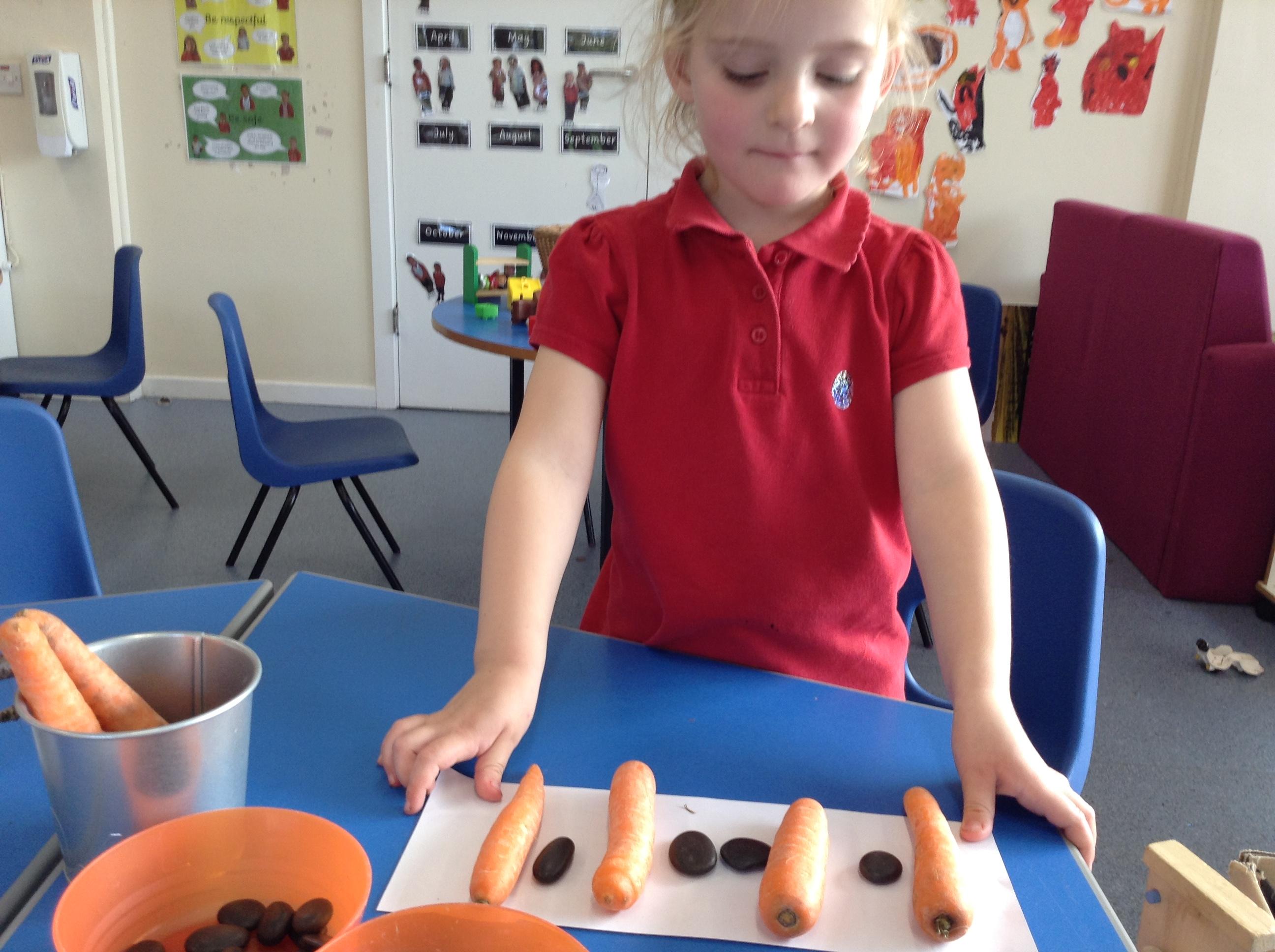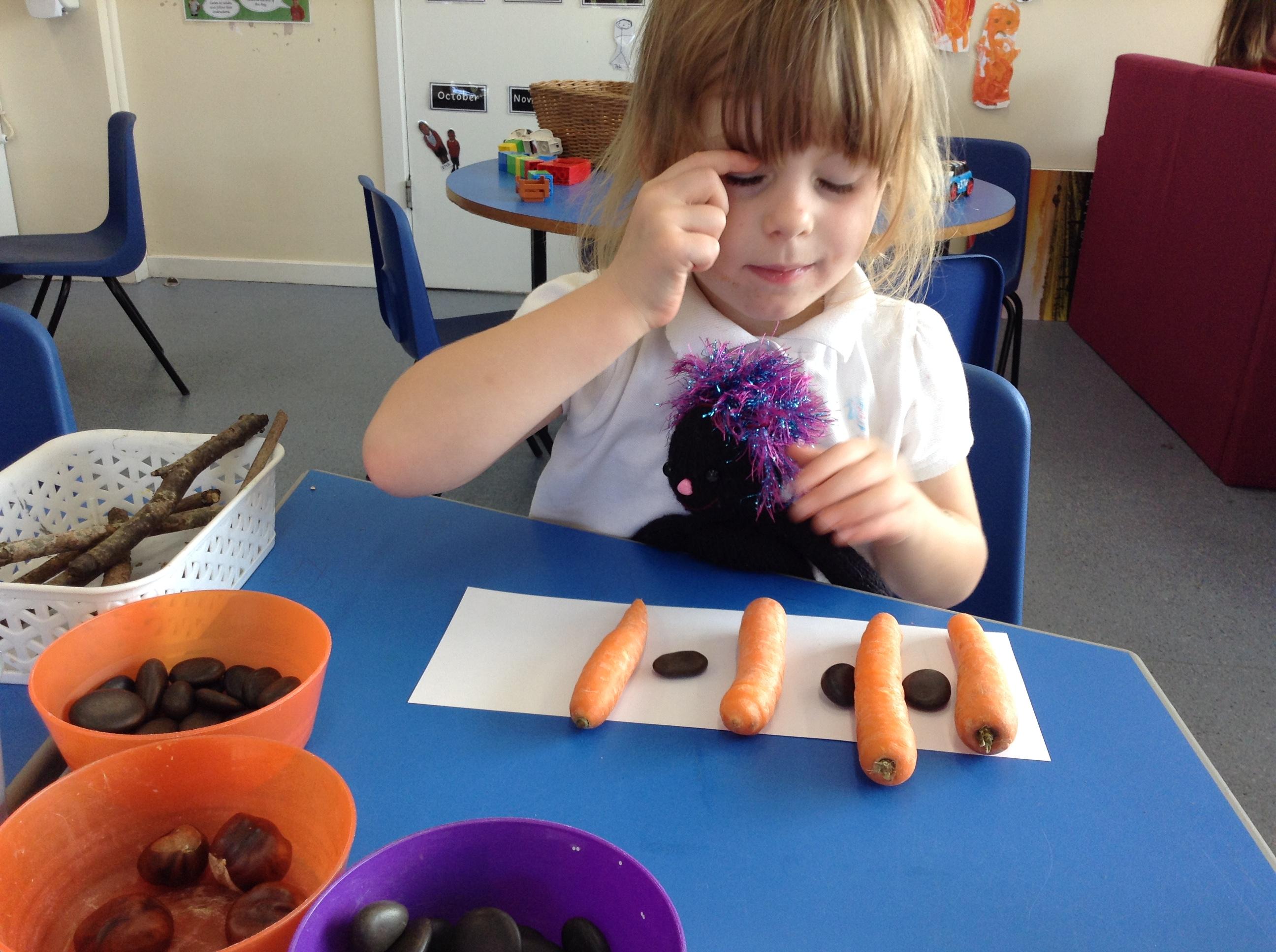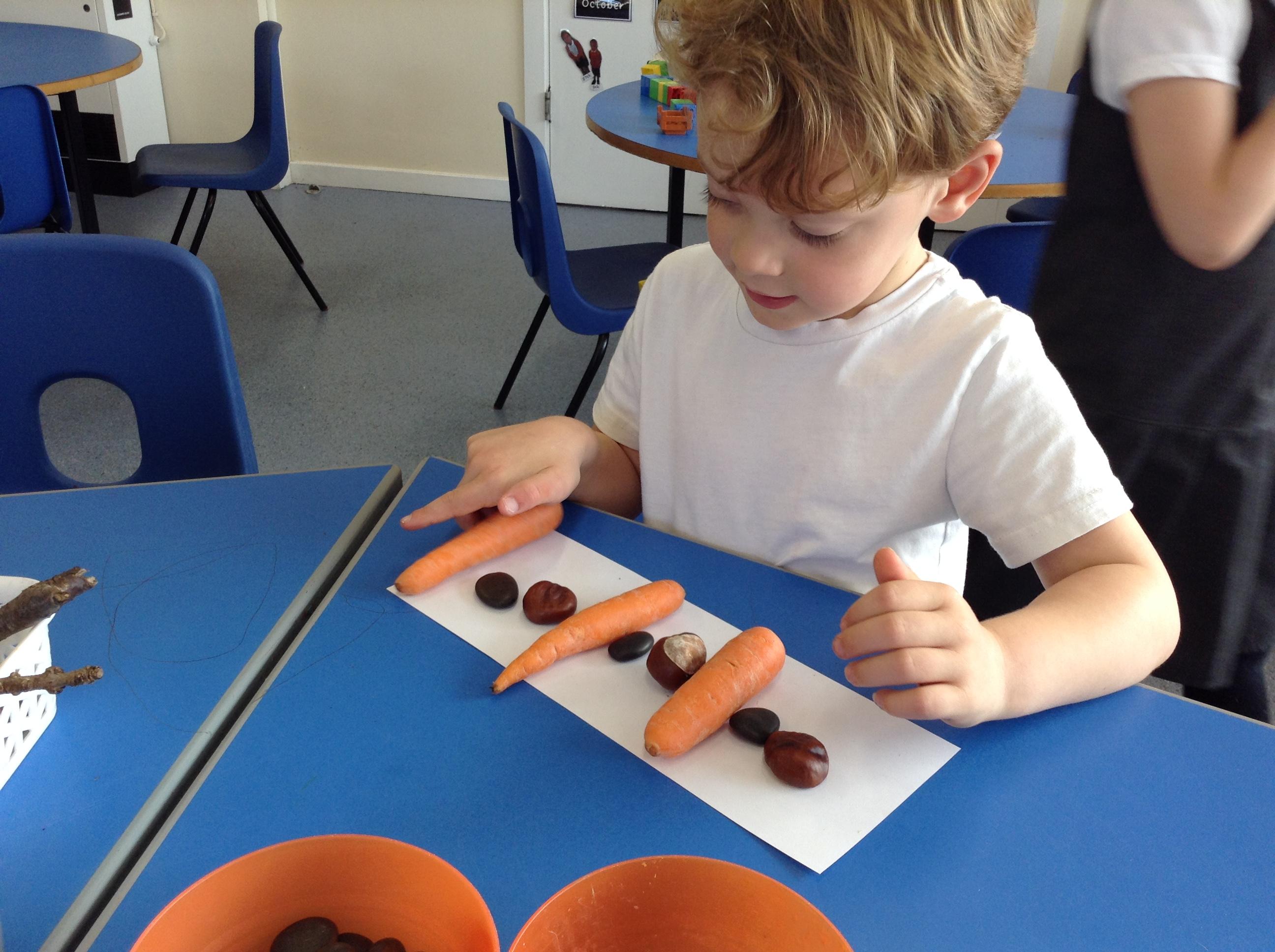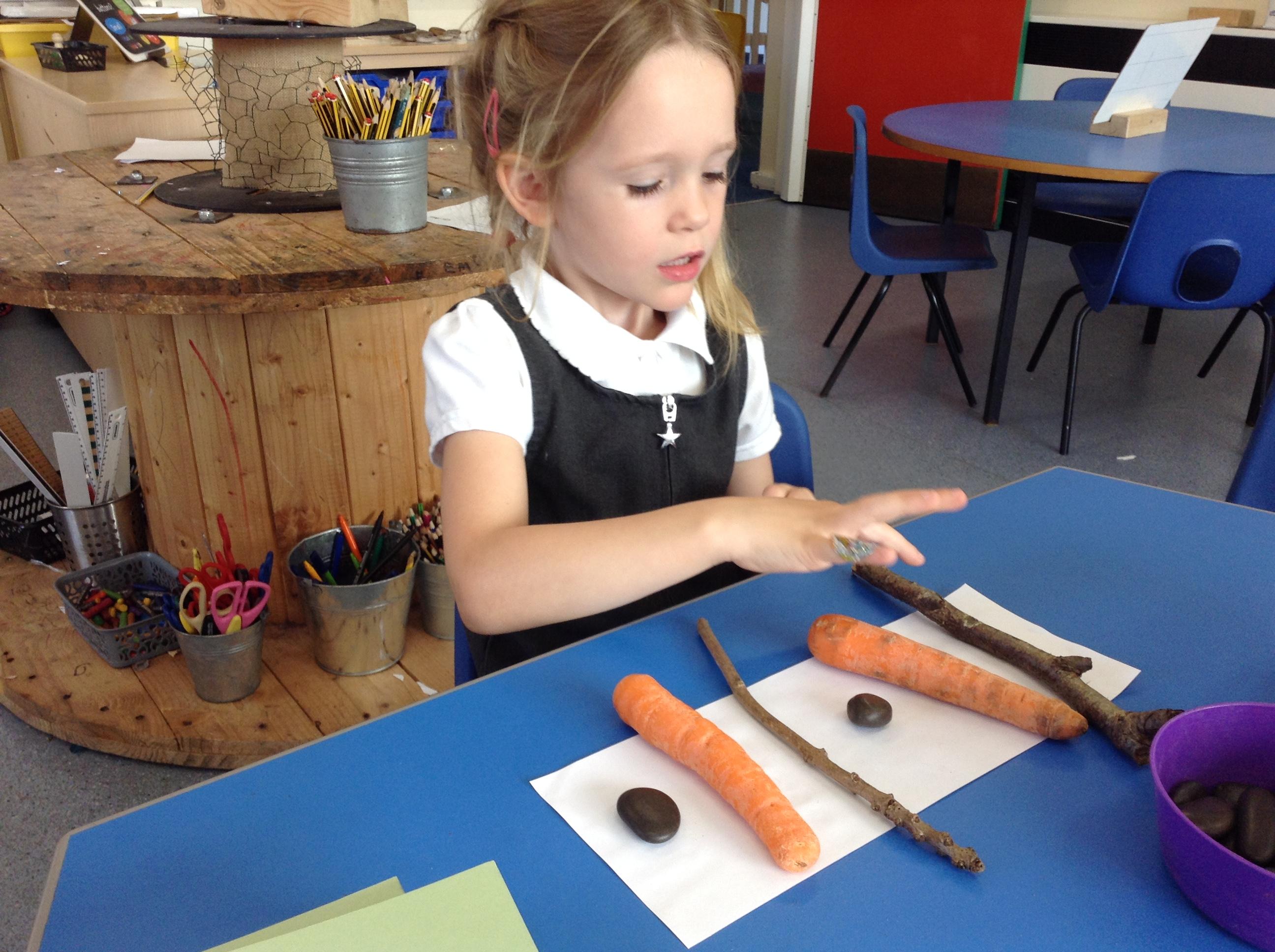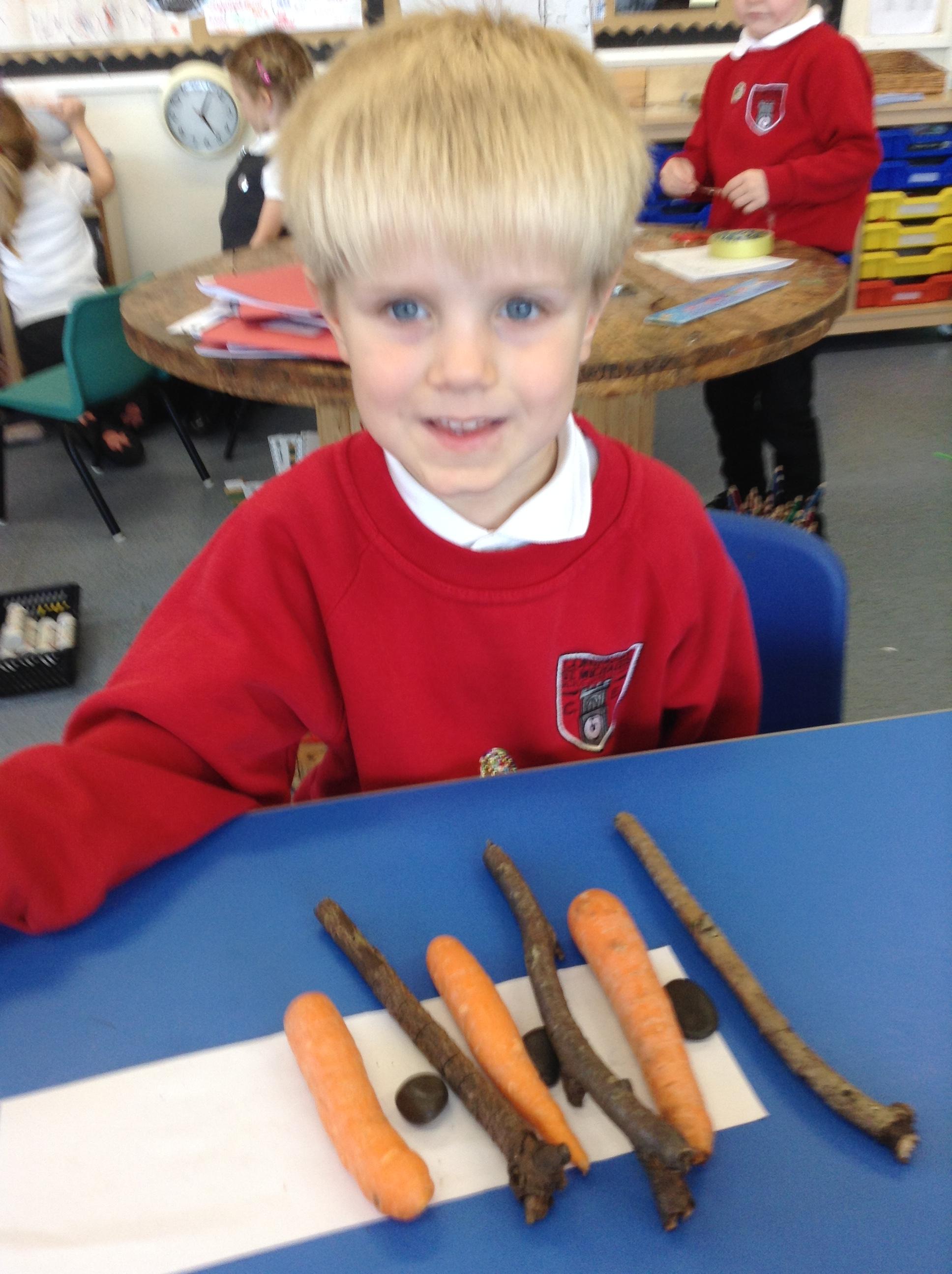 In maths this week we have been using natural objects to make repeating patterns. The children have been creating AB patterns and spotting mistakes and correcting them. Some of the children have gone on to create their own ABC patterns using 3 different objects.