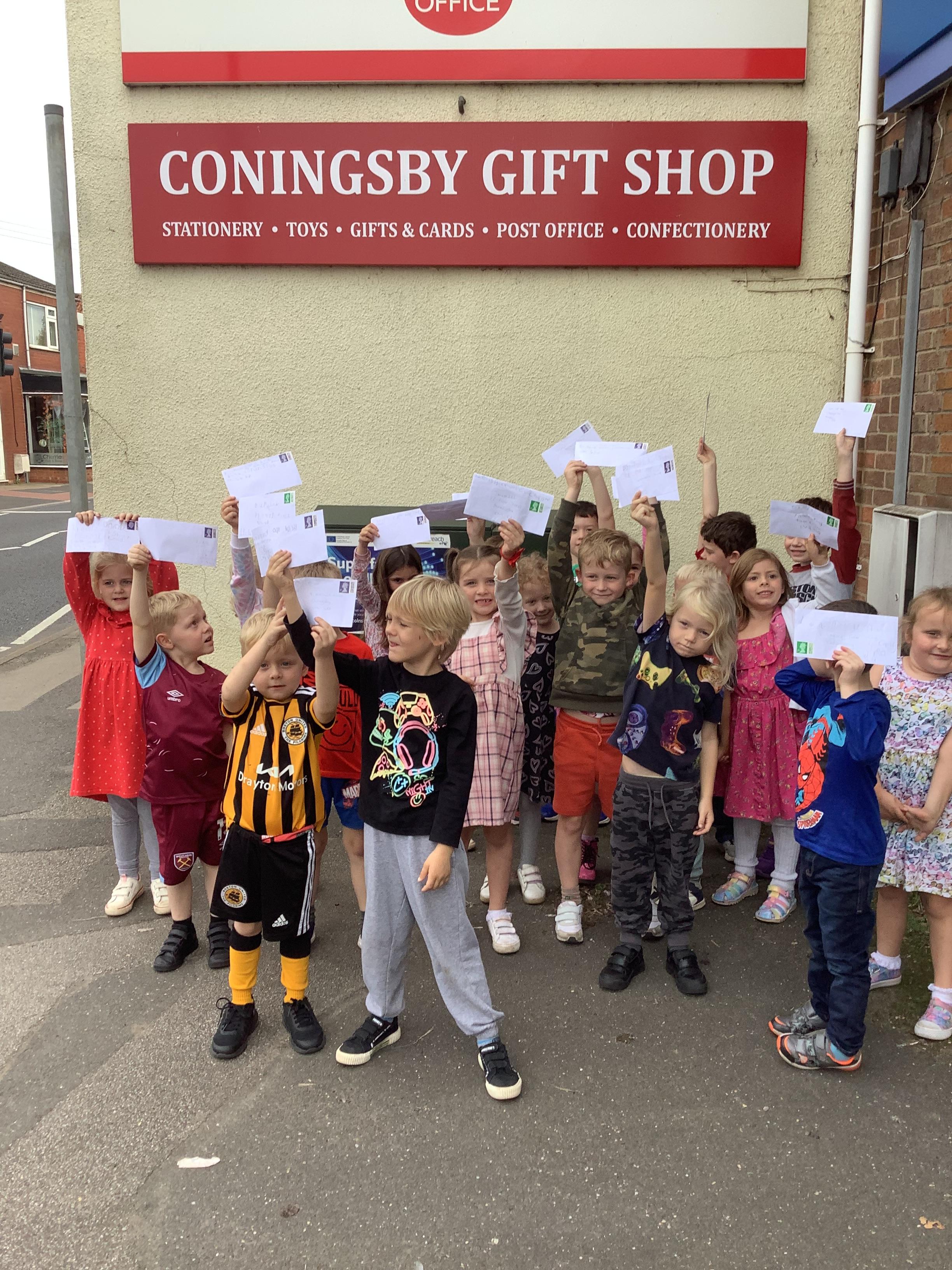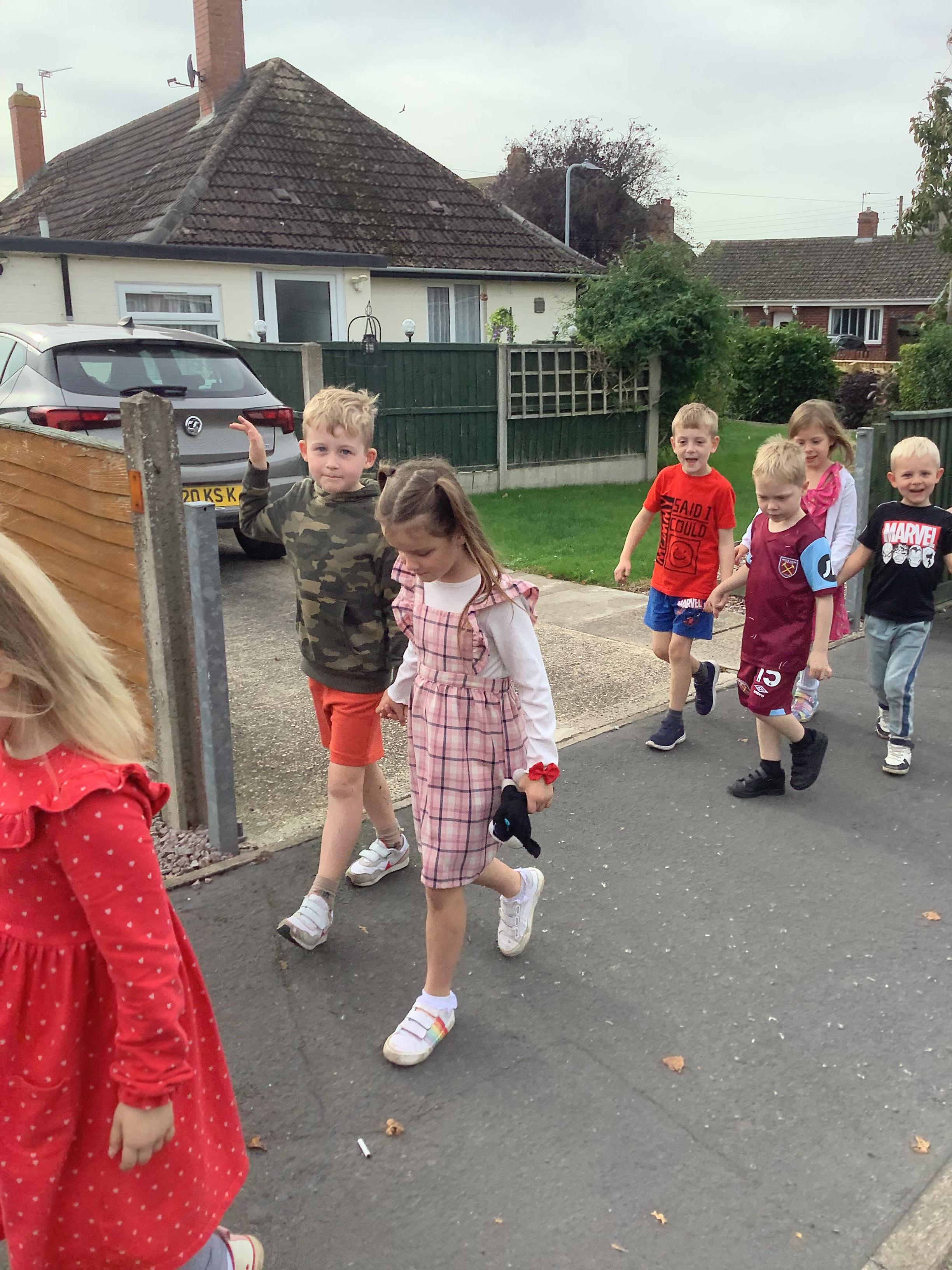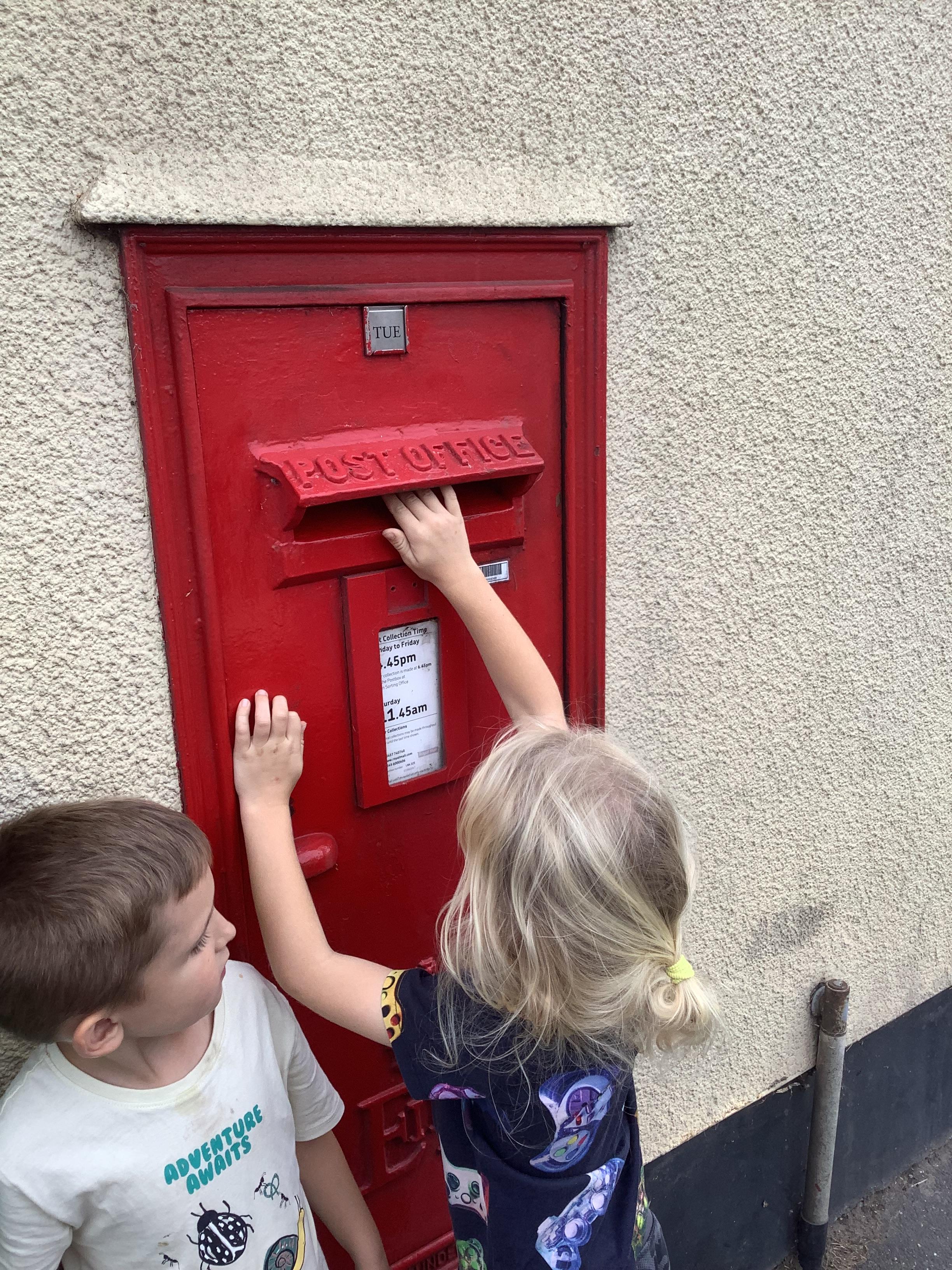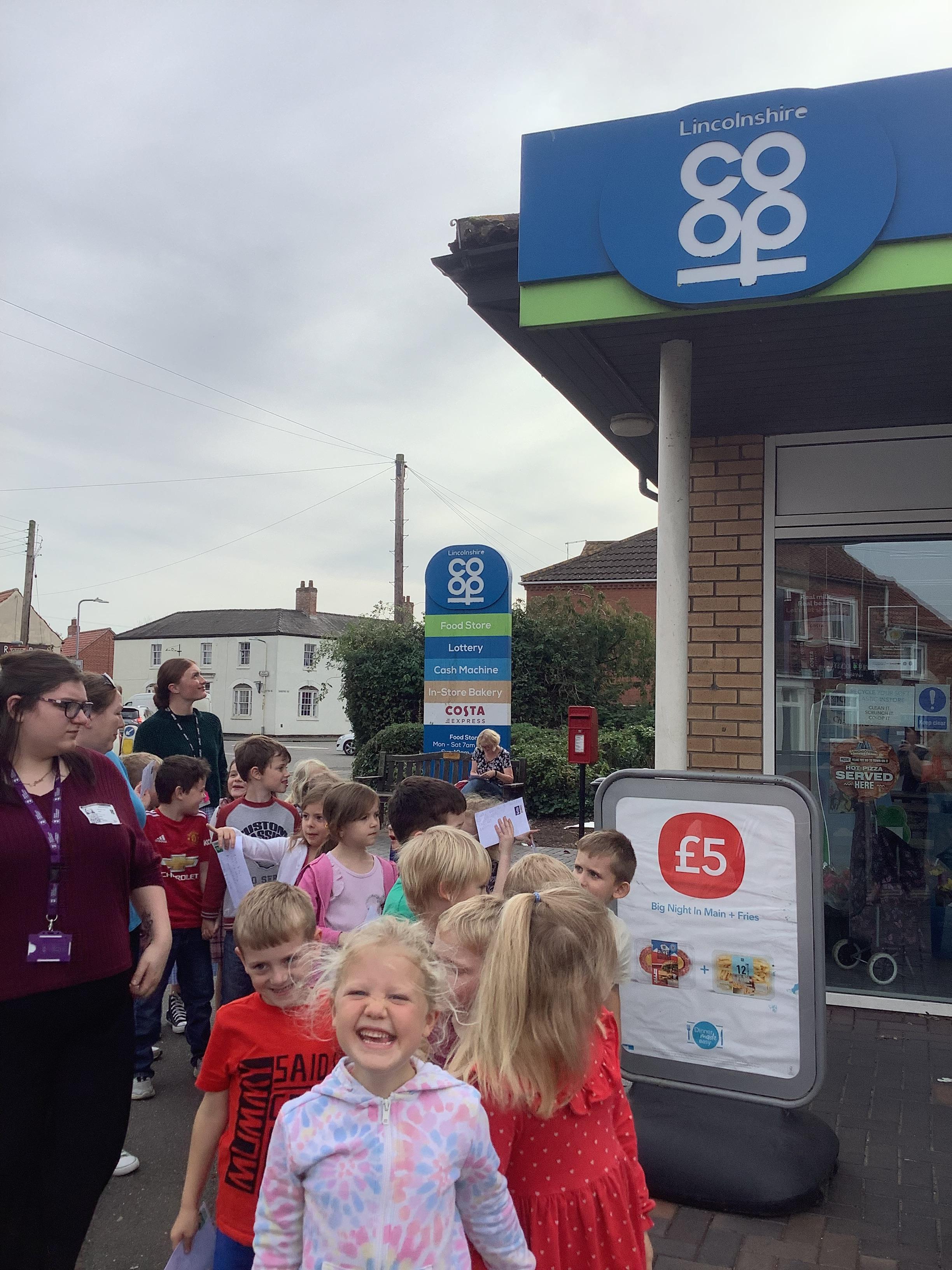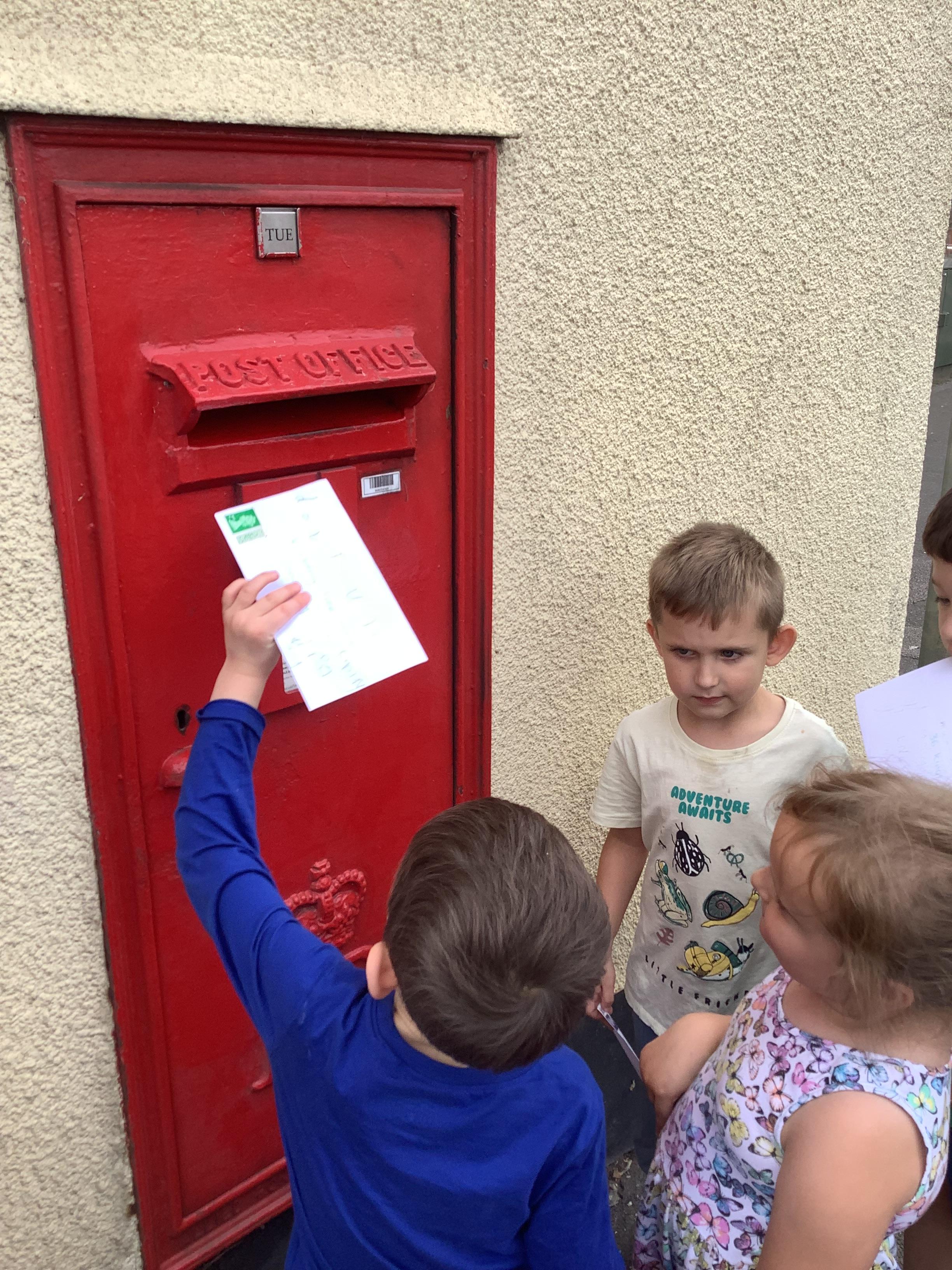 Today we went on a Geography field trip. We looked at the human features of Coningsby like the doctors surgery, churches, shops, roads etc. We stopped at the post office to deliver our letters. We also found some crunchy Autumn leaves which was perfect as we're talking about Autumn in Science later this week. When we got back to class we drew a map of our route.