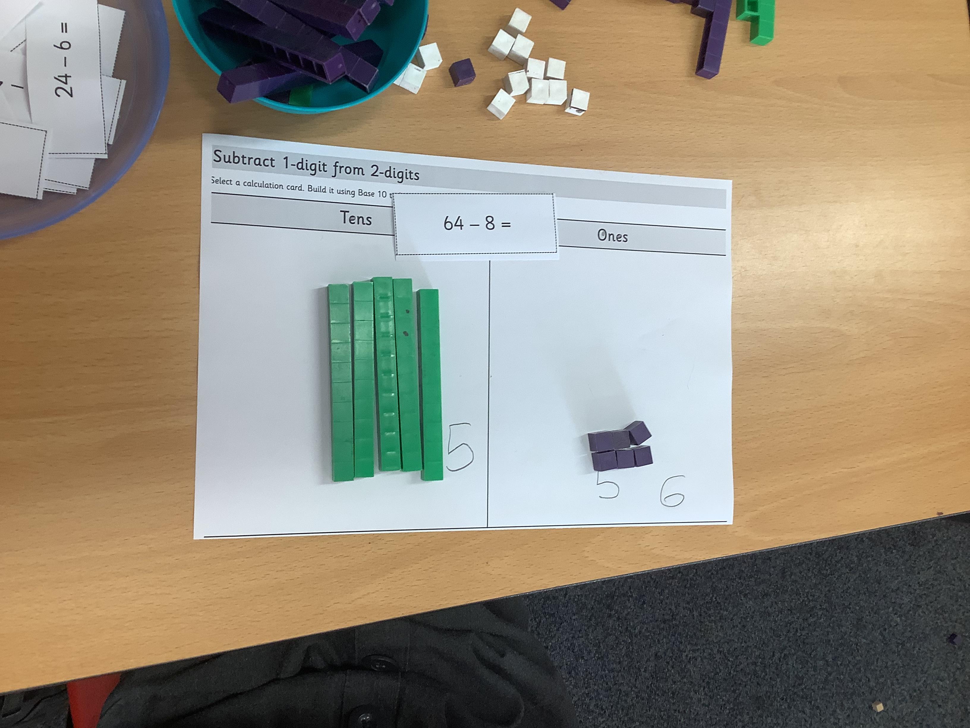 In Maths, Year 2's have been adding a 1-digit number to a 2-digit number. Using tens and ones on a place value chart, we remembered that we could exchange 1 ten for 10 ones.
