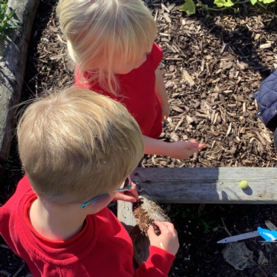 Today, woodpeckers immersed themselves in the magic of our outdoor classroom with the freedom and confidence to explore the setting independently. Their adventure began by gathering sunflower seed 'treasures' for our resident chickens to thoughtfully planting a few in our 'mystical garden,' the children were budding scientists learning that some seeds wait patiently underground, sparking exciting predictions about what magical surprises might sprout next spring. Our little explorers were also thrilled to discover a vibrant 'pick-a-mix' of pumpkins flourishing in the vegetable patch! The excitement peaked with our popcorn sweetcorn, where the children learnt about the process of drying the husks, building anticipation for a future popping party. It was a complete lesson in patience, seasons, and natural science!